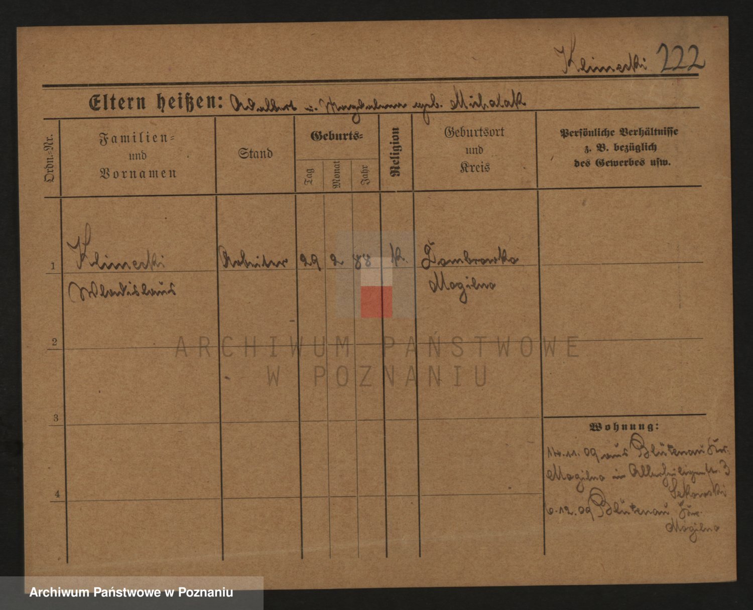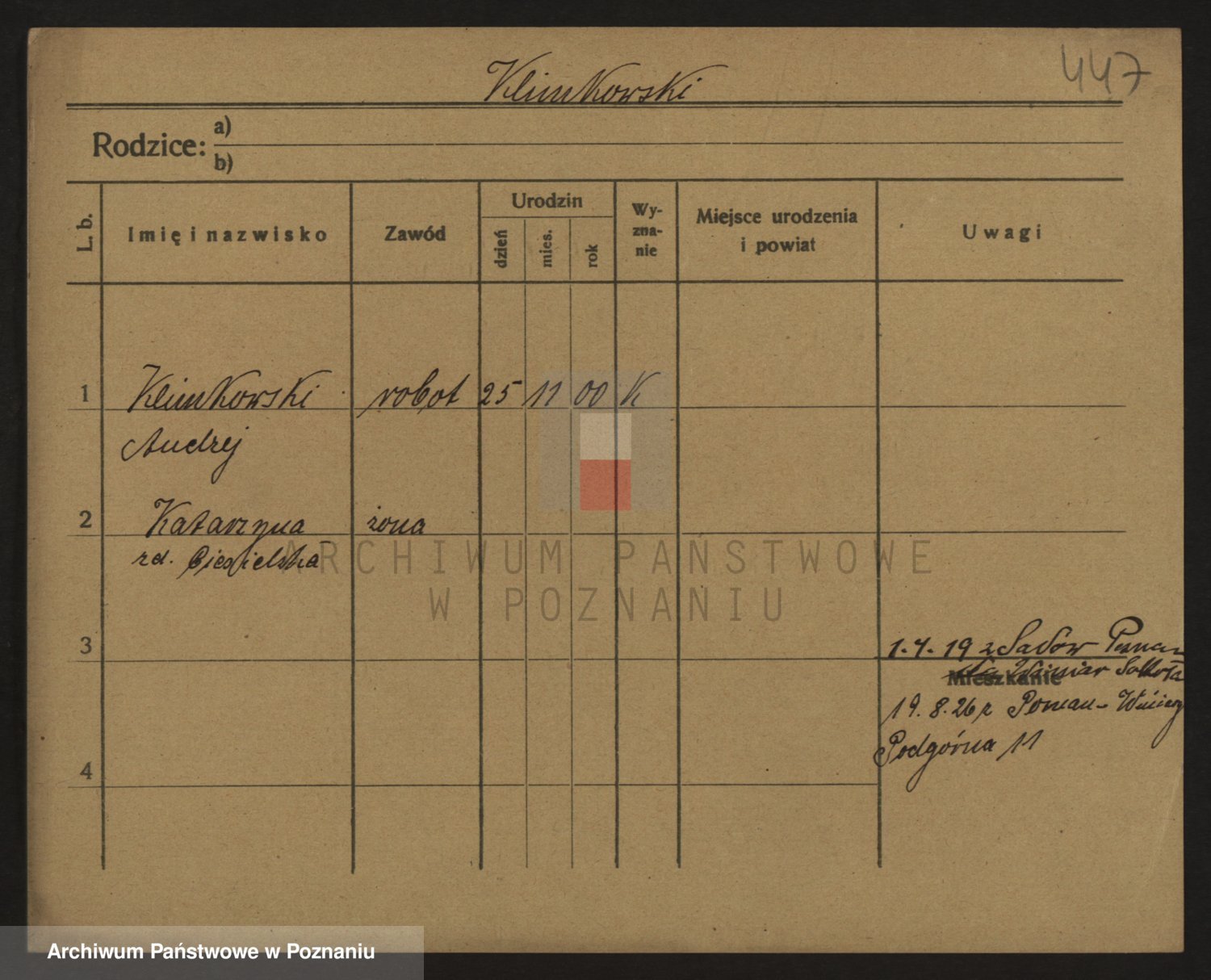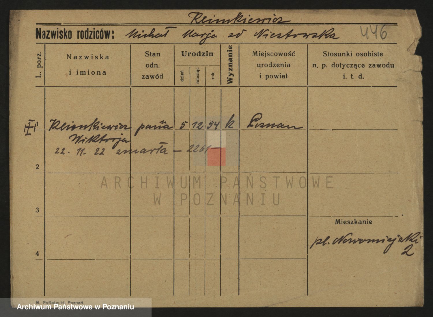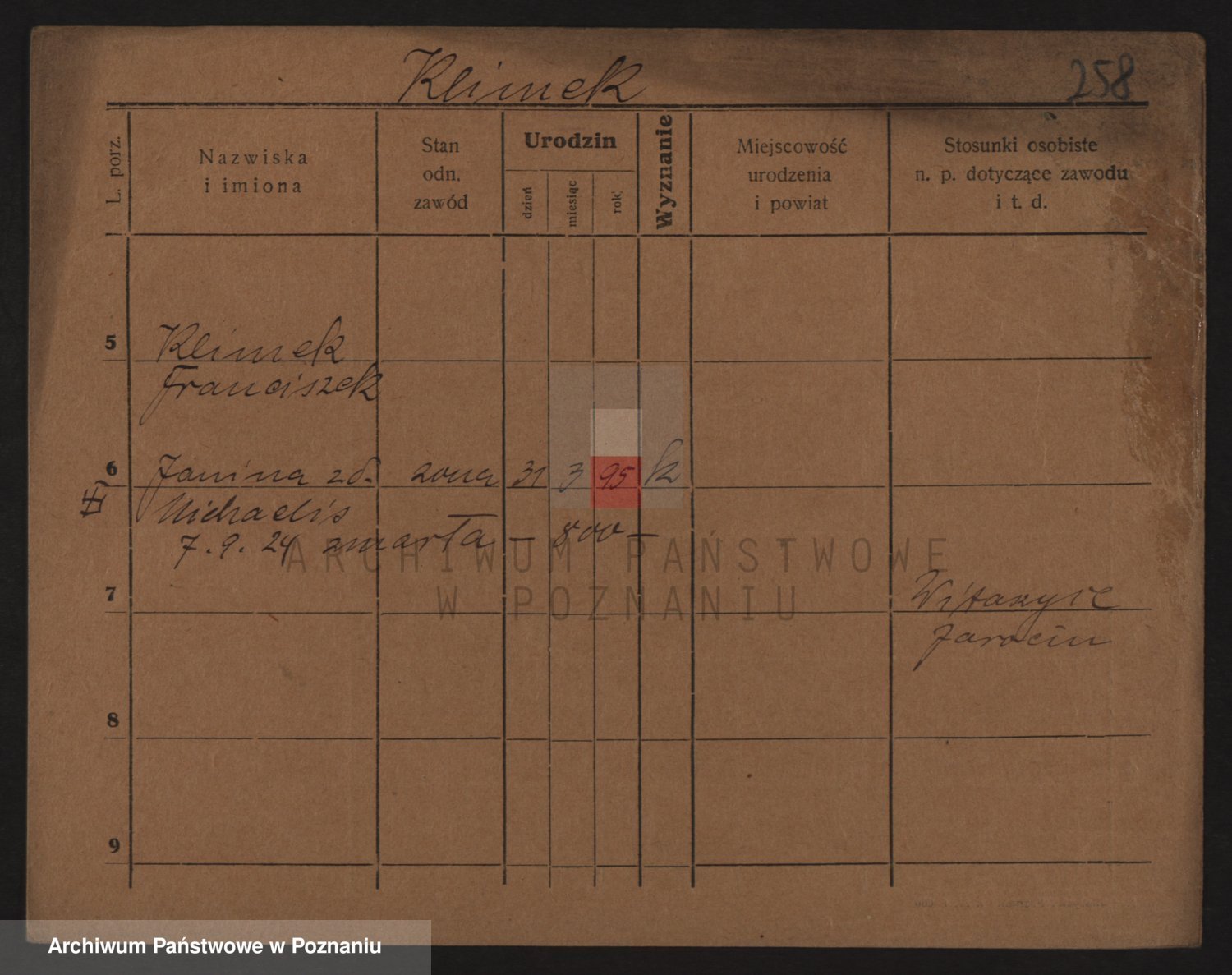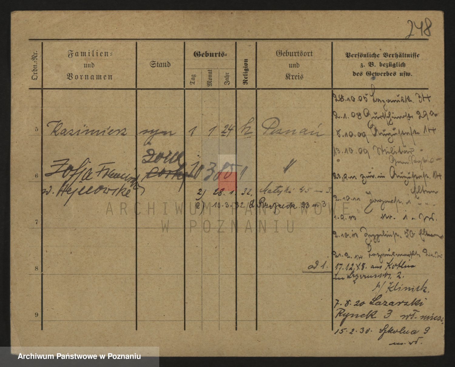 Podgląd karty osobowej dostępny jest po kliknięciu na nazwisko lub ikonkę karty. Można dokonywać powiększenia (ikony na górze) lub przechodzić między kolejnymi skanami (strzałki po bokach).