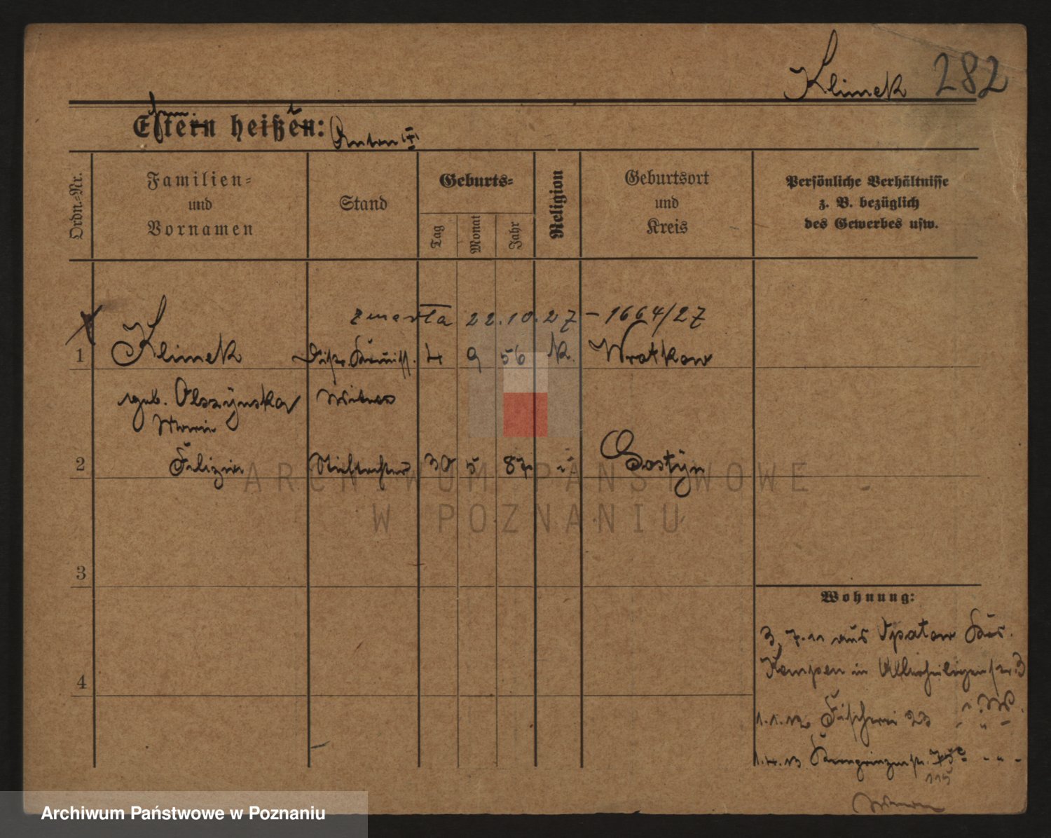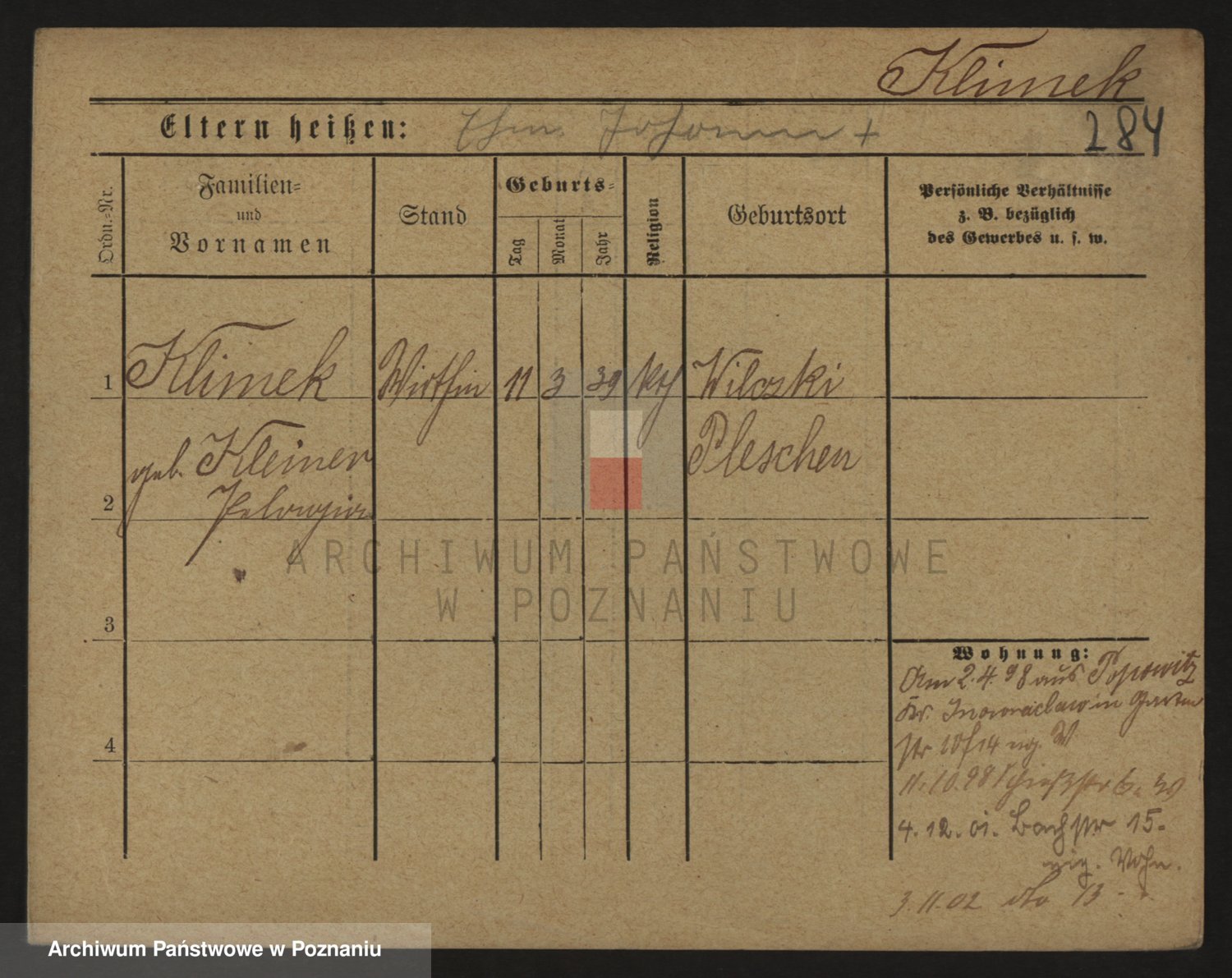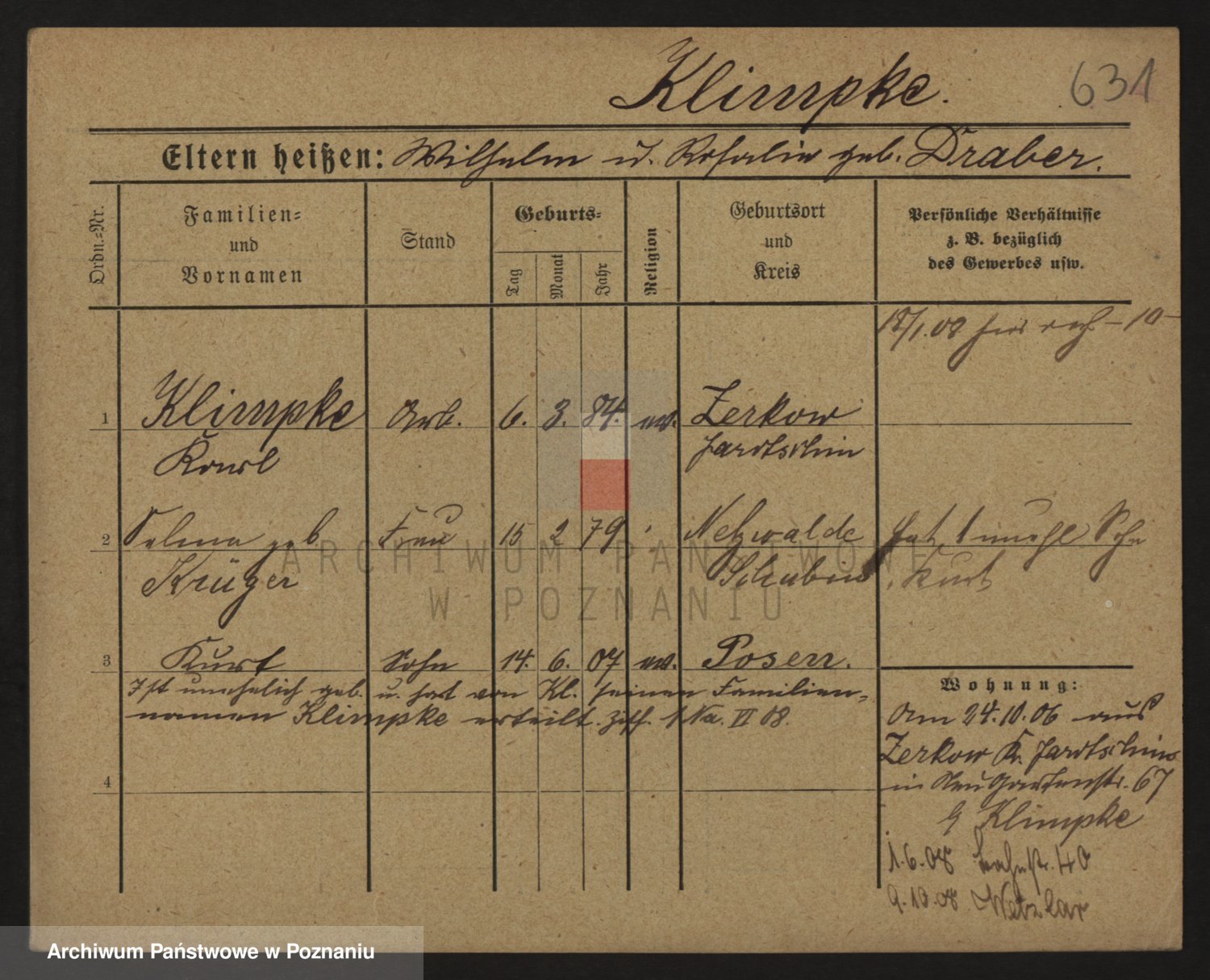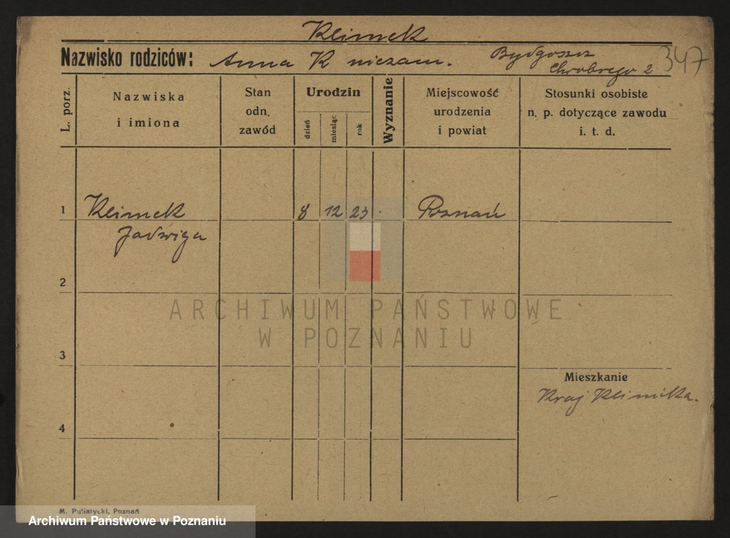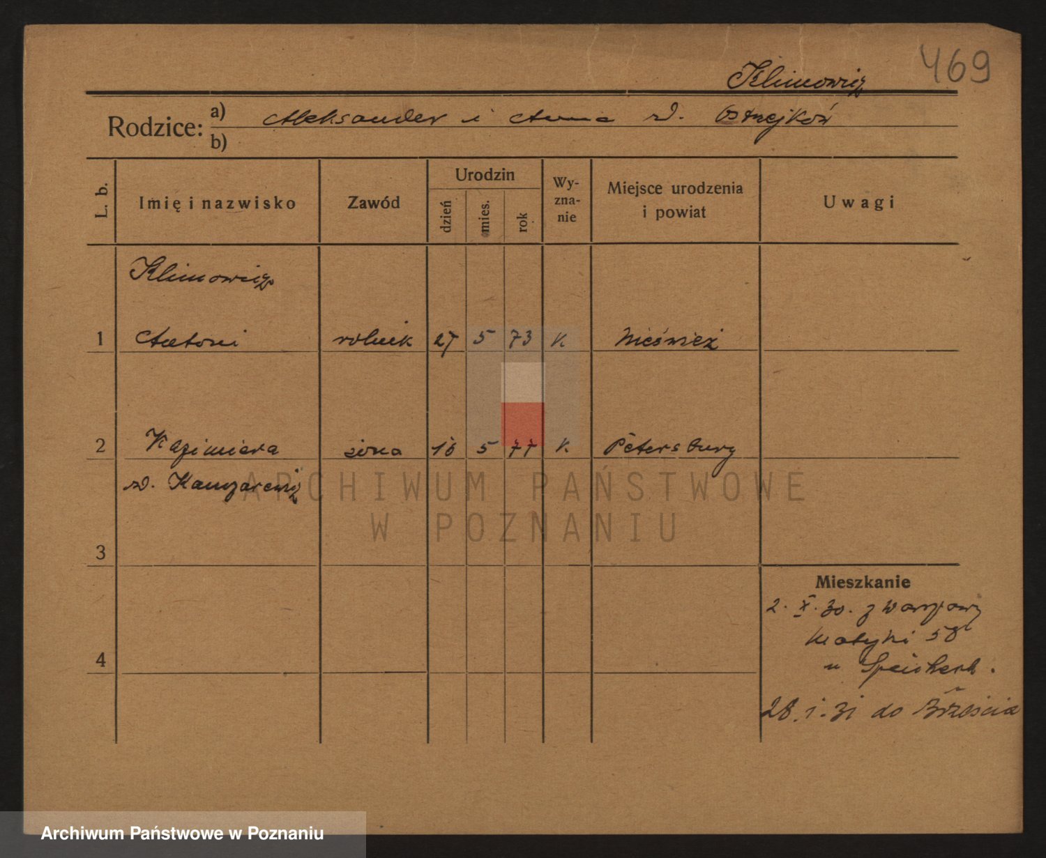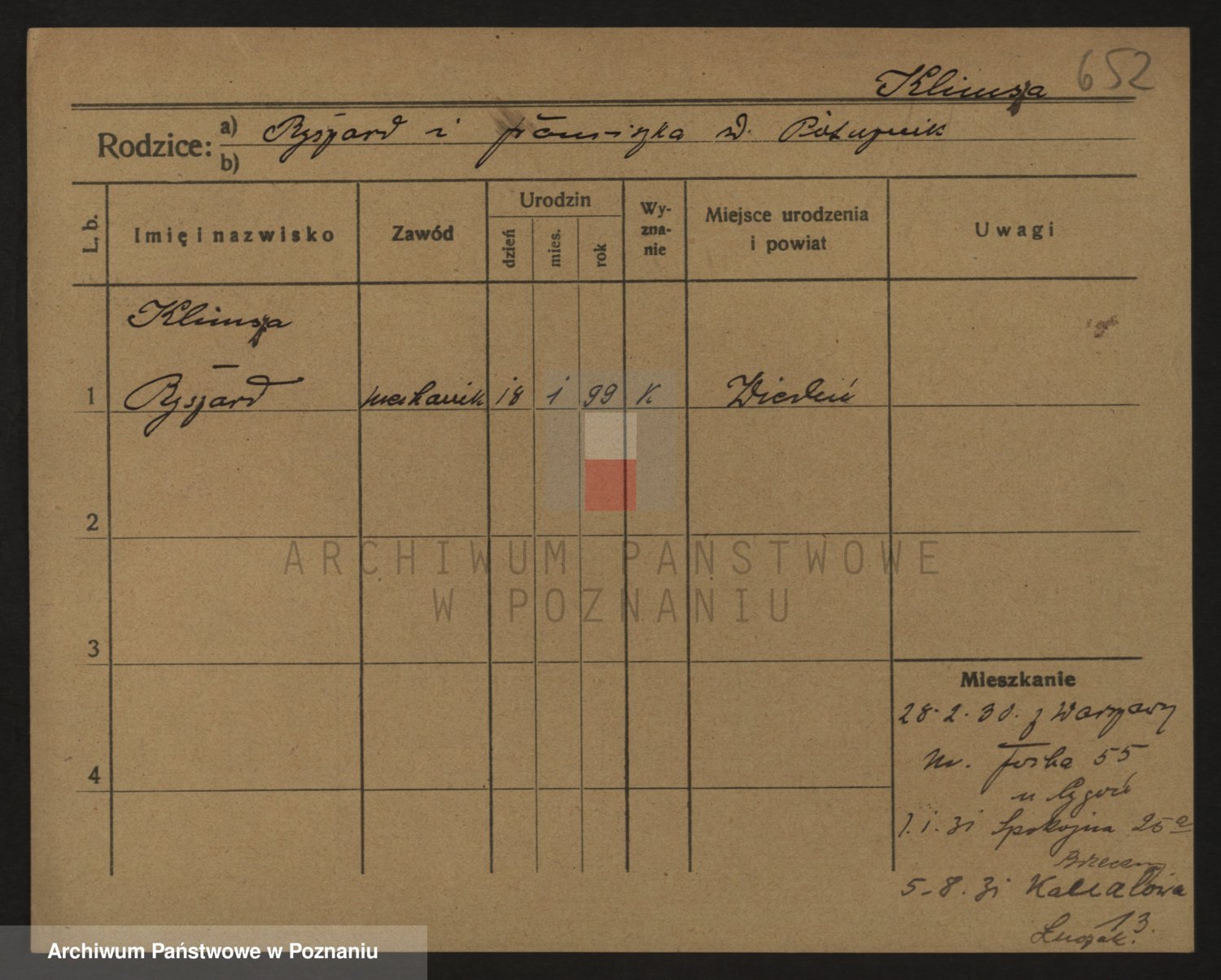 Podgląd karty osobowej dostępny jest po kliknięciu na nazwisko lub ikonkę karty. Można dokonywać powiększenia (ikony na górze) lub przechodzić między kolejnymi skanami (strzałki po bokach).