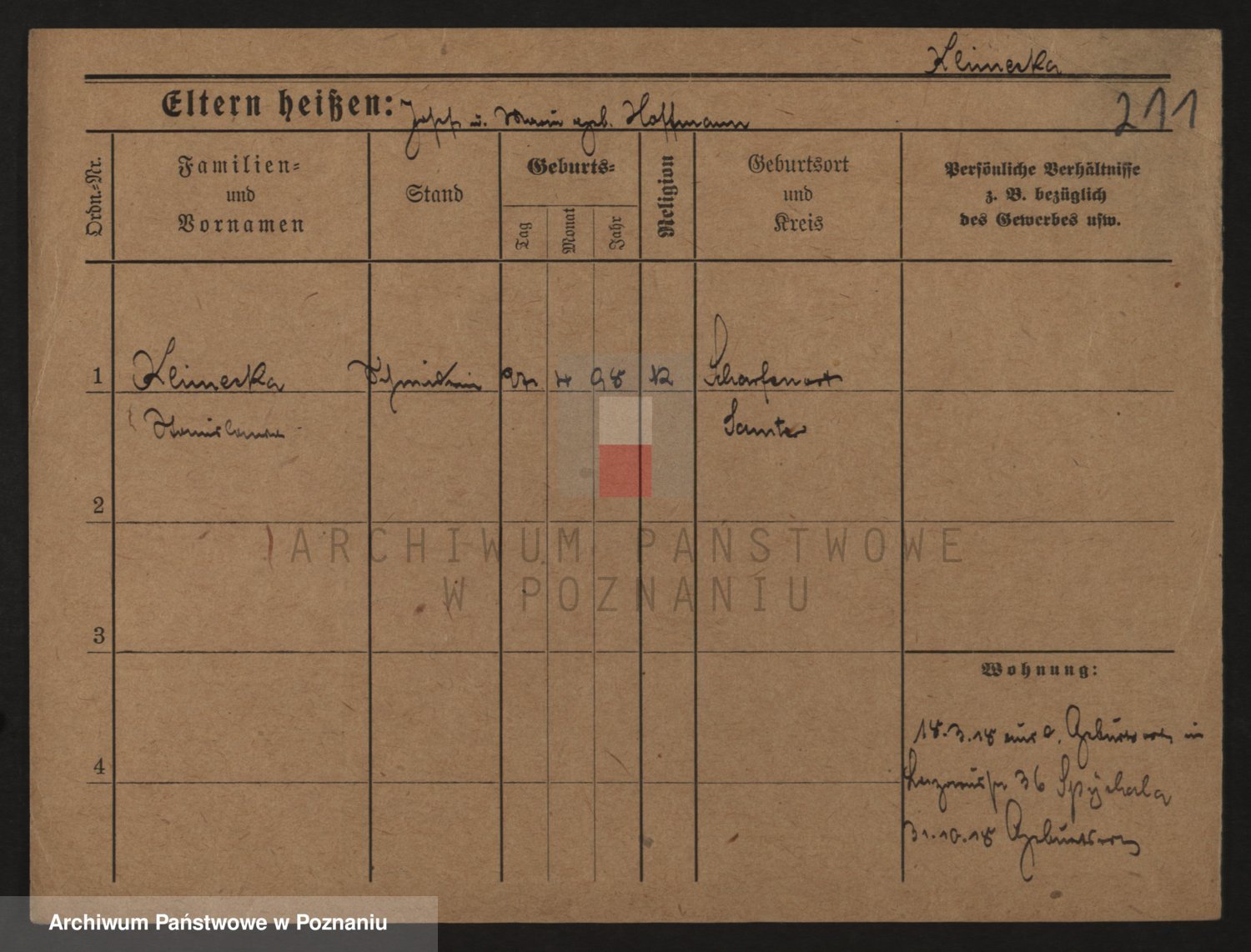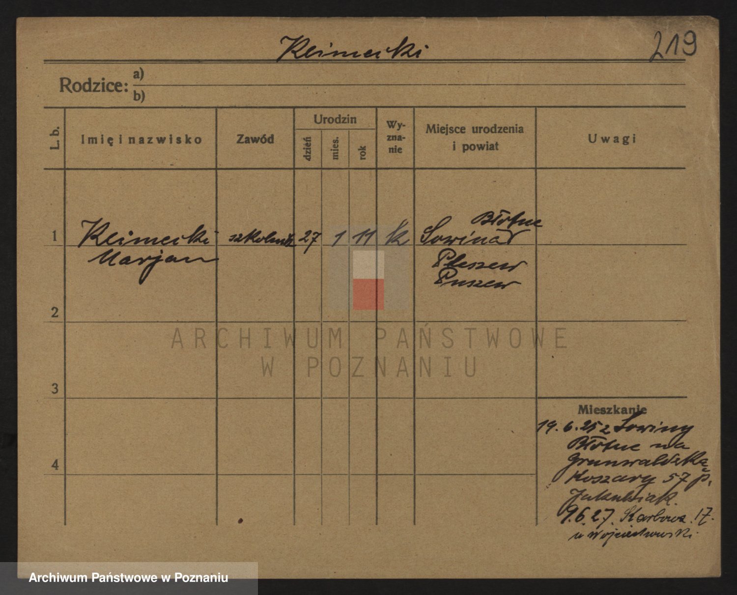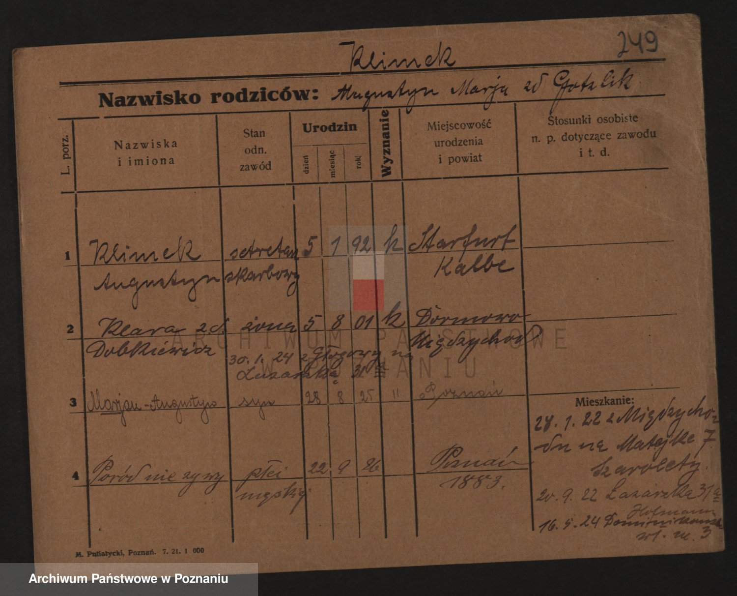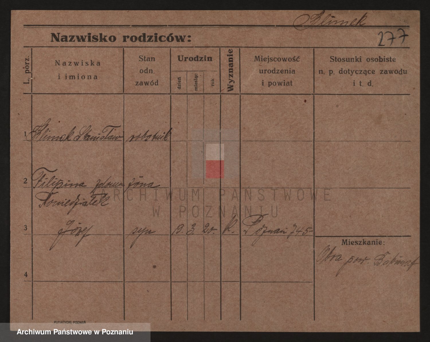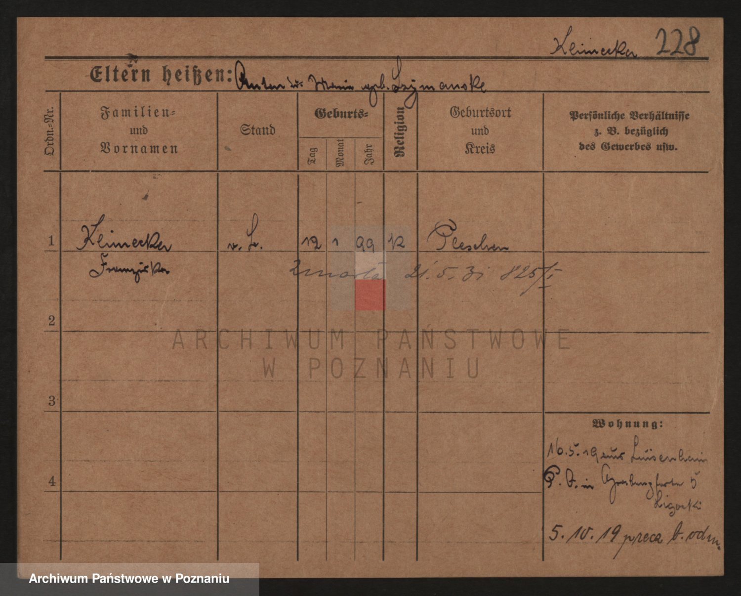 Podgląd karty osobowej dostępny jest po kliknięciu na nazwisko lub ikonkę karty. Można dokonywać powiększenia (ikony na górze) lub przechodzić między kolejnymi skanami (strzałki po bokach).