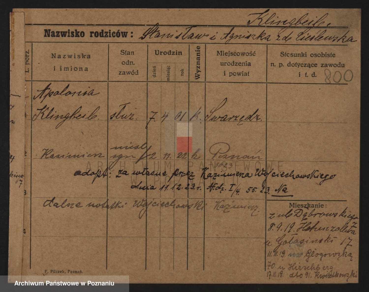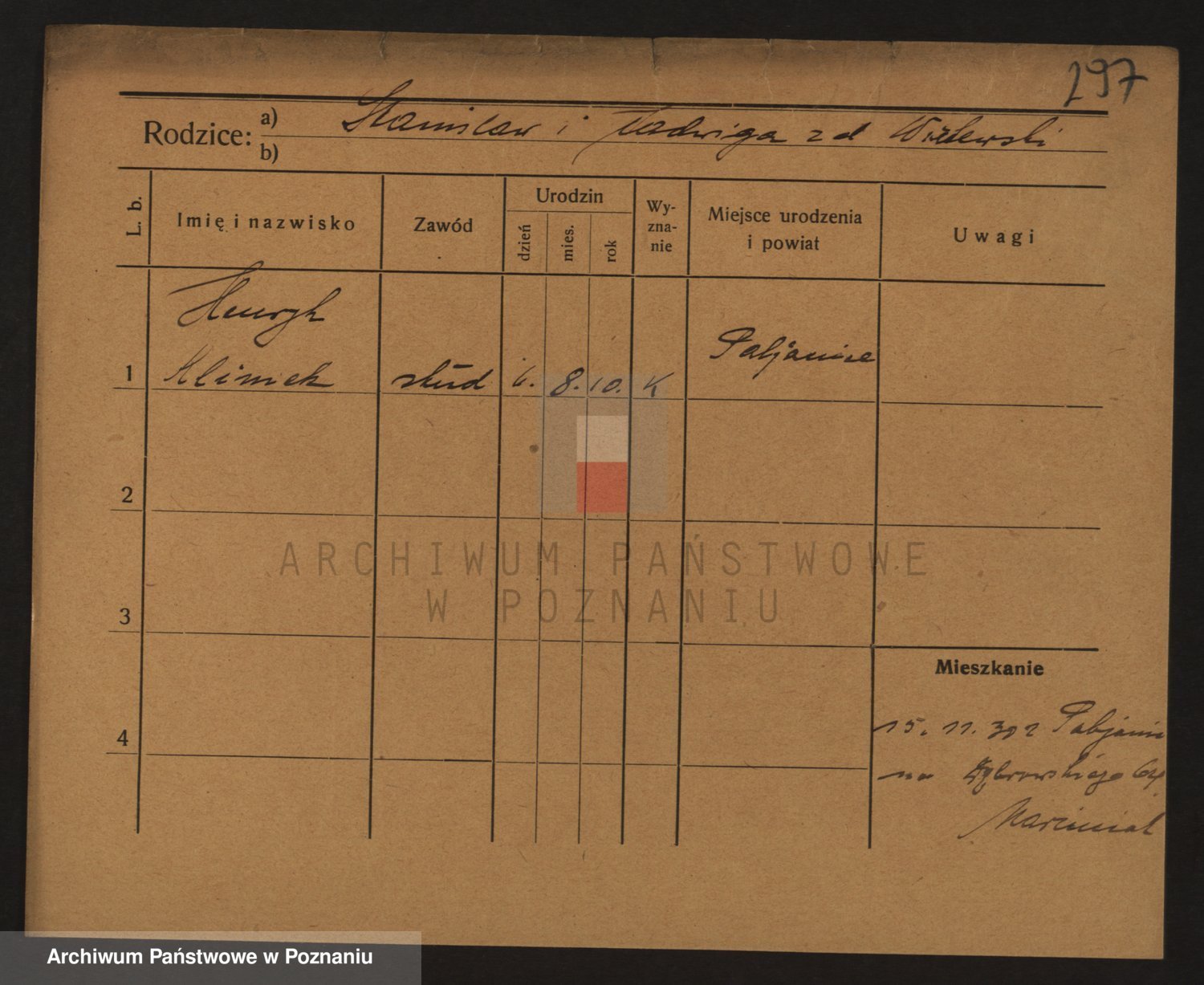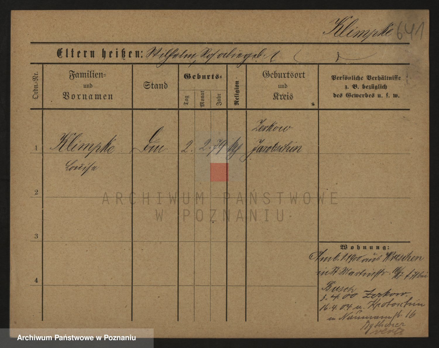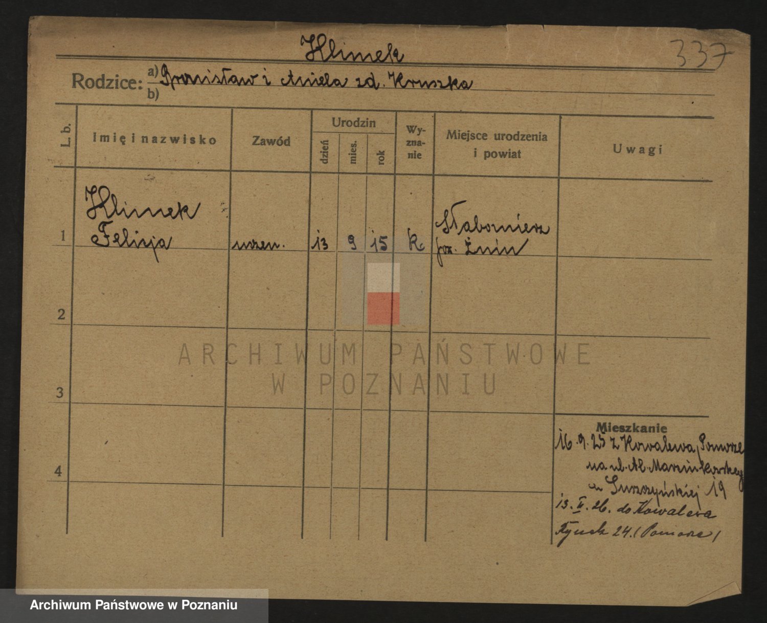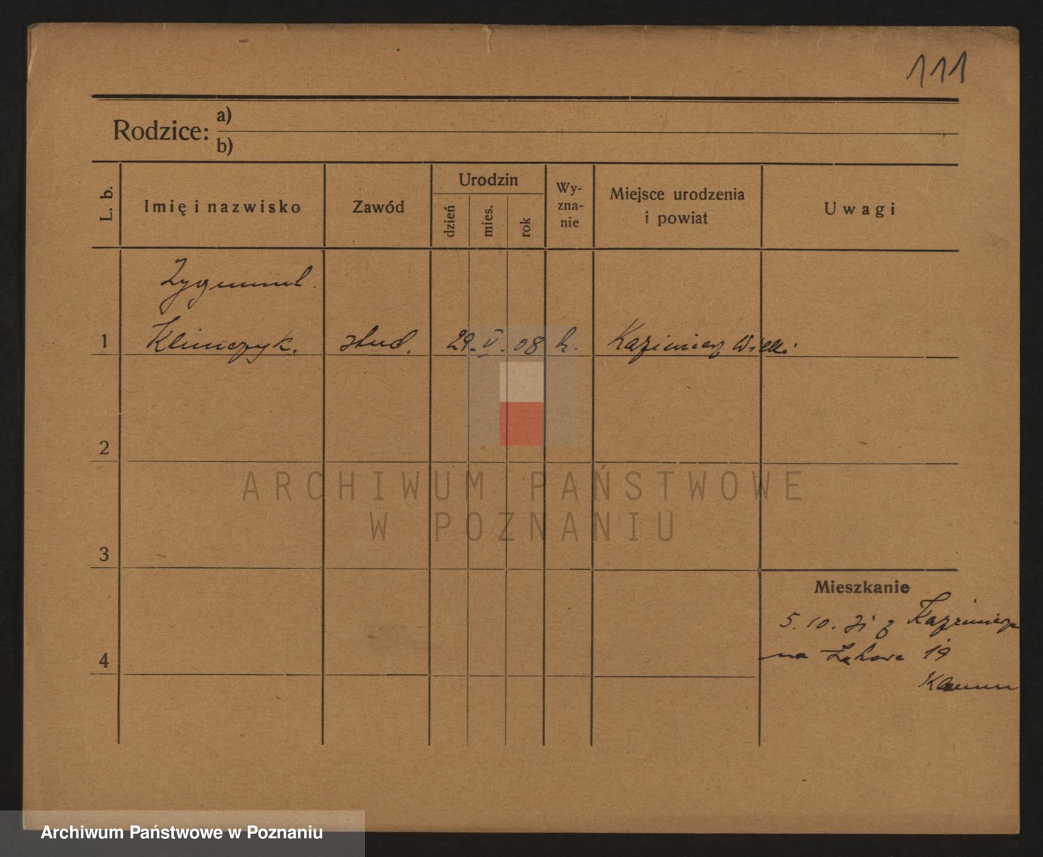 Podgląd karty osobowej dostępny jest po kliknięciu na nazwisko lub ikonkę karty. Można dokonywać powiększenia (ikony na górze) lub przechodzić między kolejnymi skanami (strzałki po bokach).