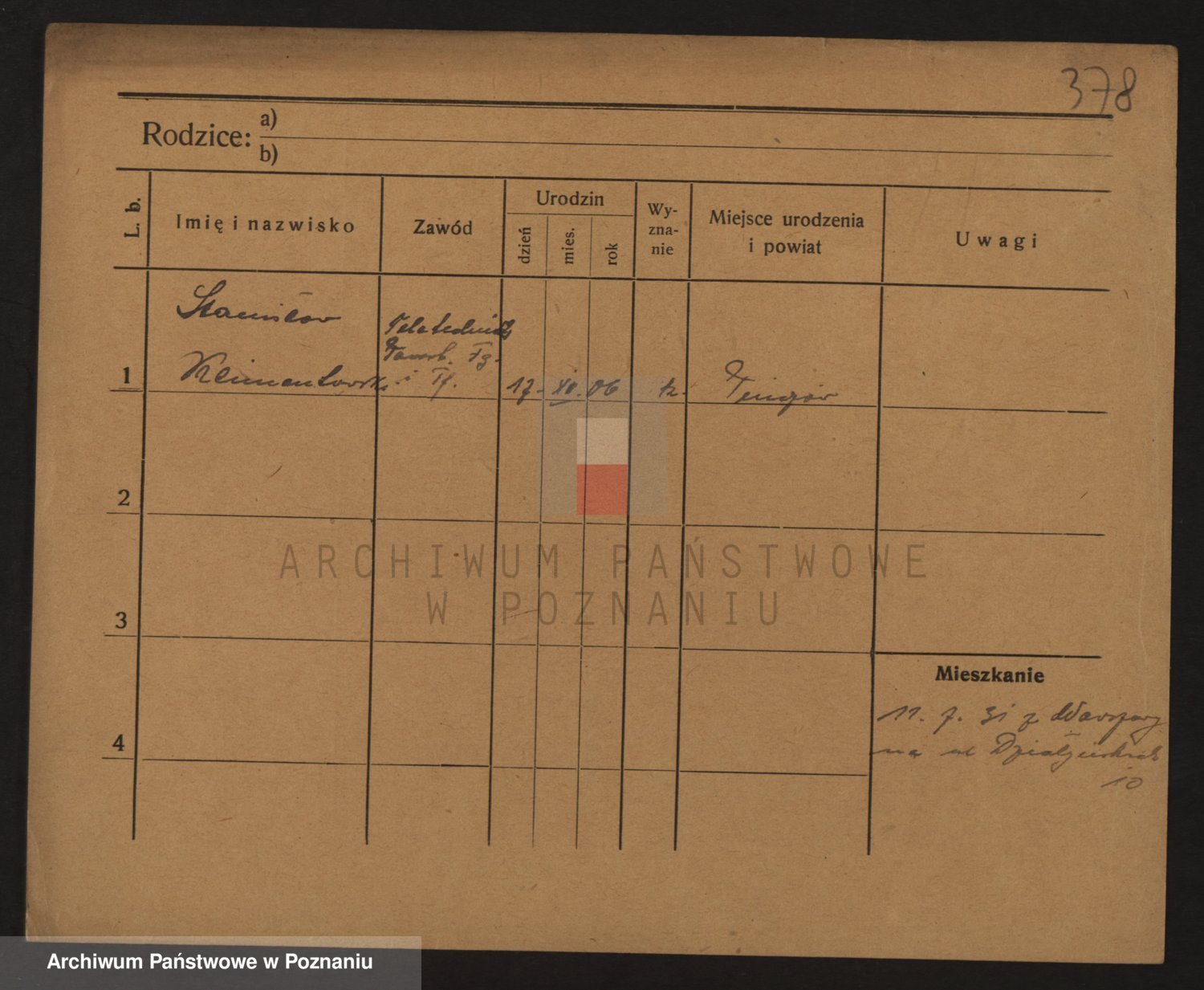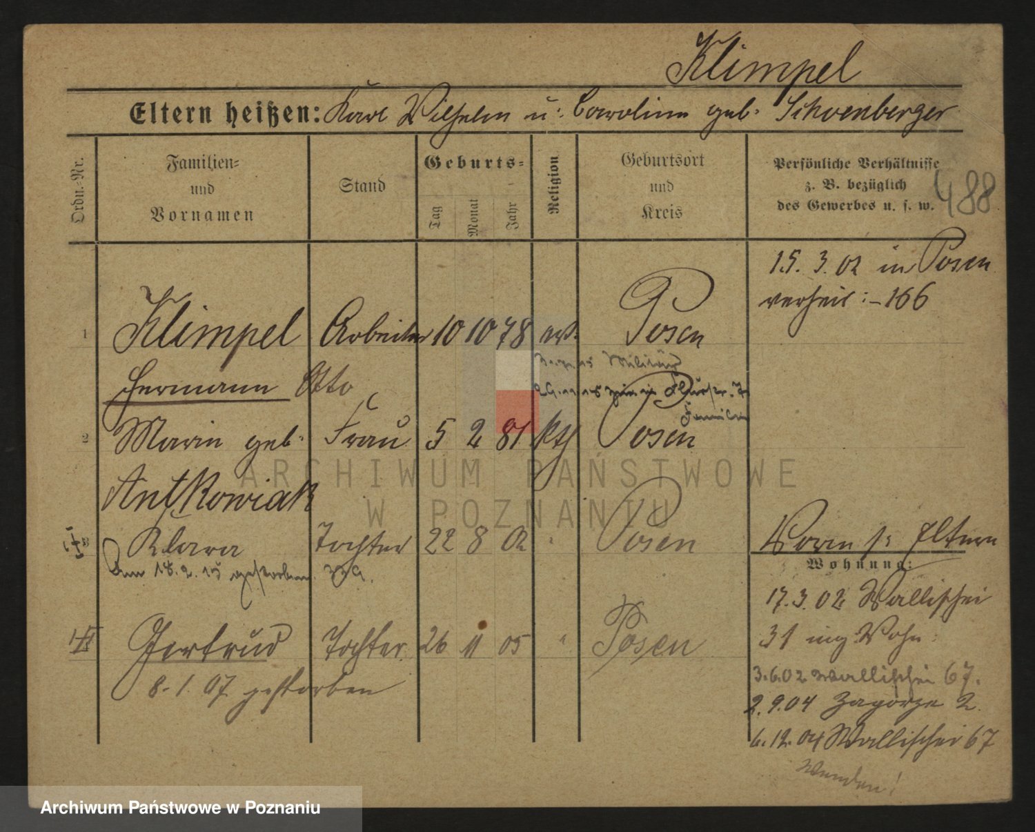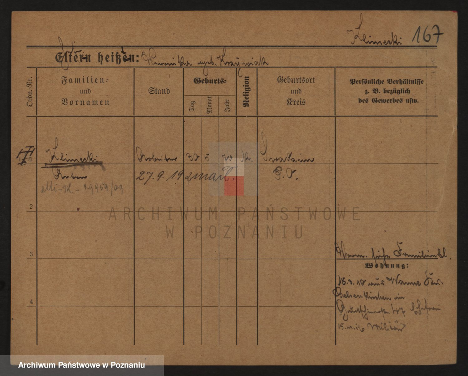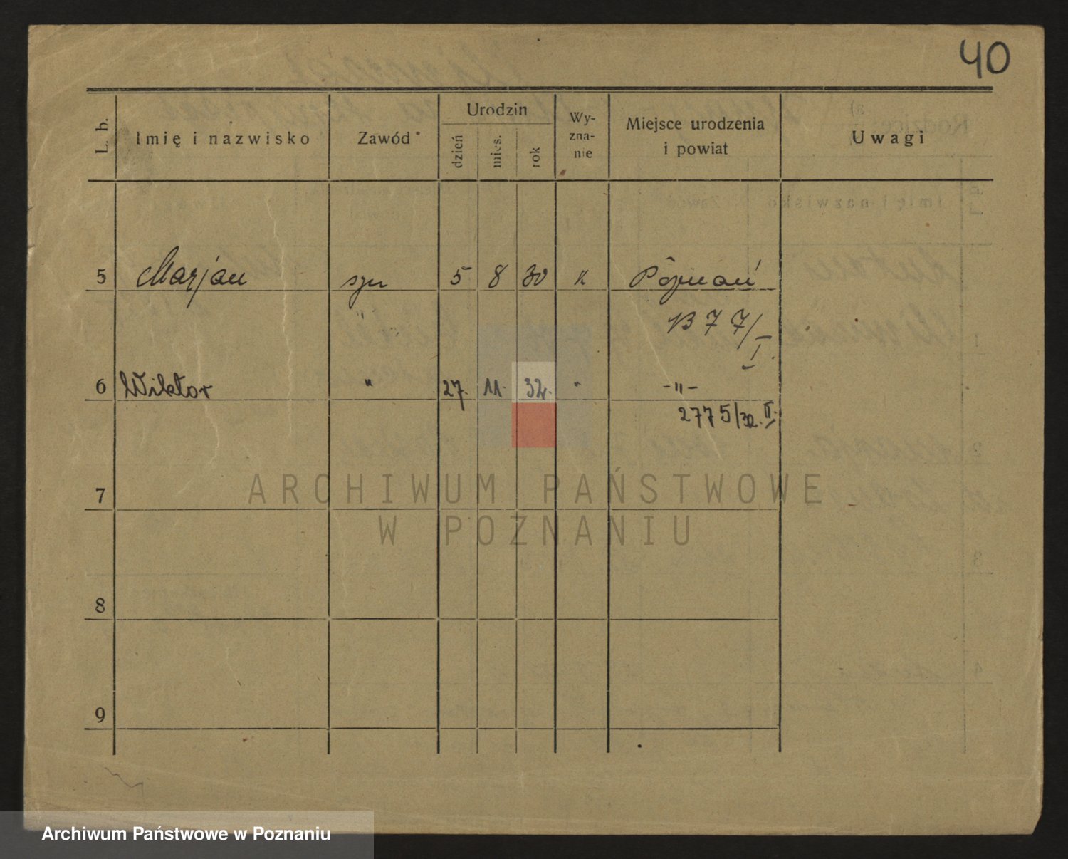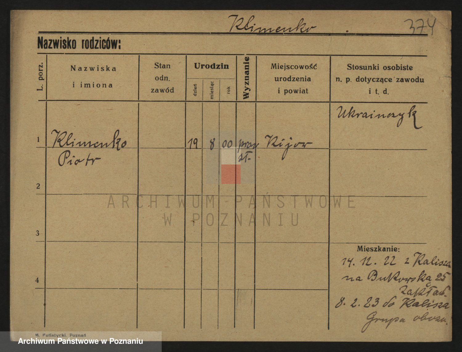 Podgląd karty osobowej dostępny jest po kliknięciu na nazwisko lub ikonkę karty. Można dokonywać powiększenia (ikony na górze) lub przechodzić między kolejnymi skanami (strzałki po bokach).