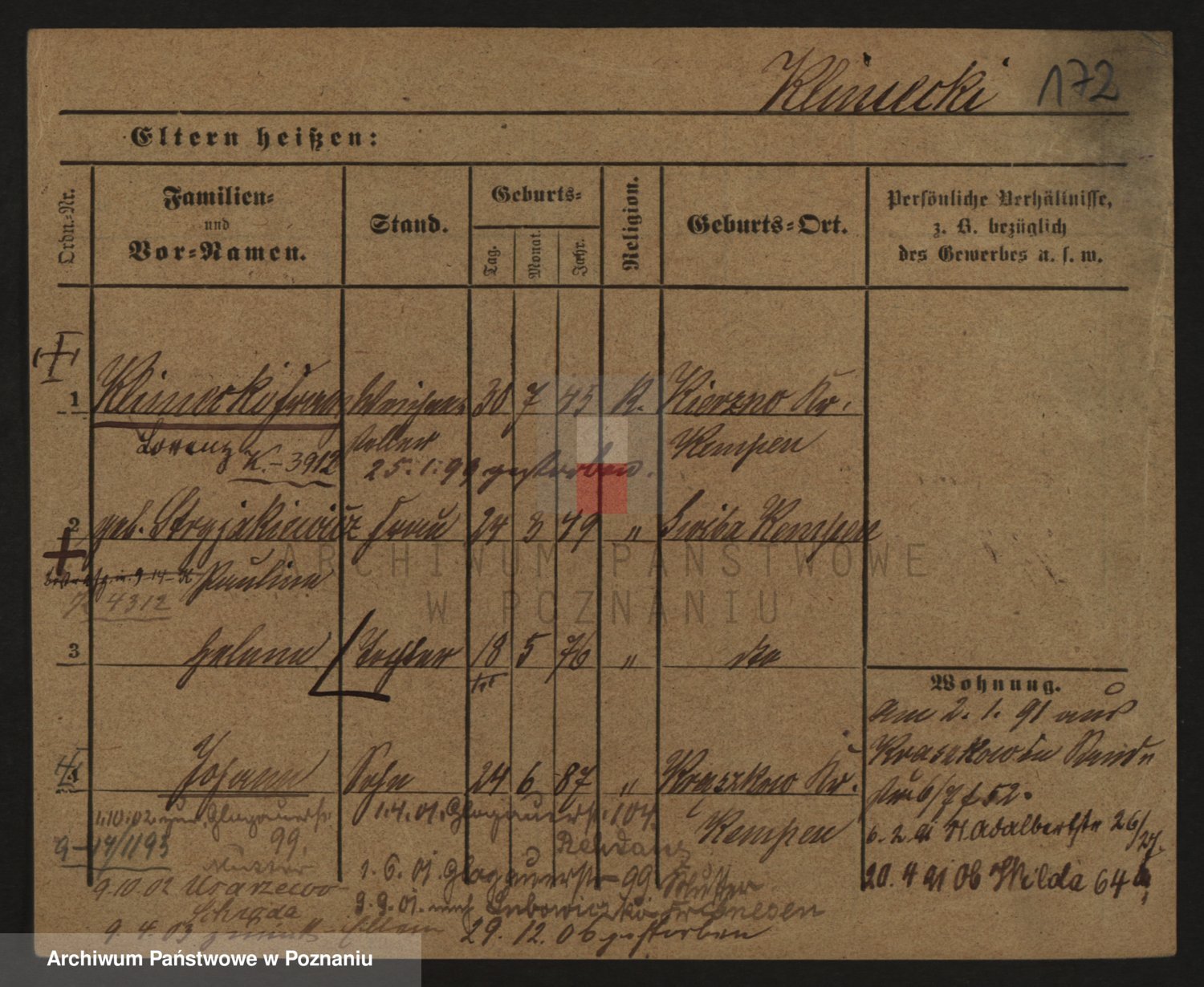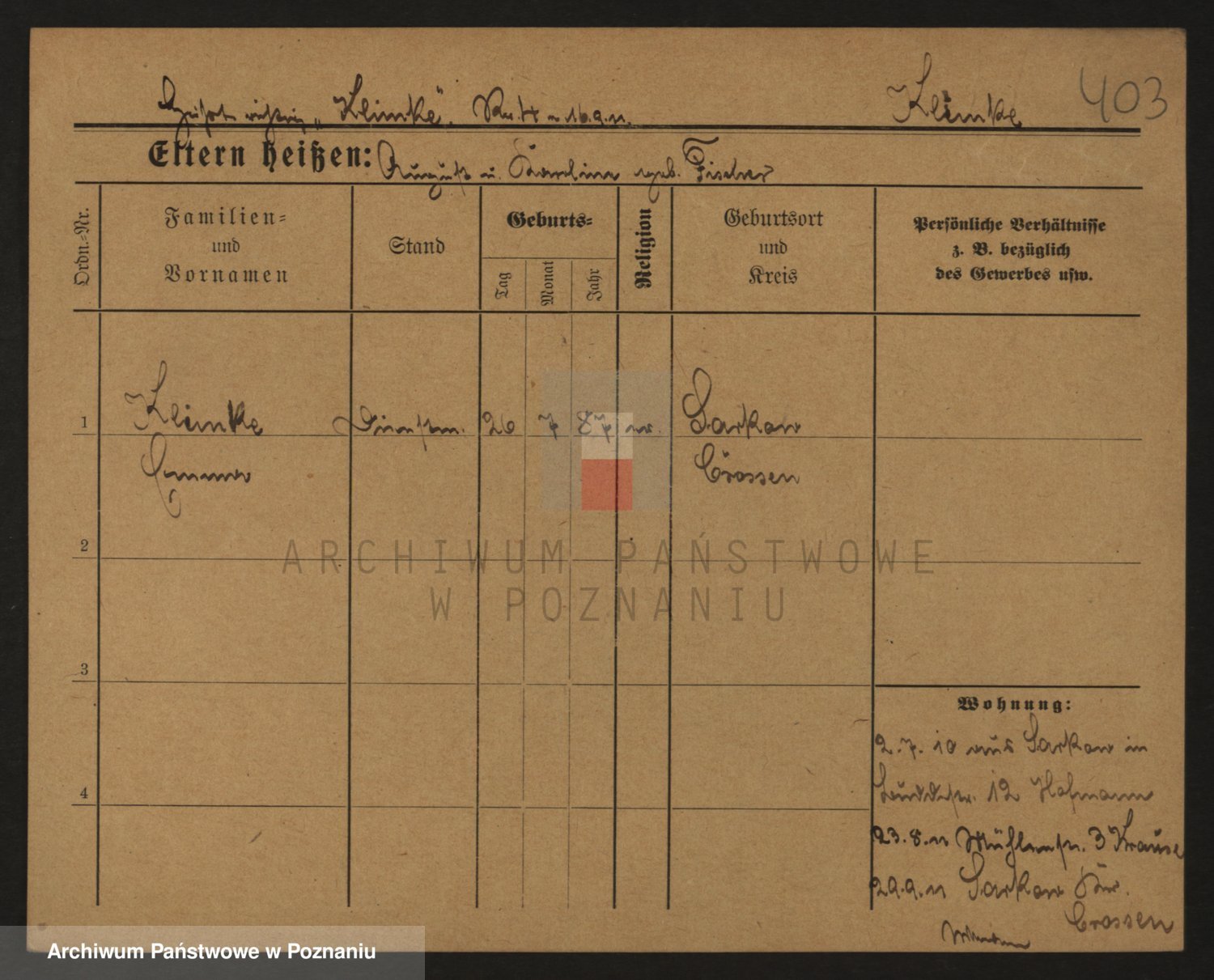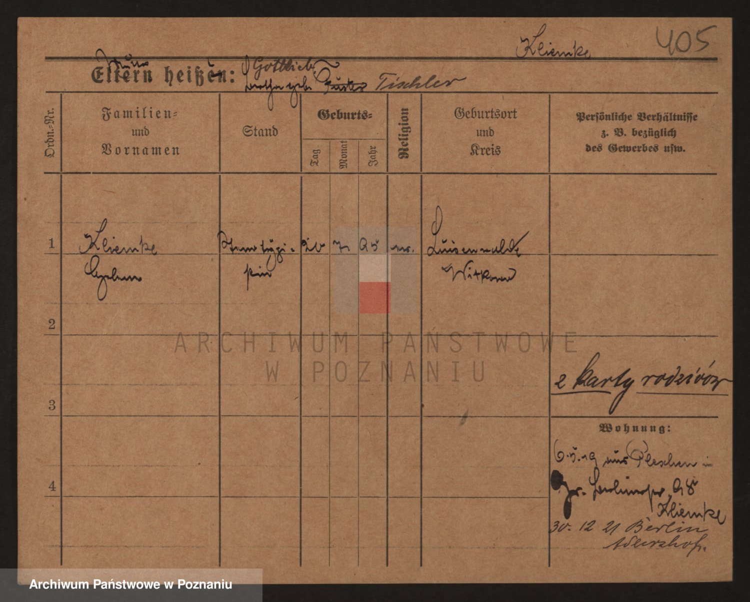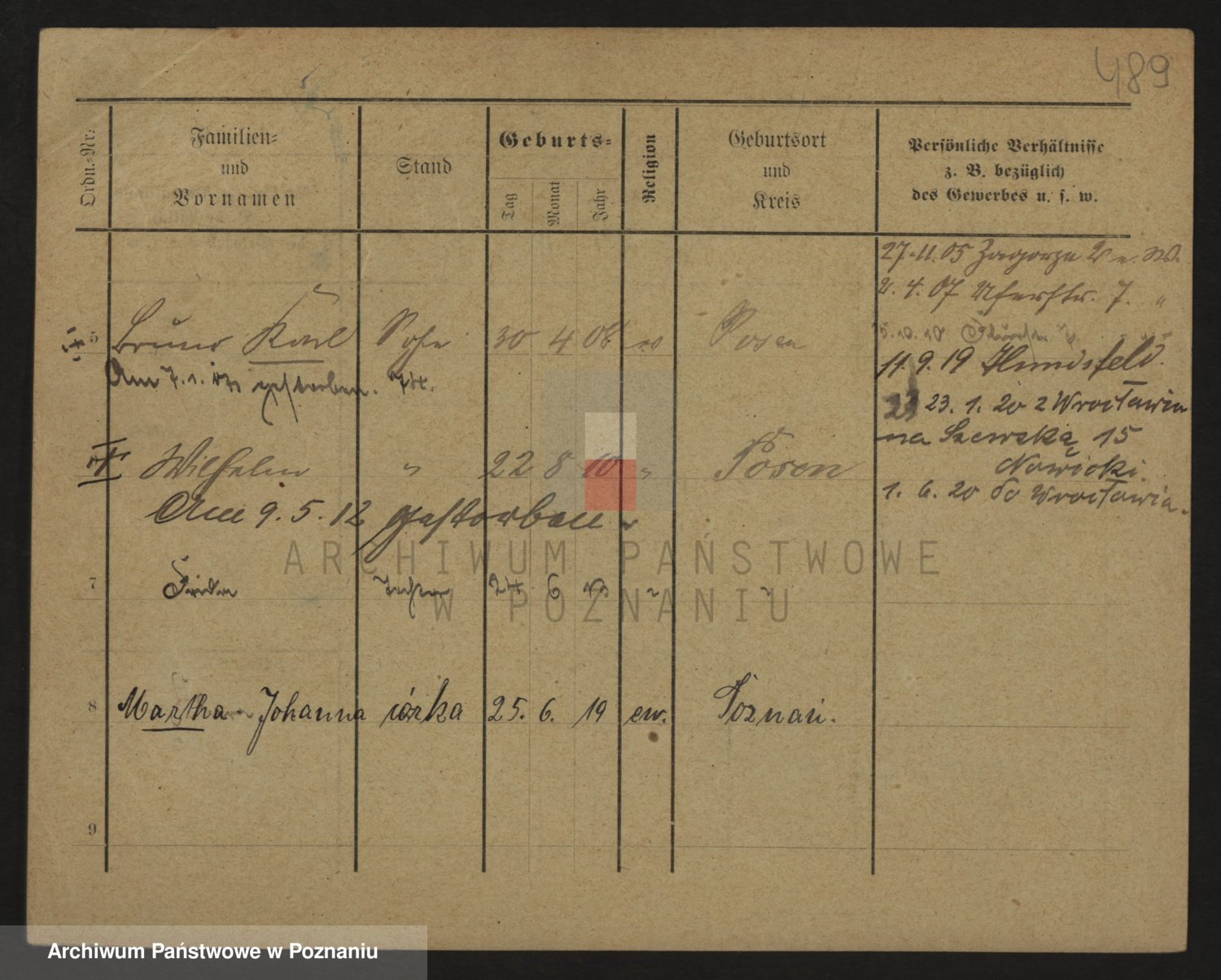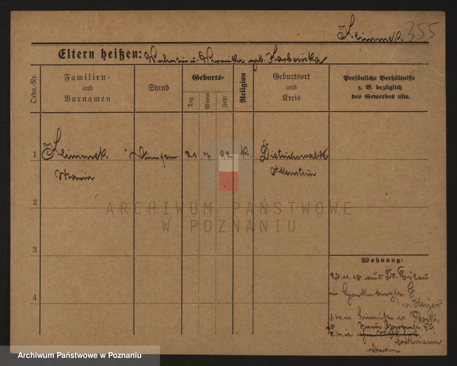 Podgląd karty osobowej dostępny jest po kliknięciu na nazwisko lub ikonkę karty. Można dokonywać powiększenia (ikony na górze) lub przechodzić między kolejnymi skanami (strzałki po bokach).