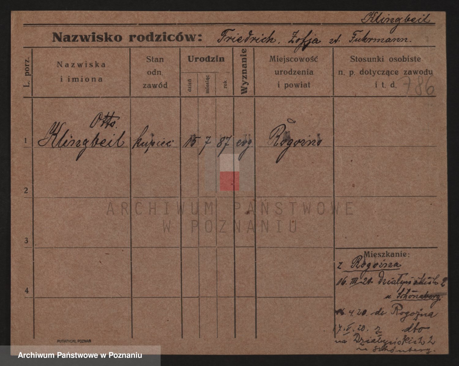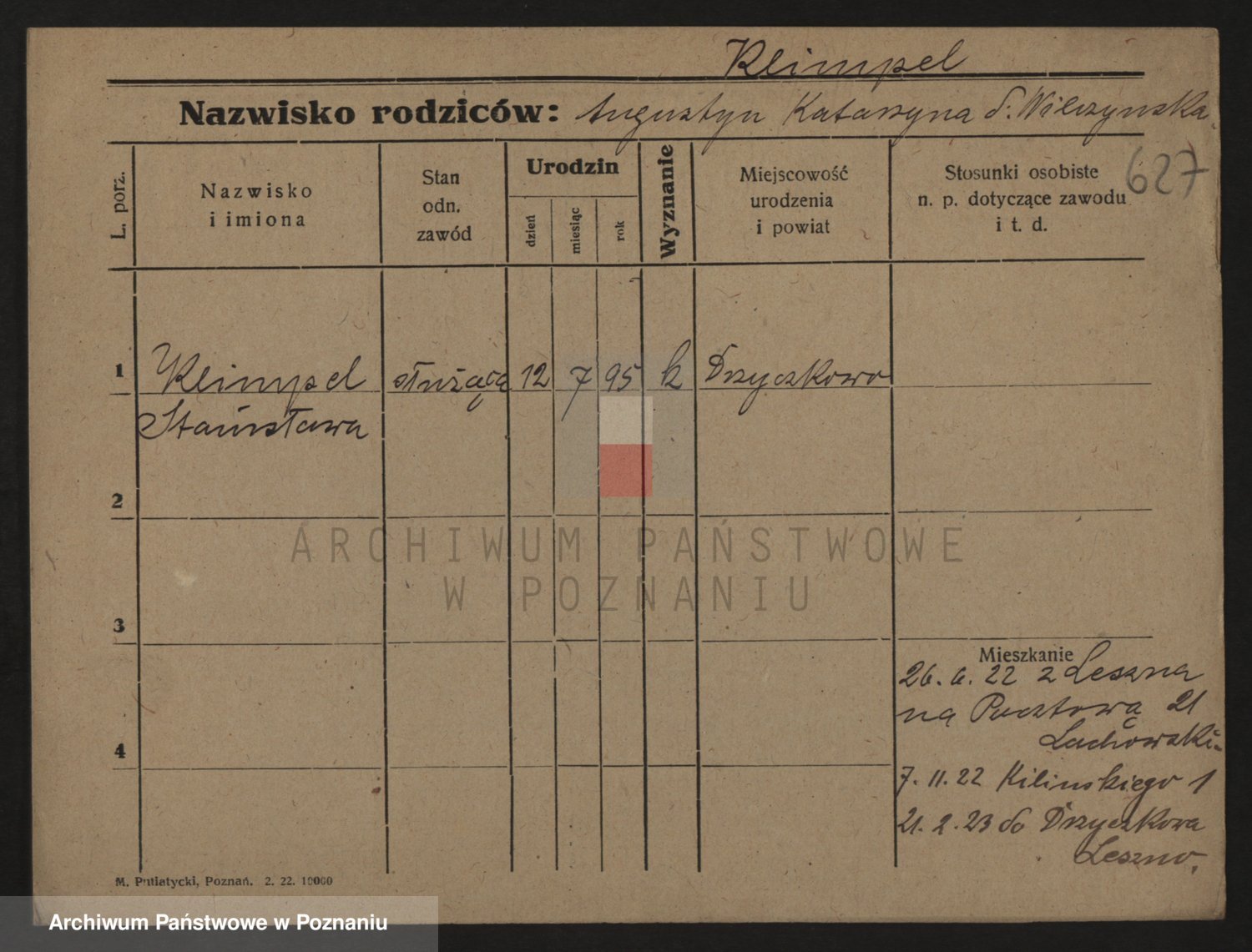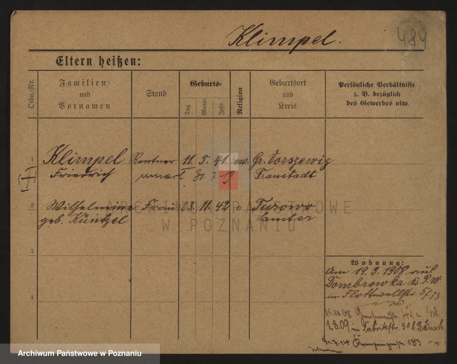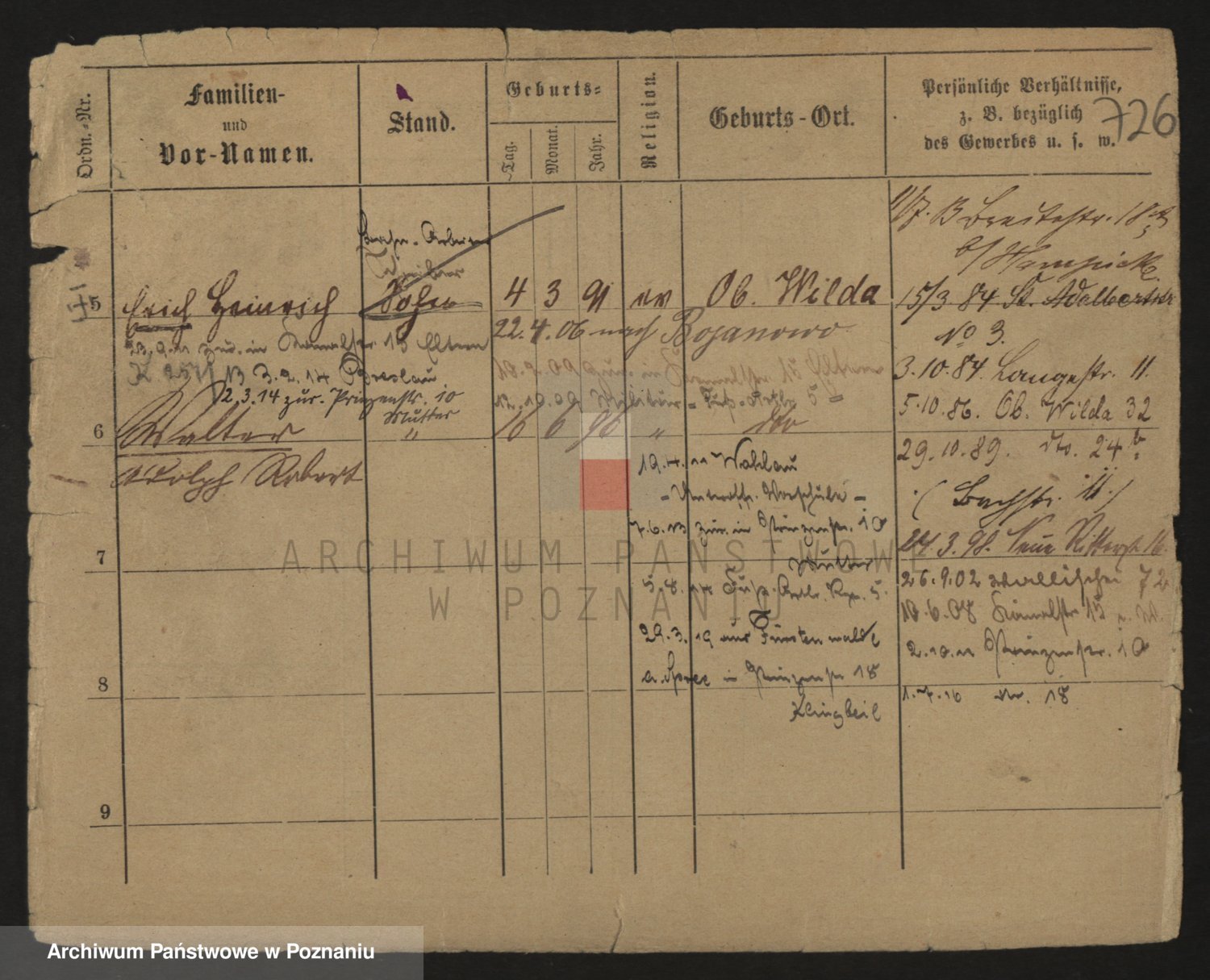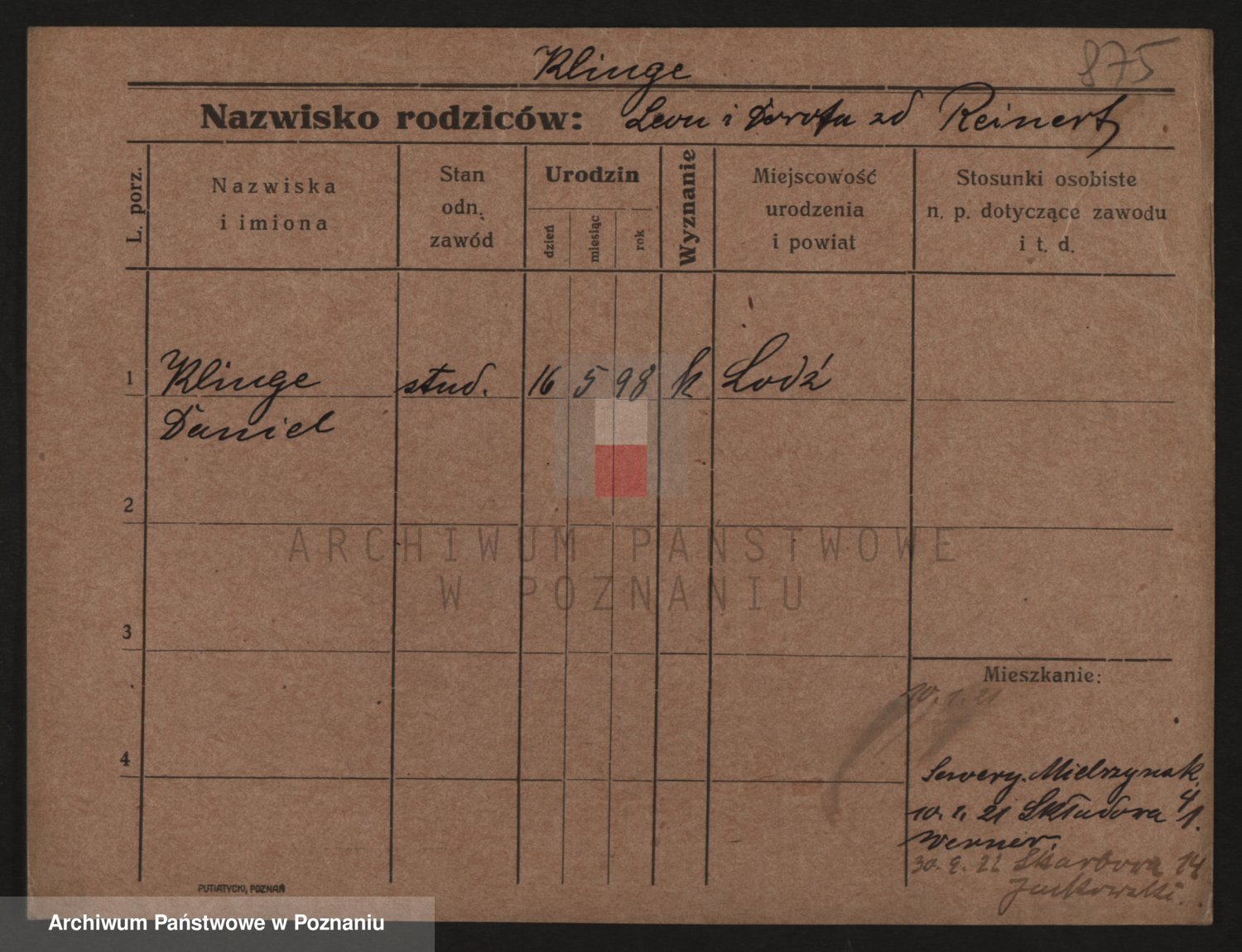 Podgląd karty osobowej dostępny jest po kliknięciu na nazwisko lub ikonkę karty. Można dokonywać powiększenia (ikony na górze) lub przechodzić między kolejnymi skanami (strzałki po bokach).