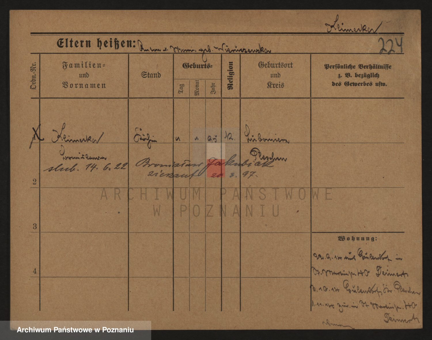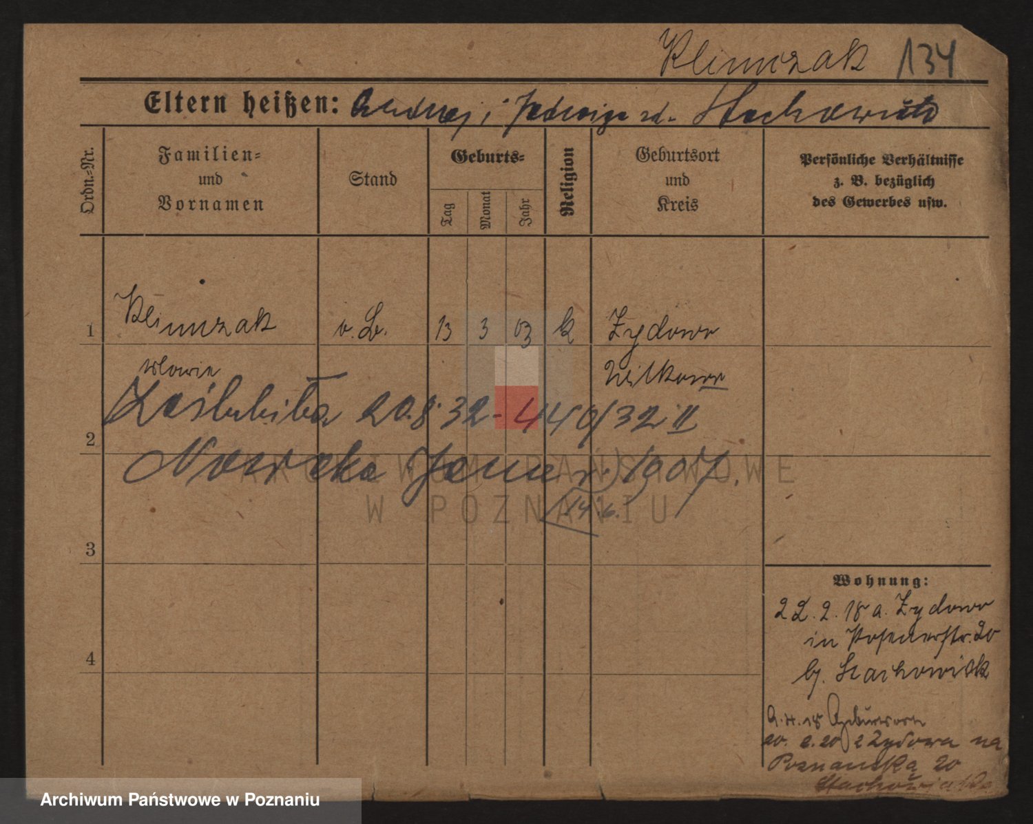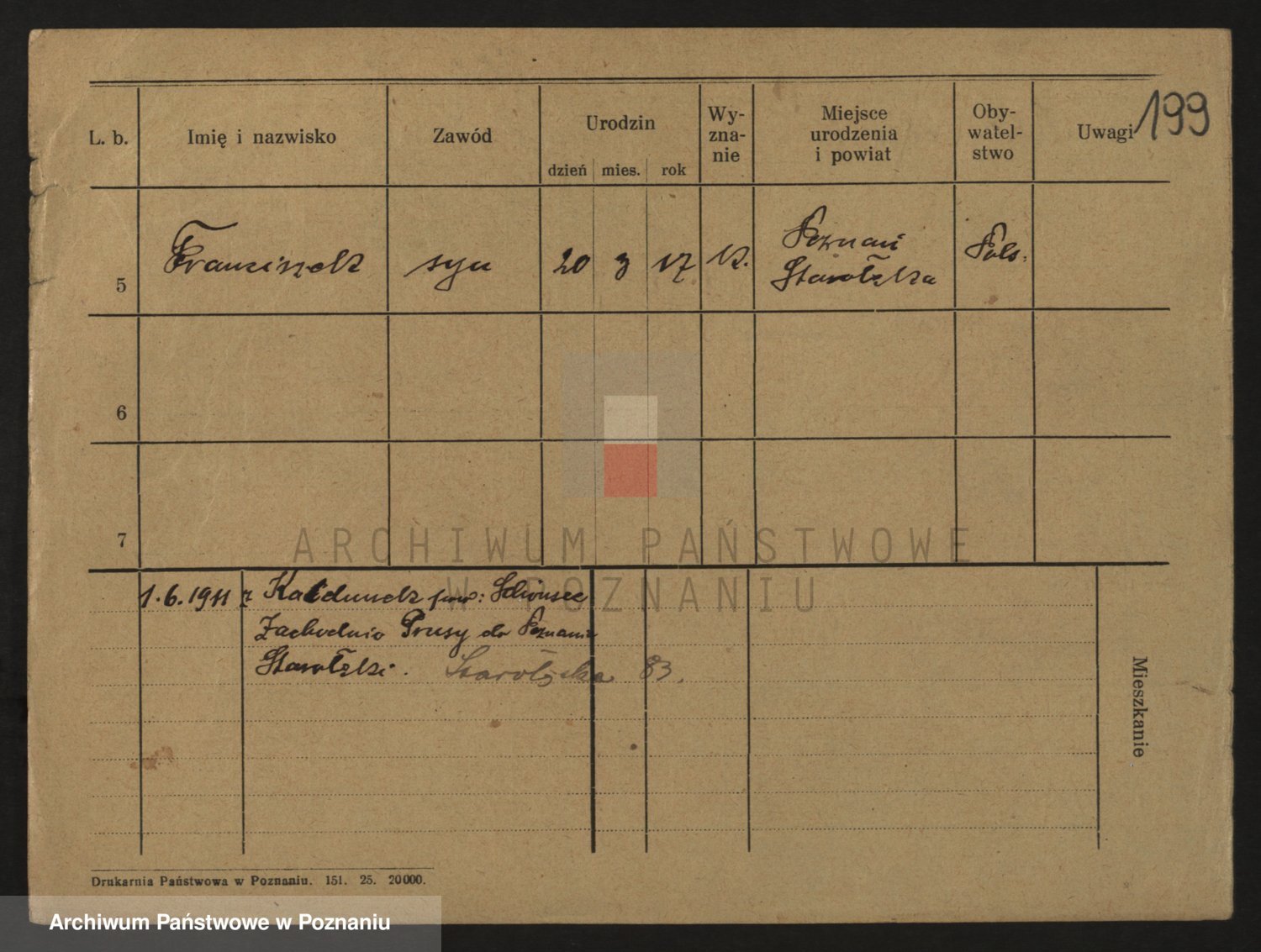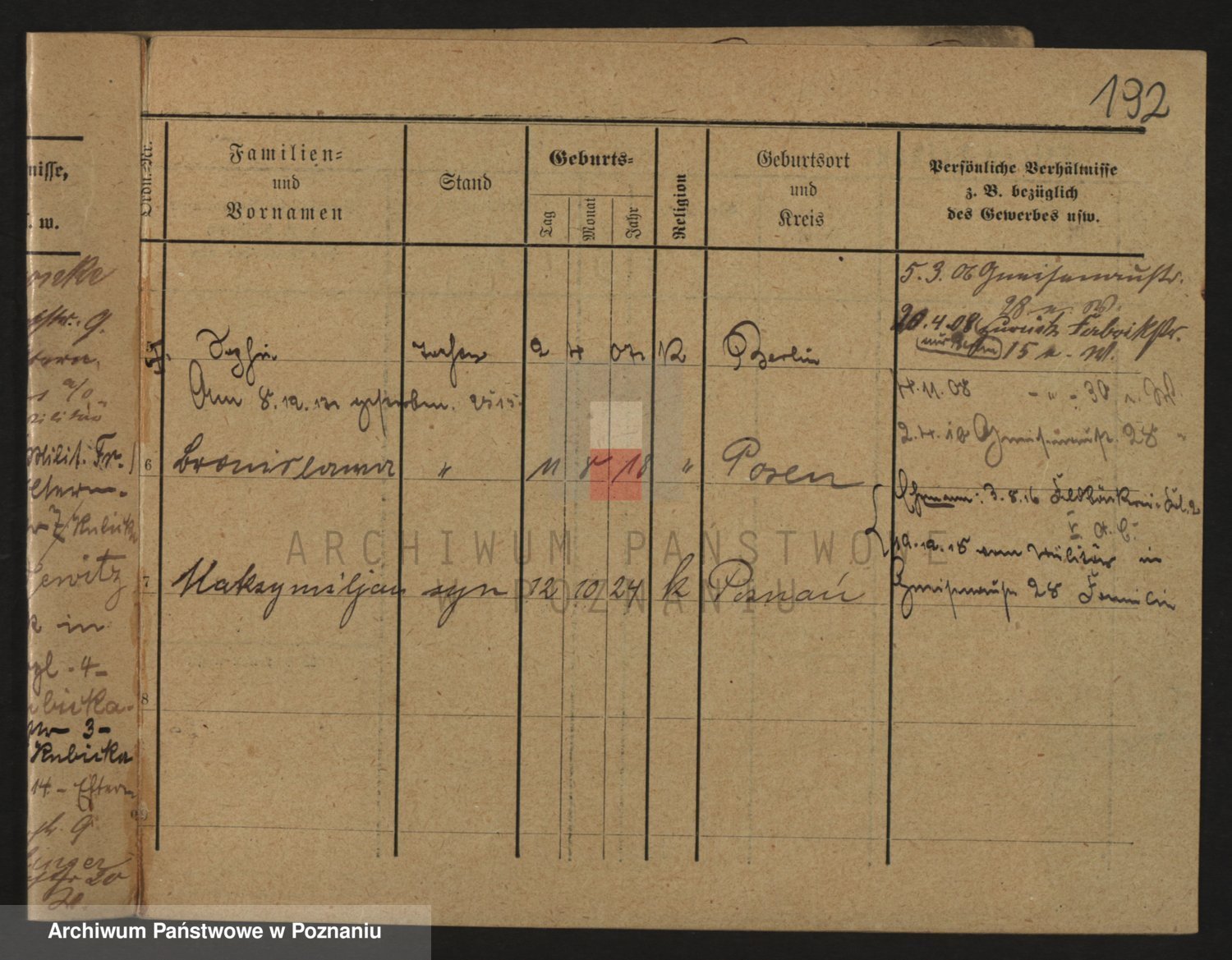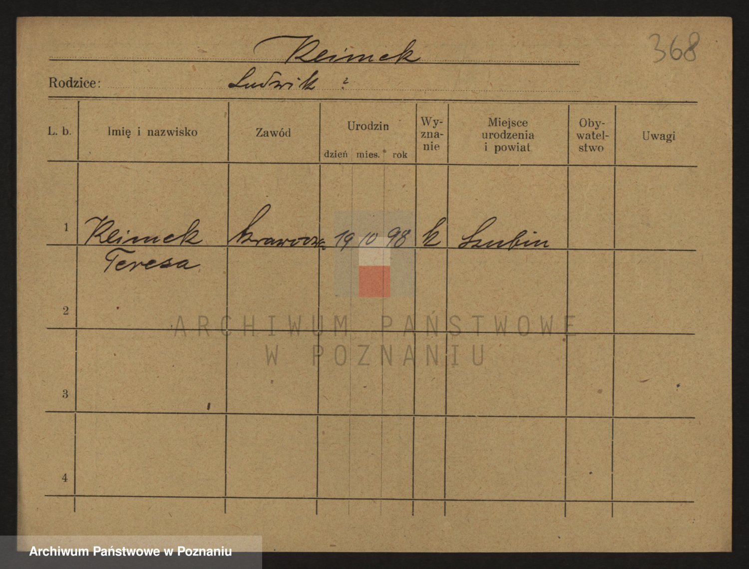 Podgląd karty osobowej dostępny jest po kliknięciu na nazwisko lub ikonkę karty. Można dokonywać powiększenia (ikony na górze) lub przechodzić między kolejnymi skanami (strzałki po bokach).