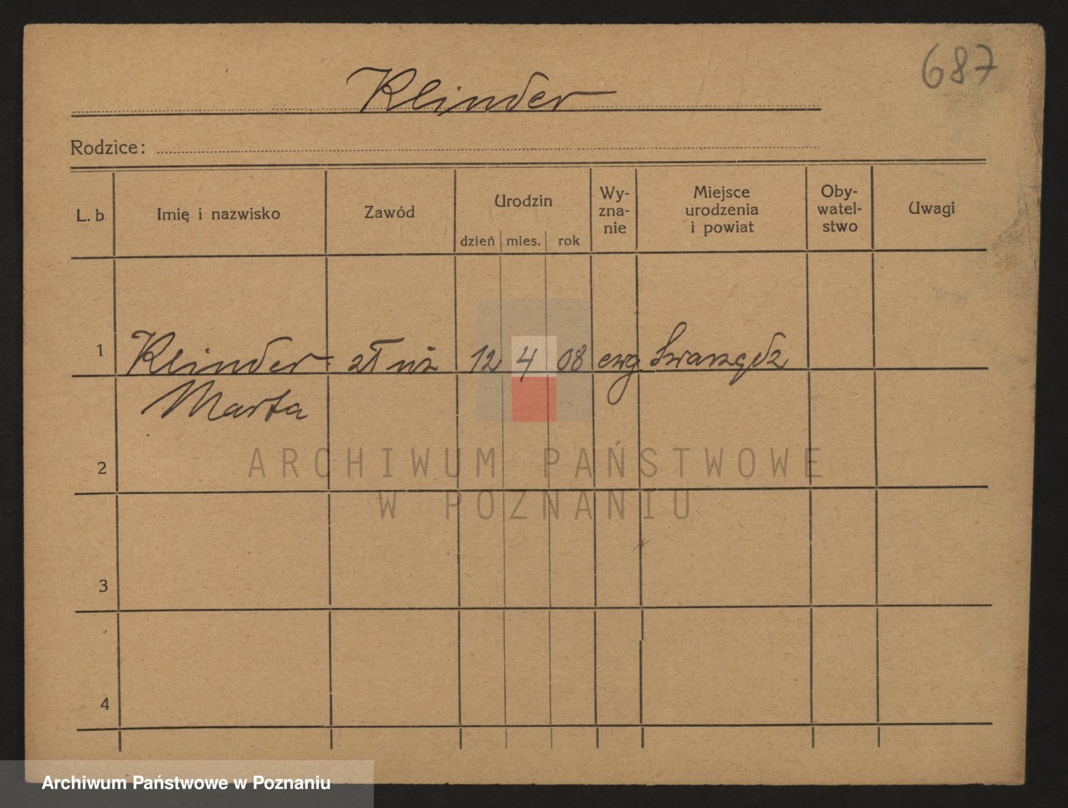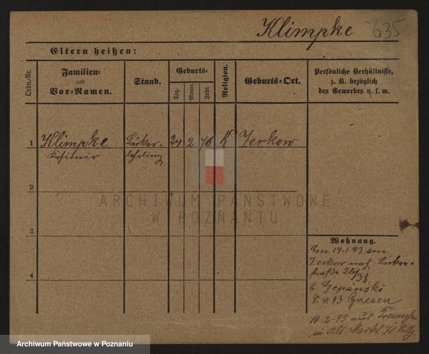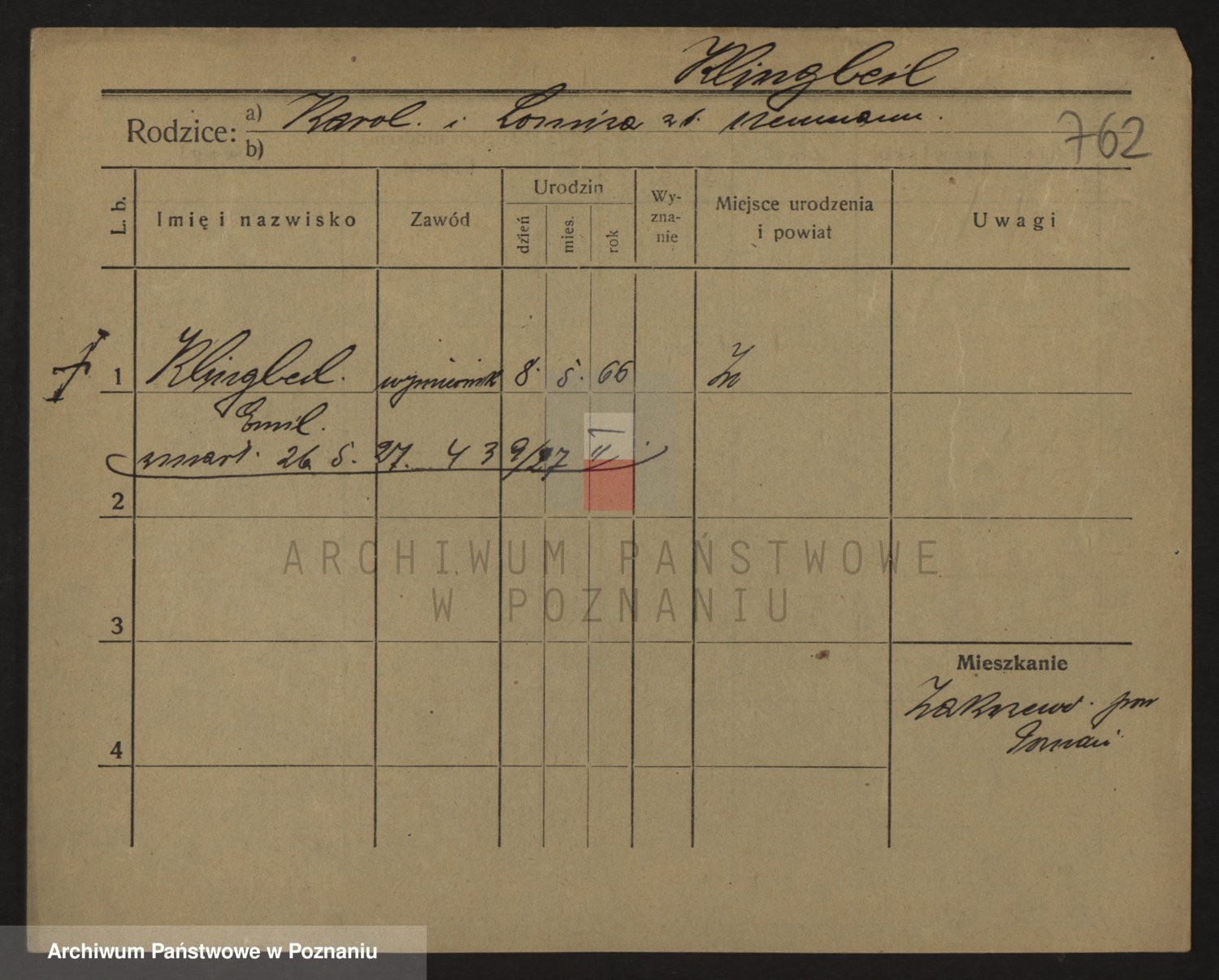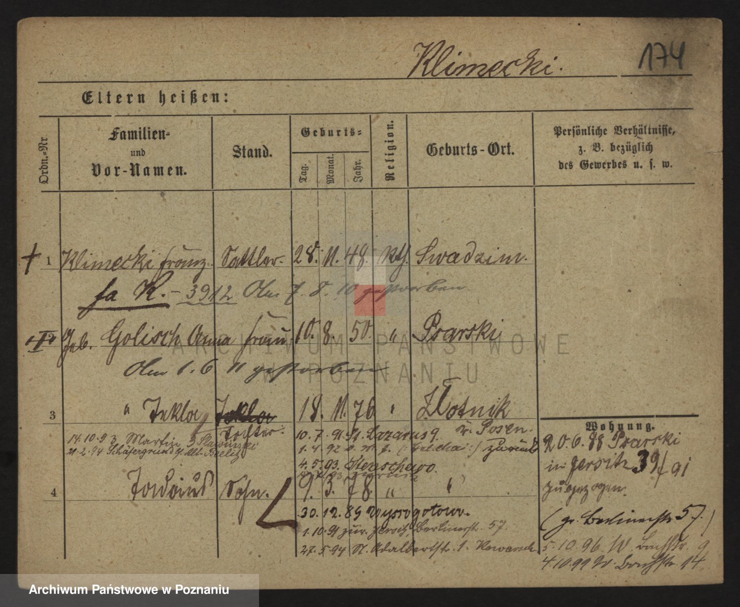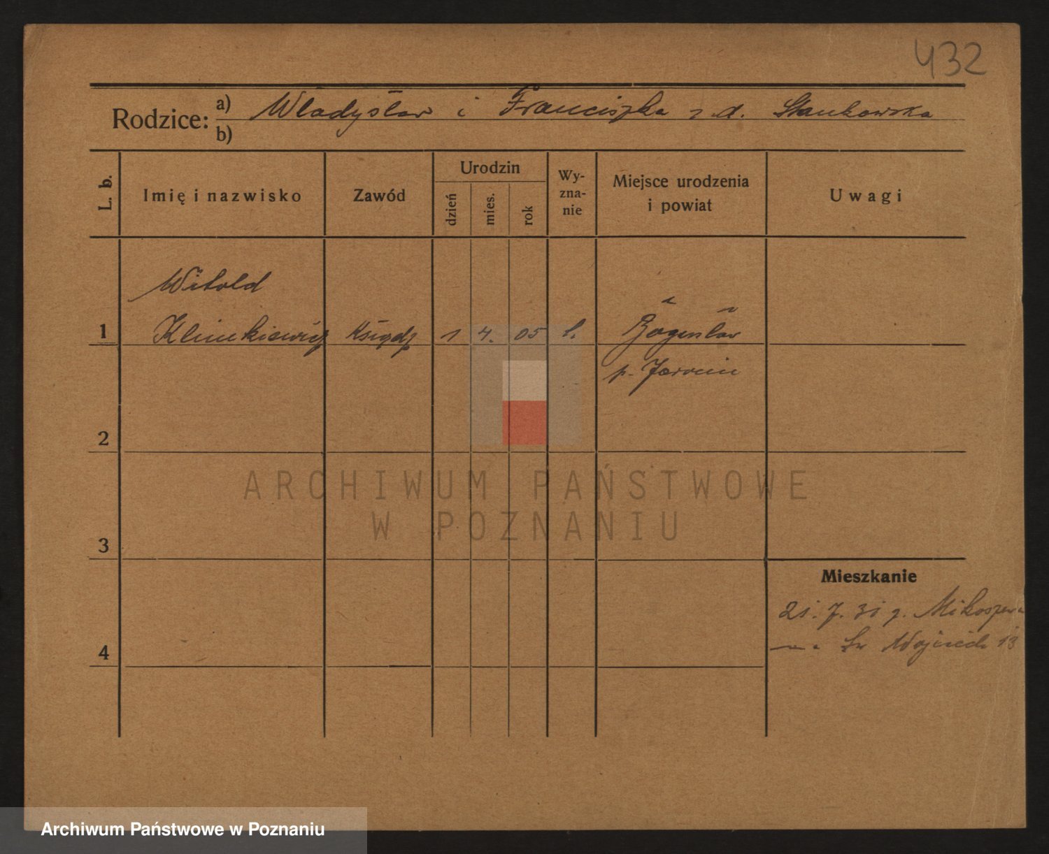 Podgląd karty osobowej dostępny jest po kliknięciu na nazwisko lub ikonkę karty. Można dokonywać powiększenia (ikony na górze) lub przechodzić między kolejnymi skanami (strzałki po bokach).