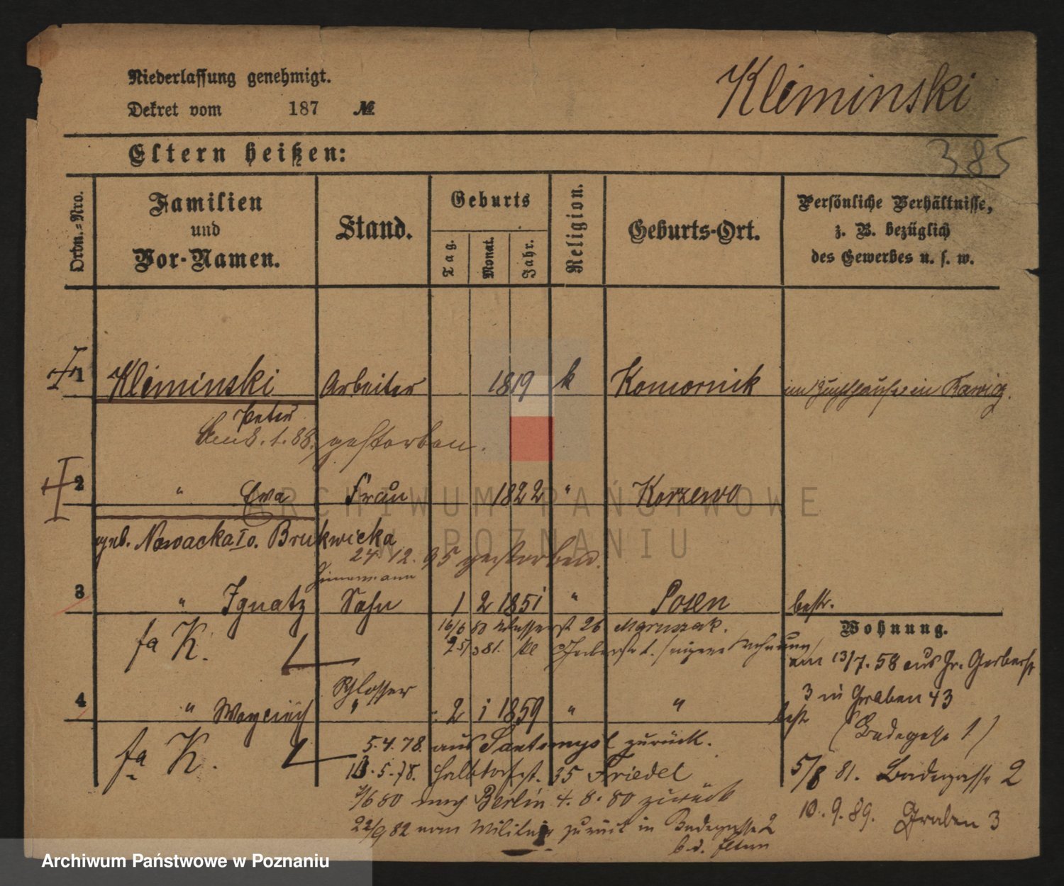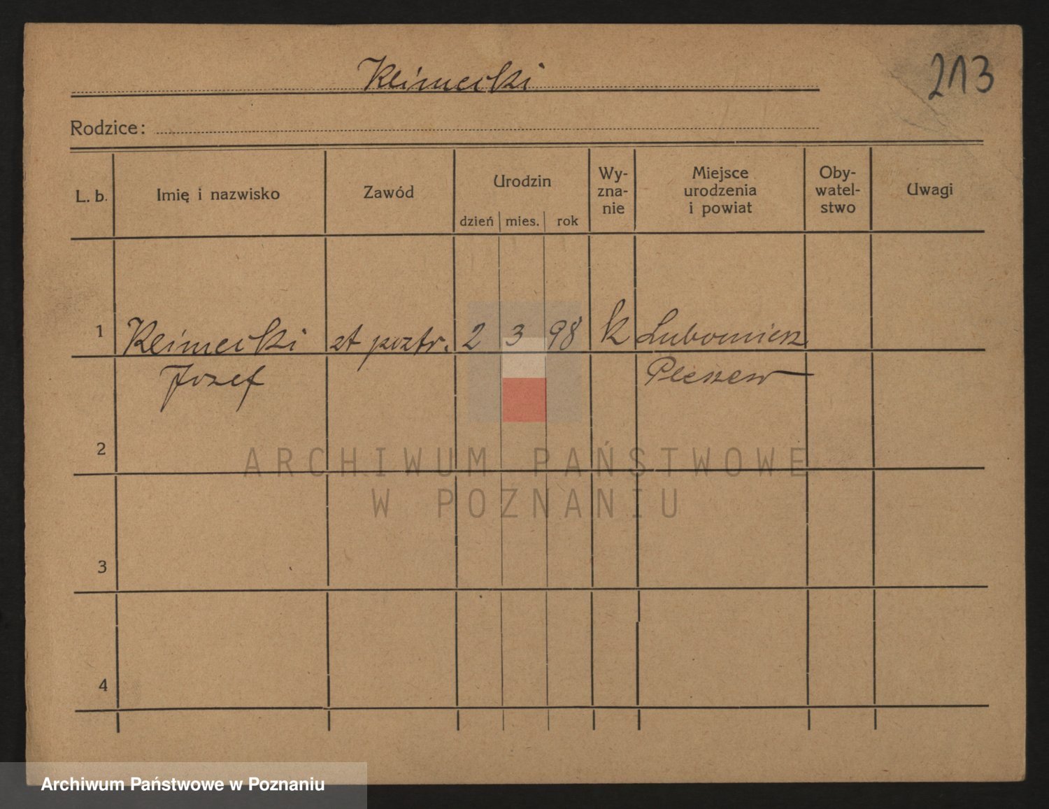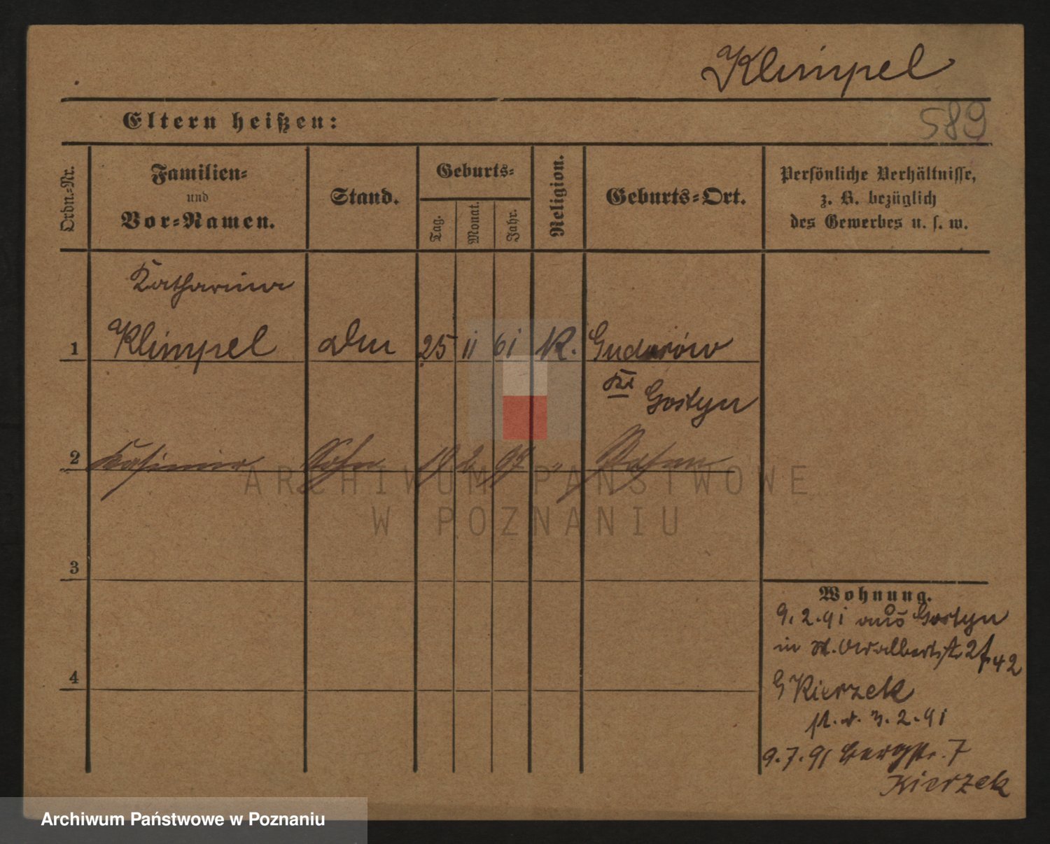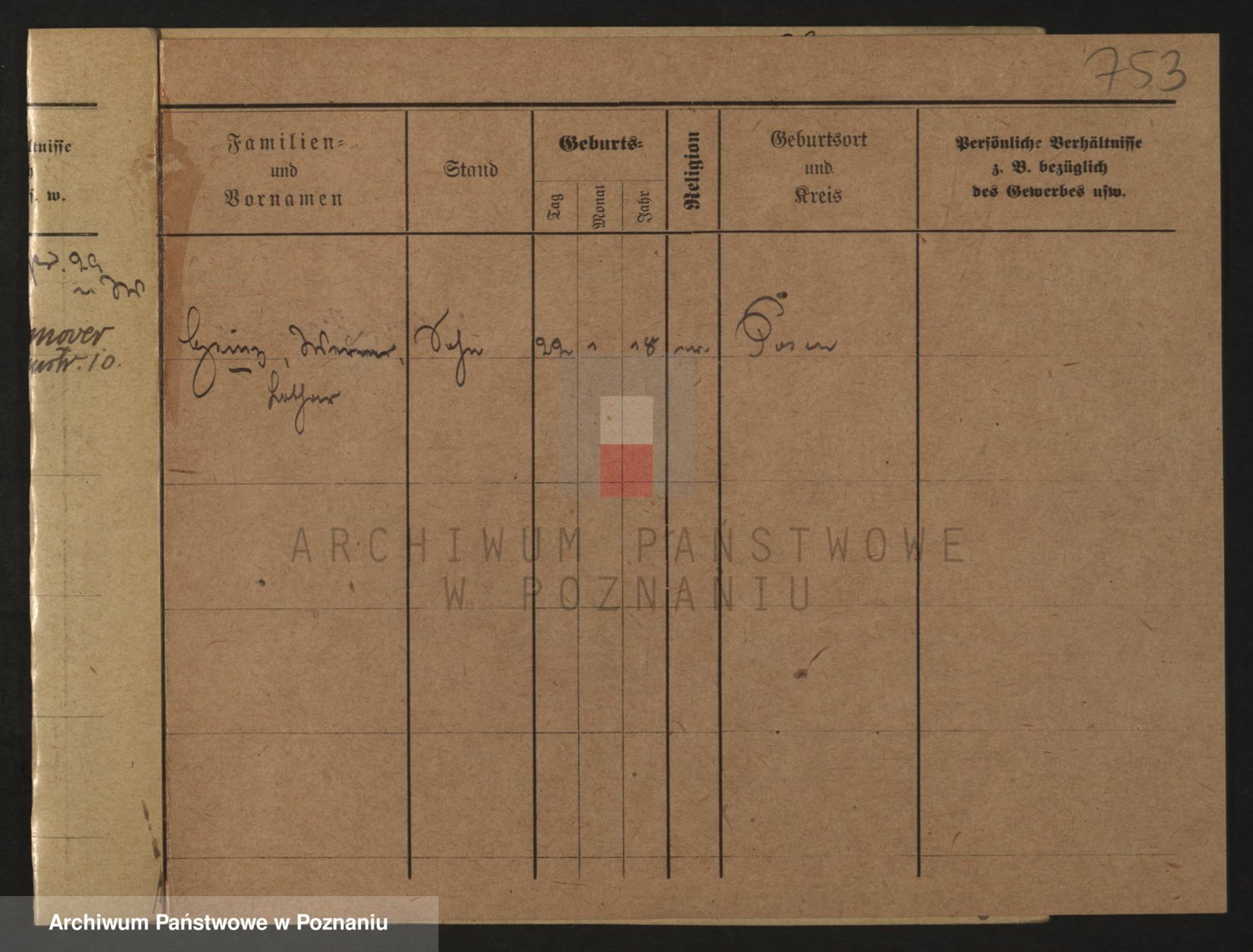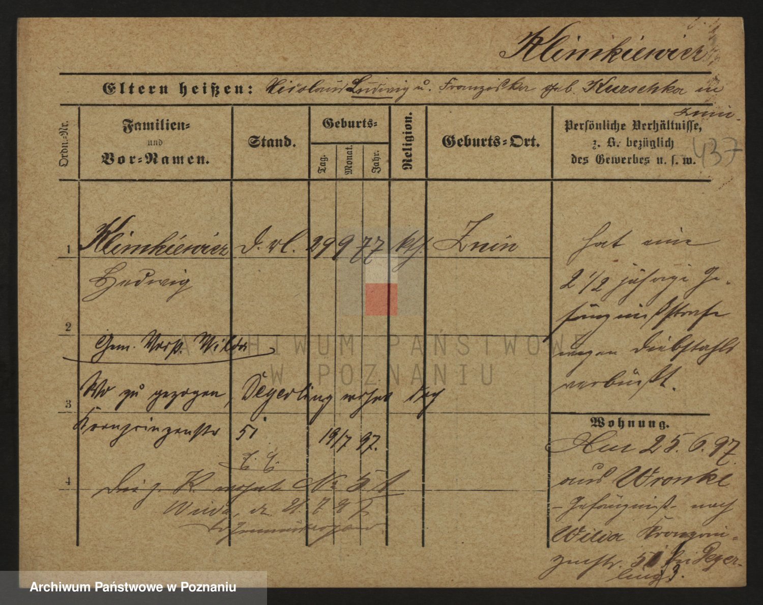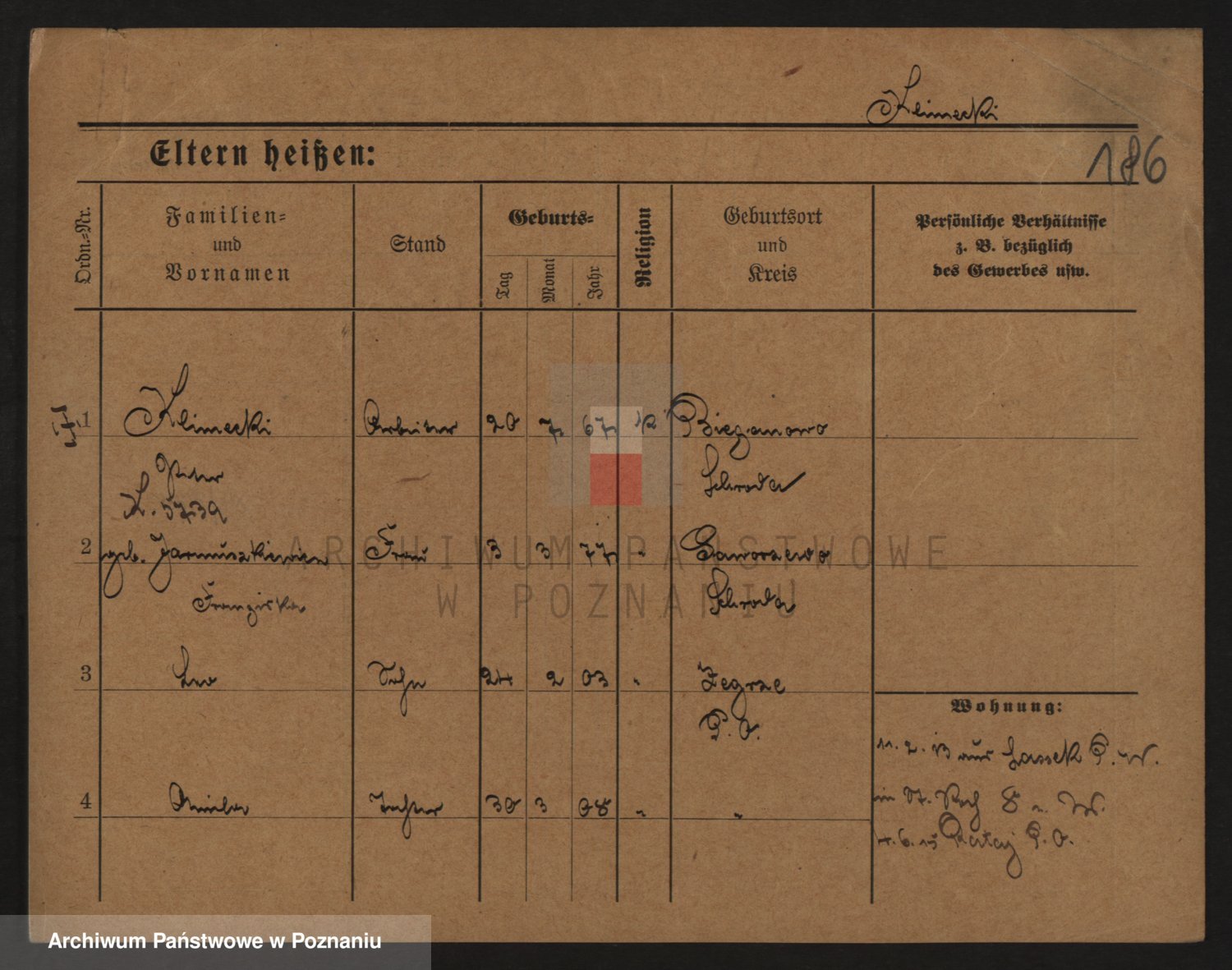 Podgląd karty osobowej dostępny jest po kliknięciu na nazwisko lub ikonkę karty. Można dokonywać powiększenia (ikony na górze) lub przechodzić między kolejnymi skanami (strzałki po bokach).
