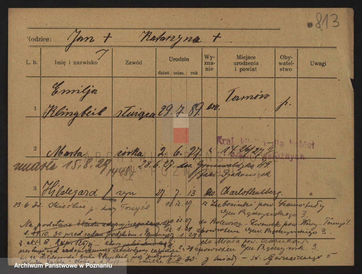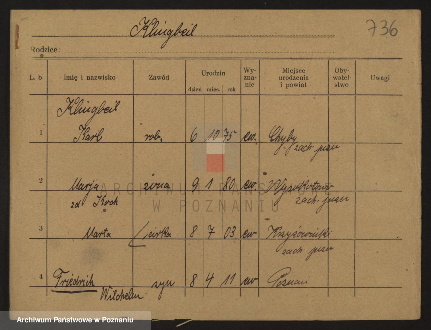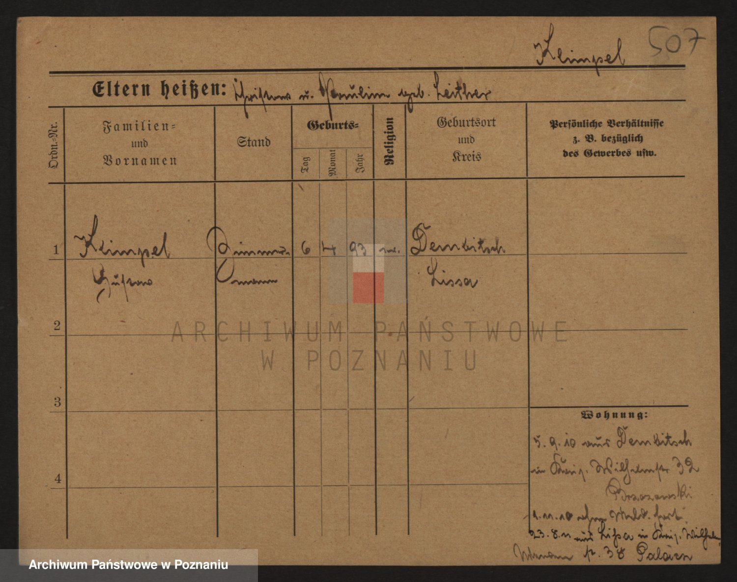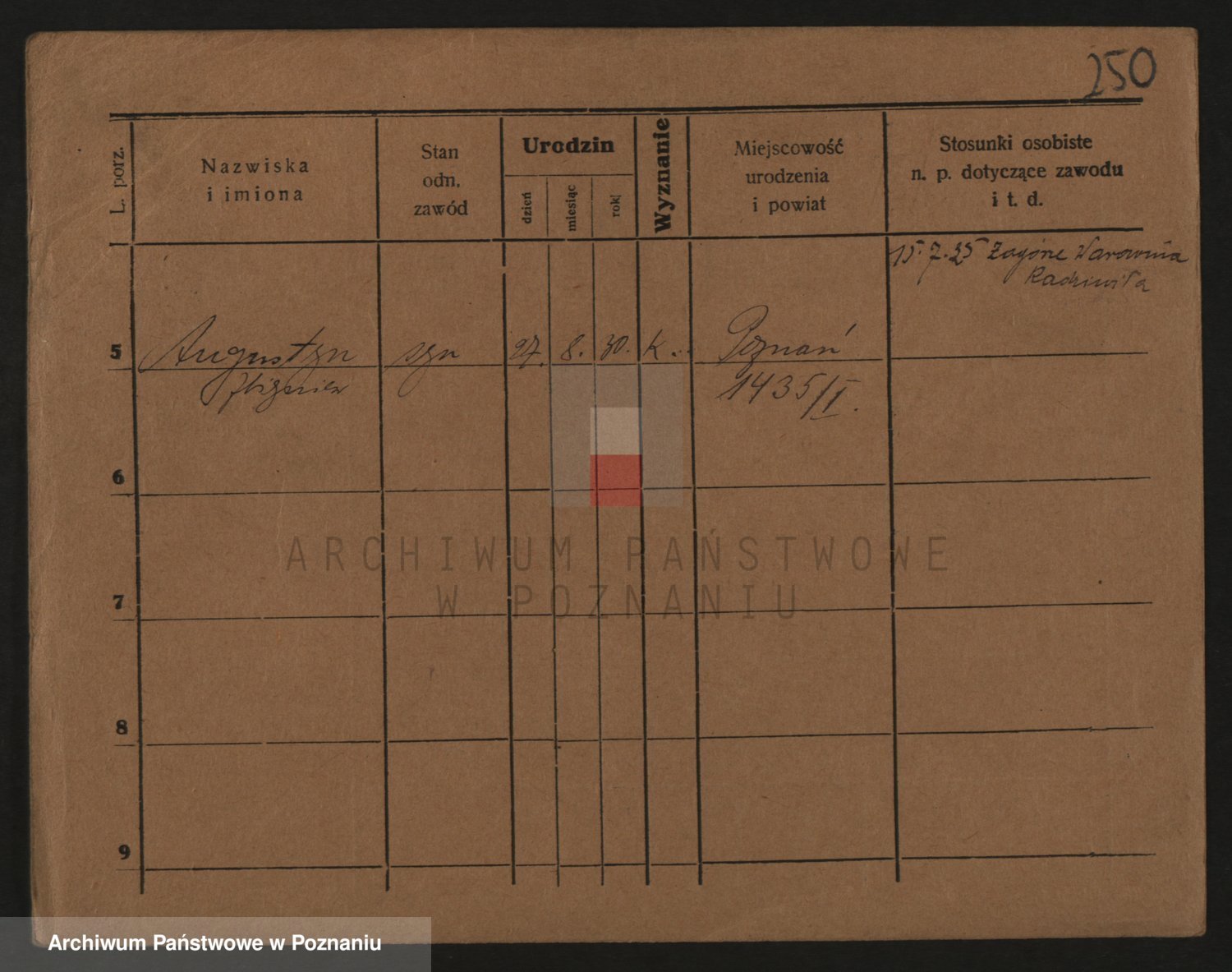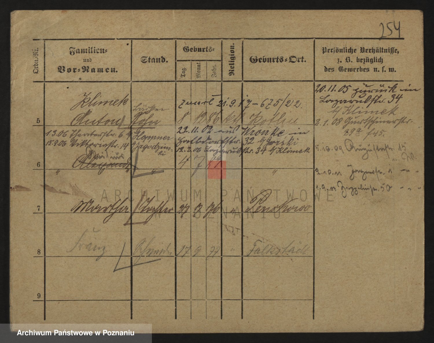 Podgląd karty osobowej dostępny jest po kliknięciu na nazwisko lub ikonkę karty. Można dokonywać powiększenia (ikony na górze) lub przechodzić między kolejnymi skanami (strzałki po bokach).