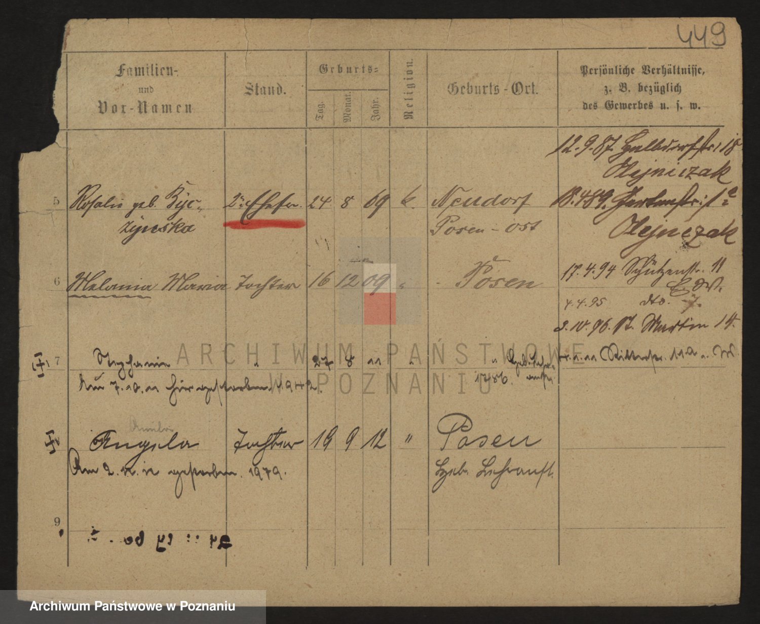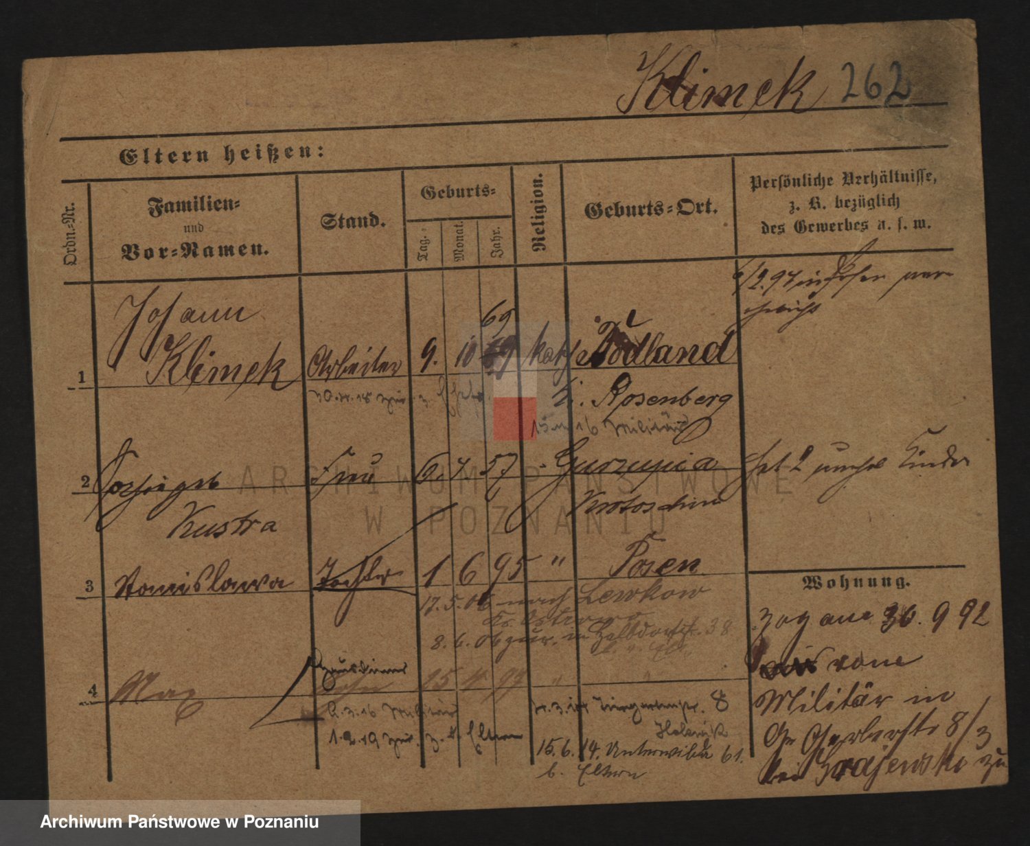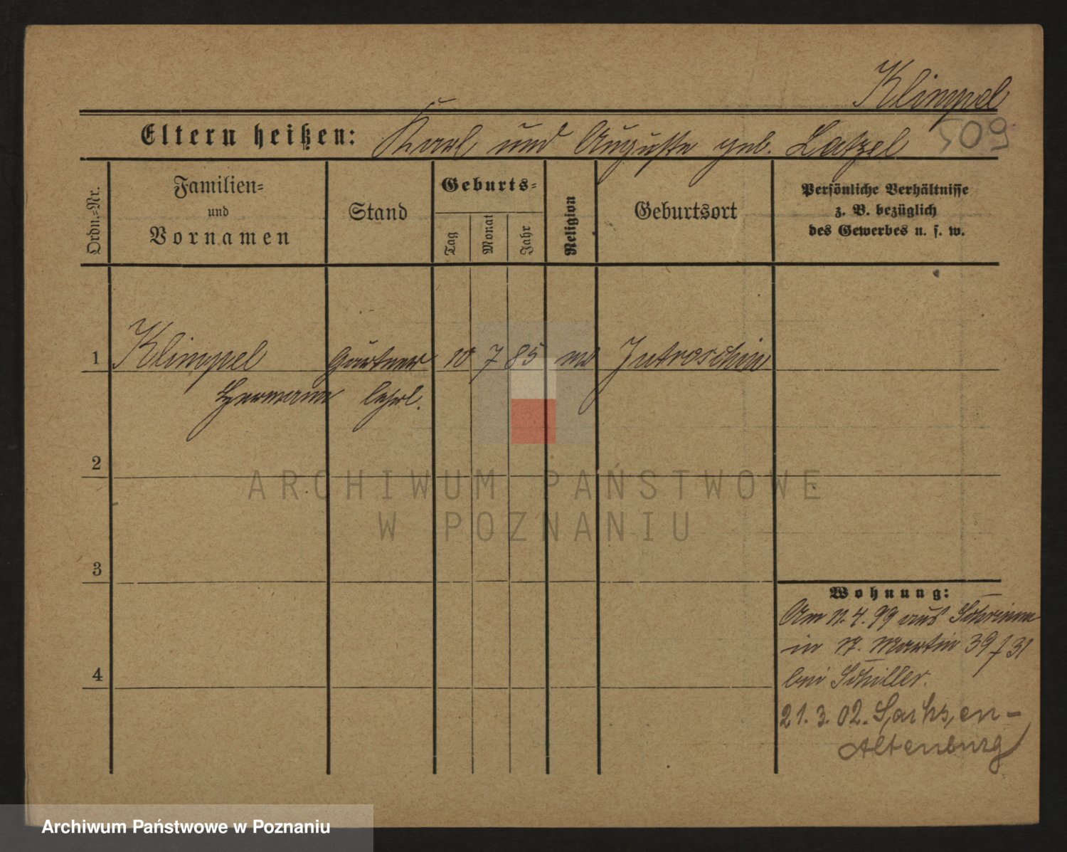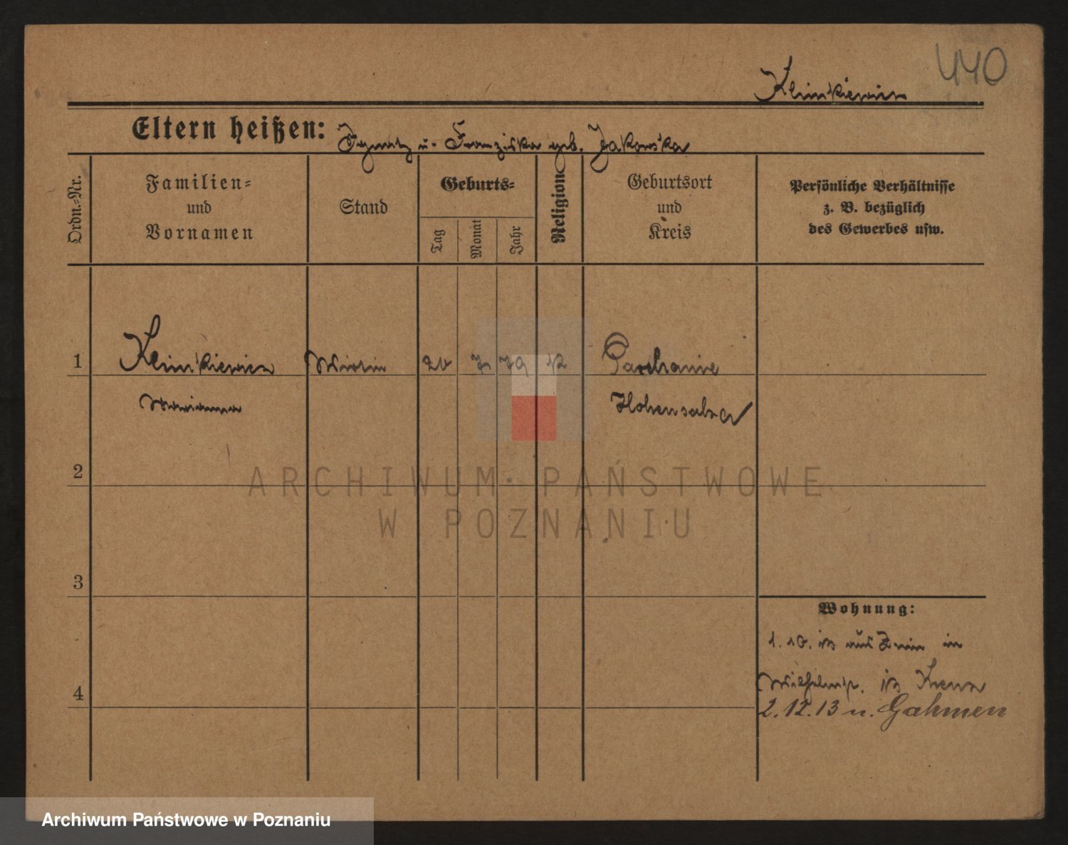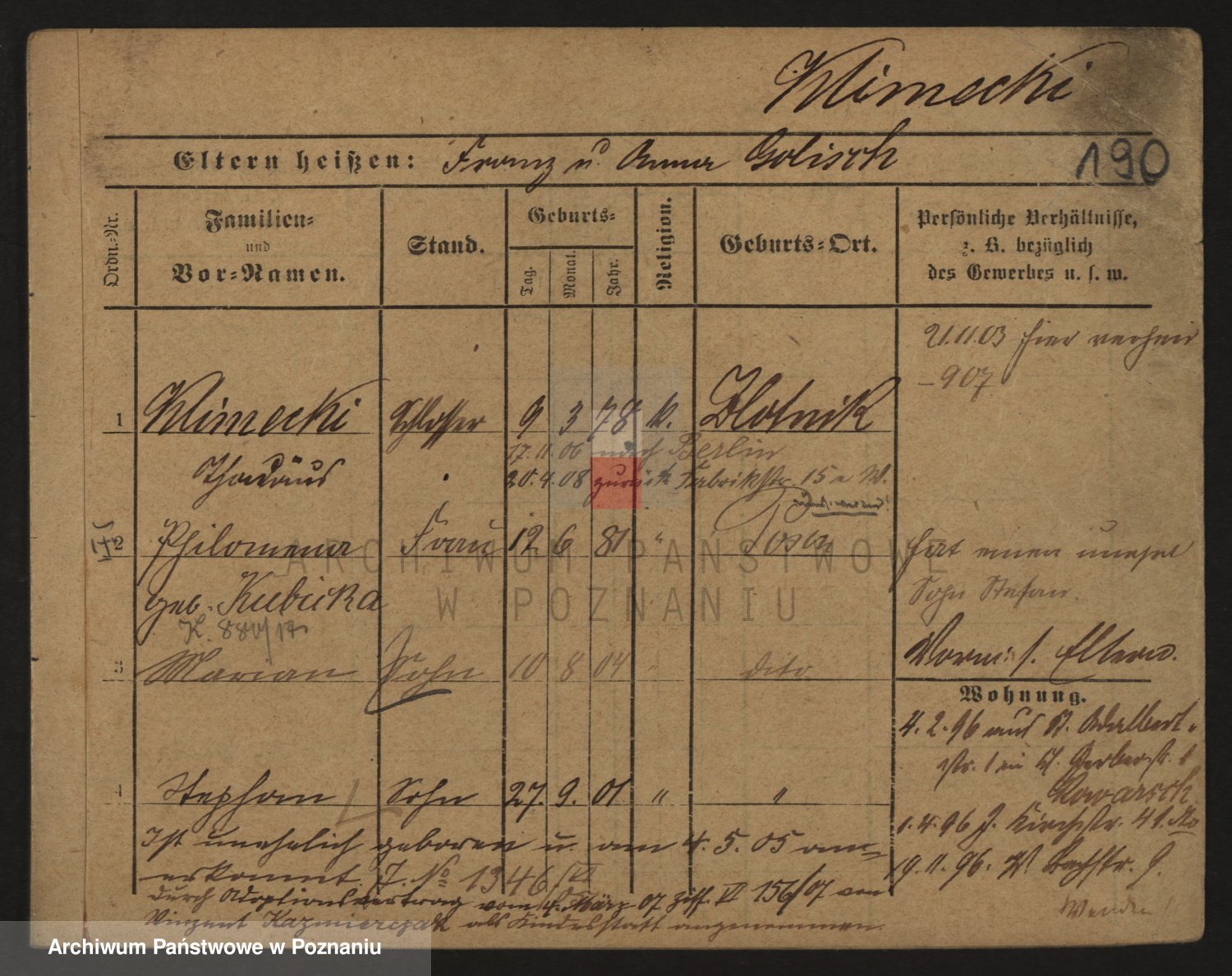 Podgląd karty osobowej dostępny jest po kliknięciu na nazwisko lub ikonkę karty. Można dokonywać powiększenia (ikony na górze) lub przechodzić między kolejnymi skanami (strzałki po bokach).