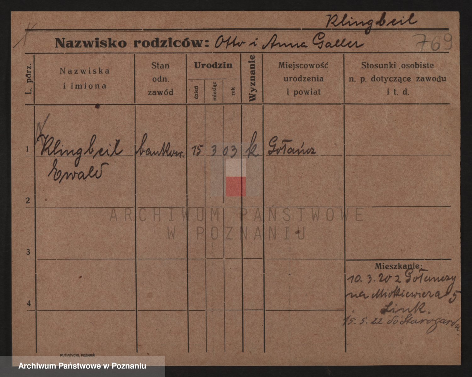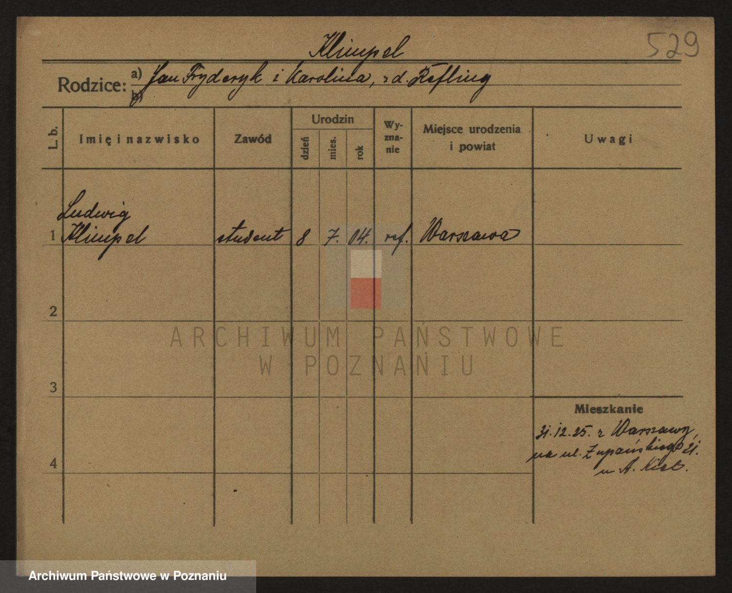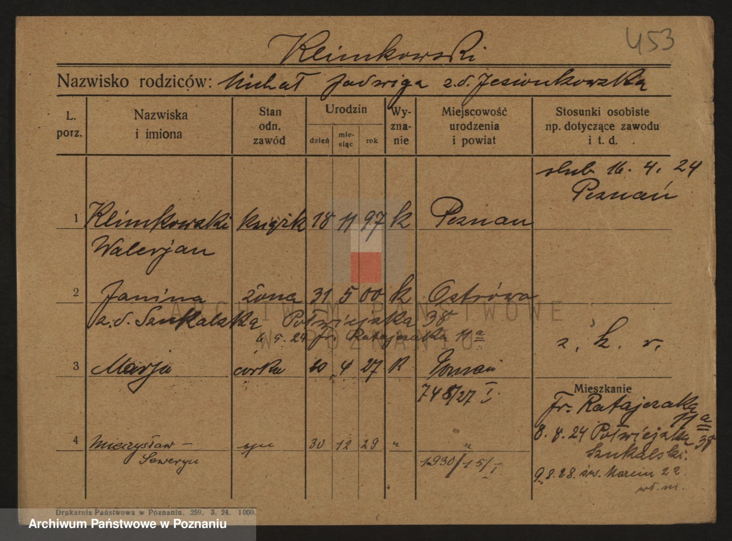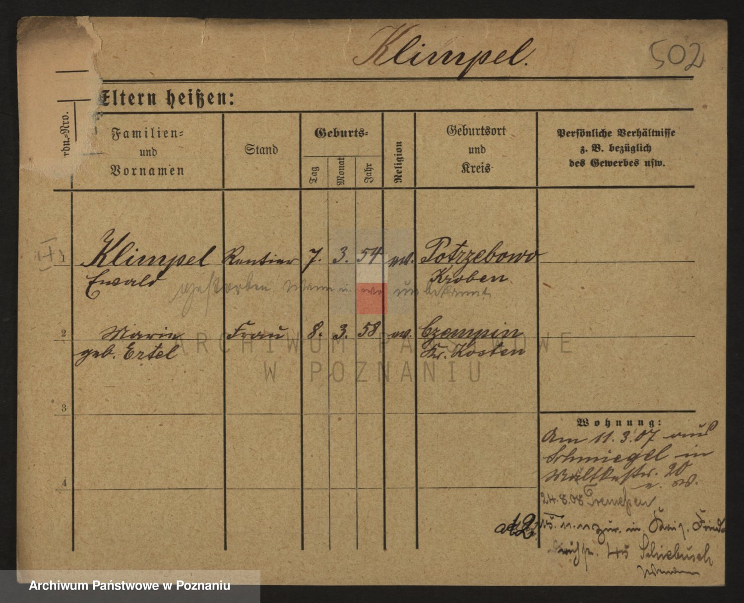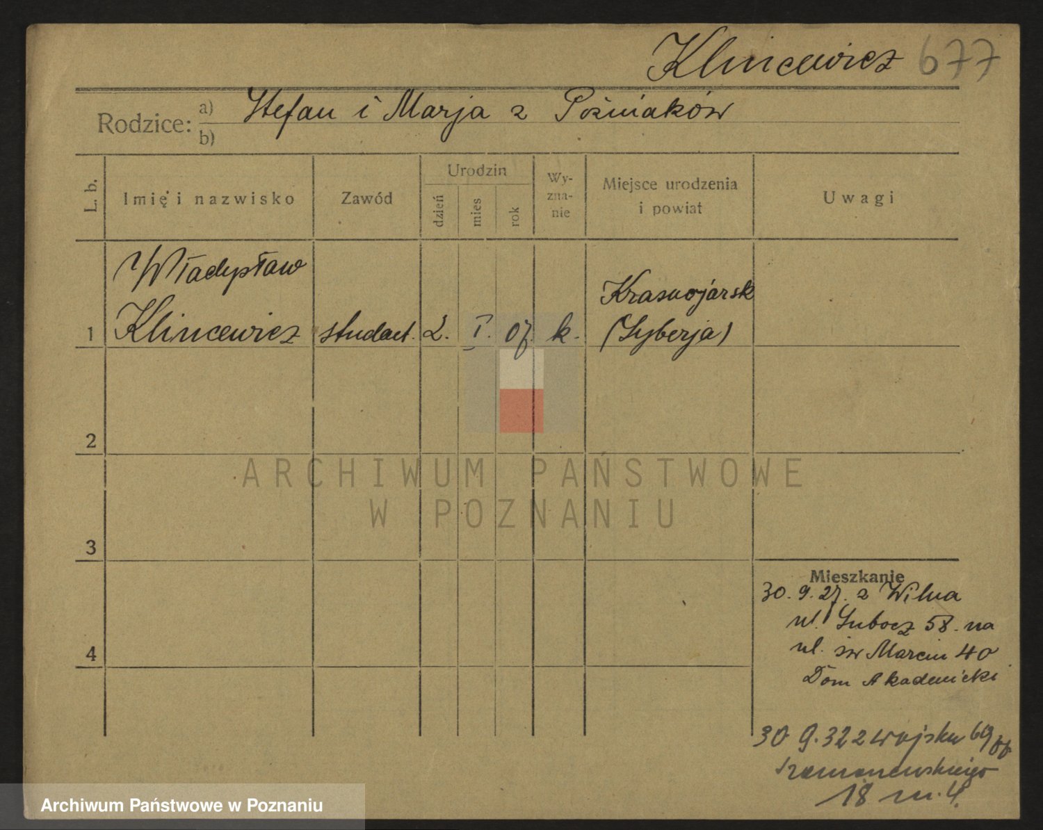 Podgląd karty osobowej dostępny jest po kliknięciu na nazwisko lub ikonkę karty. Można dokonywać powiększenia (ikony na górze) lub przechodzić między kolejnymi skanami (strzałki po bokach).