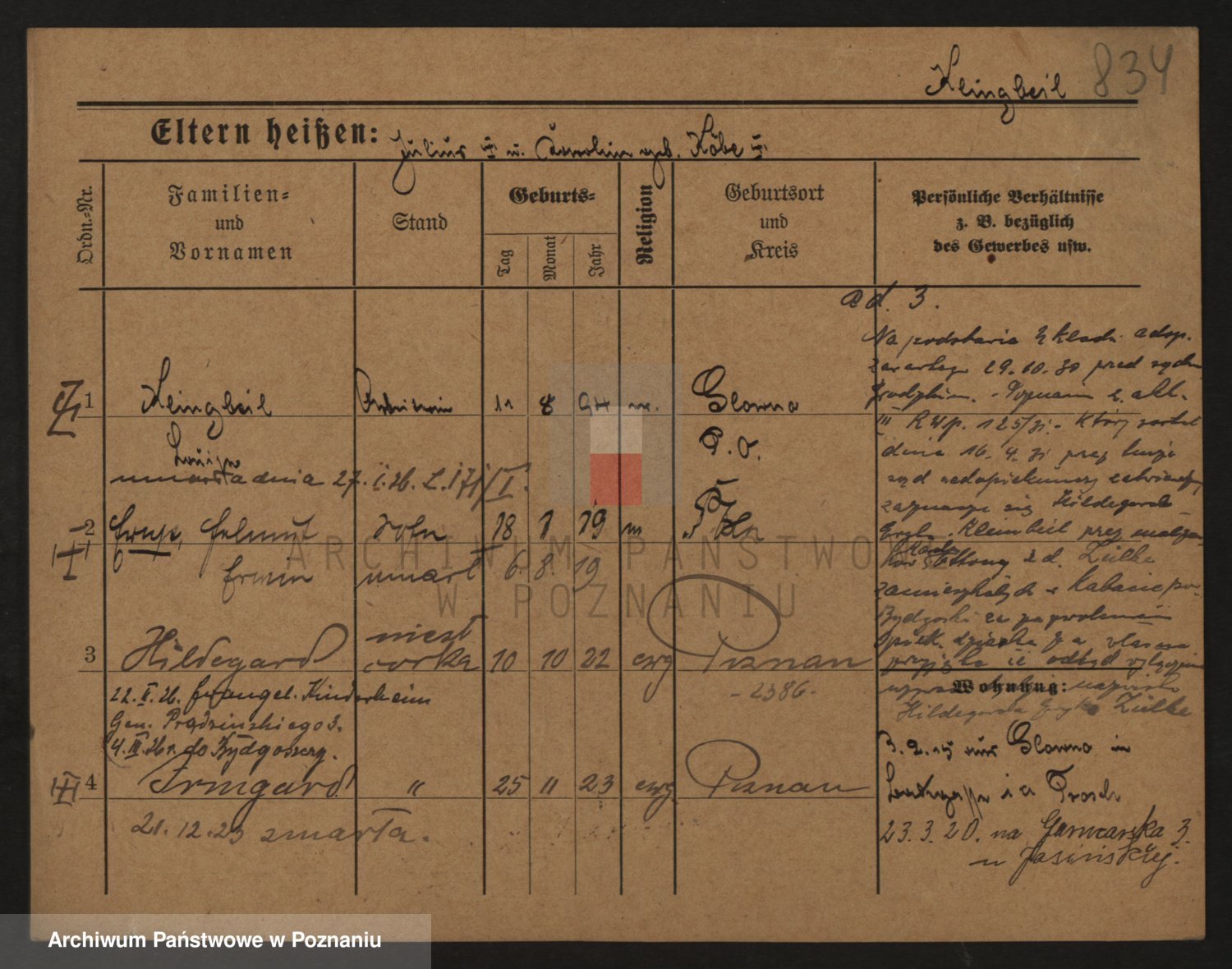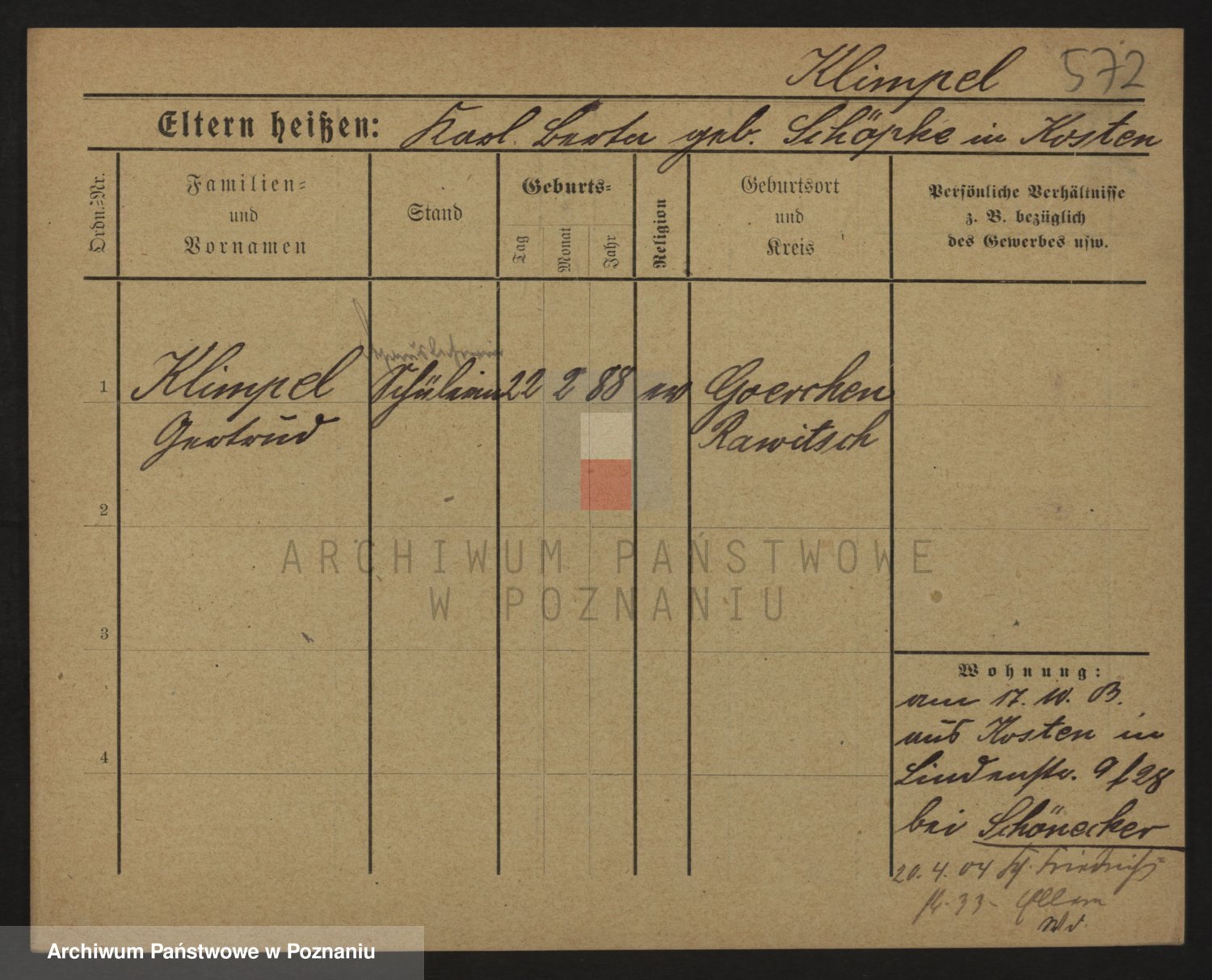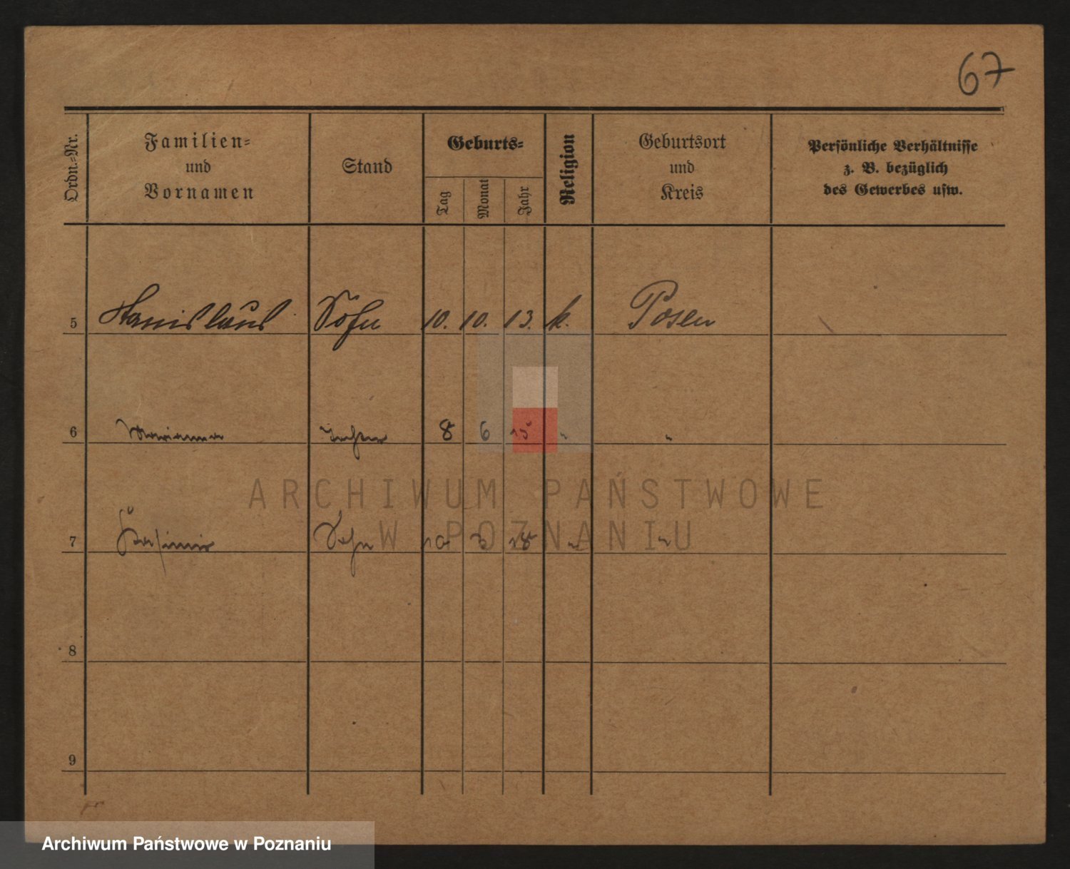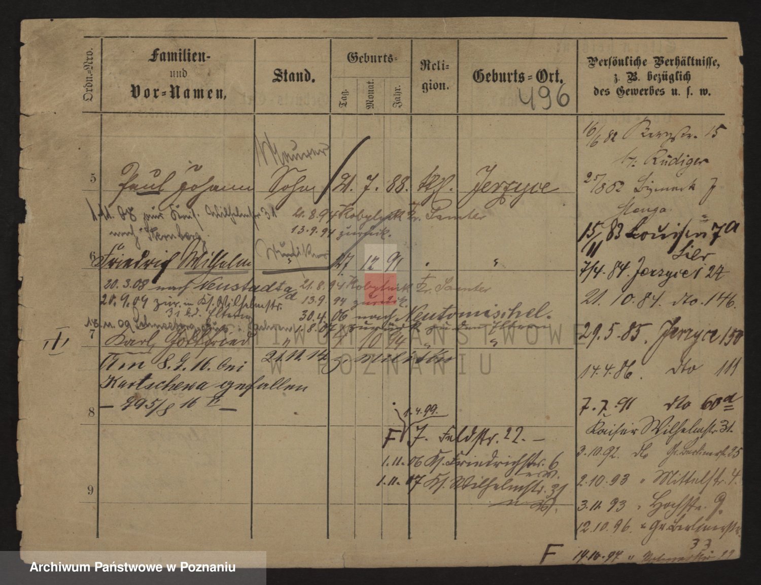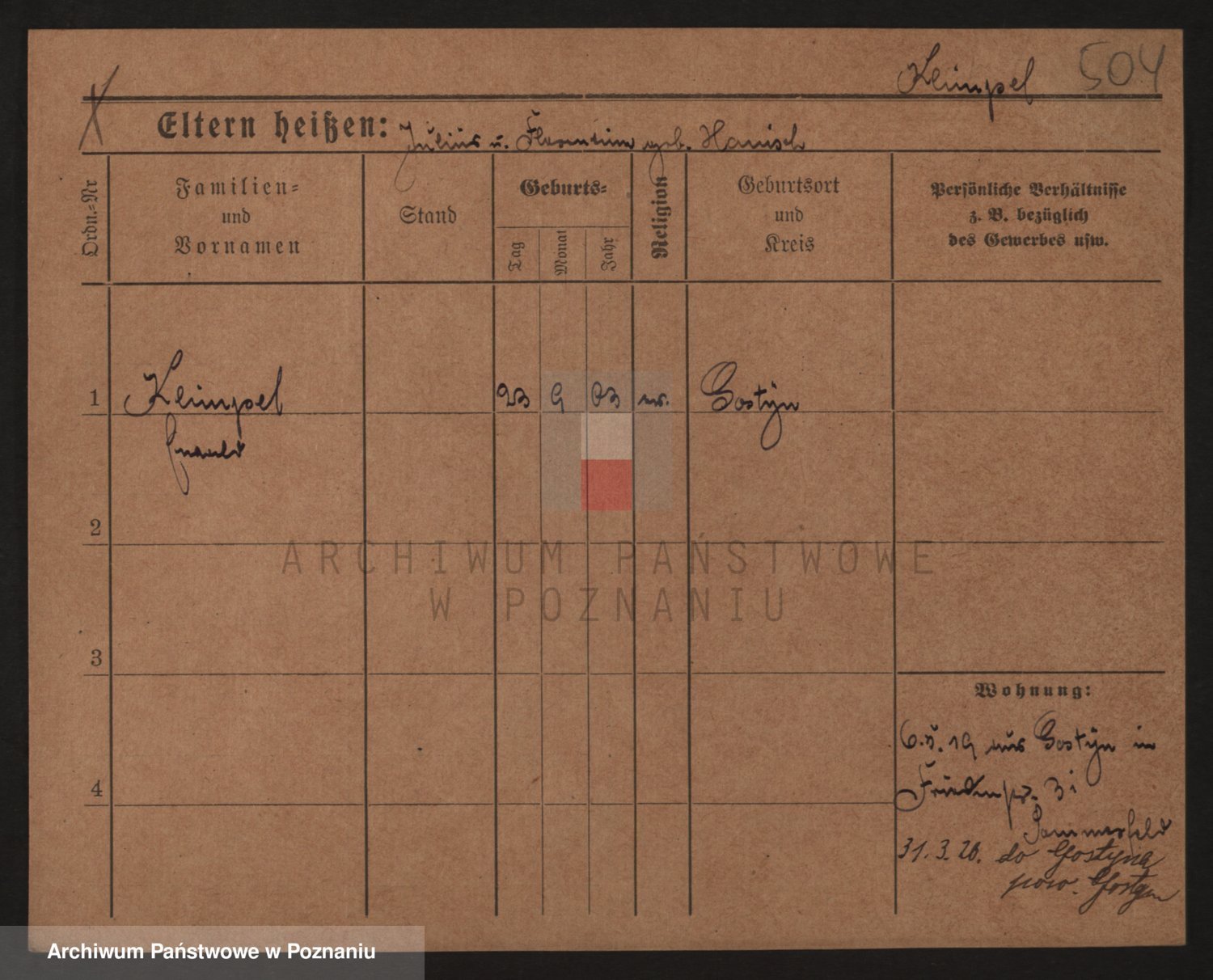 Podgląd karty osobowej dostępny jest po kliknięciu na nazwisko lub ikonkę karty. Można dokonywać powiększenia (ikony na górze) lub przechodzić między kolejnymi skanami (strzałki po bokach).