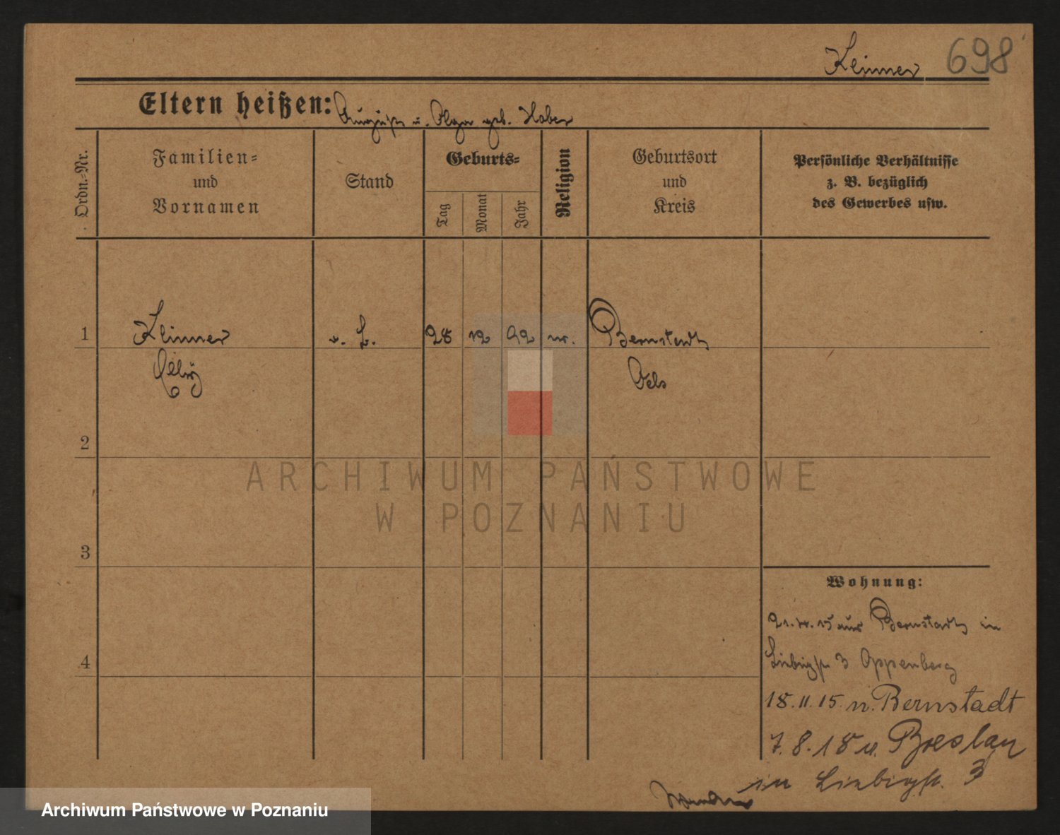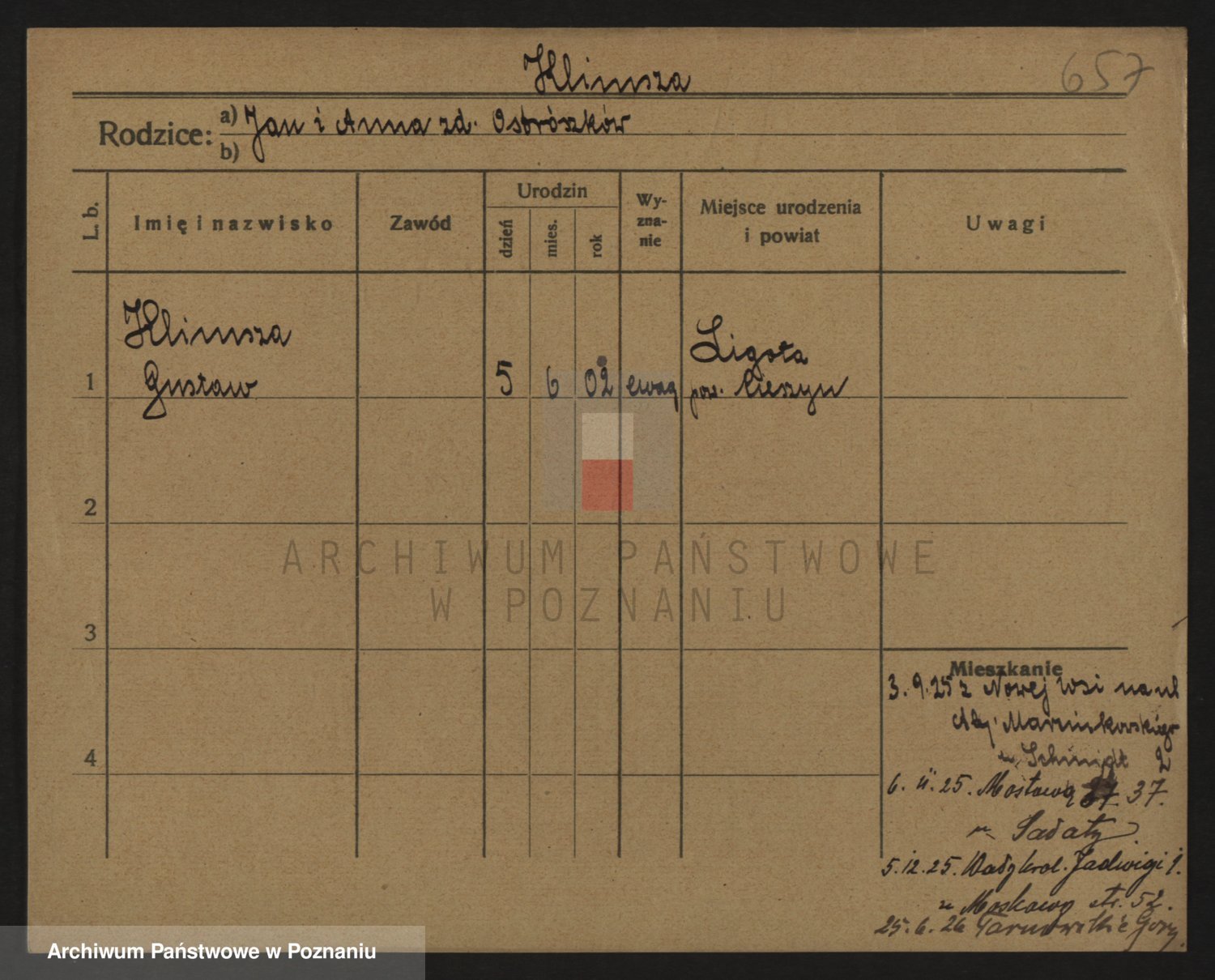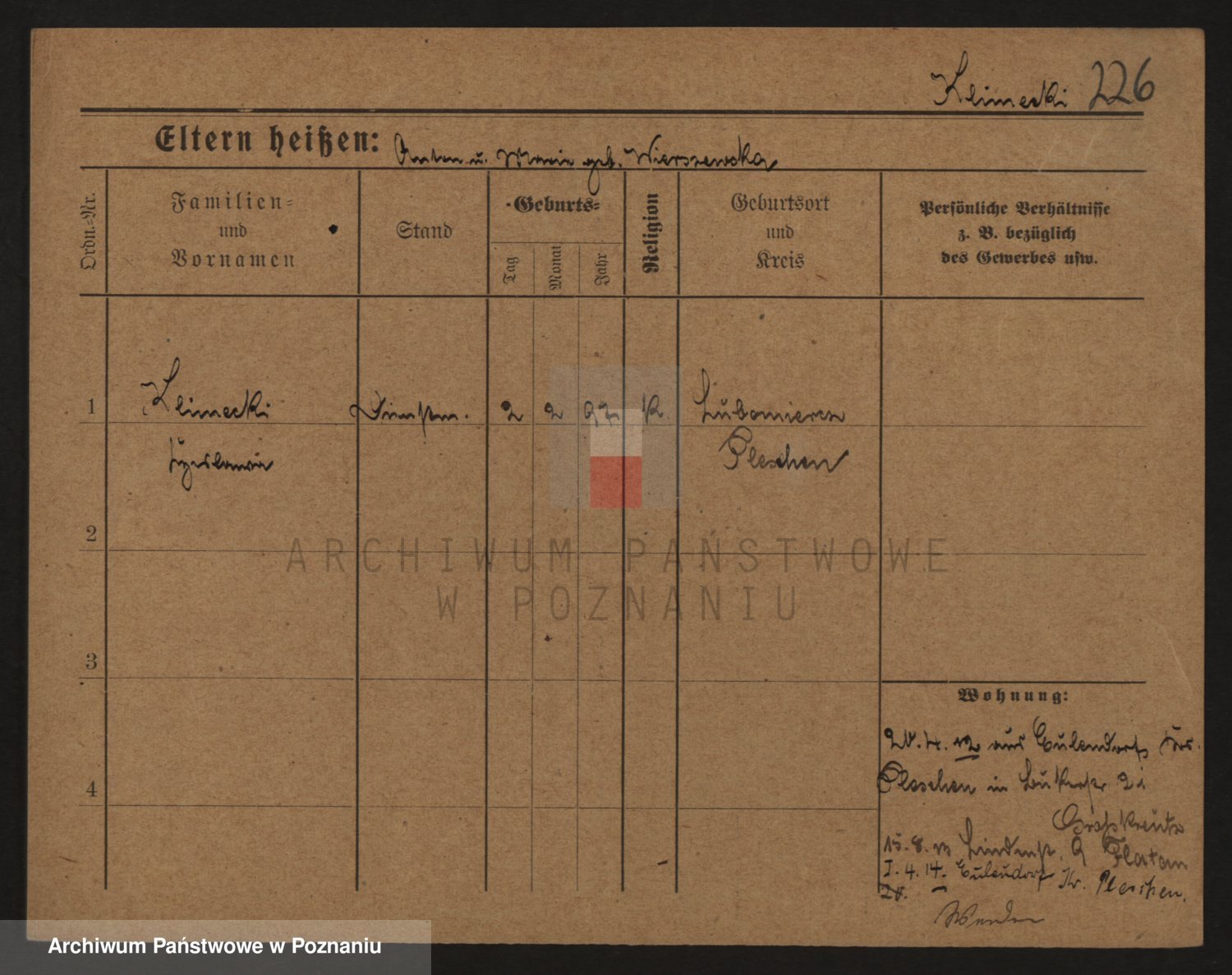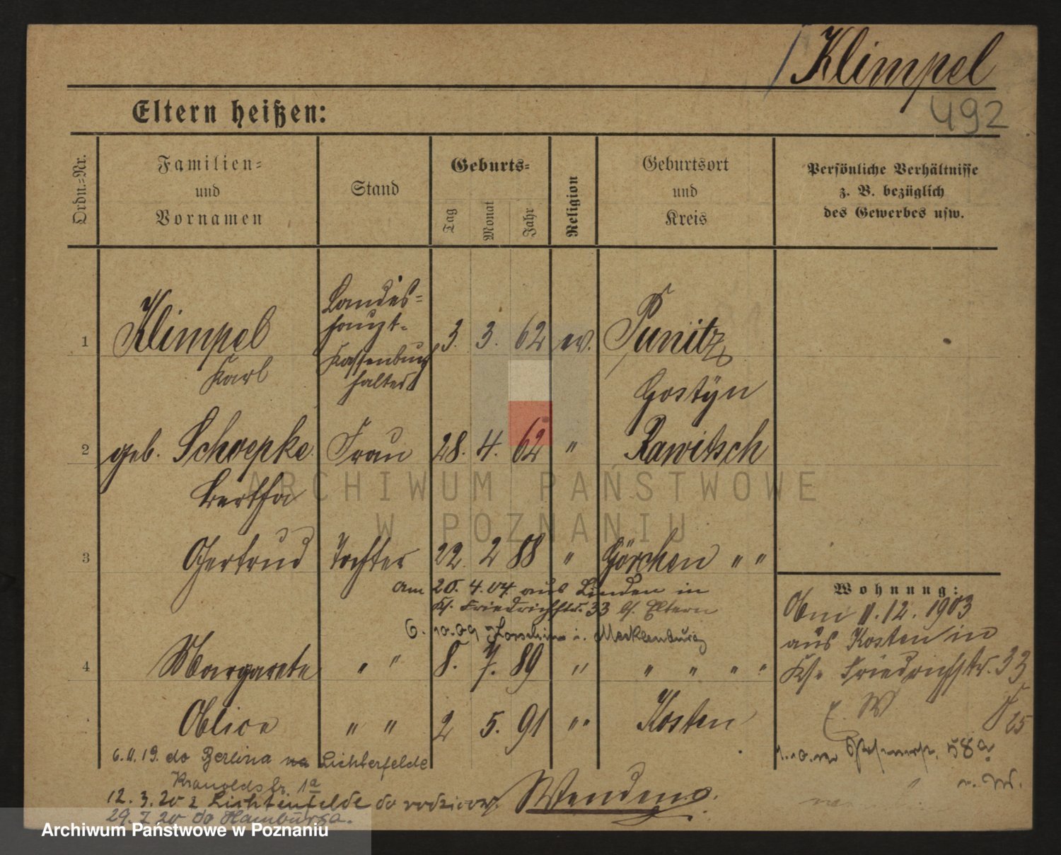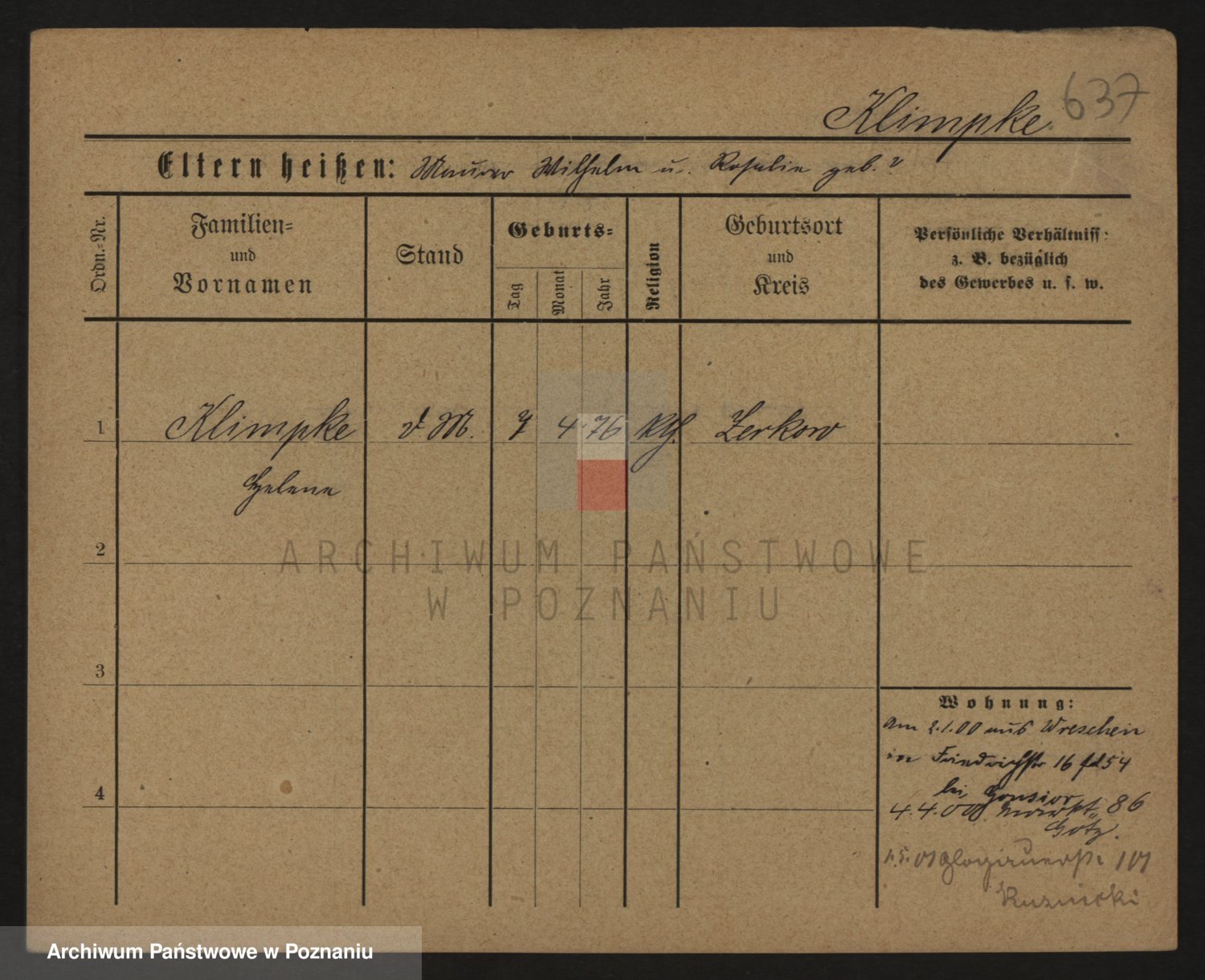 Podgląd karty osobowej dostępny jest po kliknięciu na nazwisko lub ikonkę karty. Można dokonywać powiększenia (ikony na górze) lub przechodzić między kolejnymi skanami (strzałki po bokach).