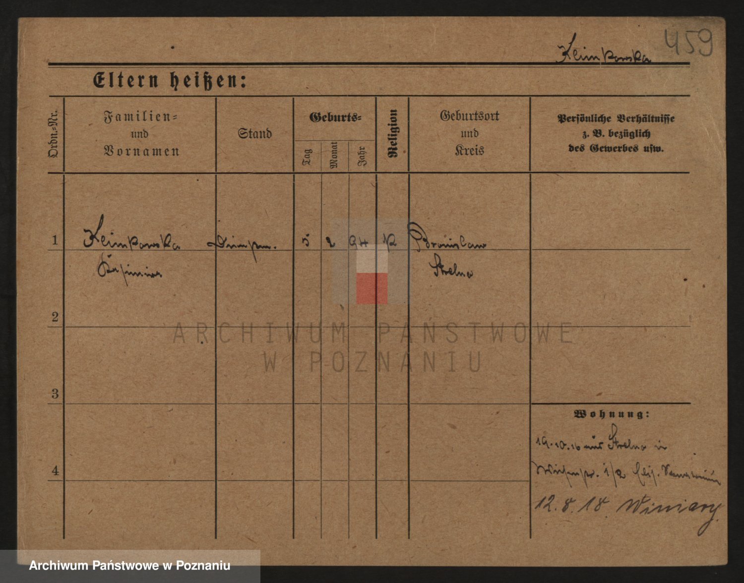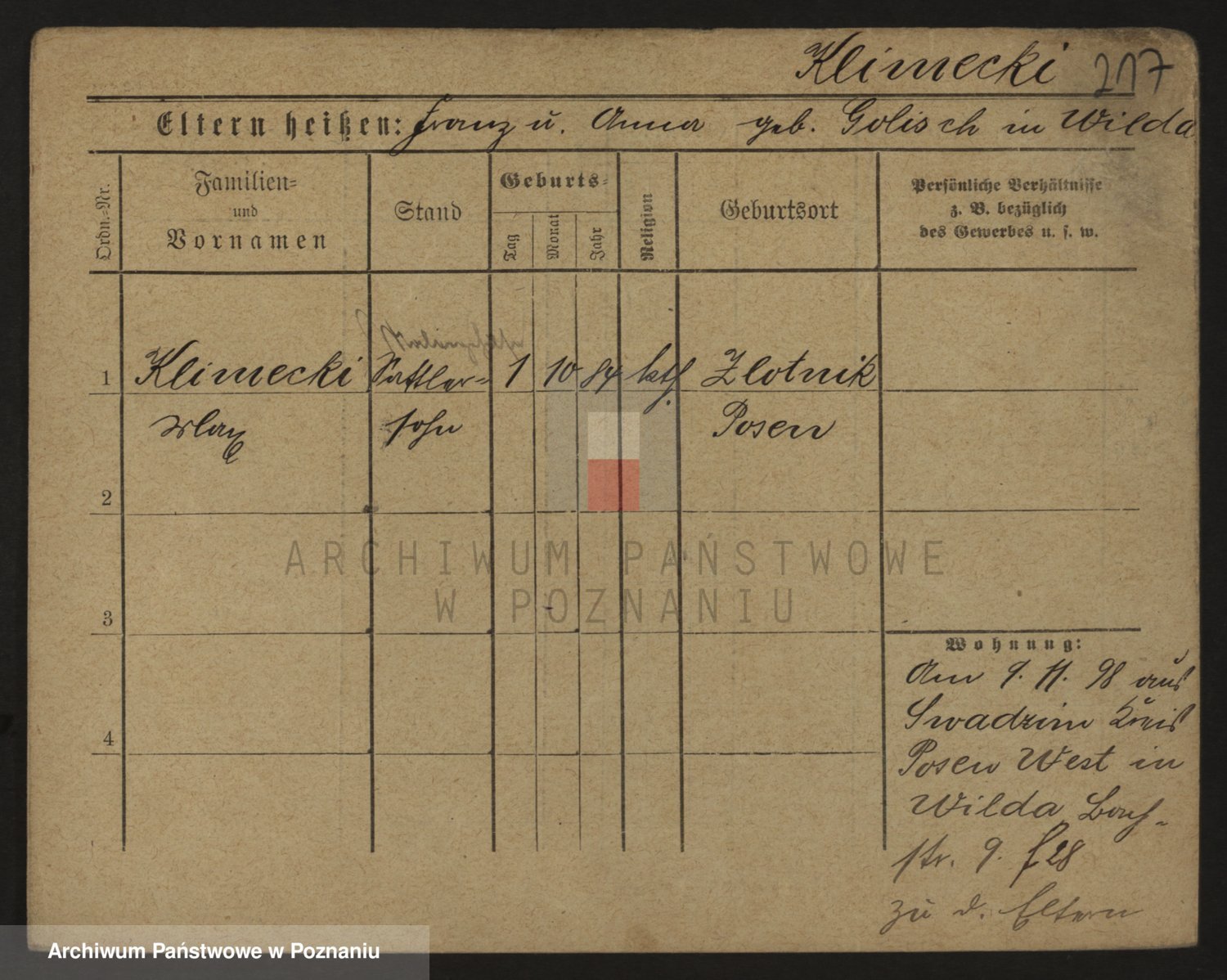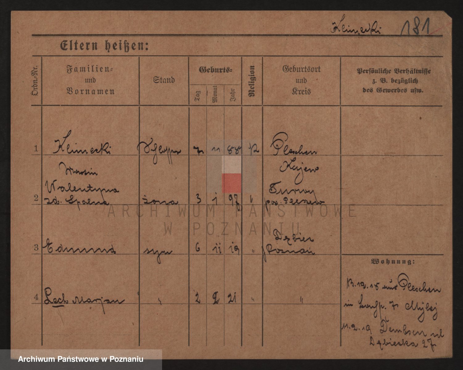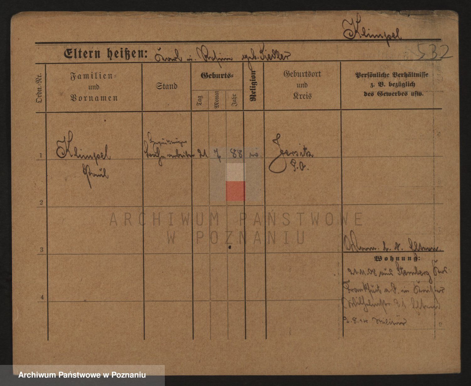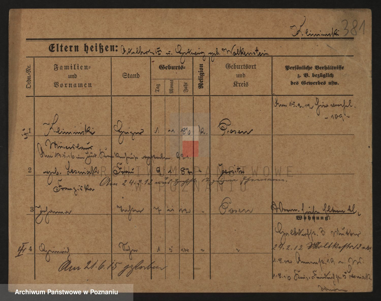 Podgląd karty osobowej dostępny jest po kliknięciu na nazwisko lub ikonkę karty. Można dokonywać powiększenia (ikony na górze) lub przechodzić między kolejnymi skanami (strzałki po bokach).