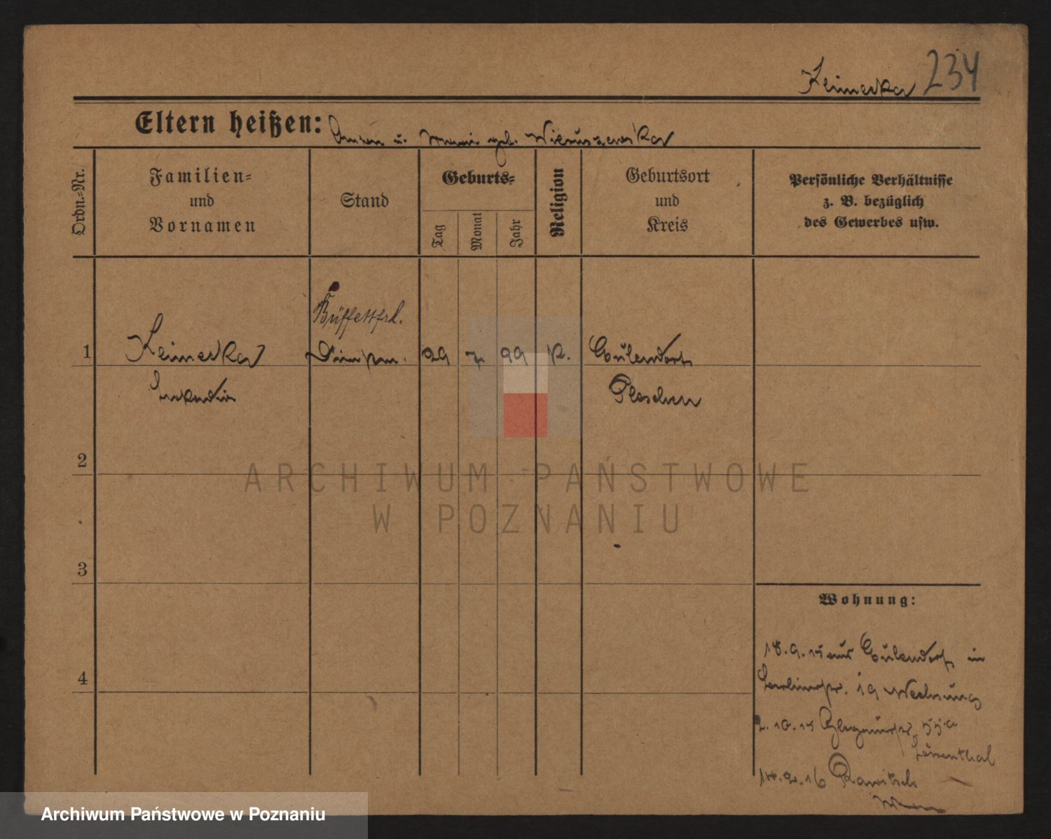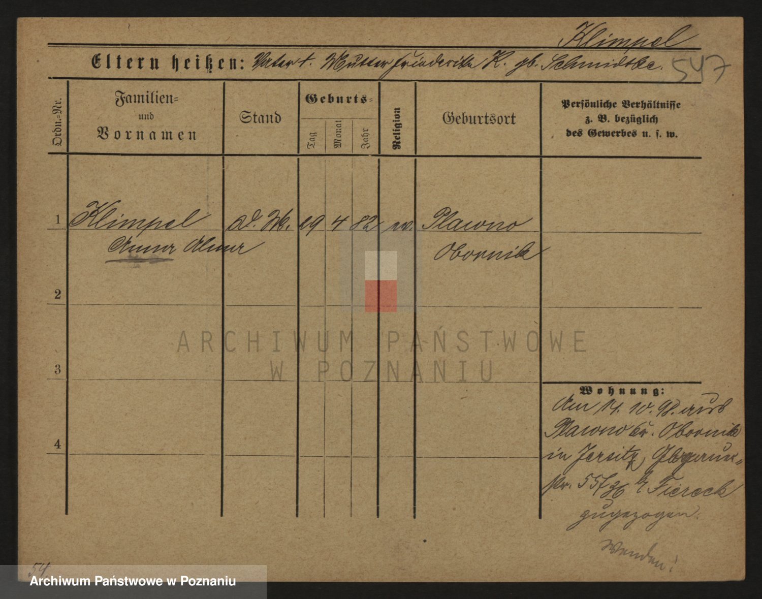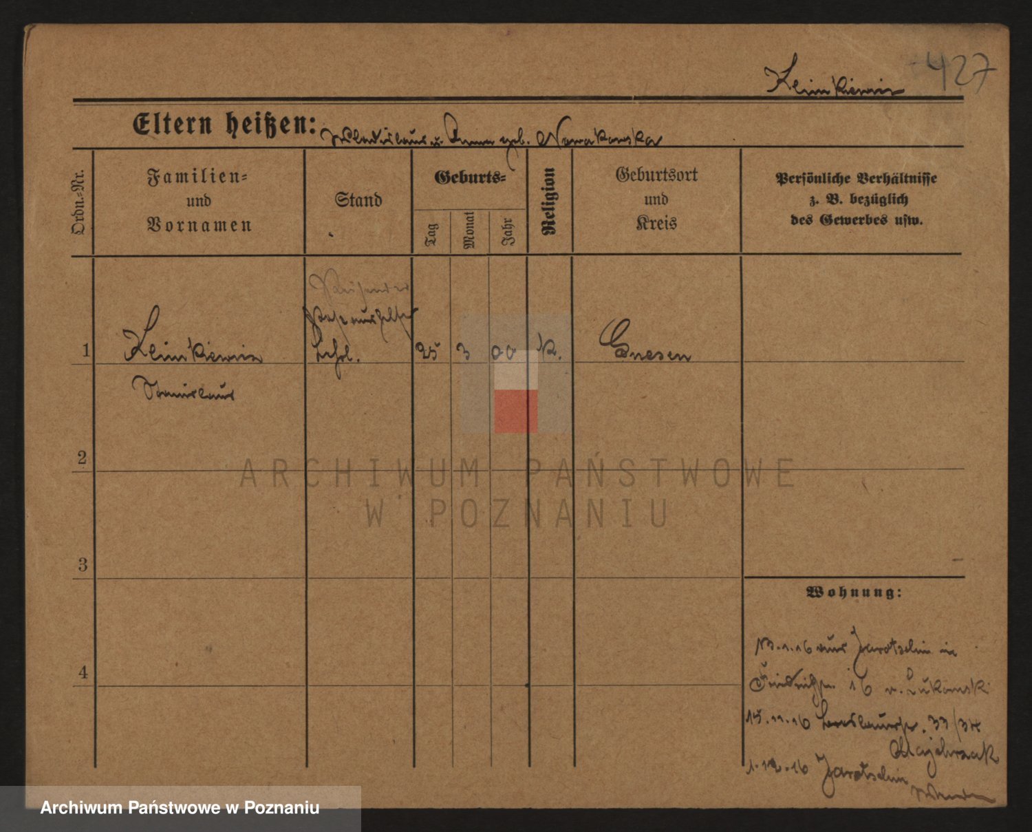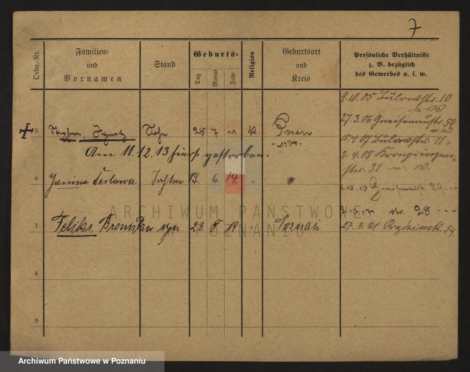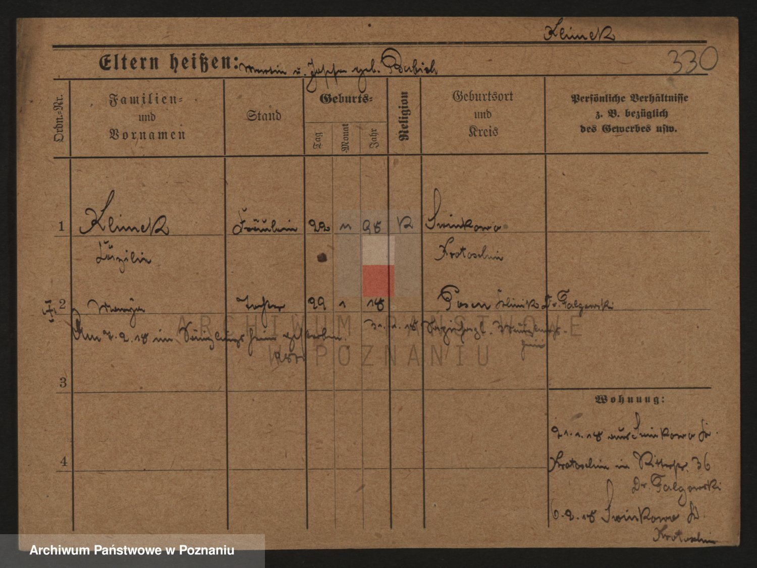 Podgląd karty osobowej dostępny jest po kliknięciu na nazwisko lub ikonkę karty. Można dokonywać powiększenia (ikony na górze) lub przechodzić między kolejnymi skanami (strzałki po bokach).