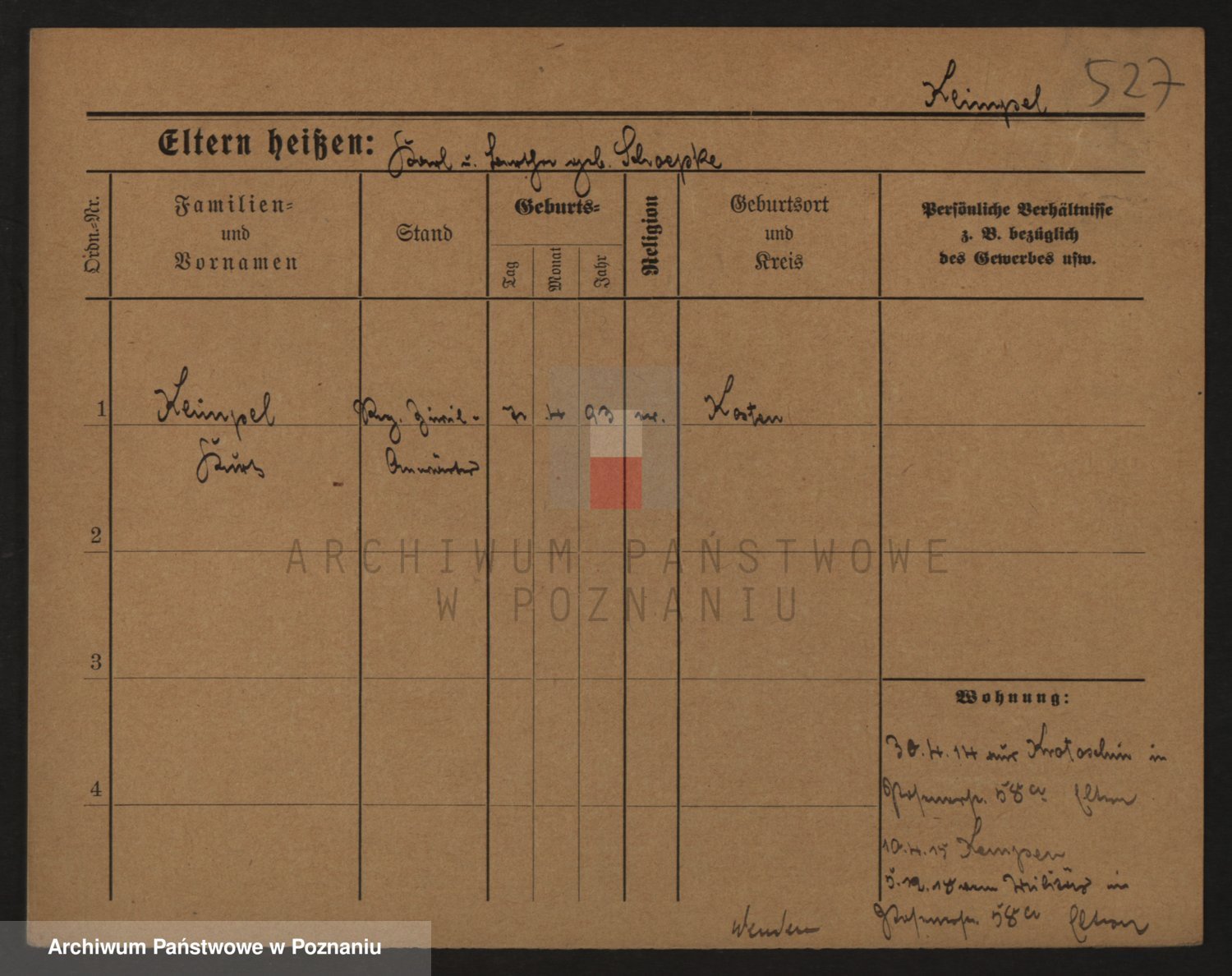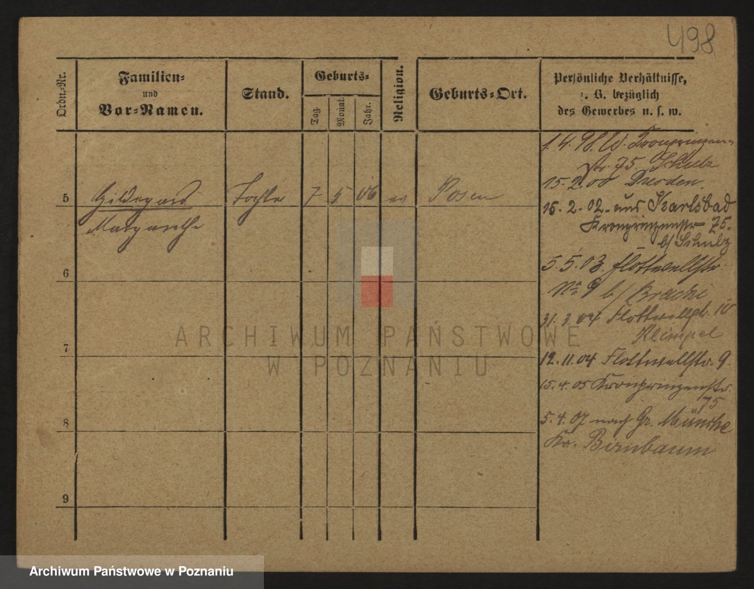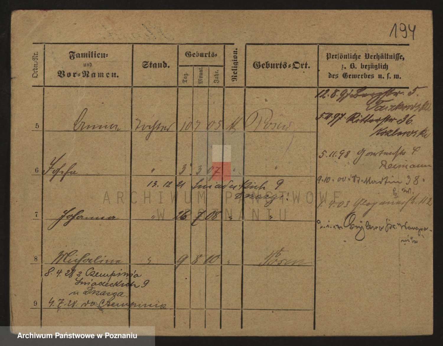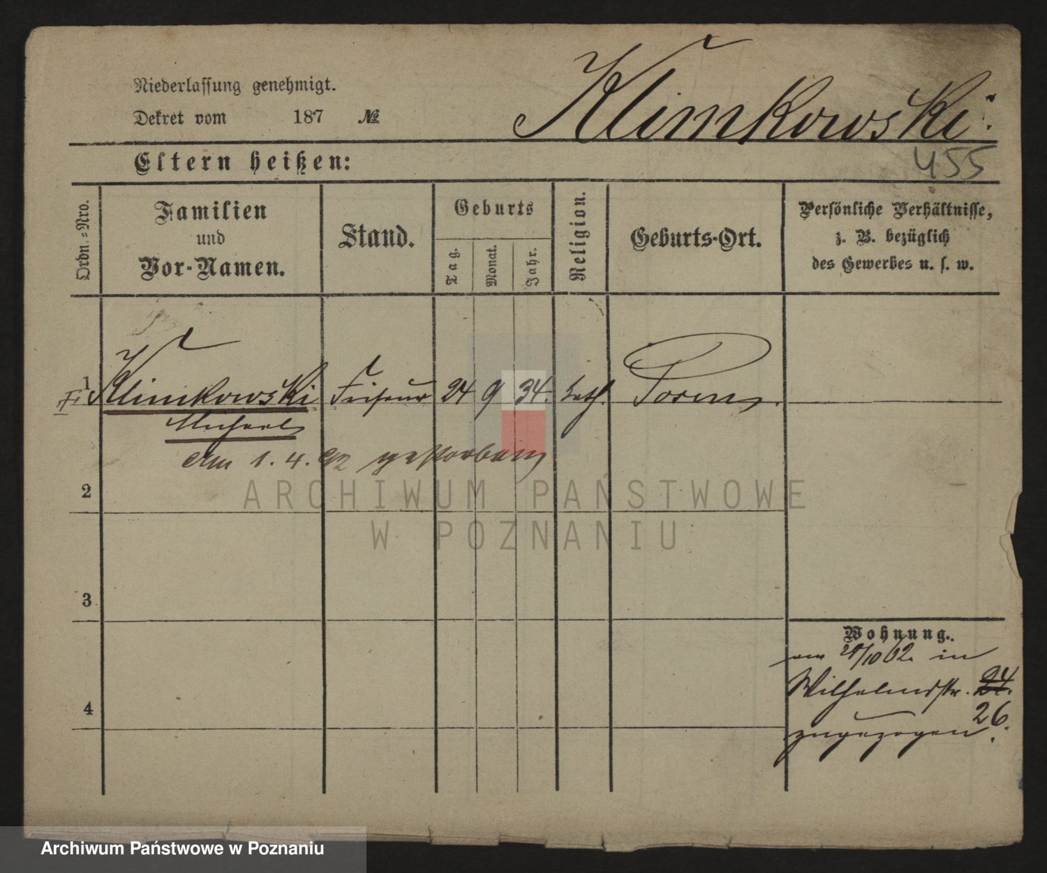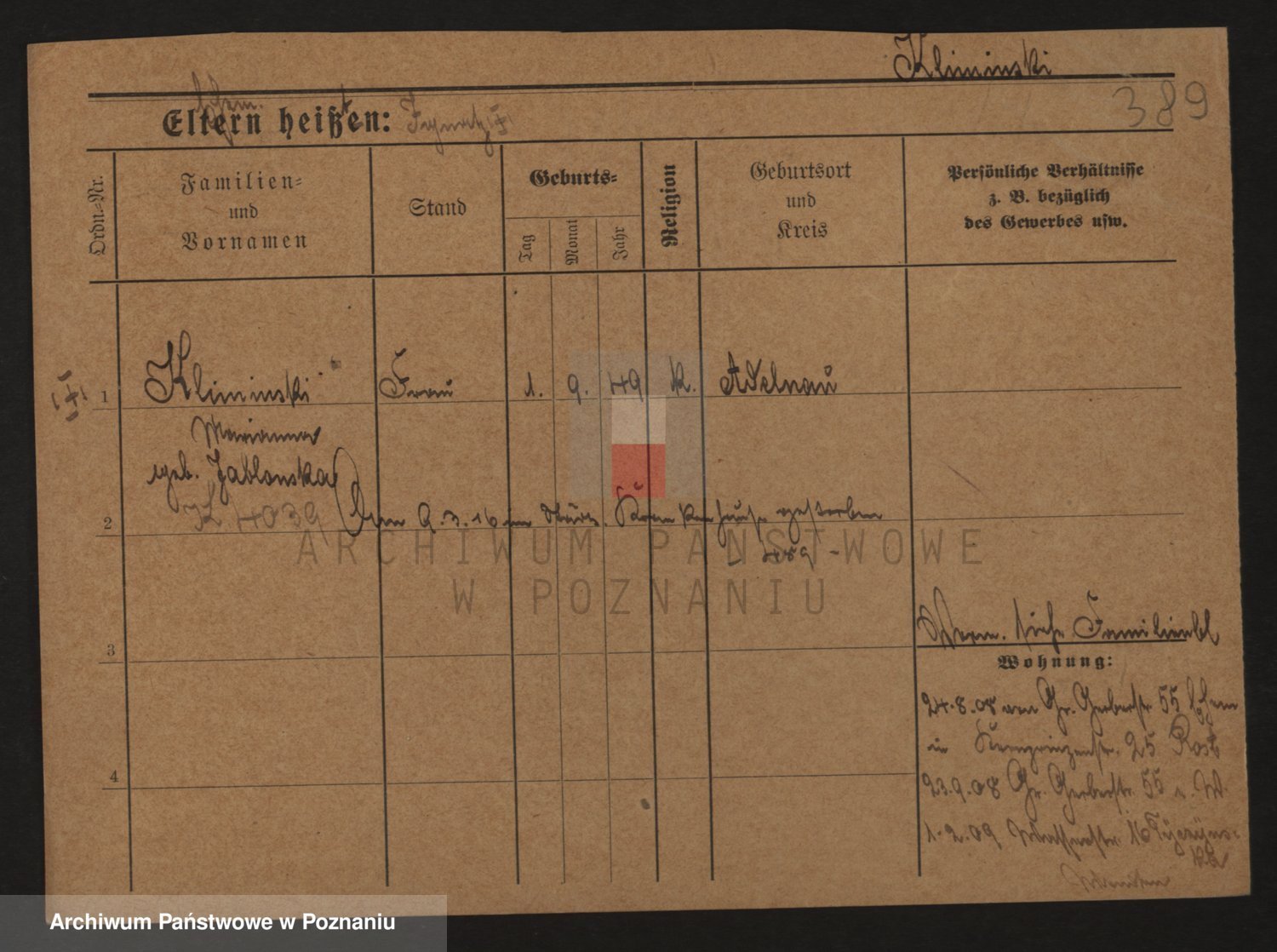 Podgląd karty osobowej dostępny jest po kliknięciu na nazwisko lub ikonkę karty. Można dokonywać powiększenia (ikony na górze) lub przechodzić między kolejnymi skanami (strzałki po bokach).