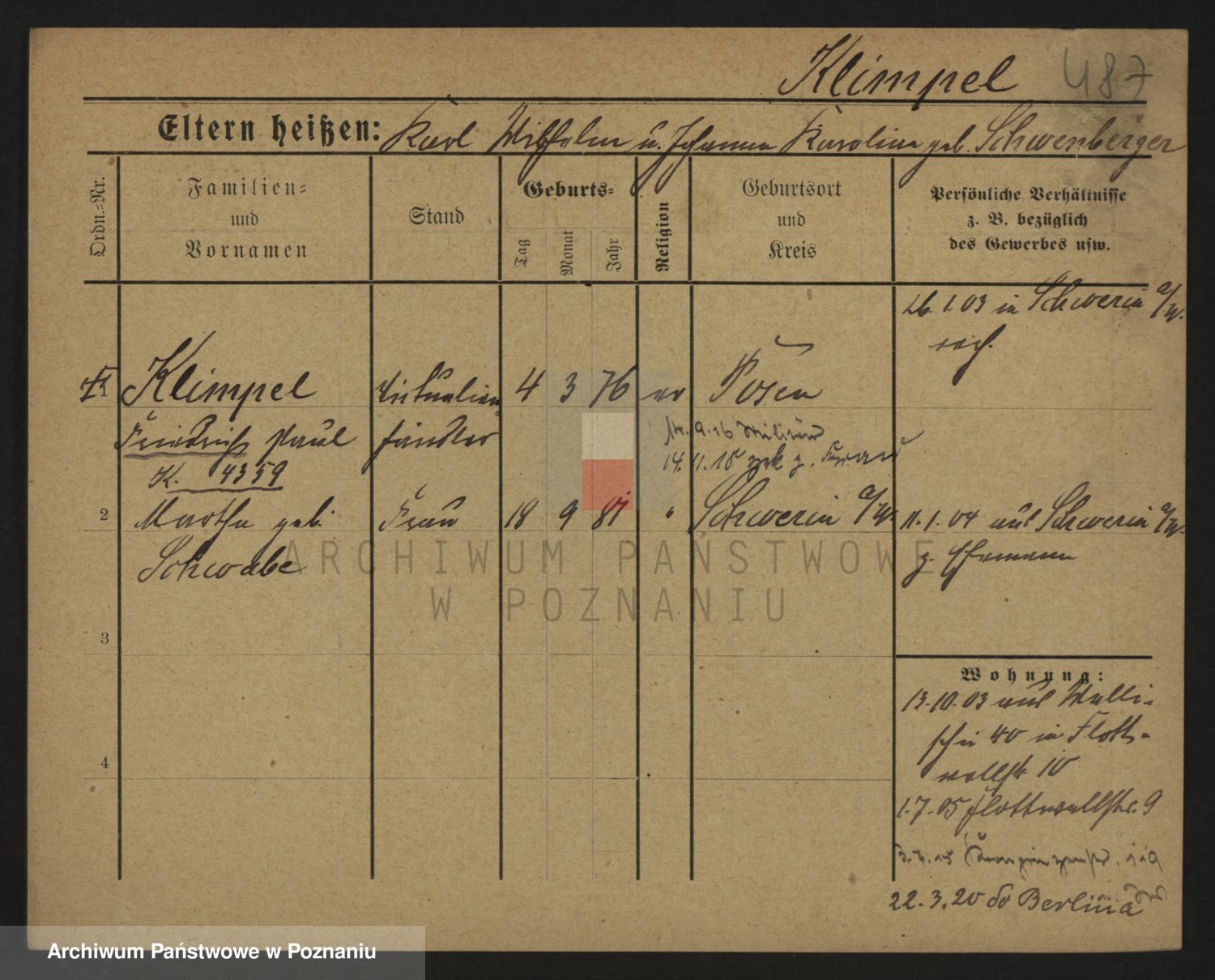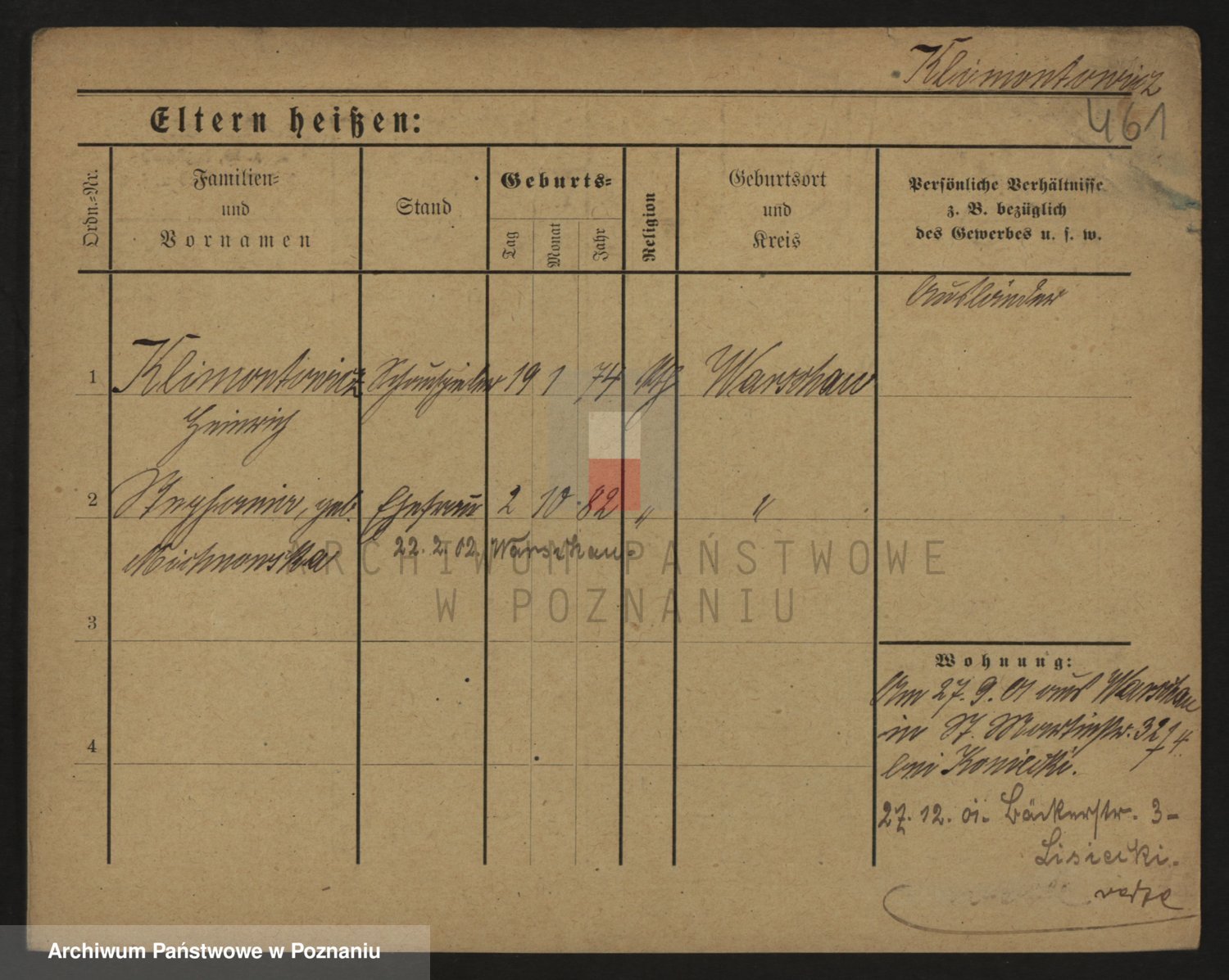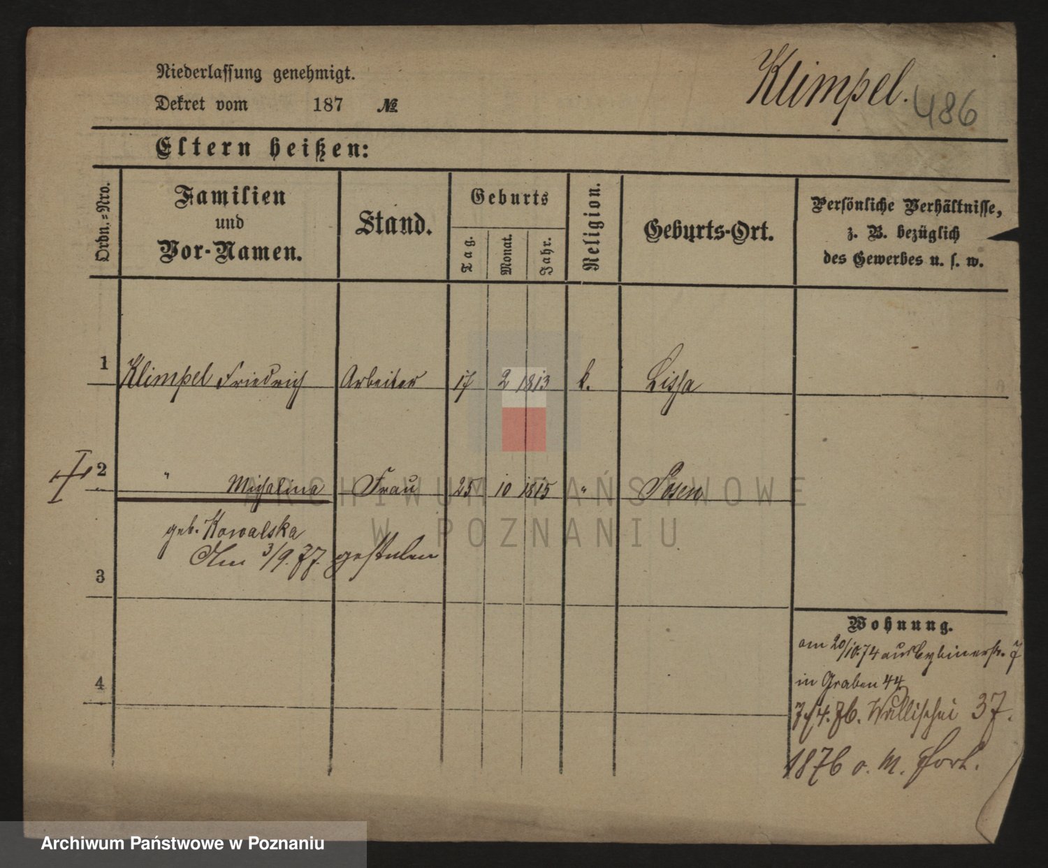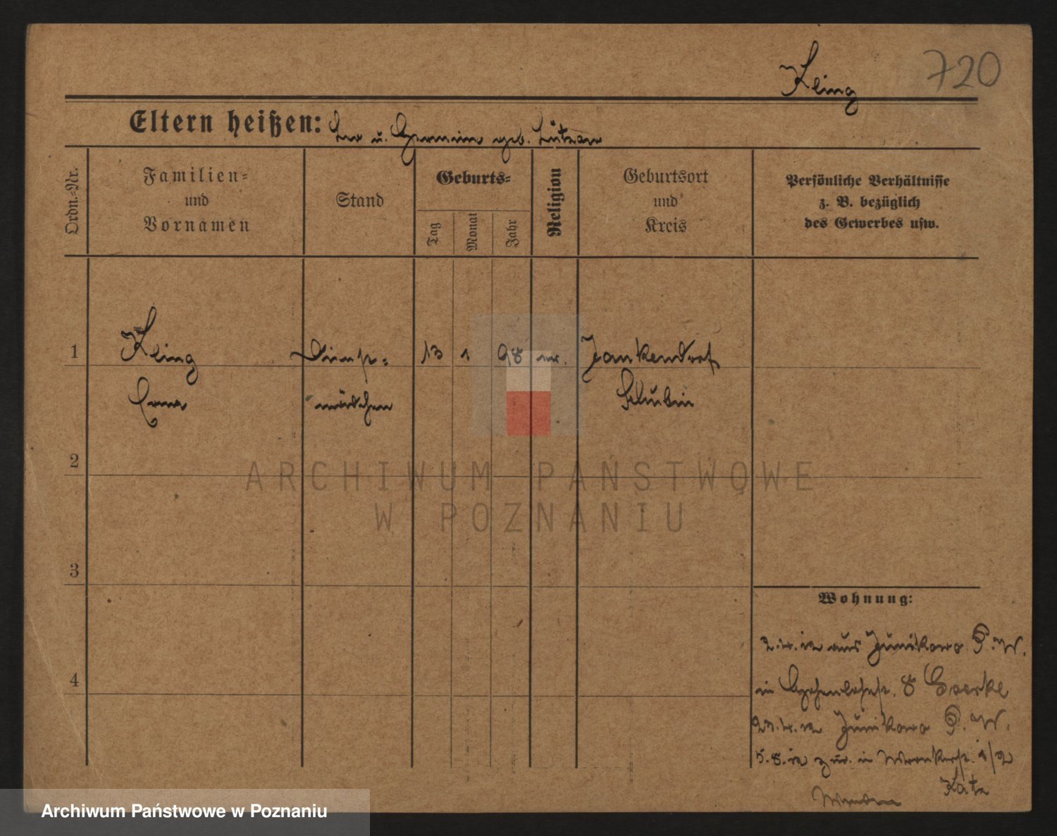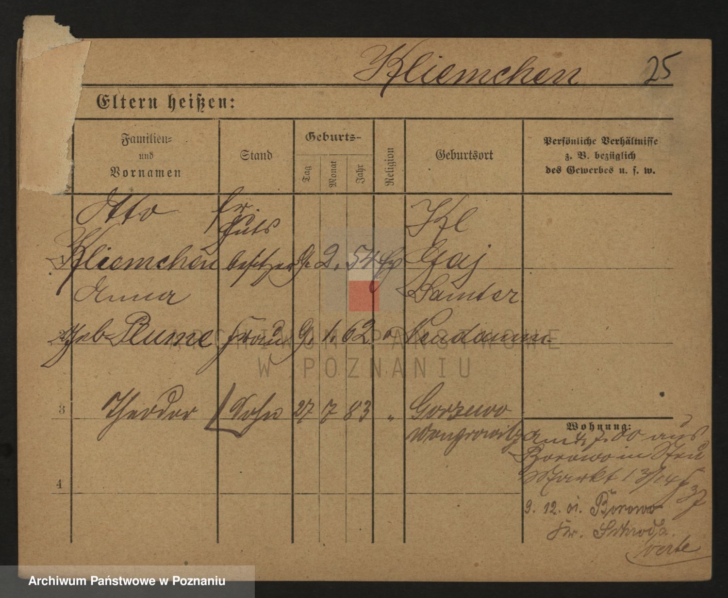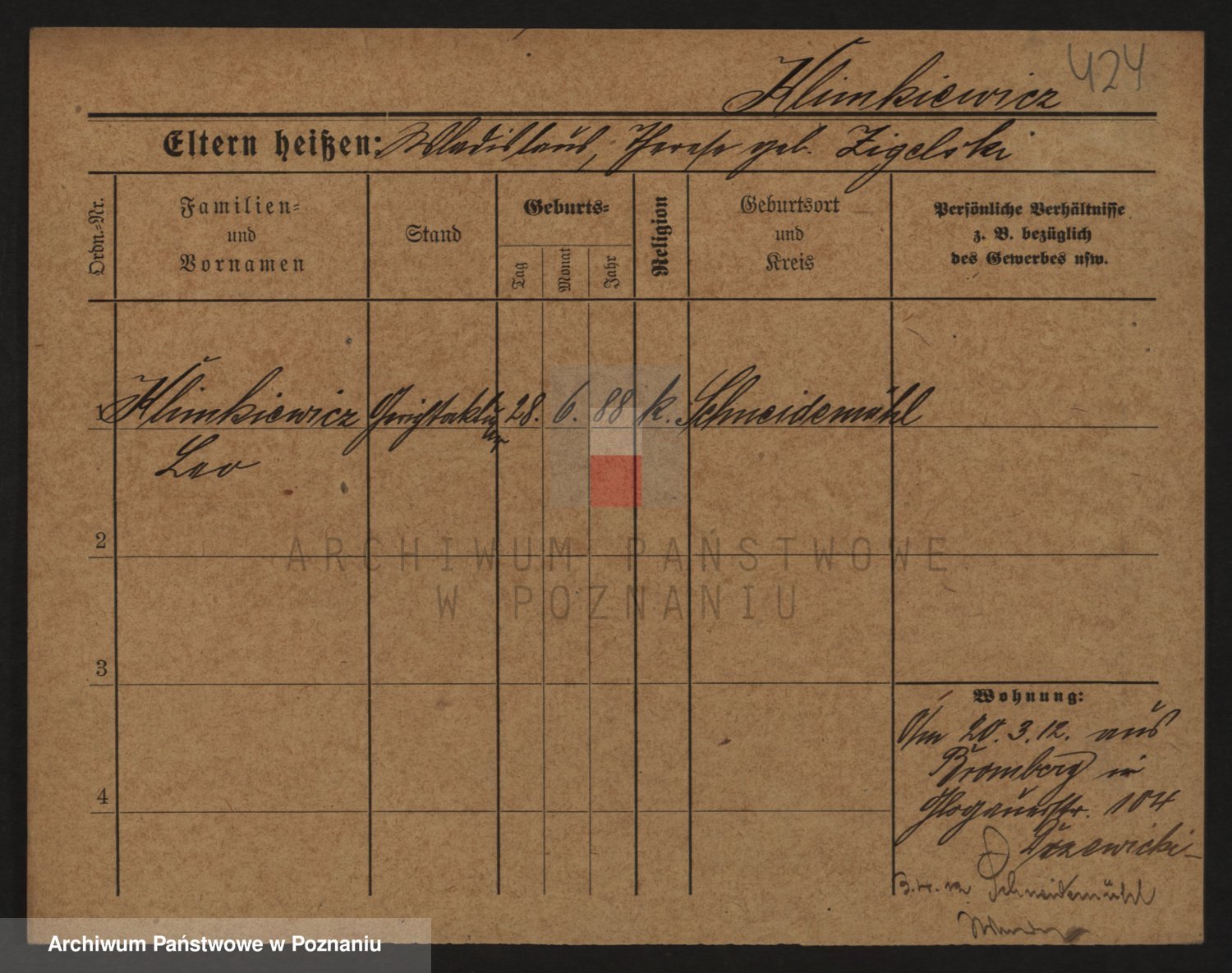 Podgląd karty osobowej dostępny jest po kliknięciu na nazwisko lub ikonkę karty. Można dokonywać powiększenia (ikony na górze) lub przechodzić między kolejnymi skanami (strzałki po bokach).