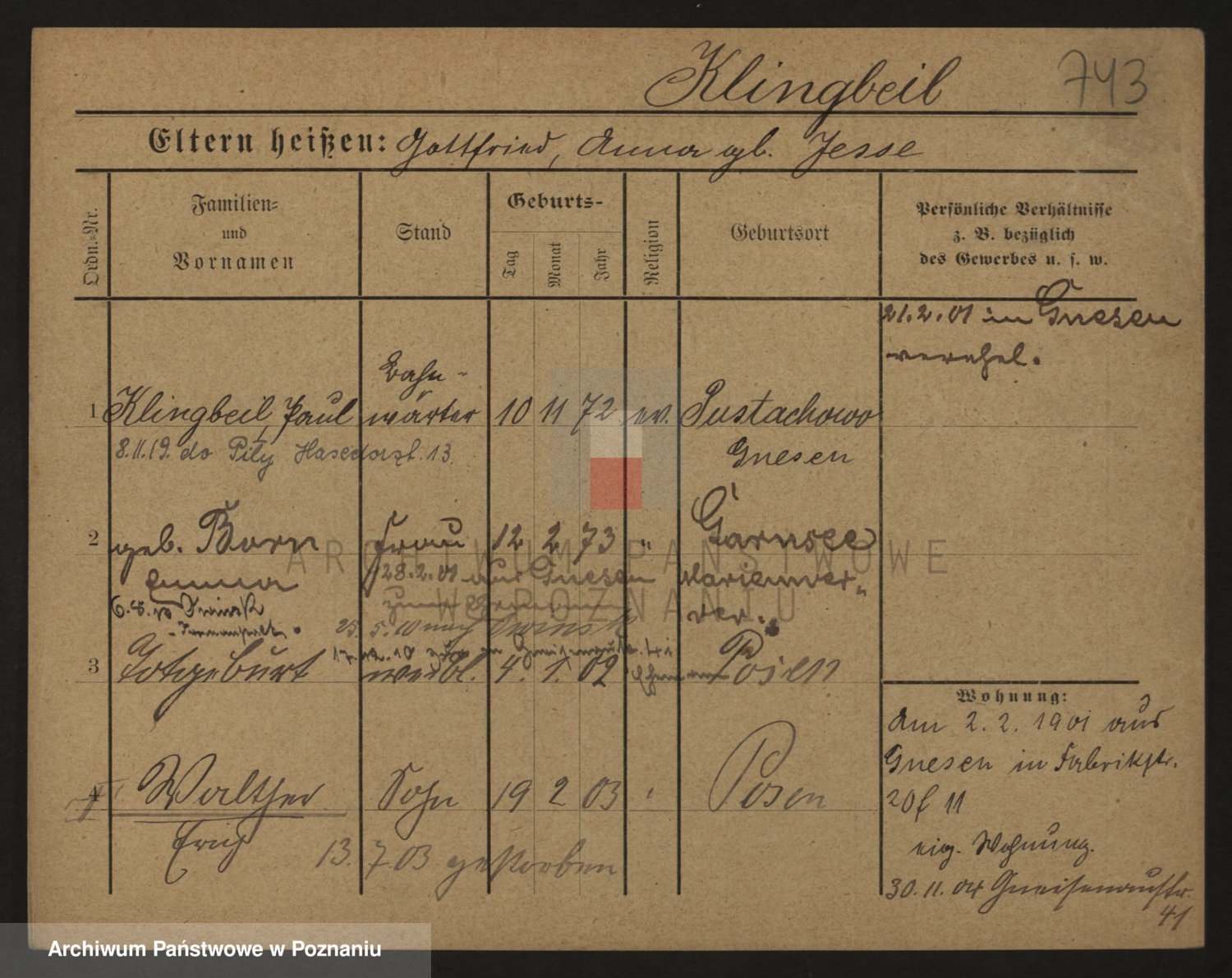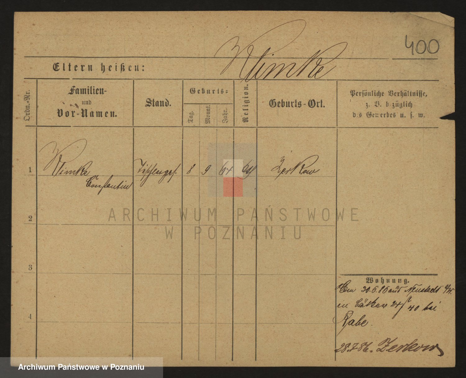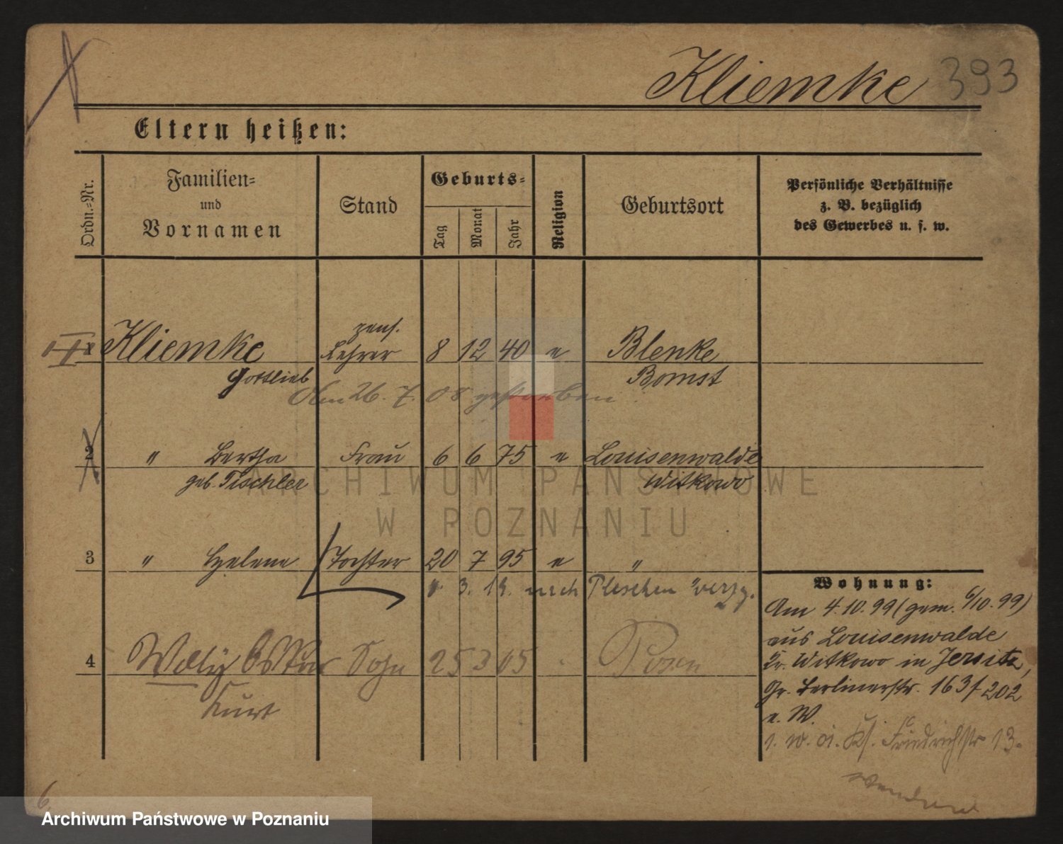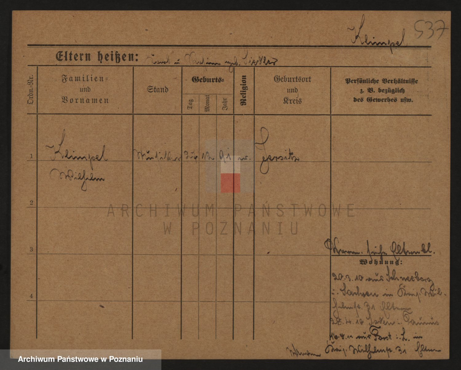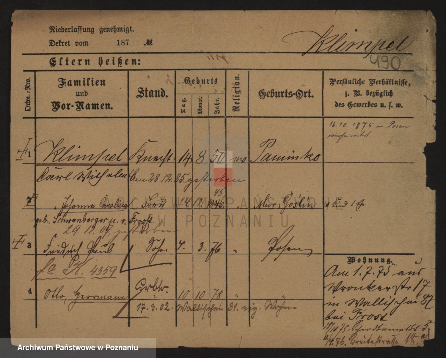 Podgląd karty osobowej dostępny jest po kliknięciu na nazwisko lub ikonkę karty. Można dokonywać powiększenia (ikony na górze) lub przechodzić między kolejnymi skanami (strzałki po bokach).
