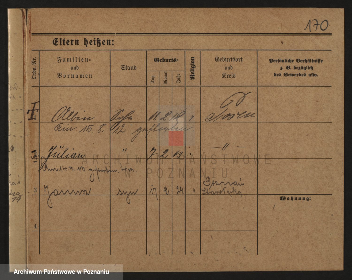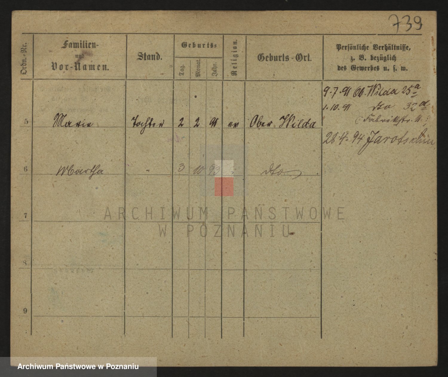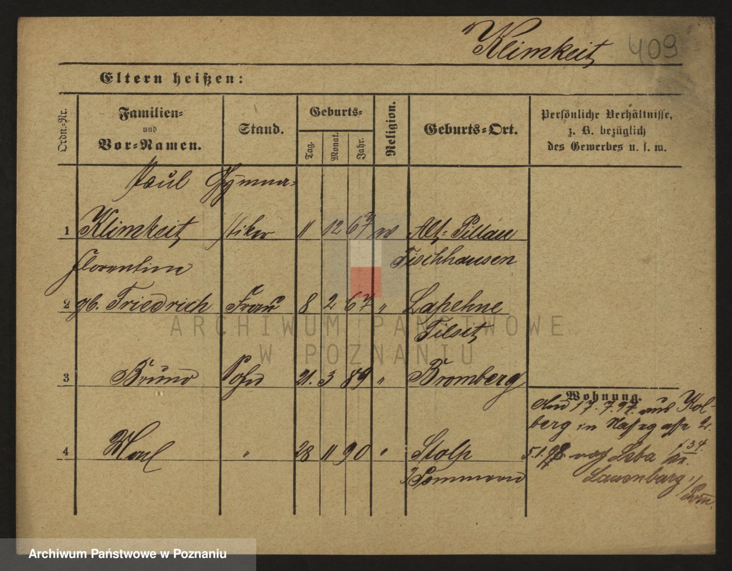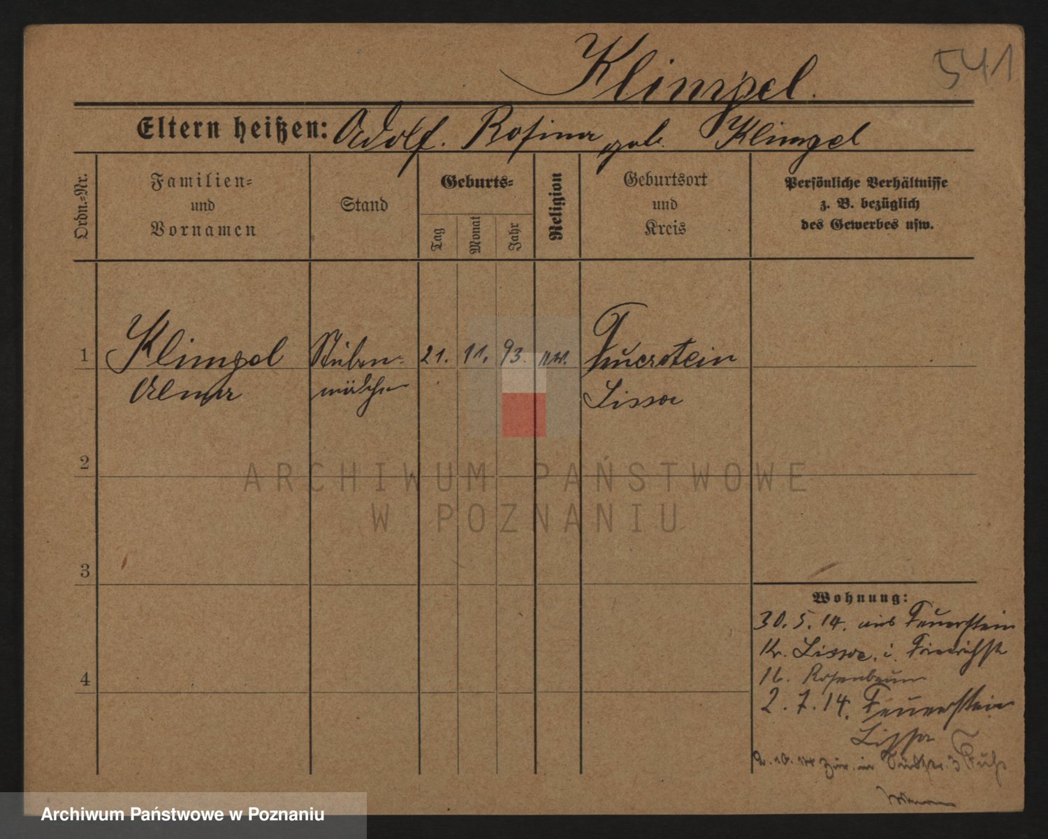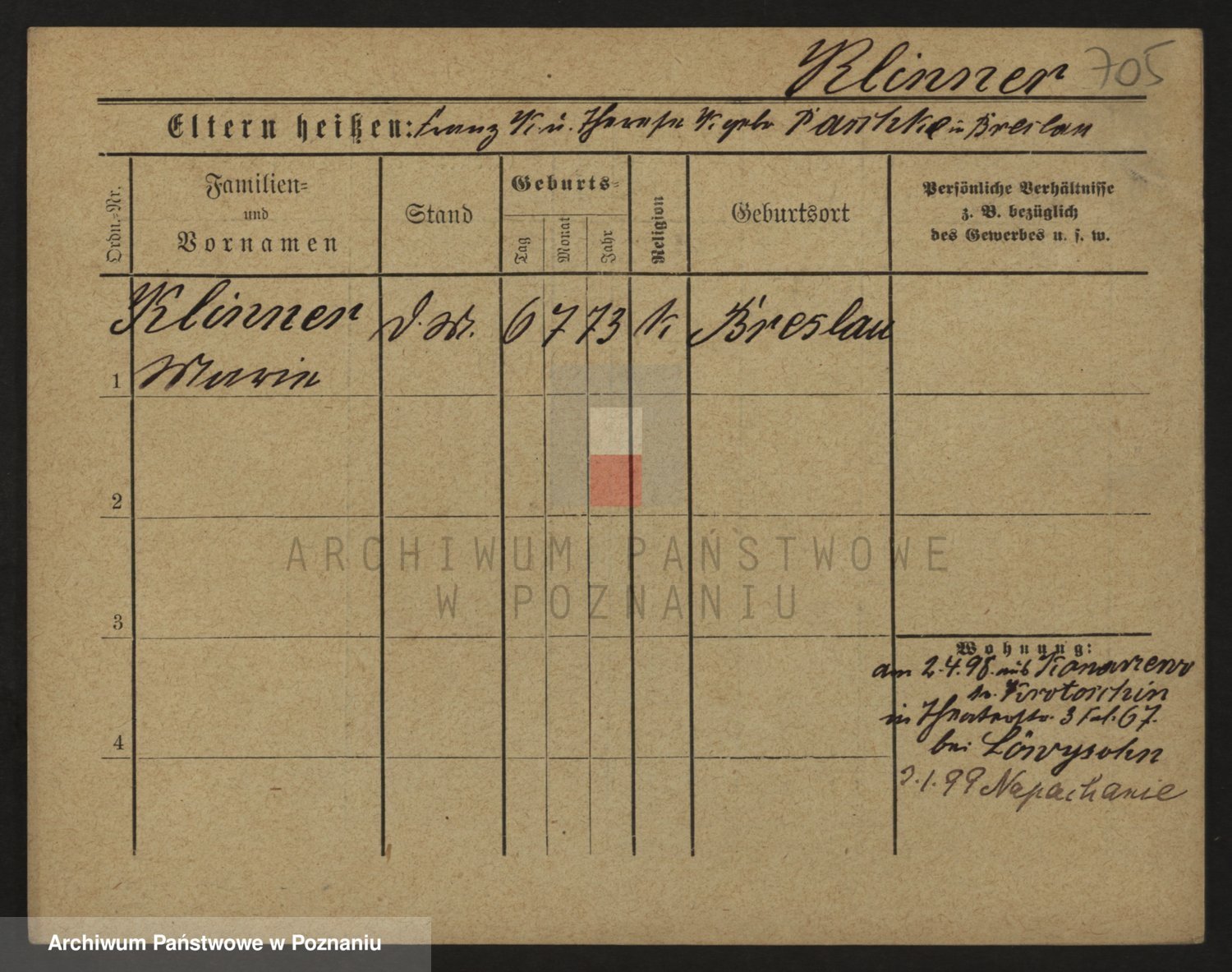 Podgląd karty osobowej dostępny jest po kliknięciu na nazwisko lub ikonkę karty. Można dokonywać powiększenia (ikony na górze) lub przechodzić między kolejnymi skanami (strzałki po bokach).