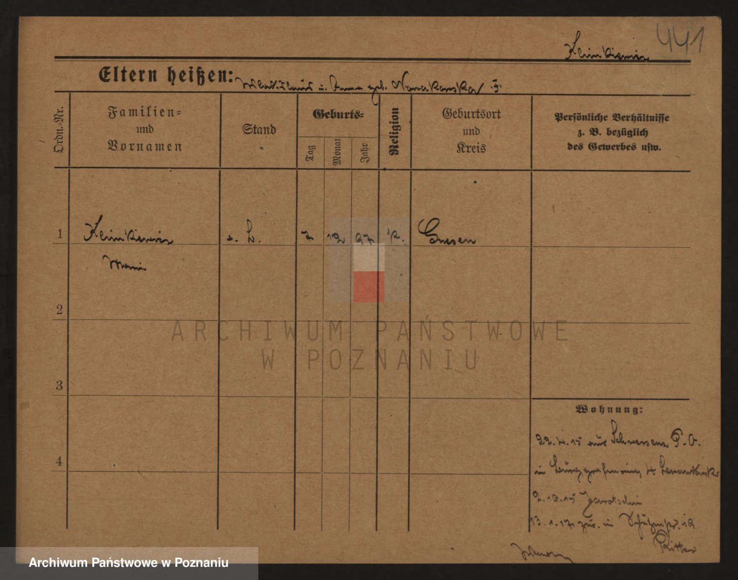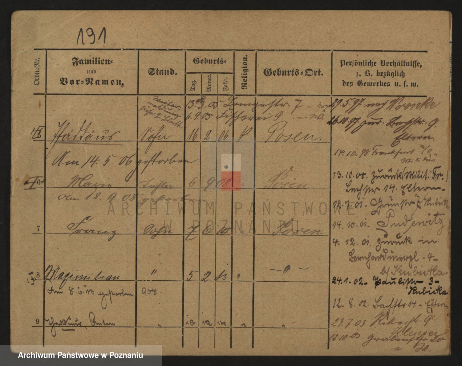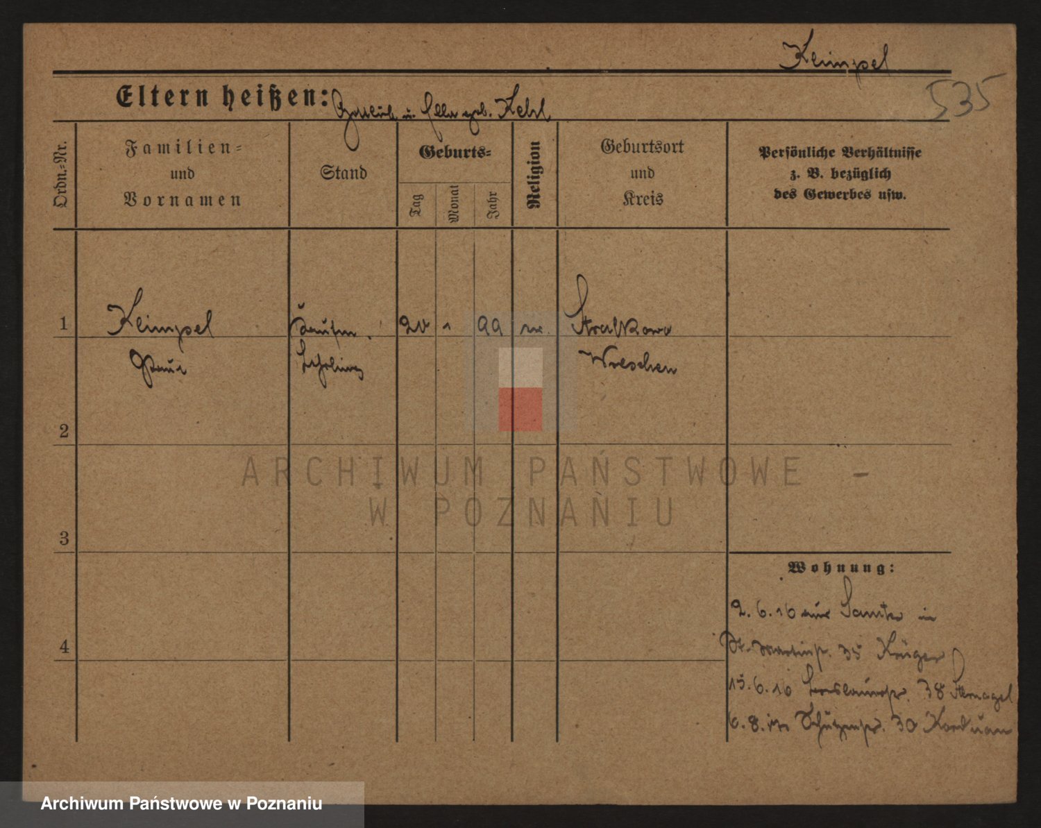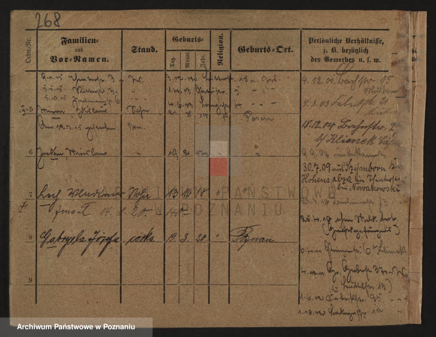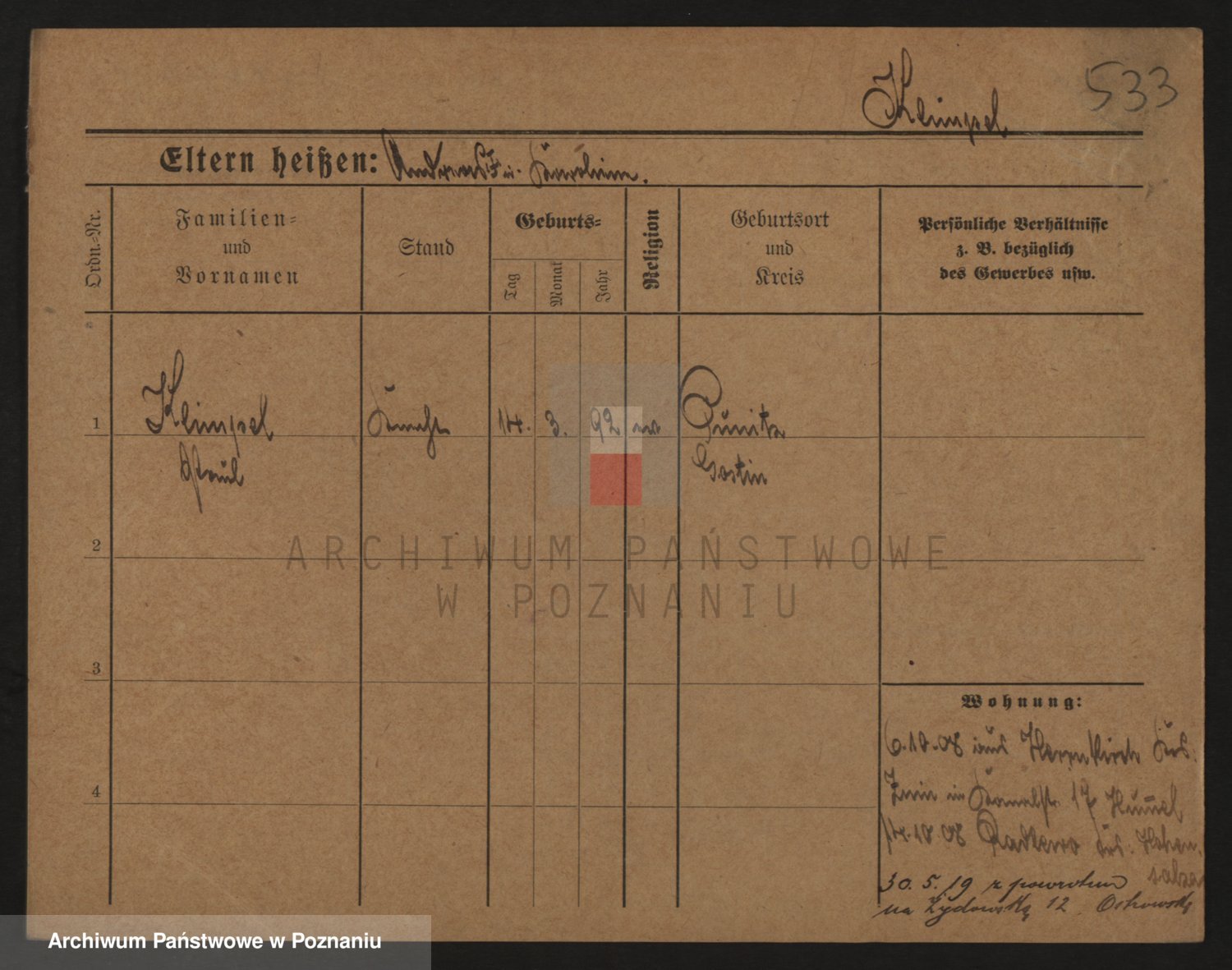 Podgląd karty osobowej dostępny jest po kliknięciu na nazwisko lub ikonkę karty. Można dokonywać powiększenia (ikony na górze) lub przechodzić między kolejnymi skanami (strzałki po bokach).