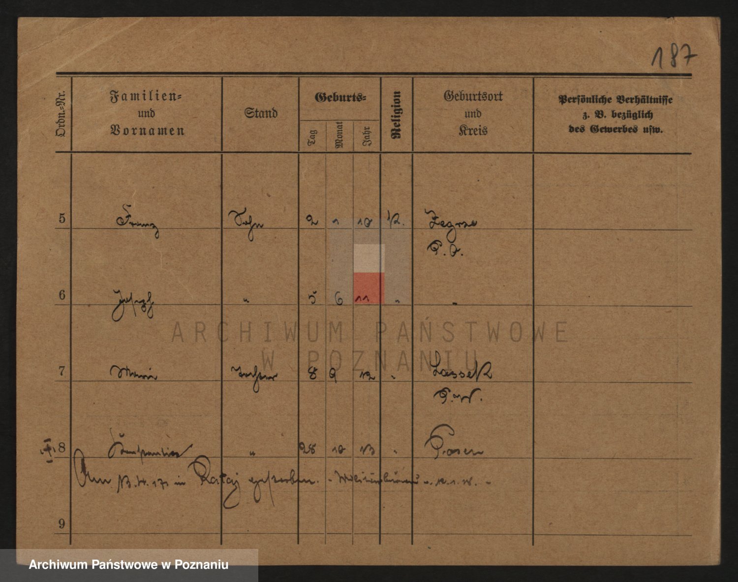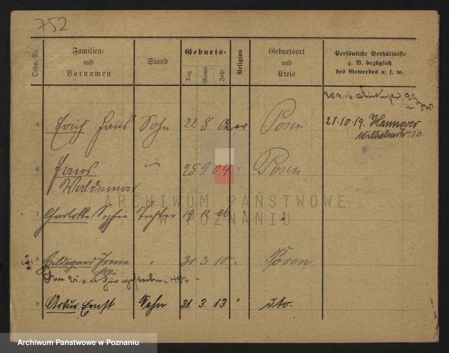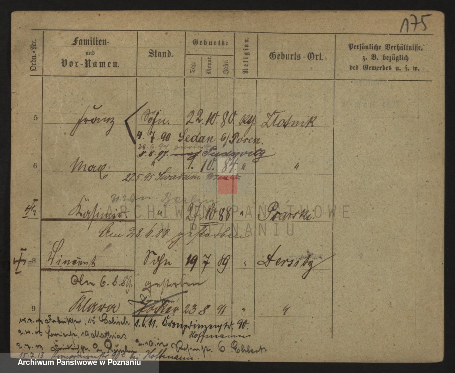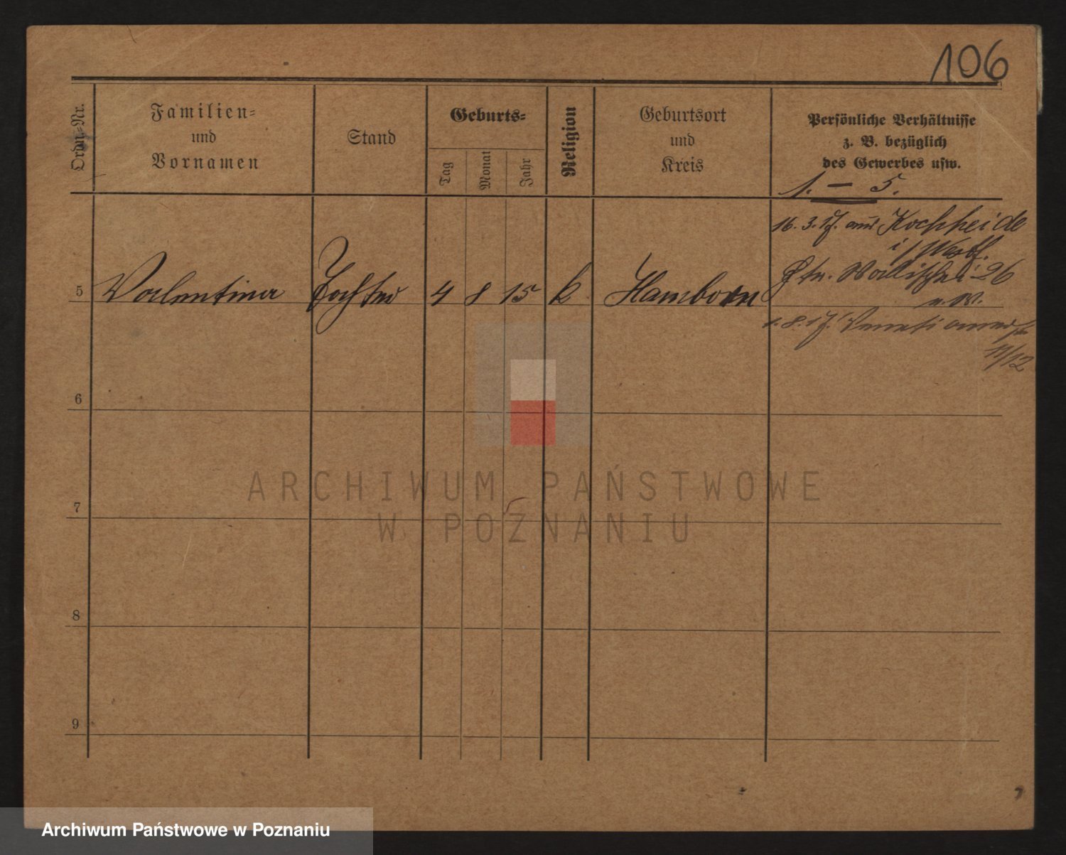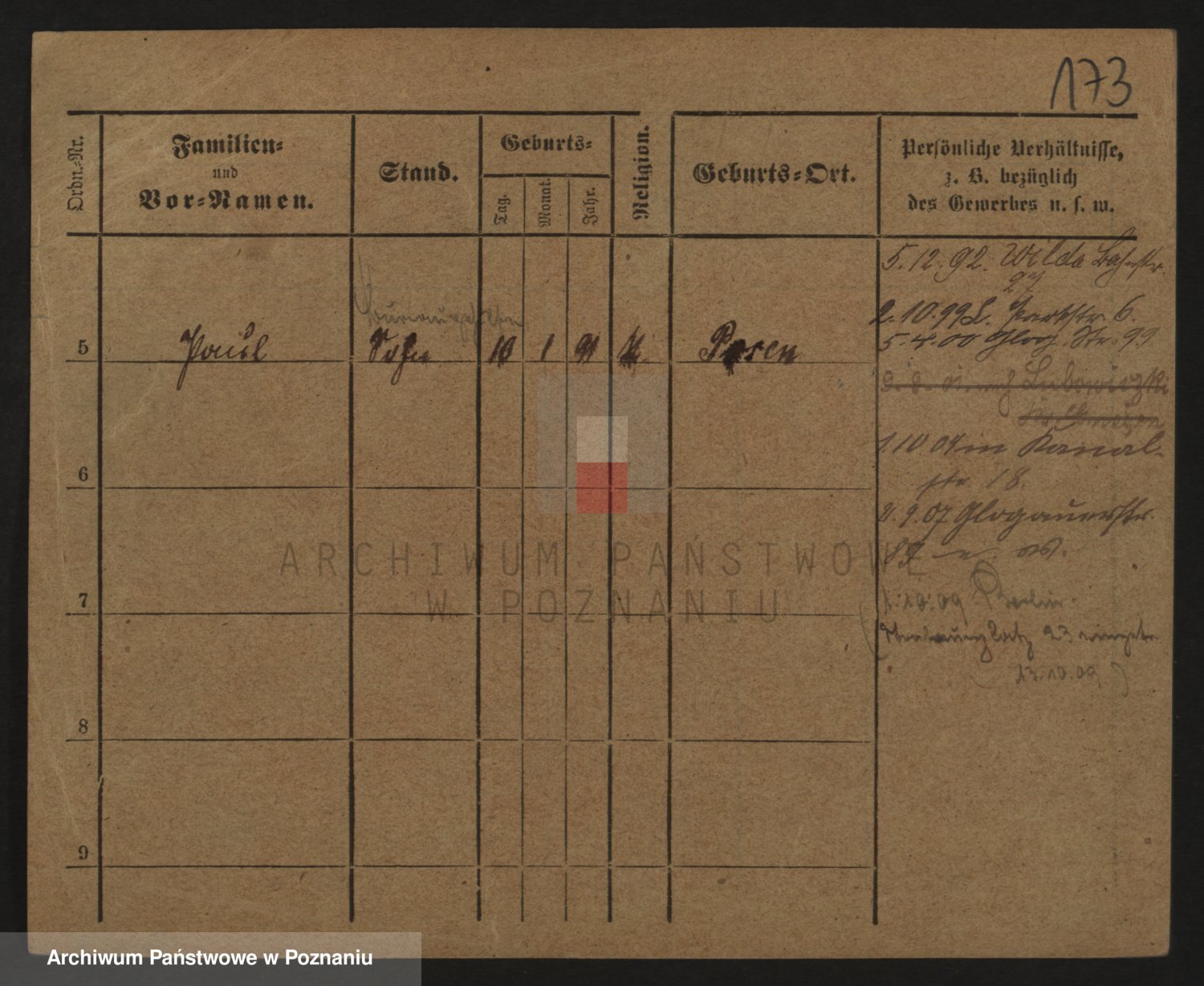 Podgląd karty osobowej dostępny jest po kliknięciu na nazwisko lub ikonkę karty. Można dokonywać powiększenia (ikony na górze) lub przechodzić między kolejnymi skanami (strzałki po bokach).