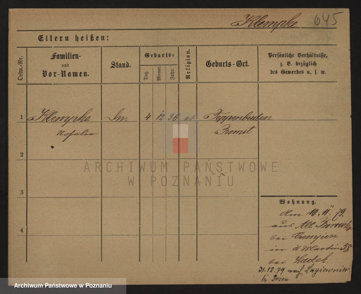 Kliemchen z d. Grabowska von, Helene Anna