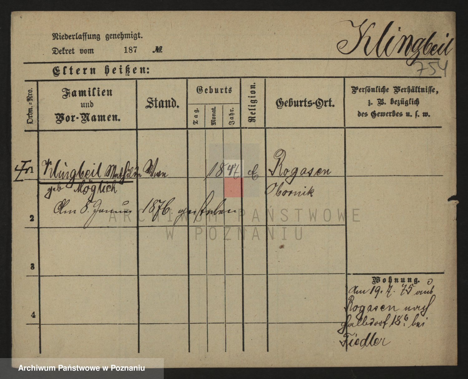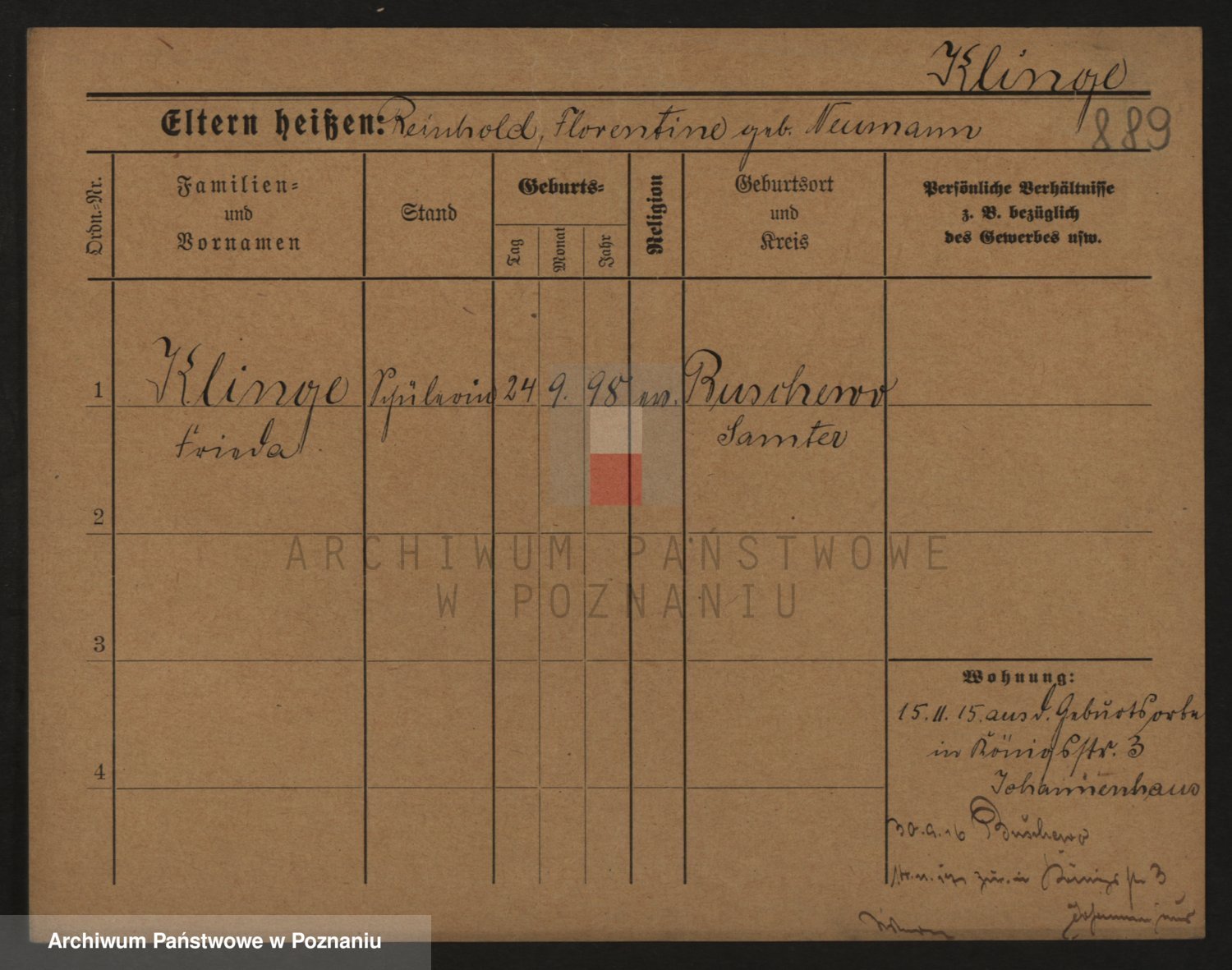 Klinge z d. Kozlicka, Johanna