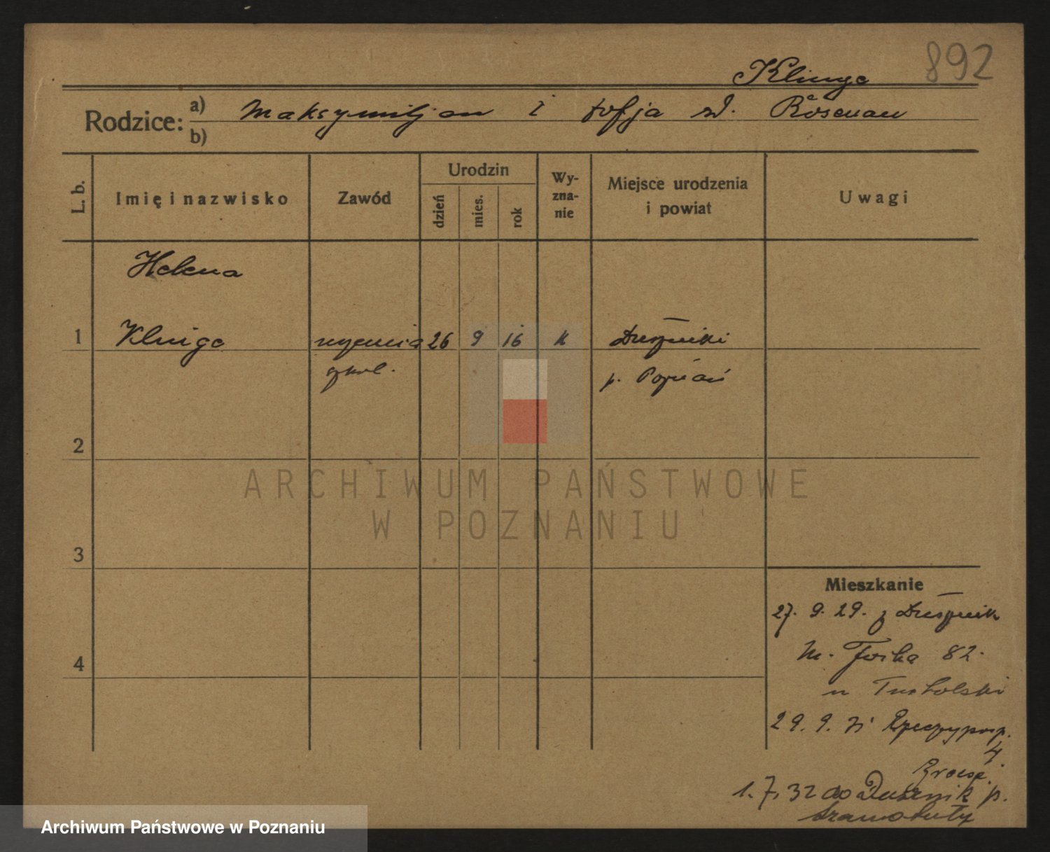 Klinge z d. Zgorzelak, Helena