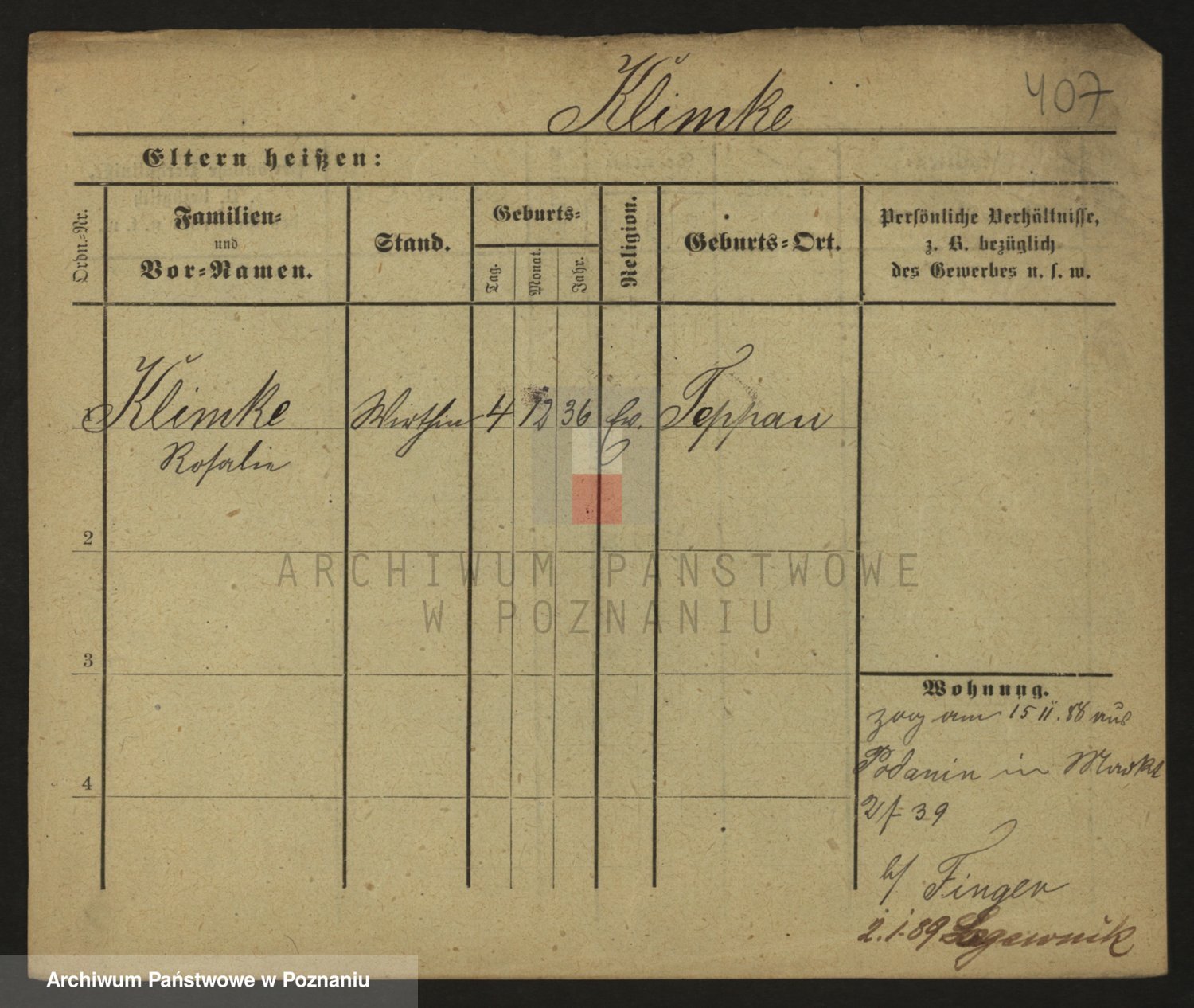 Klinge z d. Jankowiak, Melanja