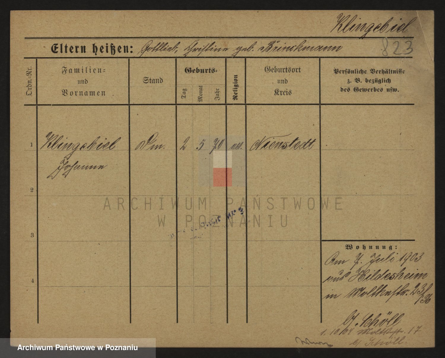 Klinge, Johann Gottlieb