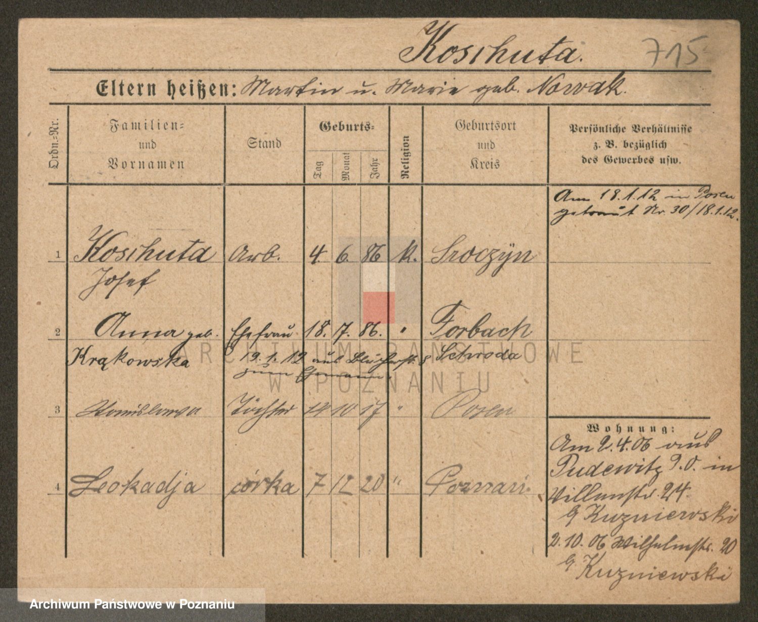 Kosch z d. Schmidt I v. Sroczynska, Johanna