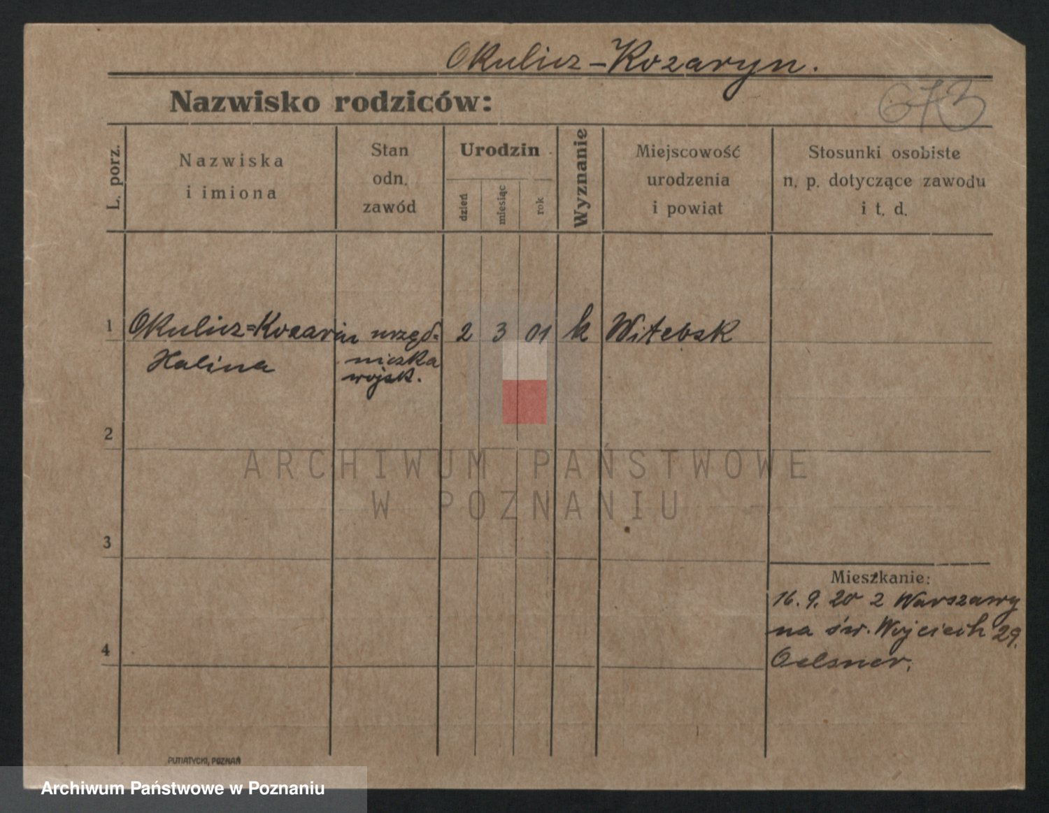Kozaryn Okulicz z d. Śniegocka, Marja