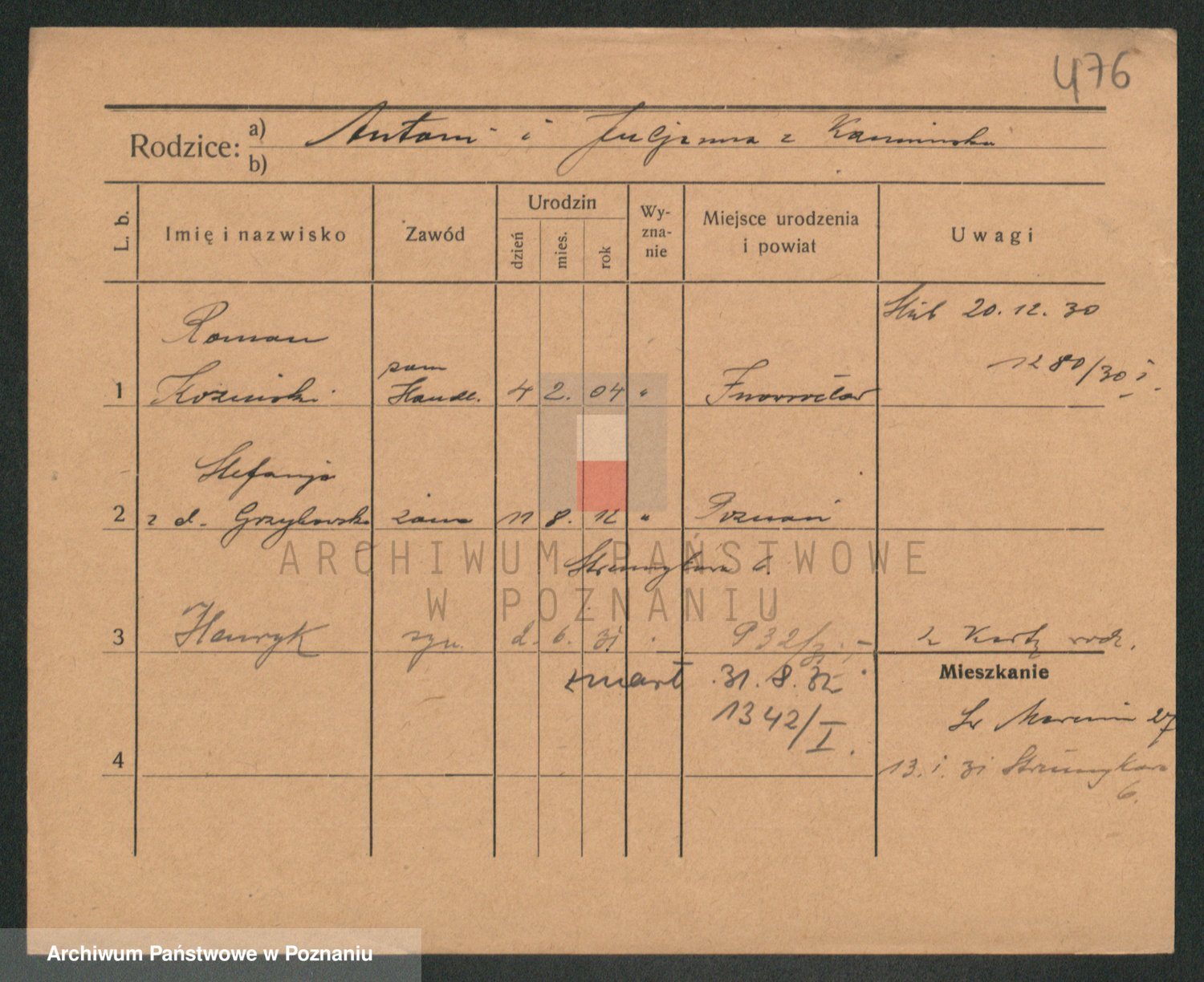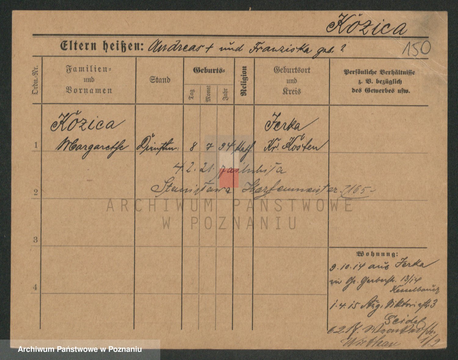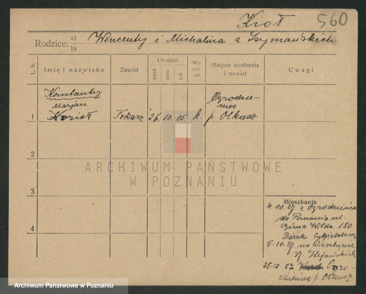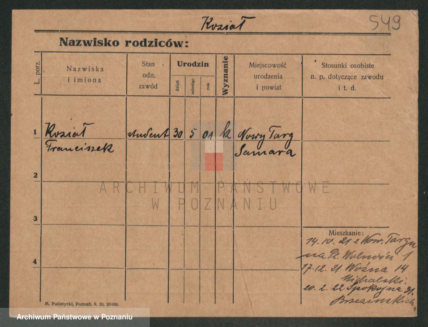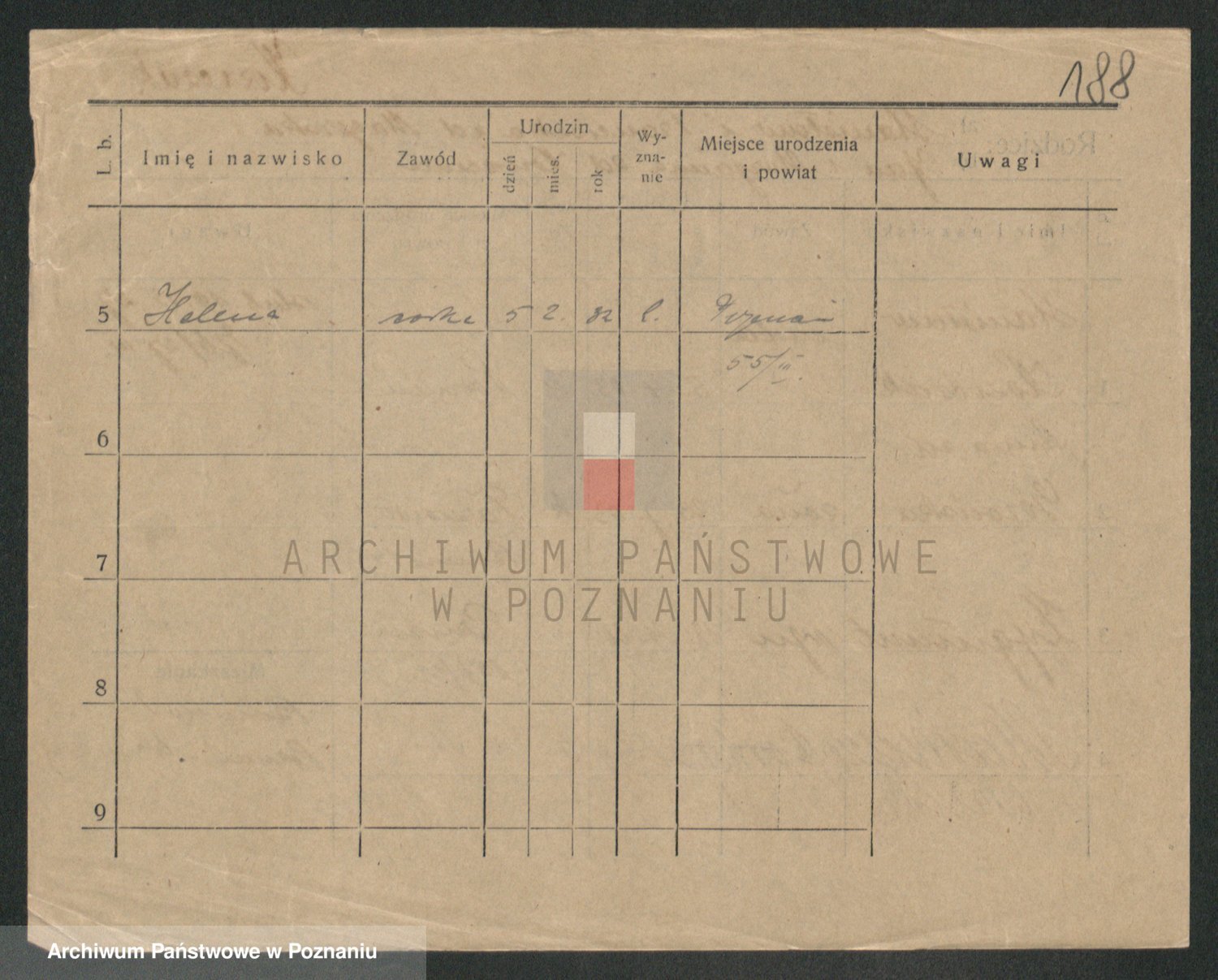 Podgląd karty osobowej dostępny jest po kliknięciu na nazwisko lub ikonkę karty. Można dokonywać powiększenia (ikony na górze) lub przechodzić między kolejnymi skanami (strzałki po bokach).