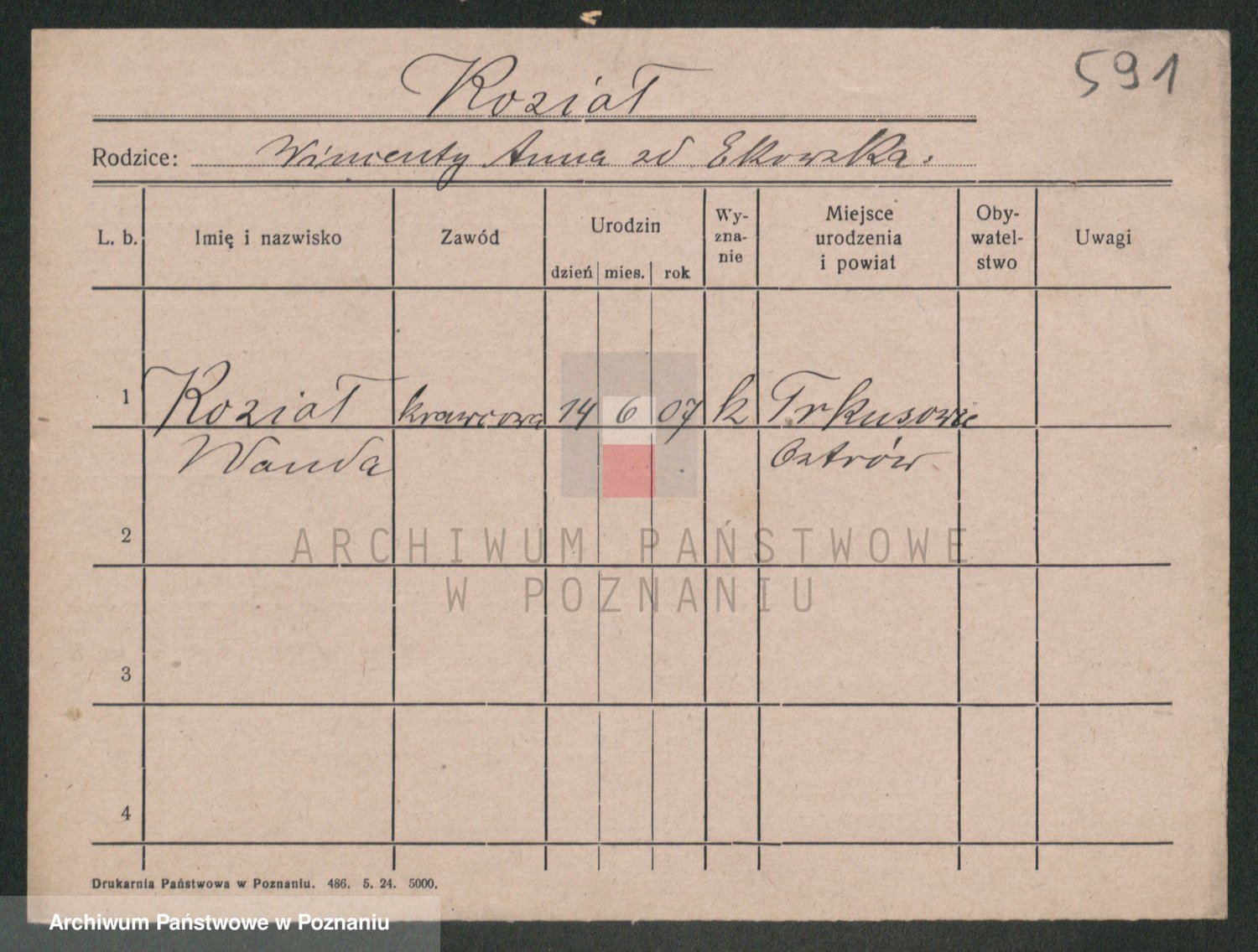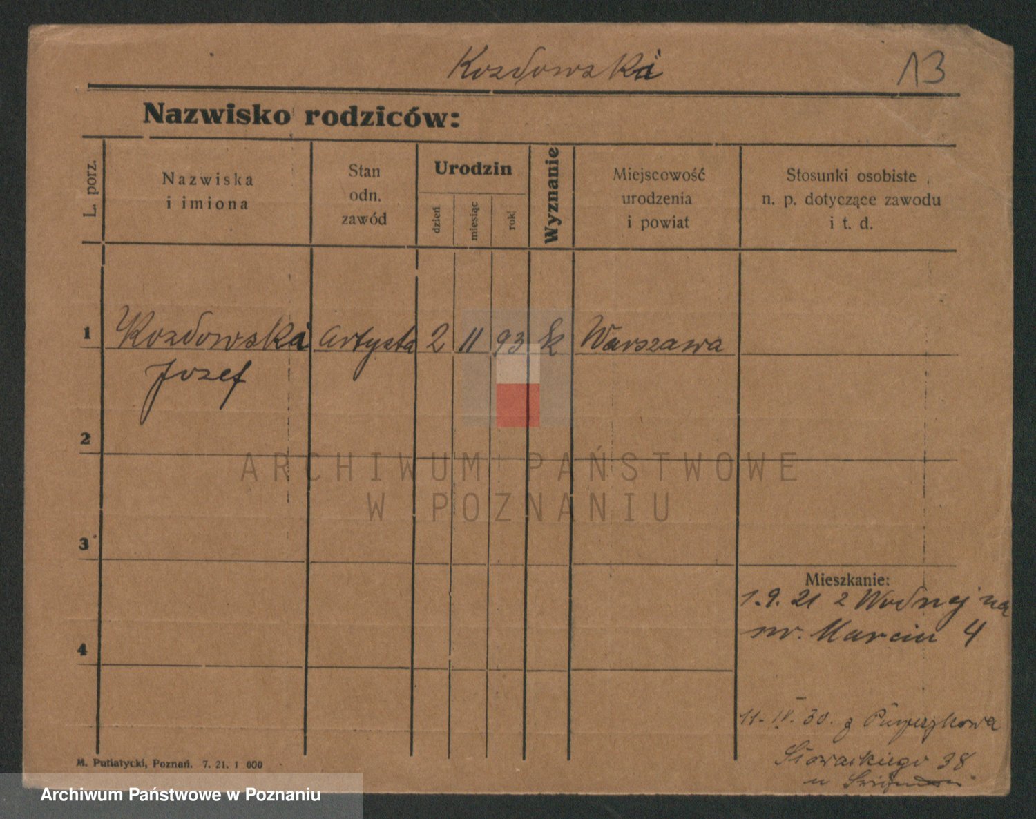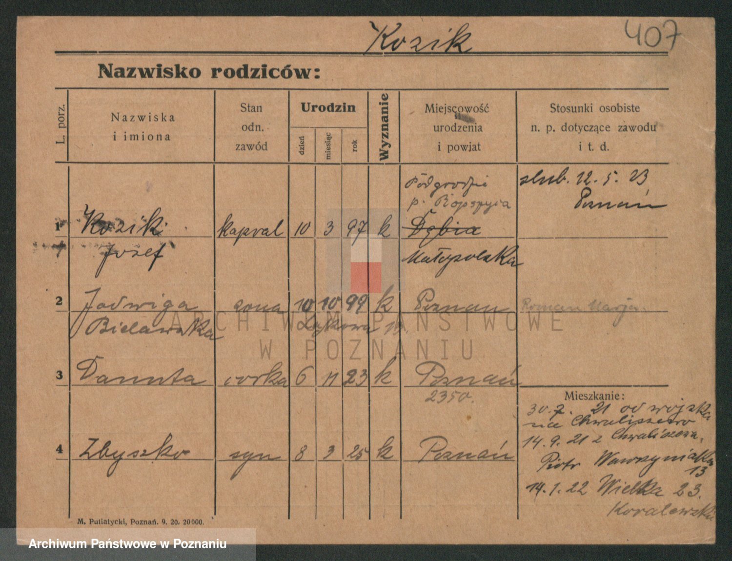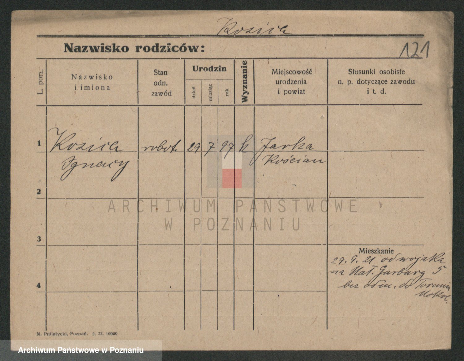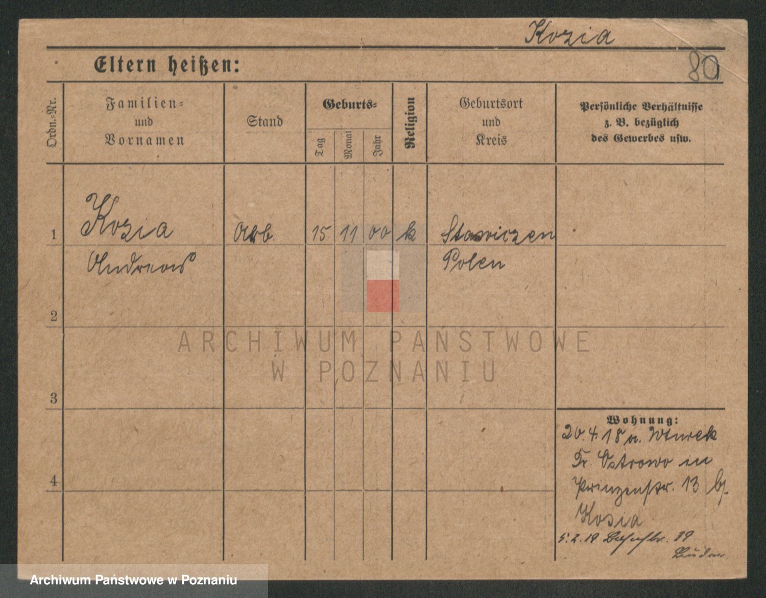 Podgląd karty osobowej dostępny jest po kliknięciu na nazwisko lub ikonkę karty. Można dokonywać powiększenia (ikony na górze) lub przechodzić między kolejnymi skanami (strzałki po bokach).