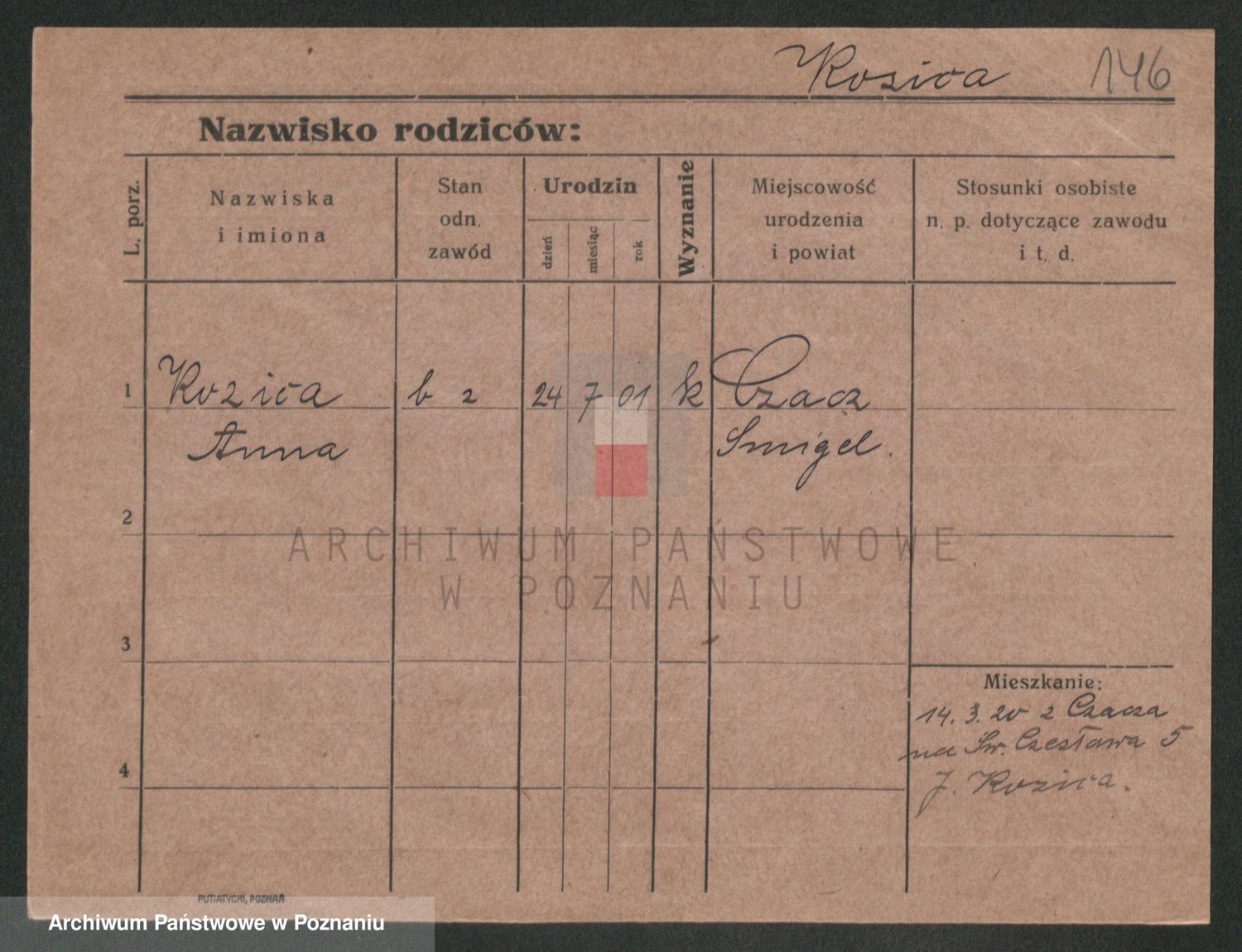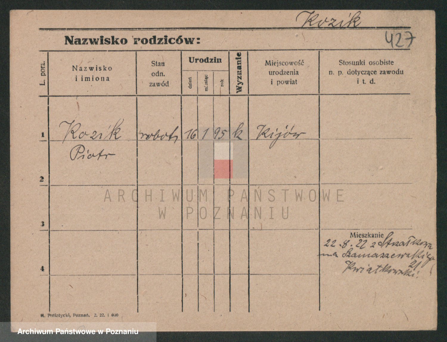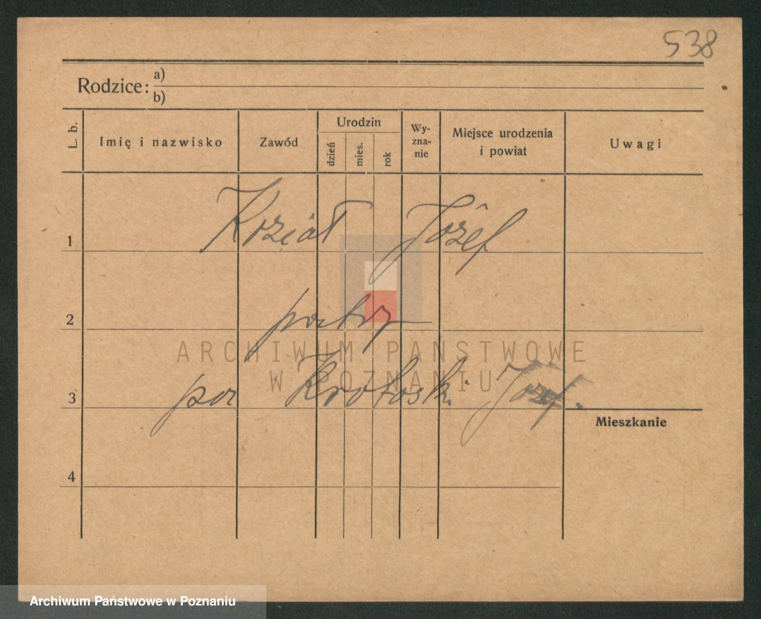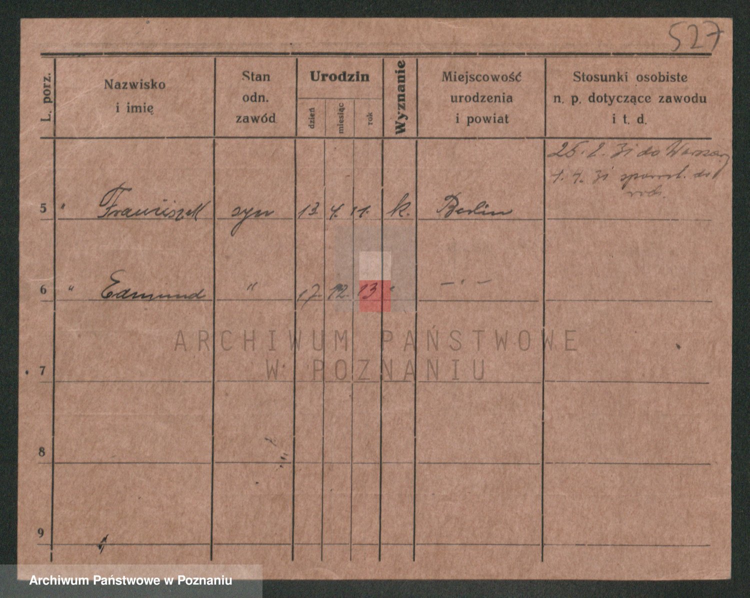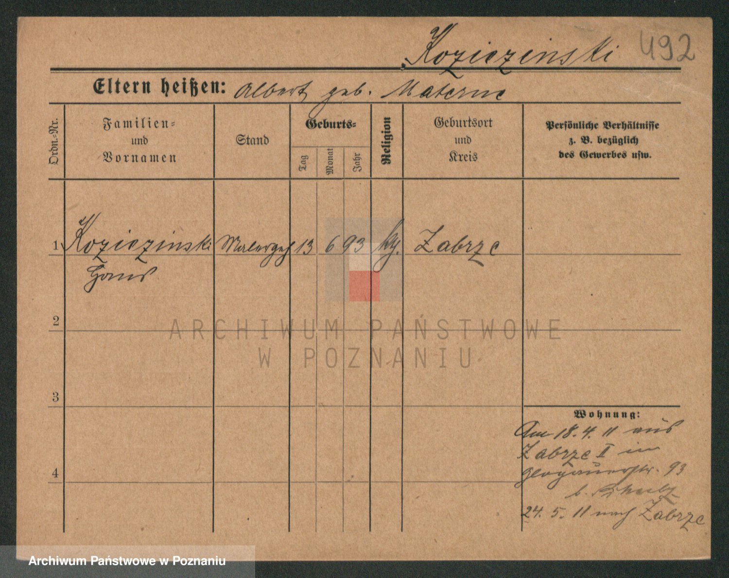Podgląd karty osobowej dostępny jest po kliknięciu na nazwisko lub ikonkę karty. Można dokonywać powiększenia (ikony na górze) lub przechodzić między kolejnymi skanami (strzałki po bokach).