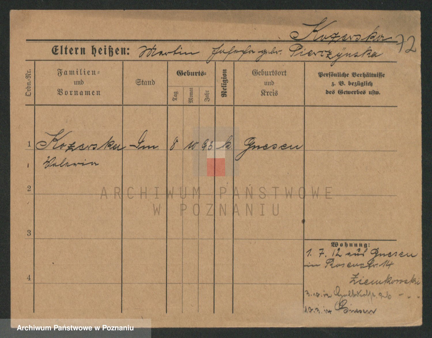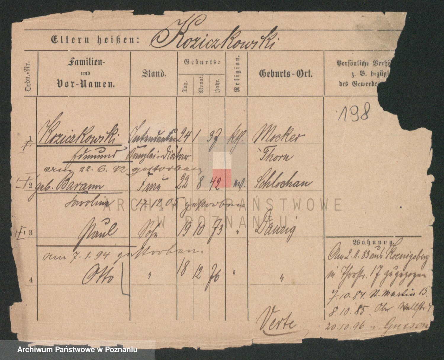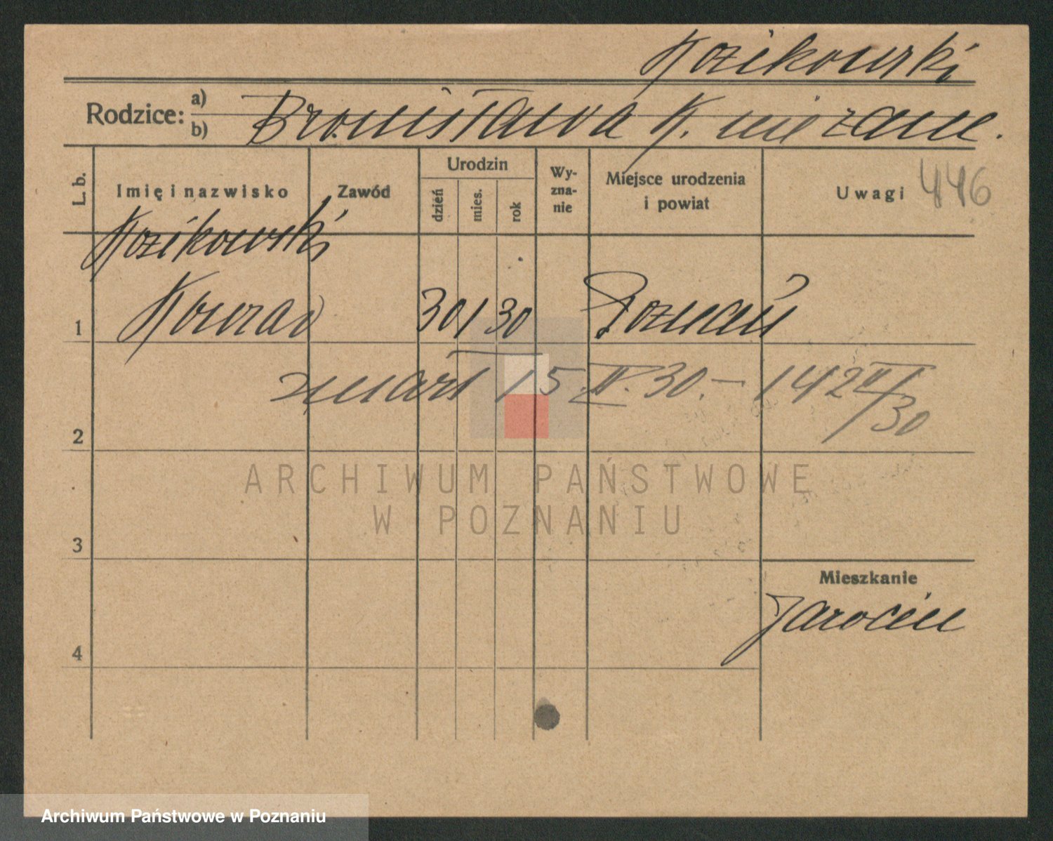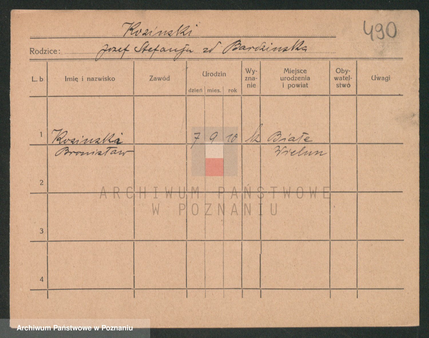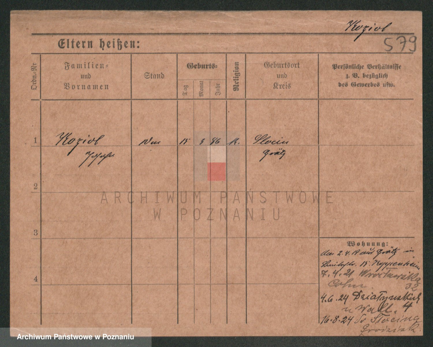 Podgląd karty osobowej dostępny jest po kliknięciu na nazwisko lub ikonkę karty. Można dokonywać powiększenia (ikony na górze) lub przechodzić między kolejnymi skanami (strzałki po bokach).