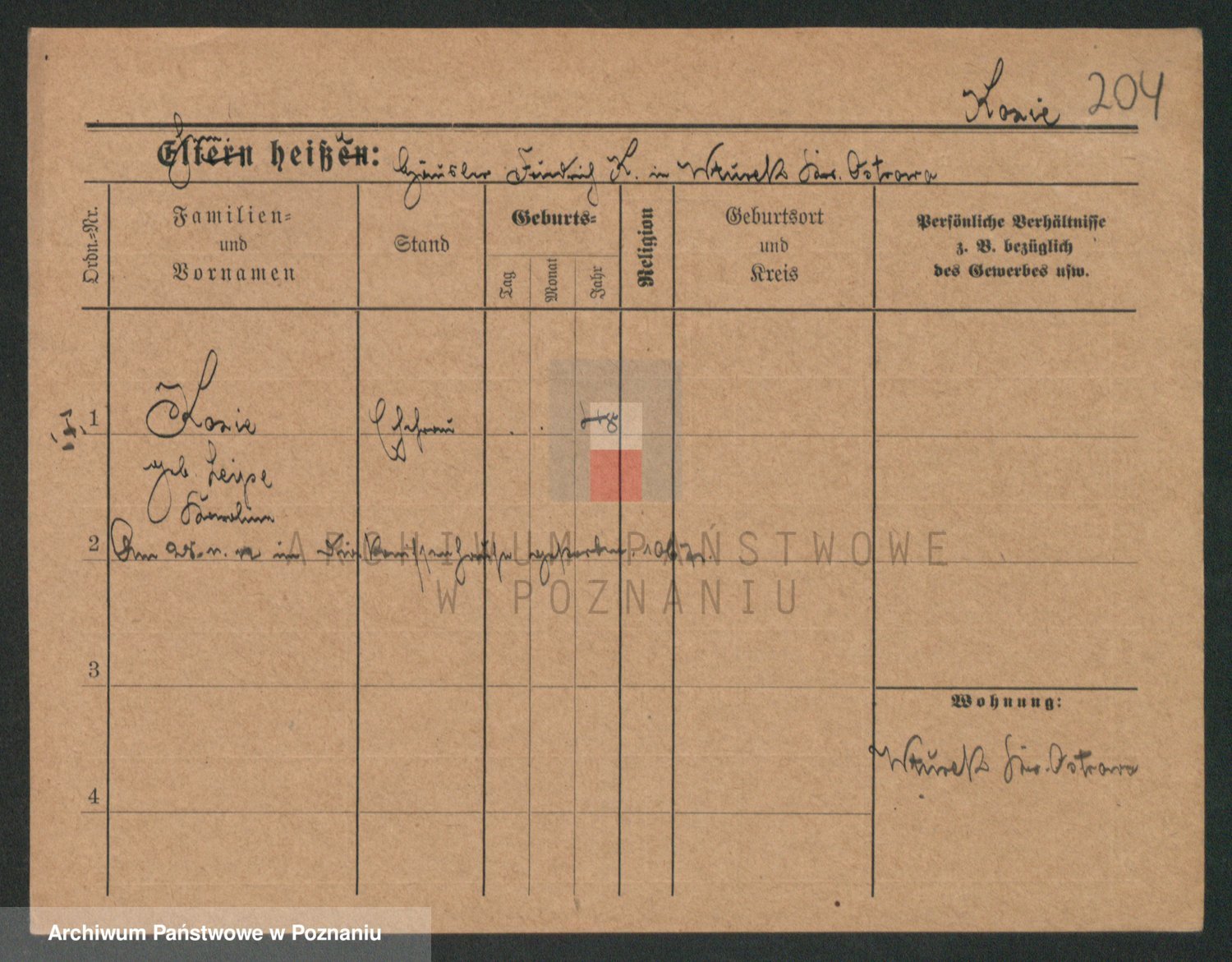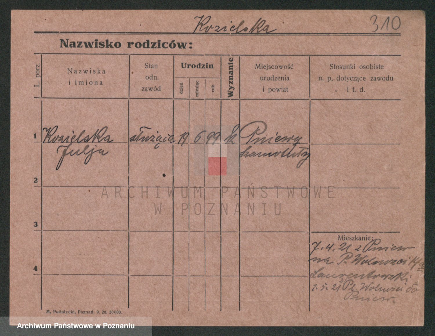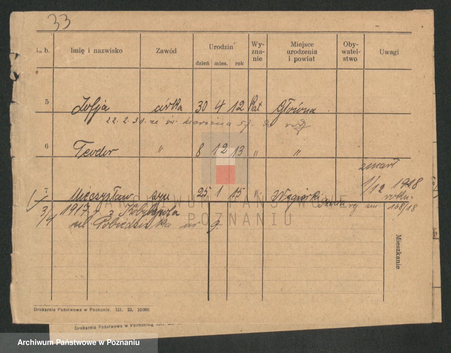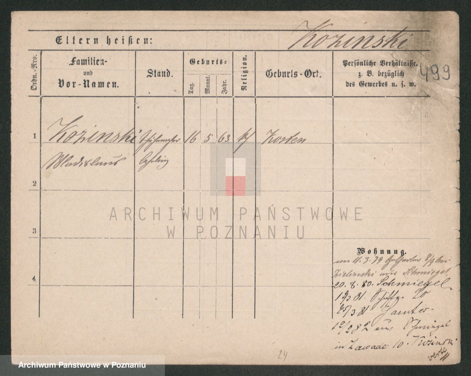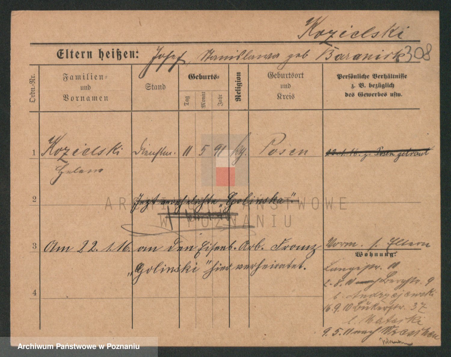 Podgląd karty osobowej dostępny jest po kliknięciu na nazwisko lub ikonkę karty. Można dokonywać powiększenia (ikony na górze) lub przechodzić między kolejnymi skanami (strzałki po bokach).