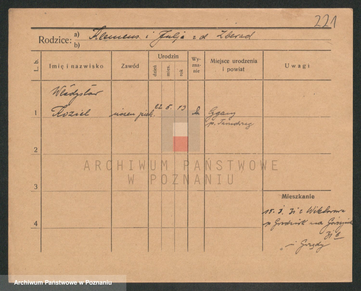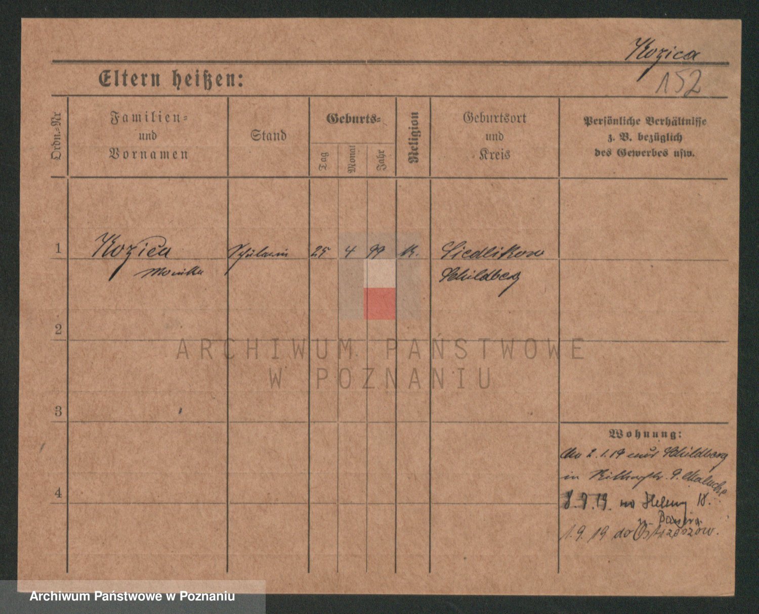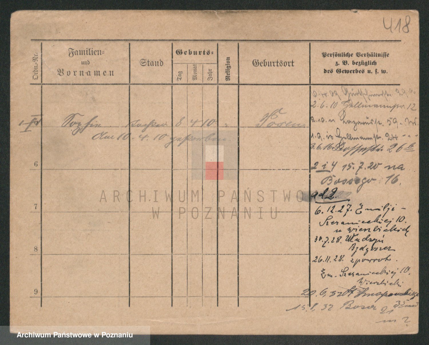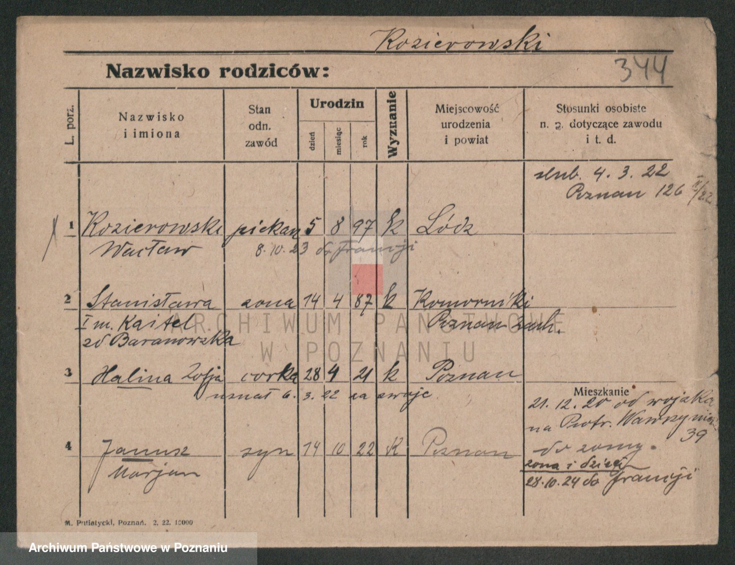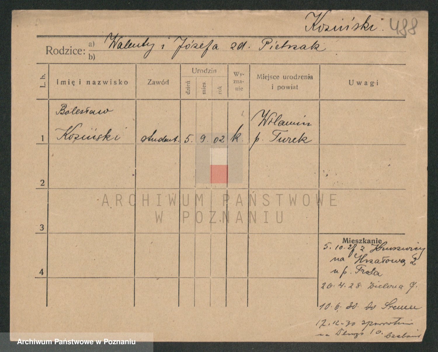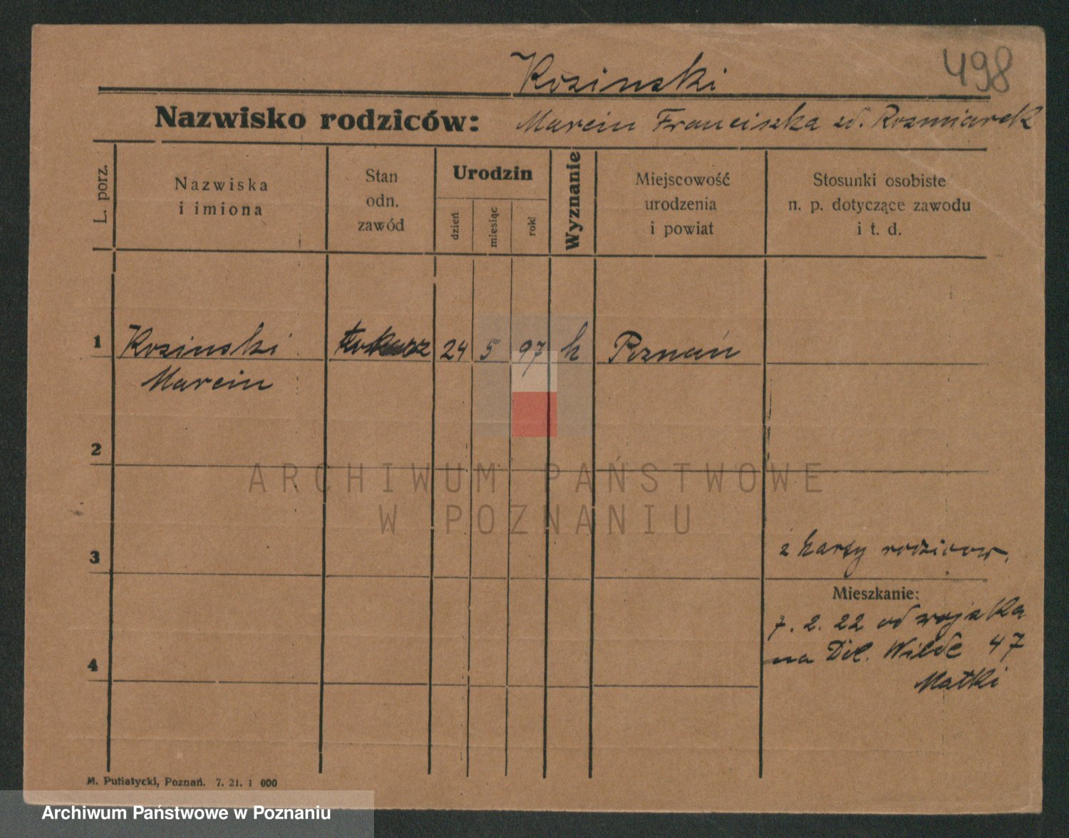 Podgląd karty osobowej dostępny jest po kliknięciu na nazwisko lub ikonkę karty. Można dokonywać powiększenia (ikony na górze) lub przechodzić między kolejnymi skanami (strzałki po bokach).