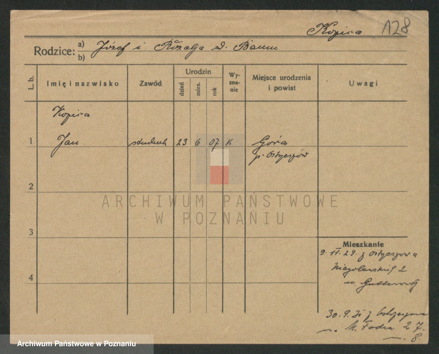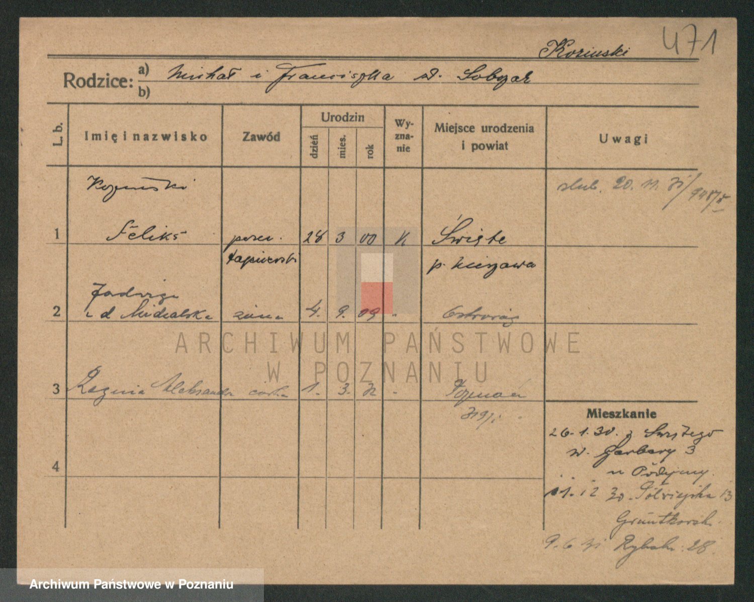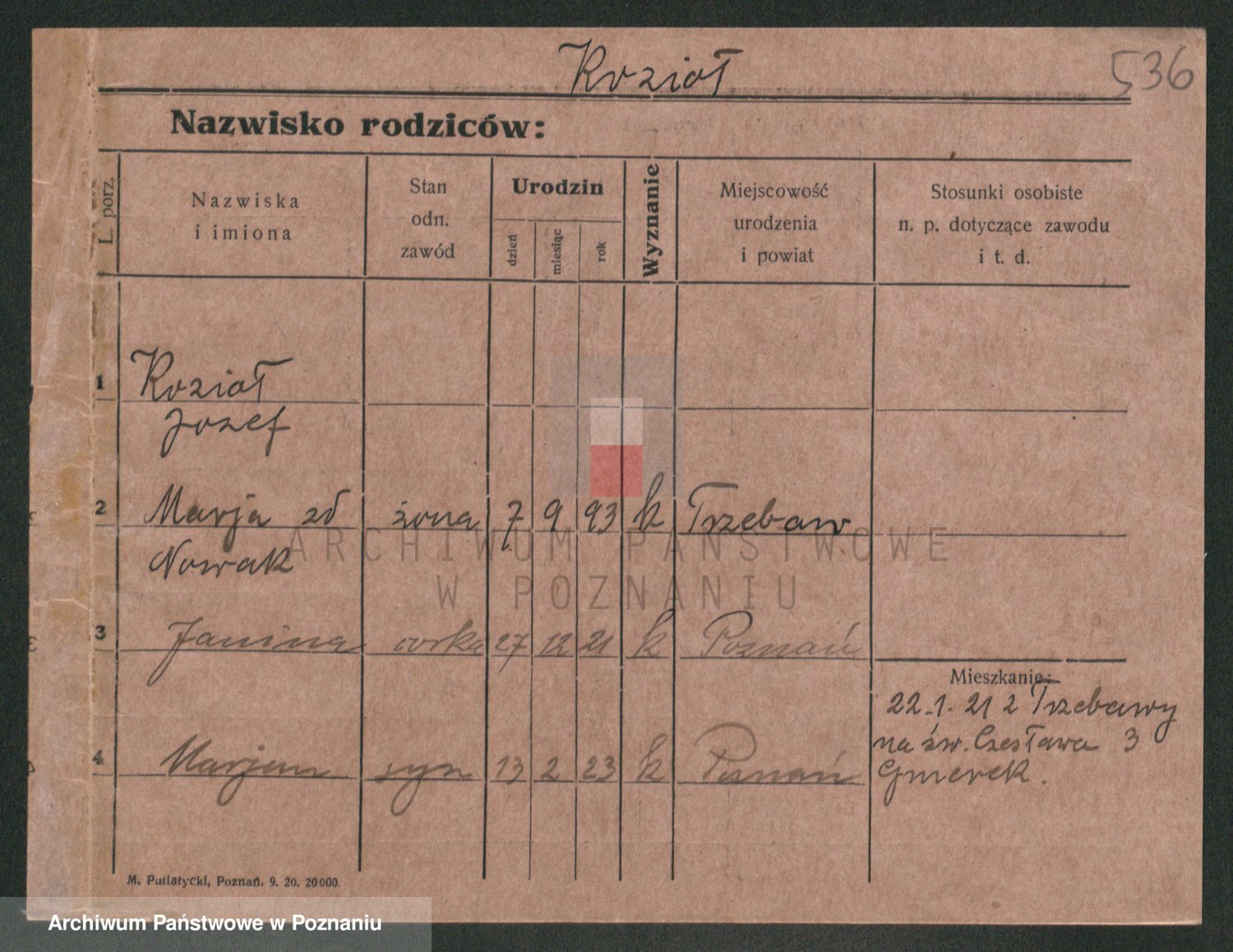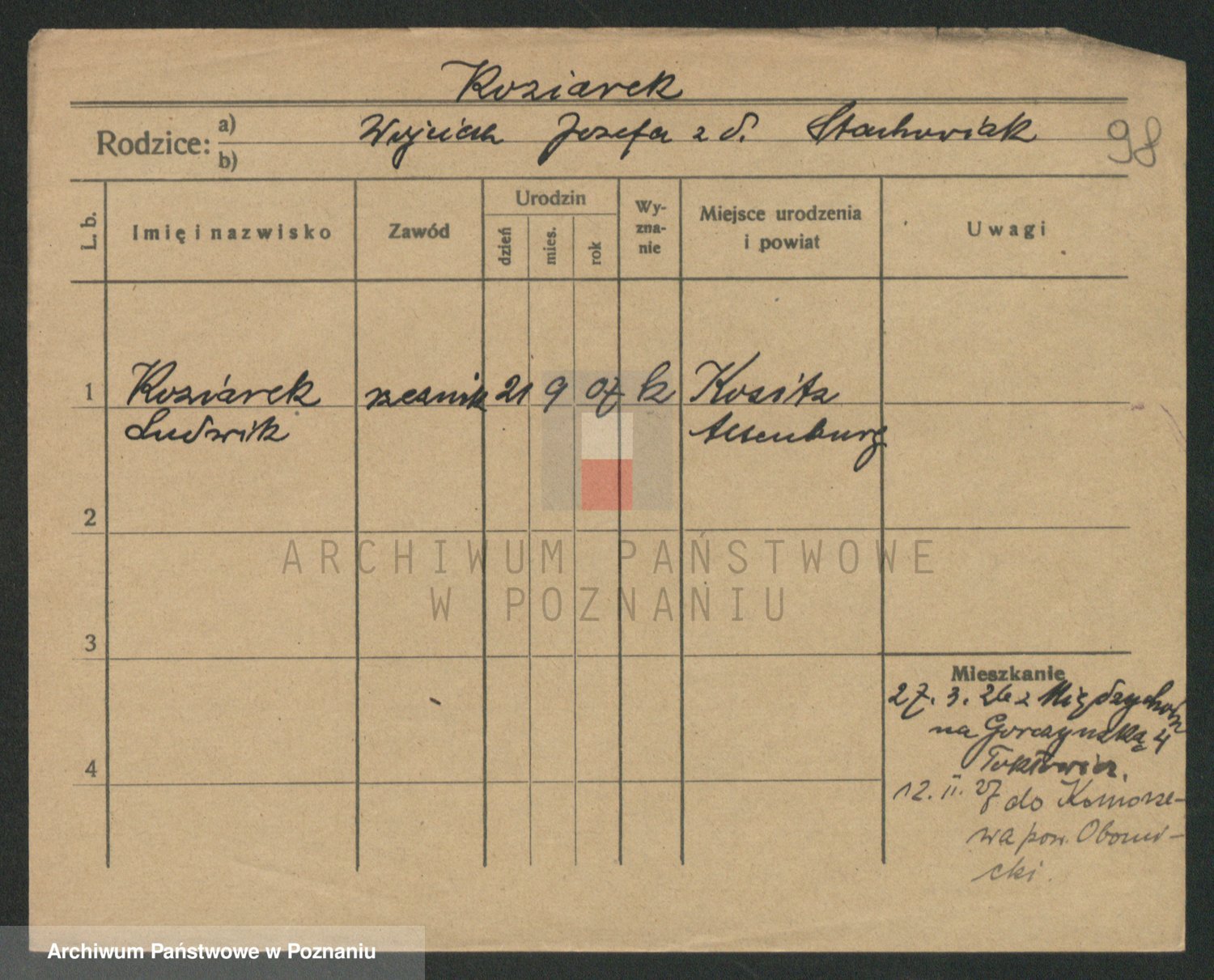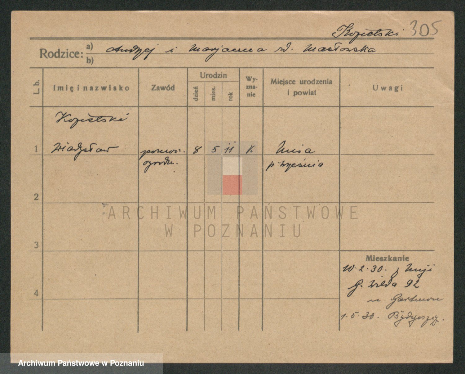 Podgląd karty osobowej dostępny jest po kliknięciu na nazwisko lub ikonkę karty. Można dokonywać powiększenia (ikony na górze) lub przechodzić między kolejnymi skanami (strzałki po bokach).
