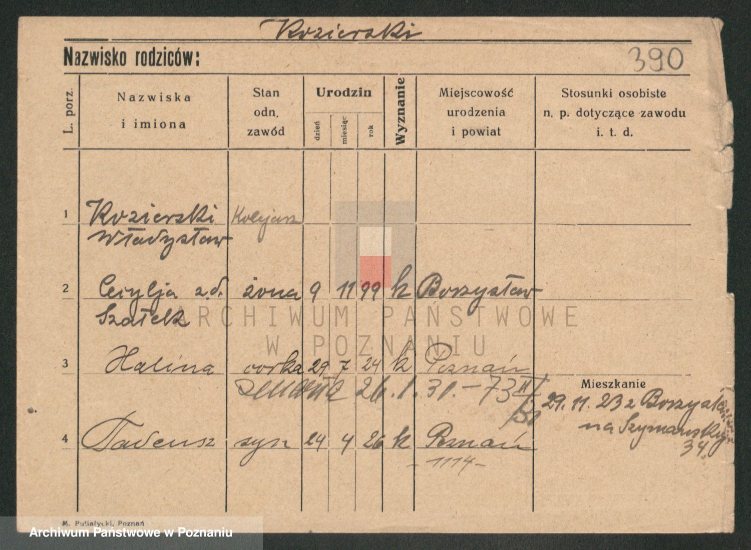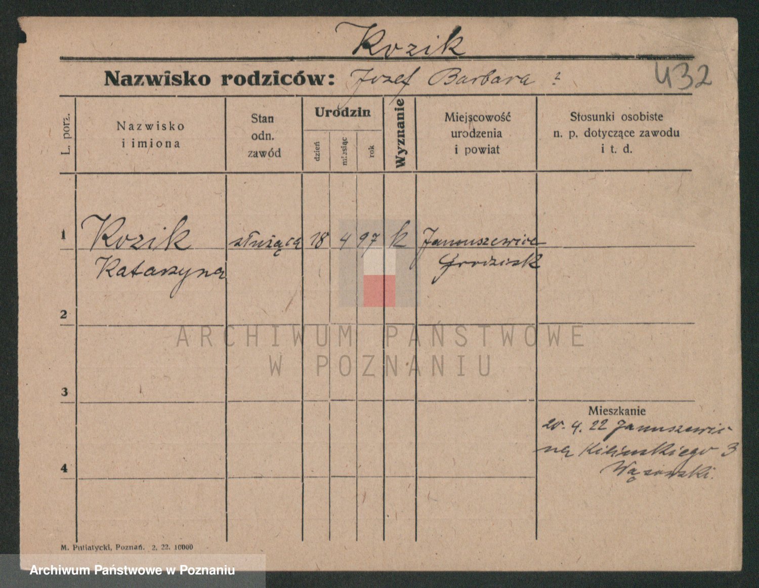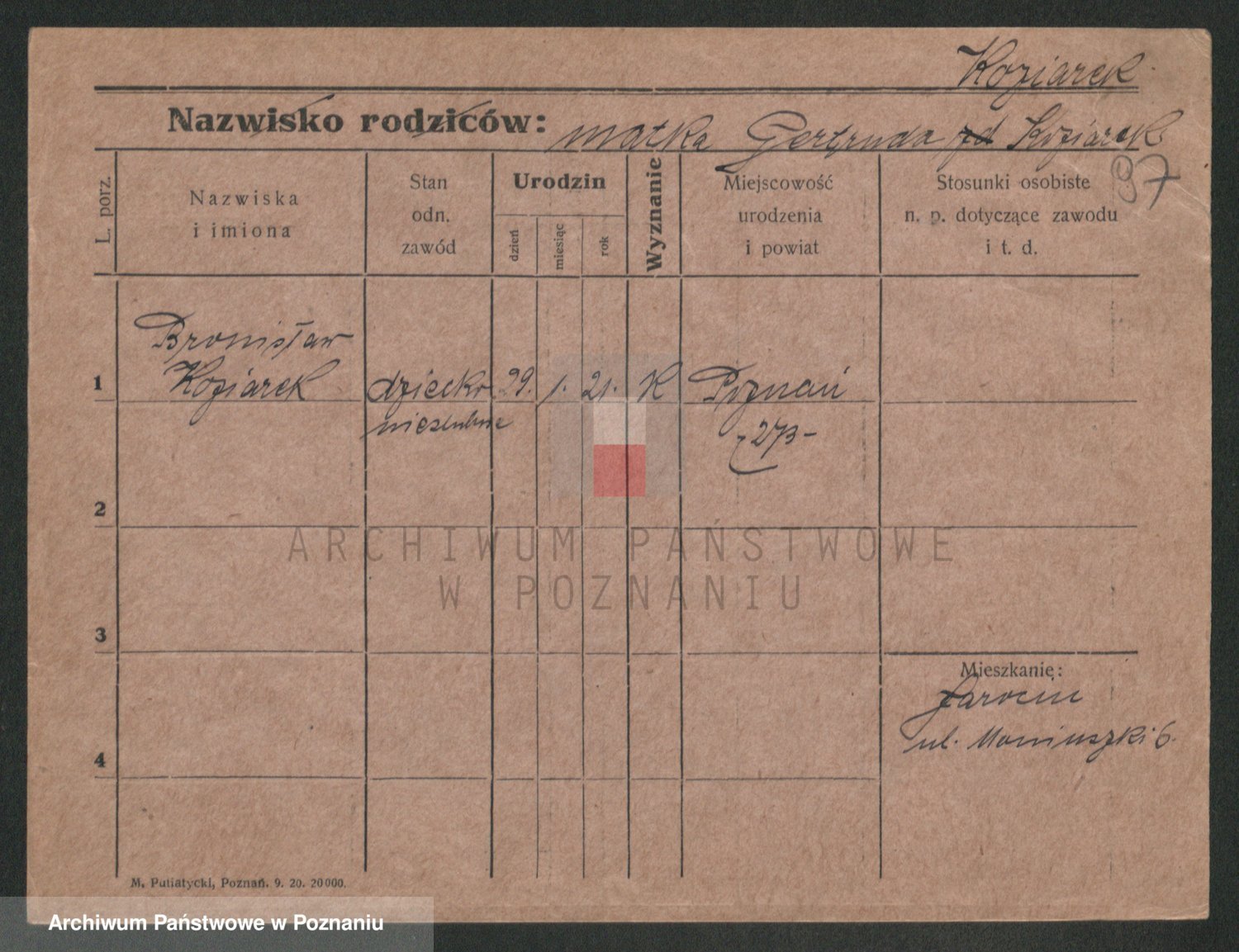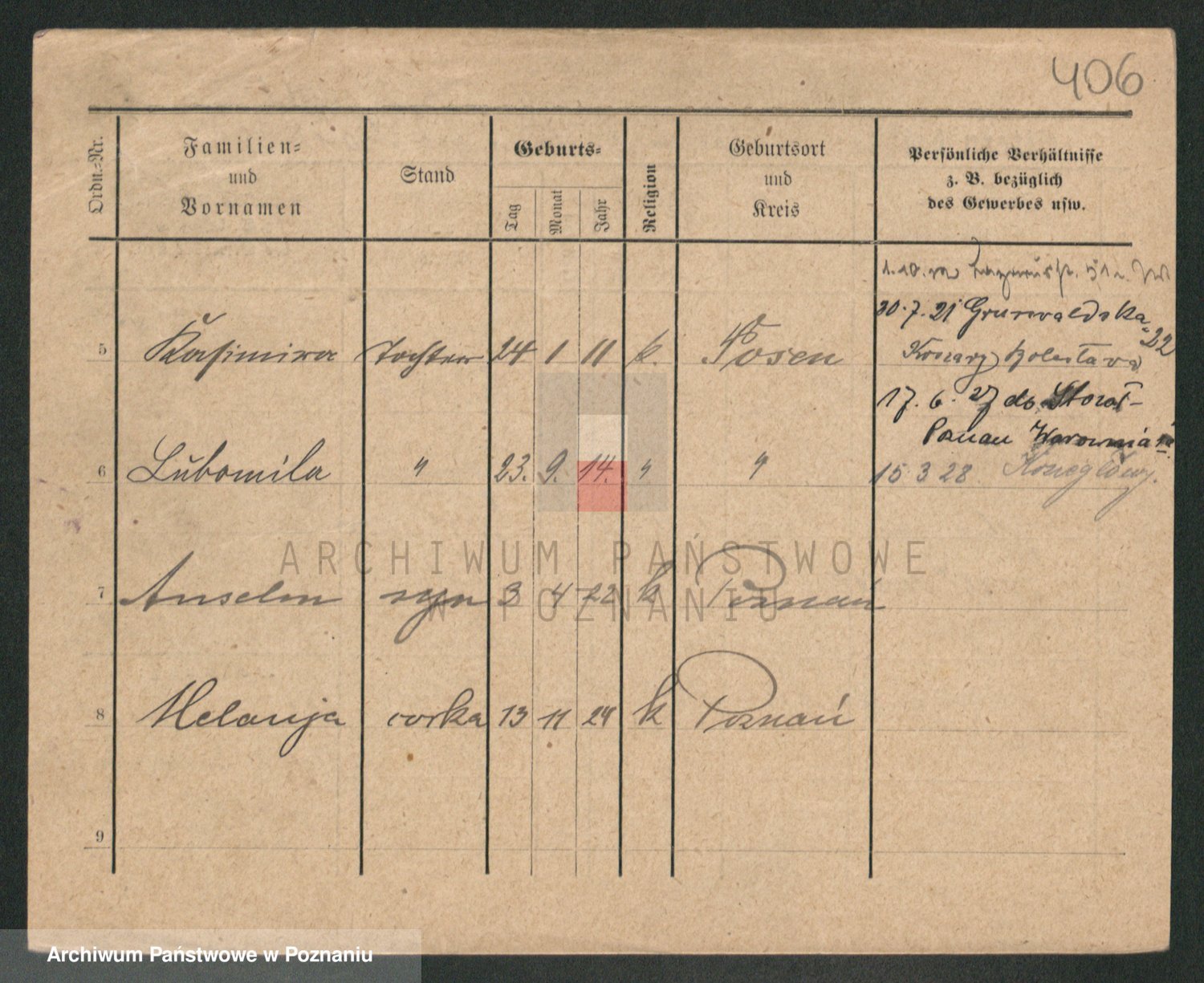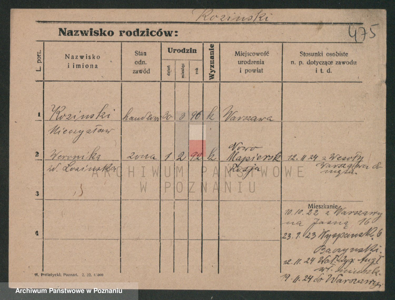 Podgląd karty osobowej dostępny jest po kliknięciu na nazwisko lub ikonkę karty. Można dokonywać powiększenia (ikony na górze) lub przechodzić między kolejnymi skanami (strzałki po bokach).