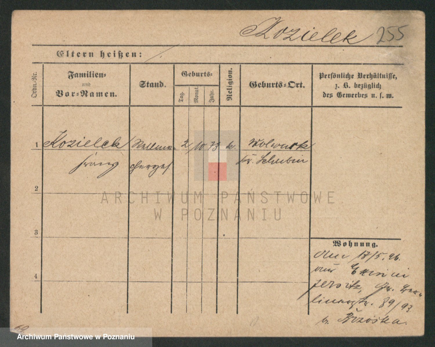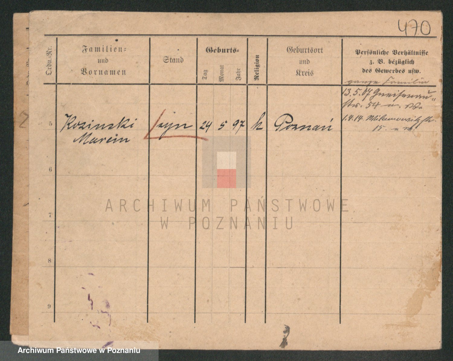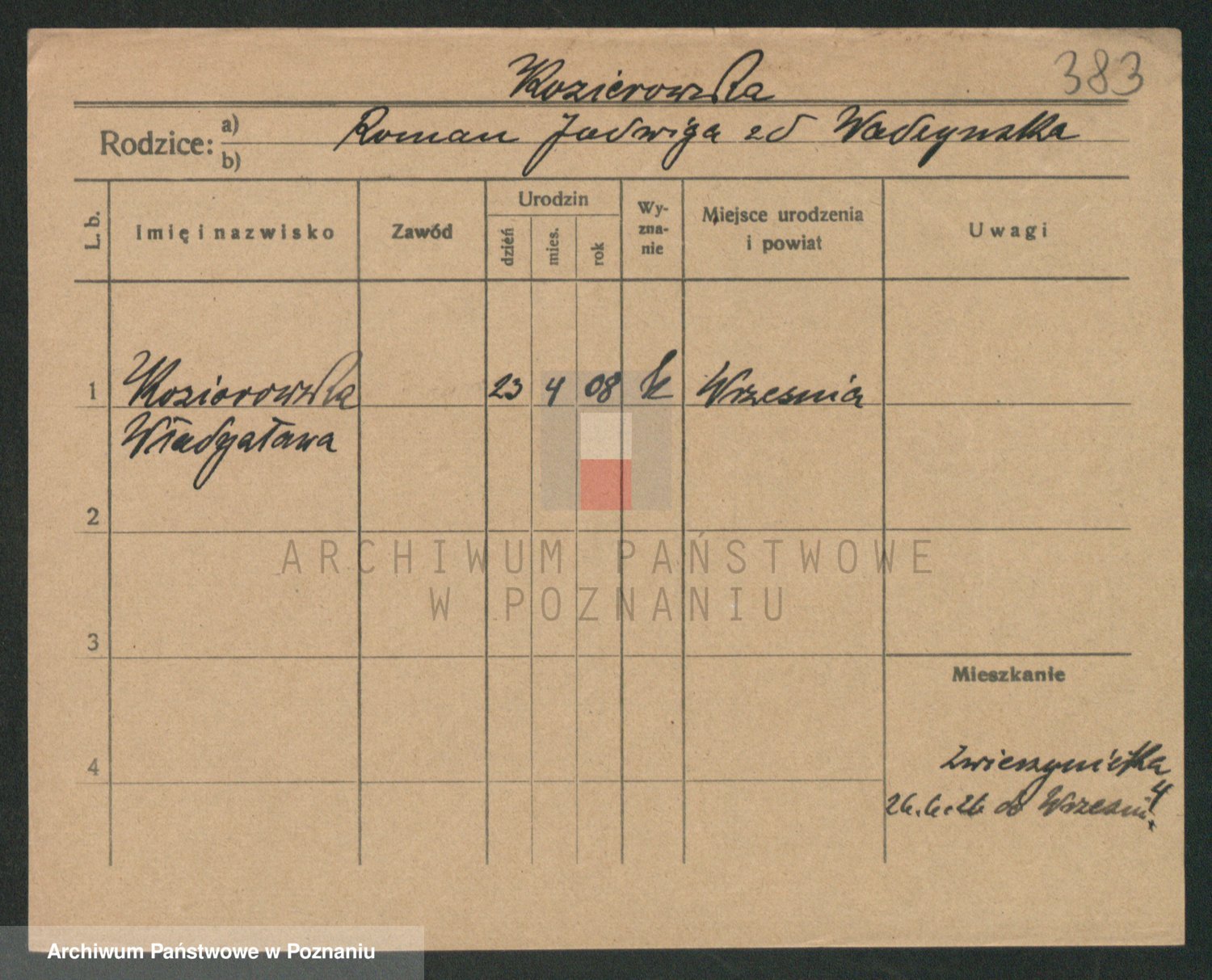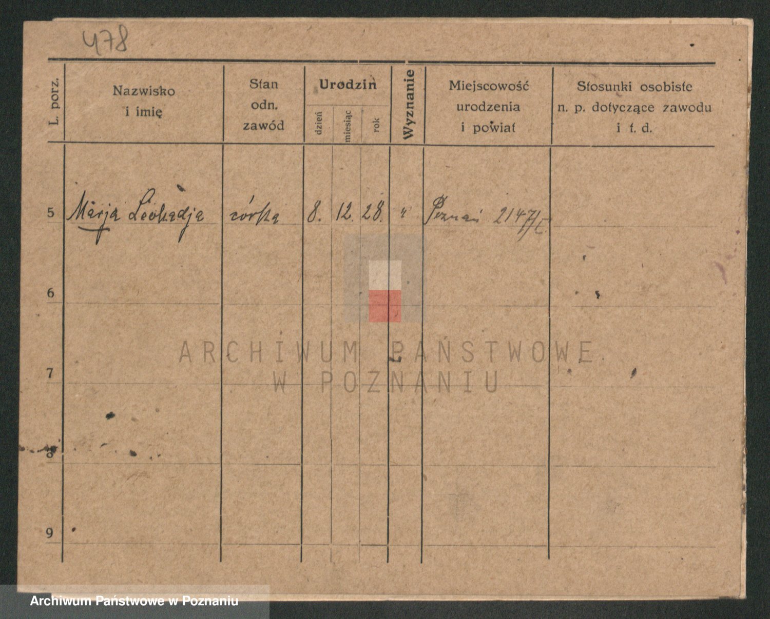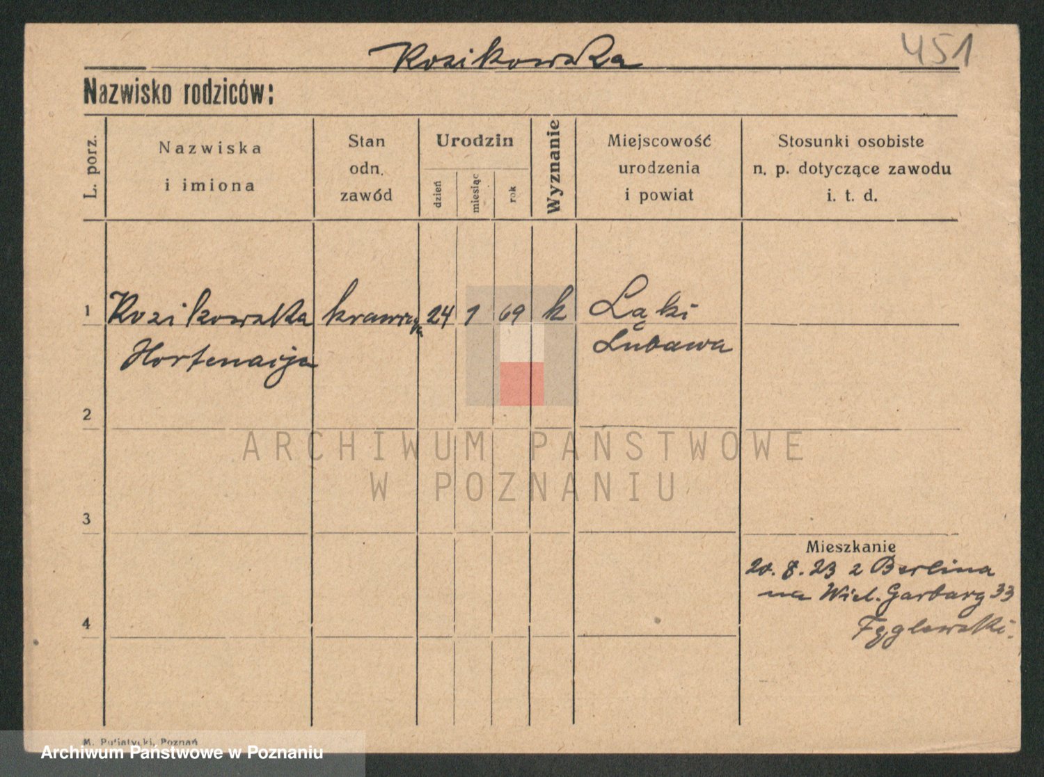 Podgląd karty osobowej dostępny jest po kliknięciu na nazwisko lub ikonkę karty. Można dokonywać powiększenia (ikony na górze) lub przechodzić między kolejnymi skanami (strzałki po bokach).