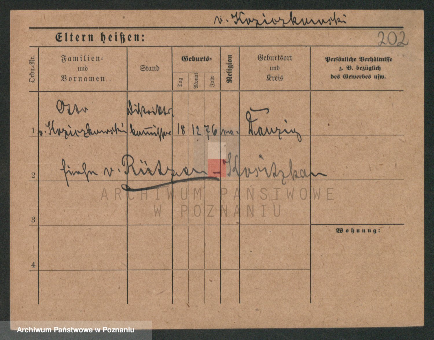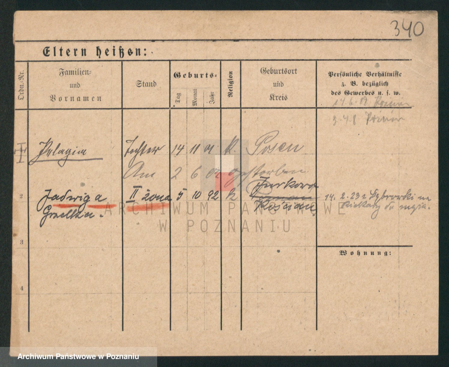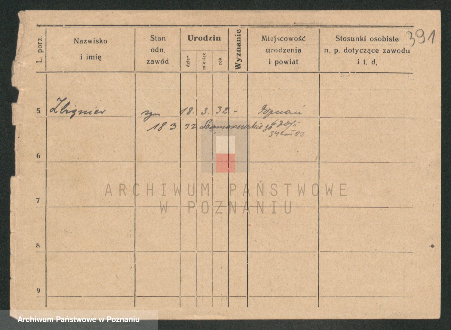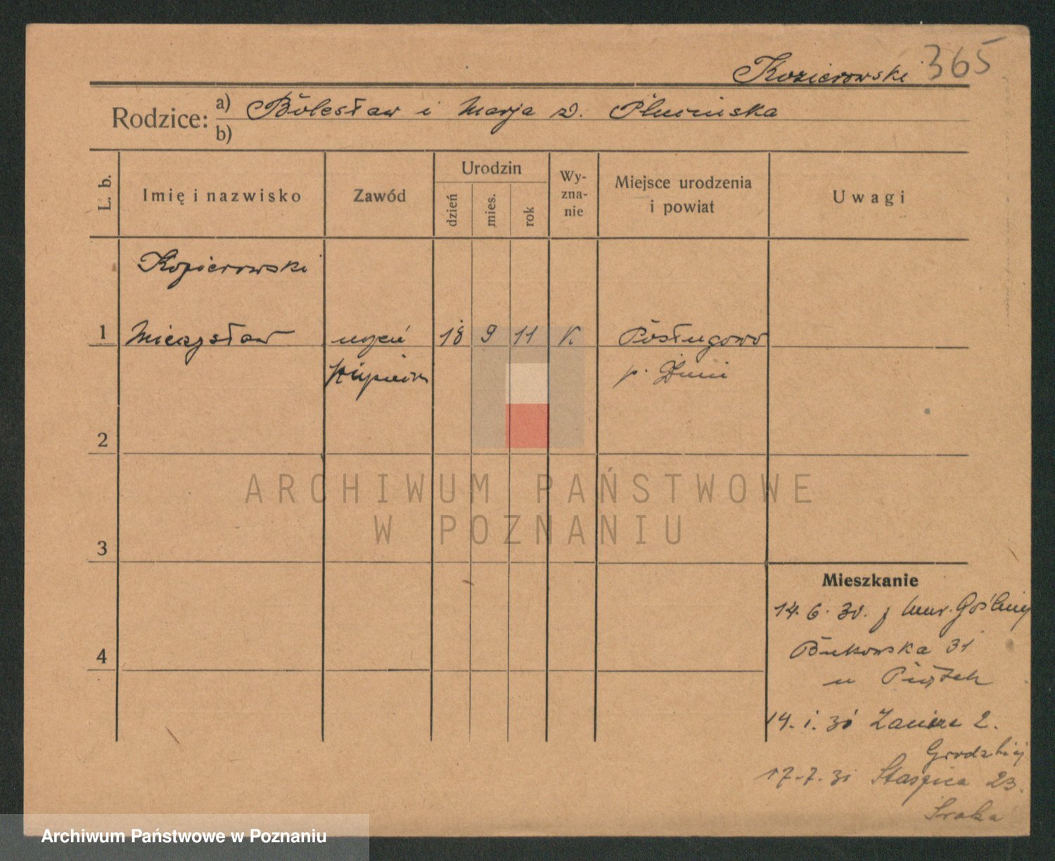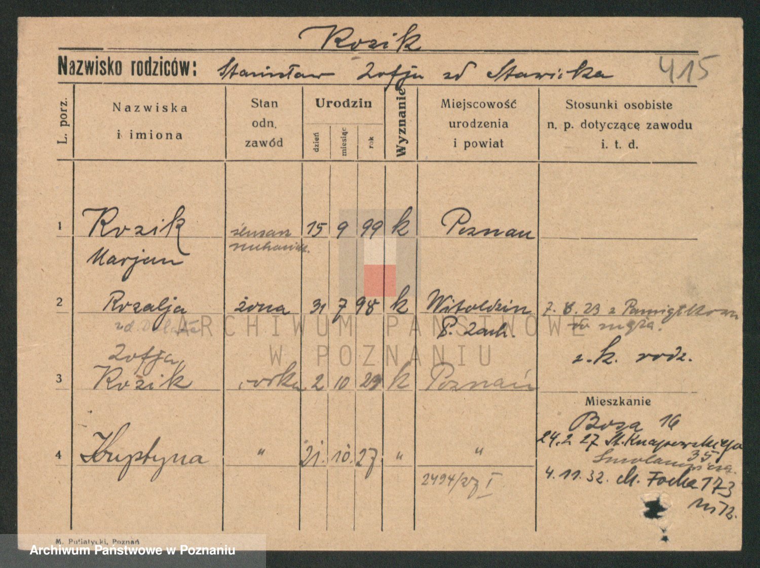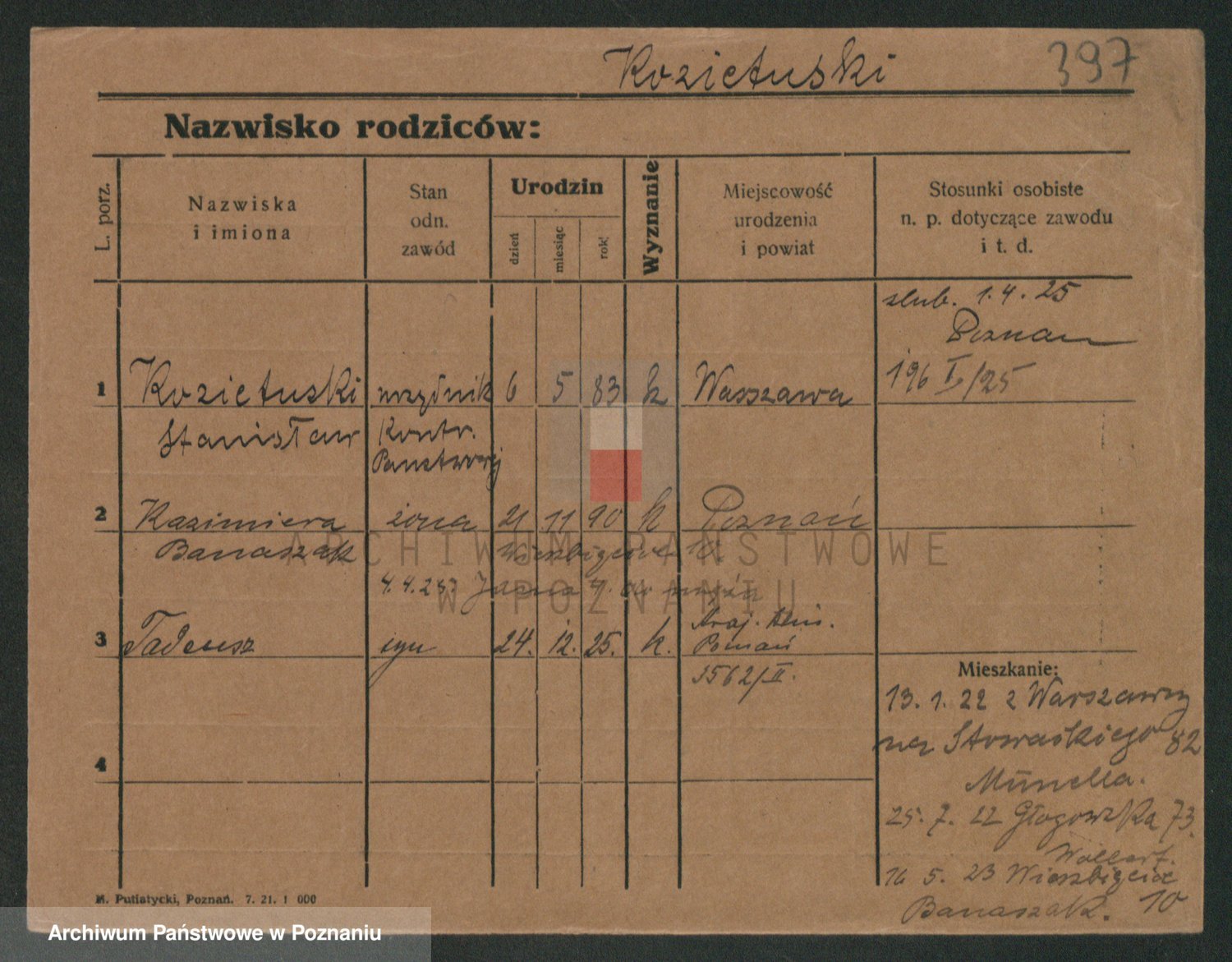 Podgląd karty osobowej dostępny jest po kliknięciu na nazwisko lub ikonkę karty. Można dokonywać powiększenia (ikony na górze) lub przechodzić między kolejnymi skanami (strzałki po bokach).