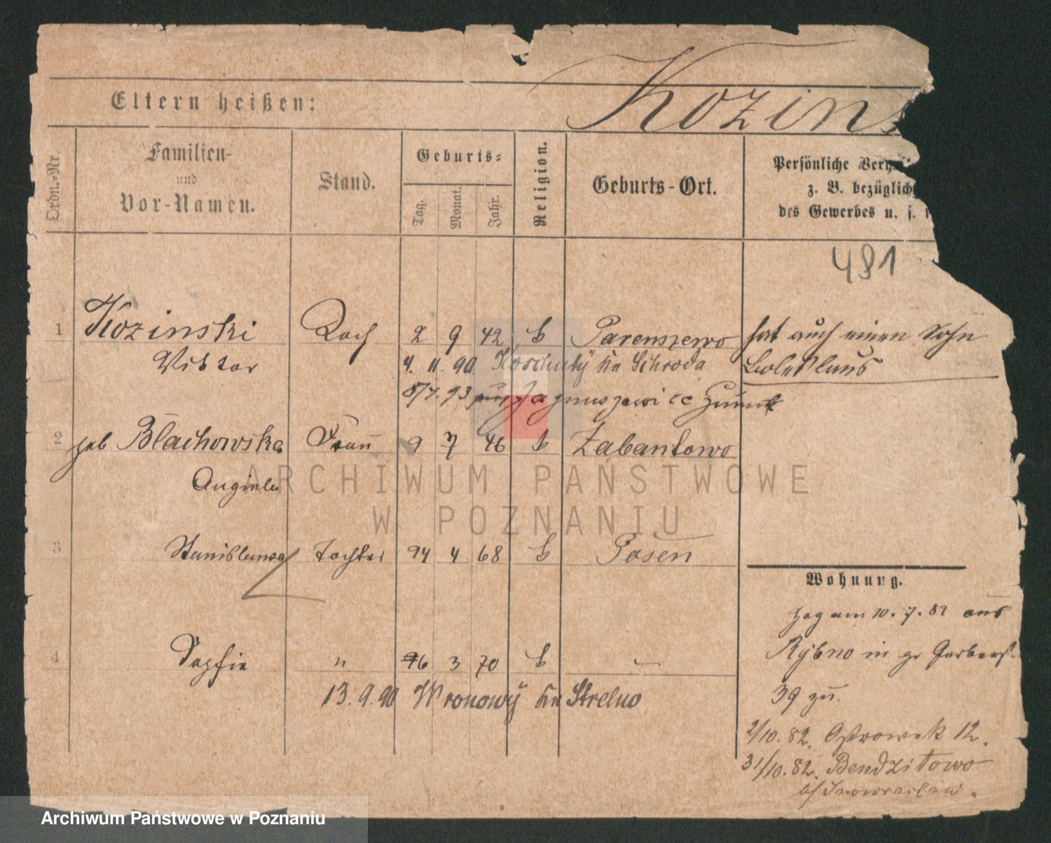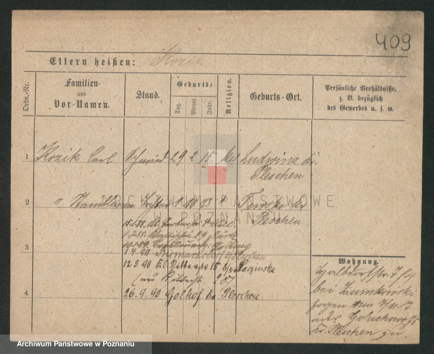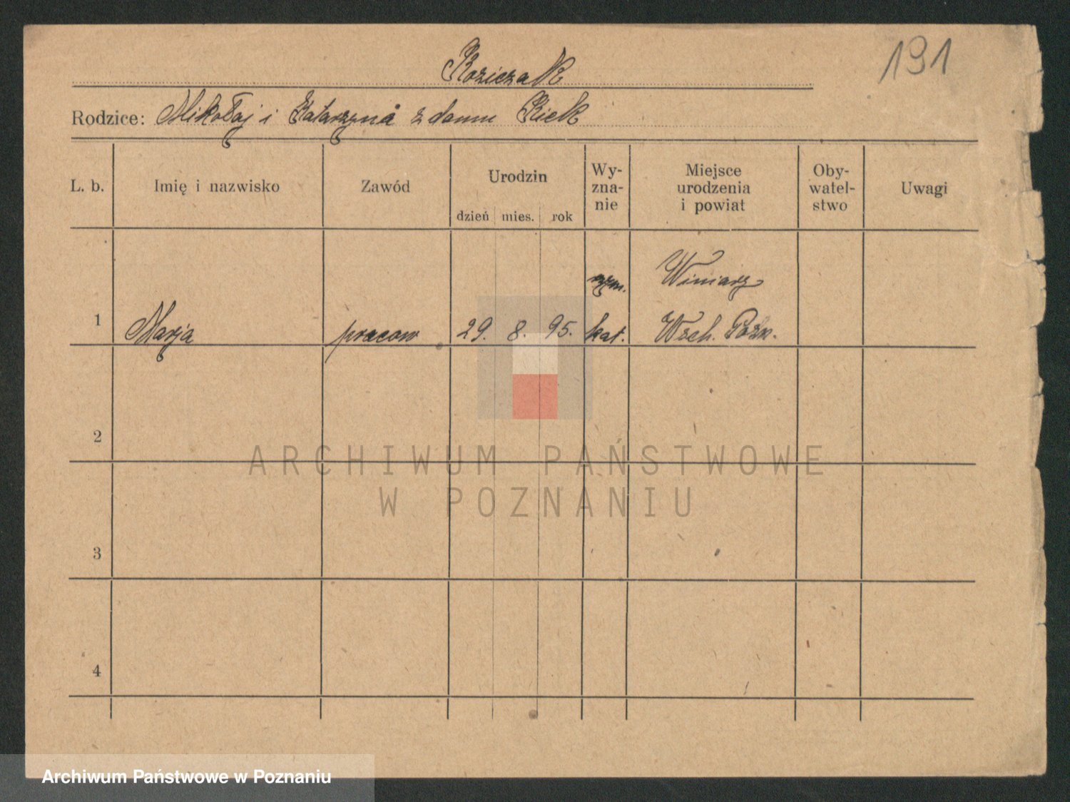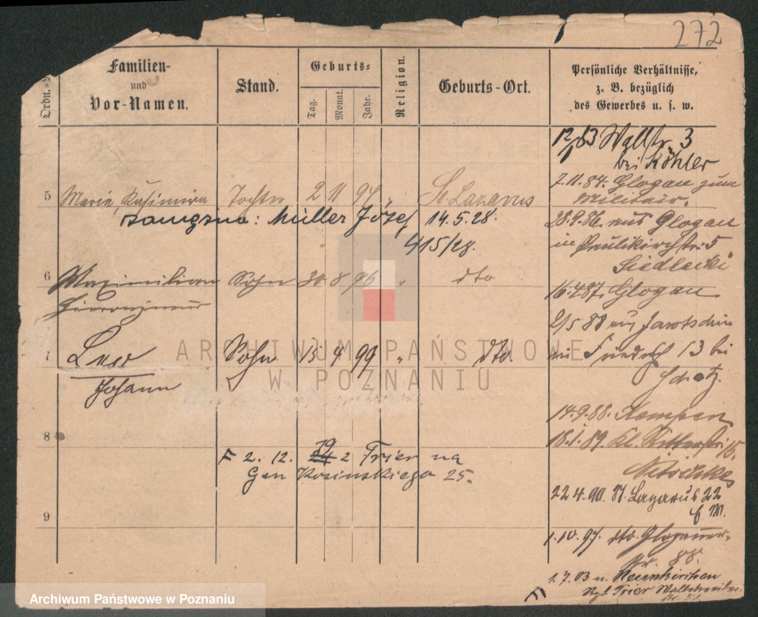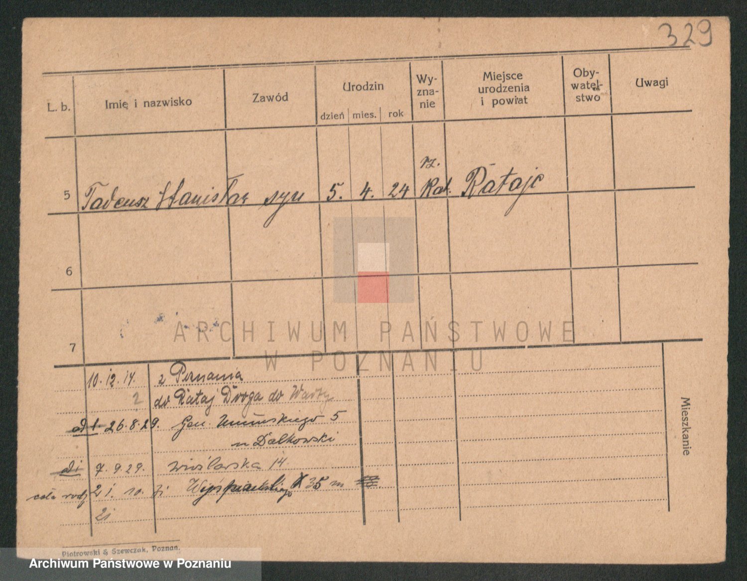 Podgląd karty osobowej dostępny jest po kliknięciu na nazwisko lub ikonkę karty. Można dokonywać powiększenia (ikony na górze) lub przechodzić między kolejnymi skanami (strzałki po bokach).