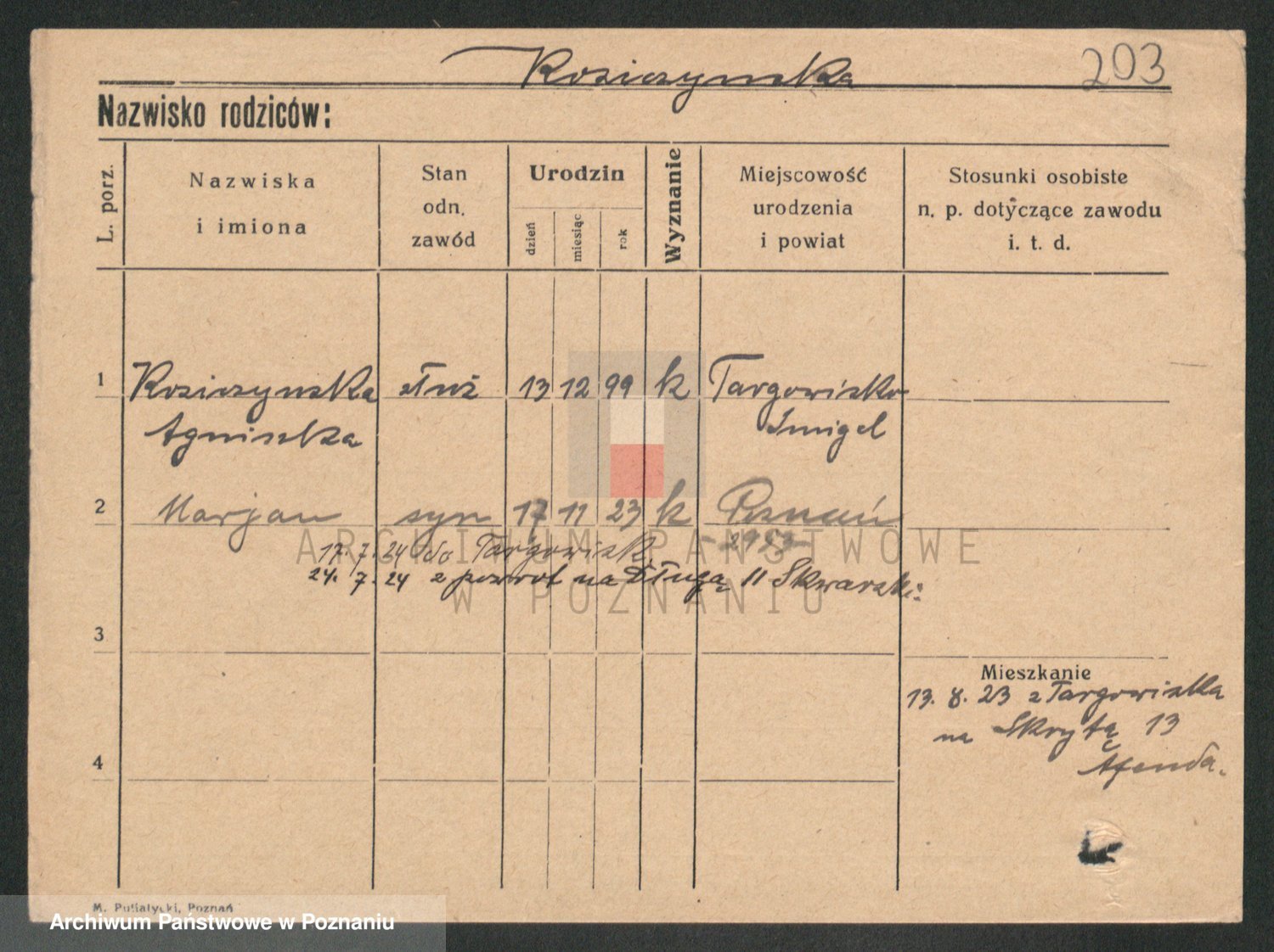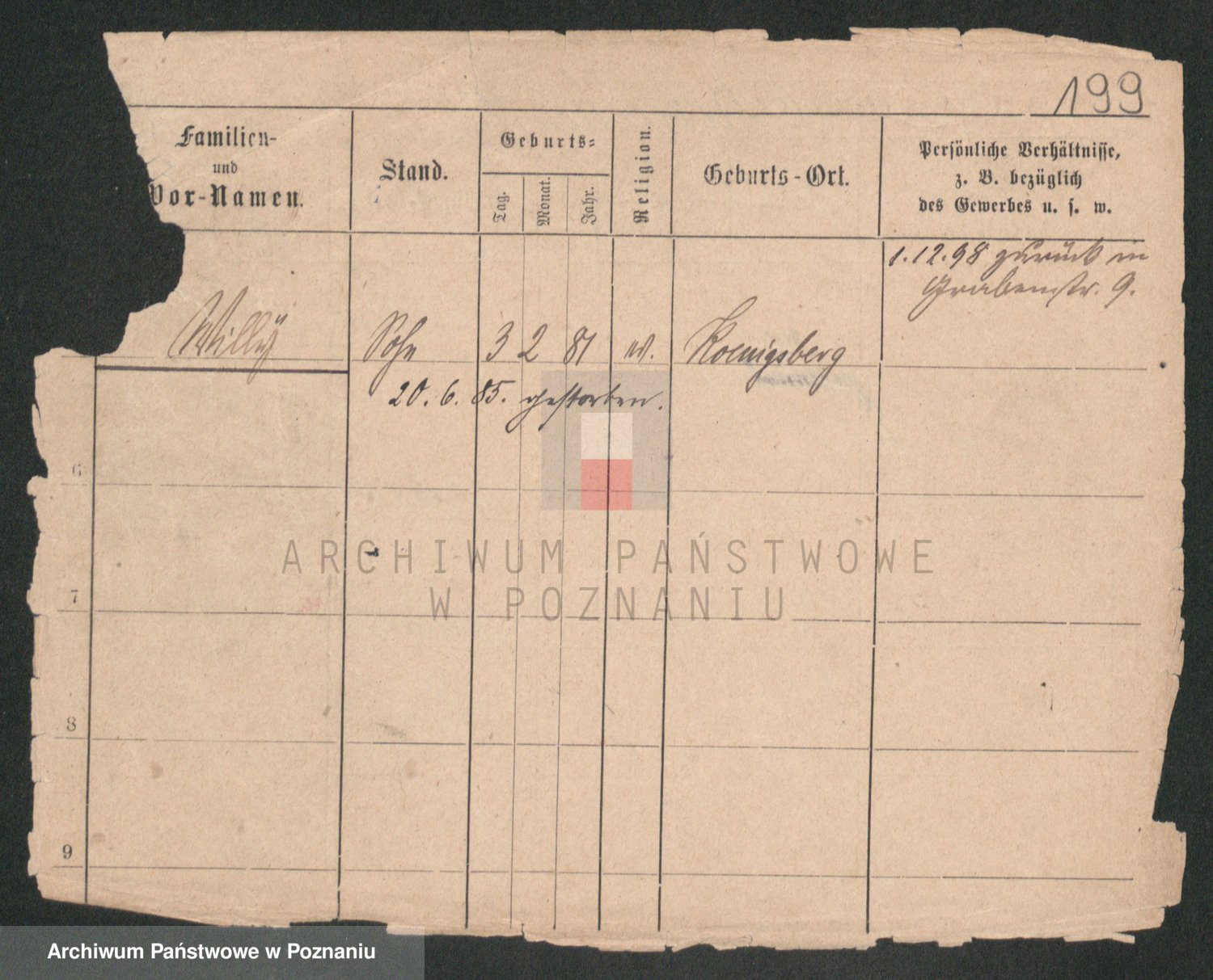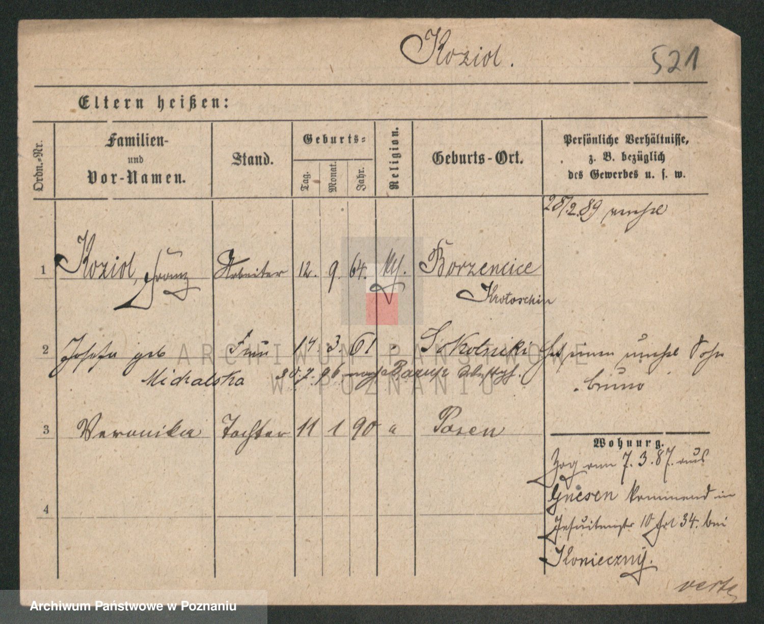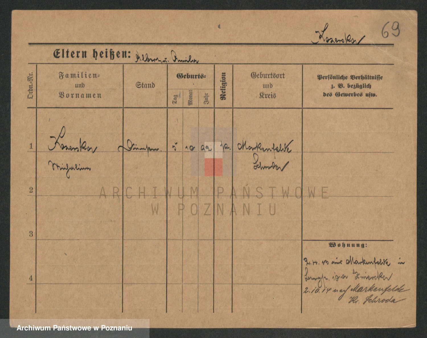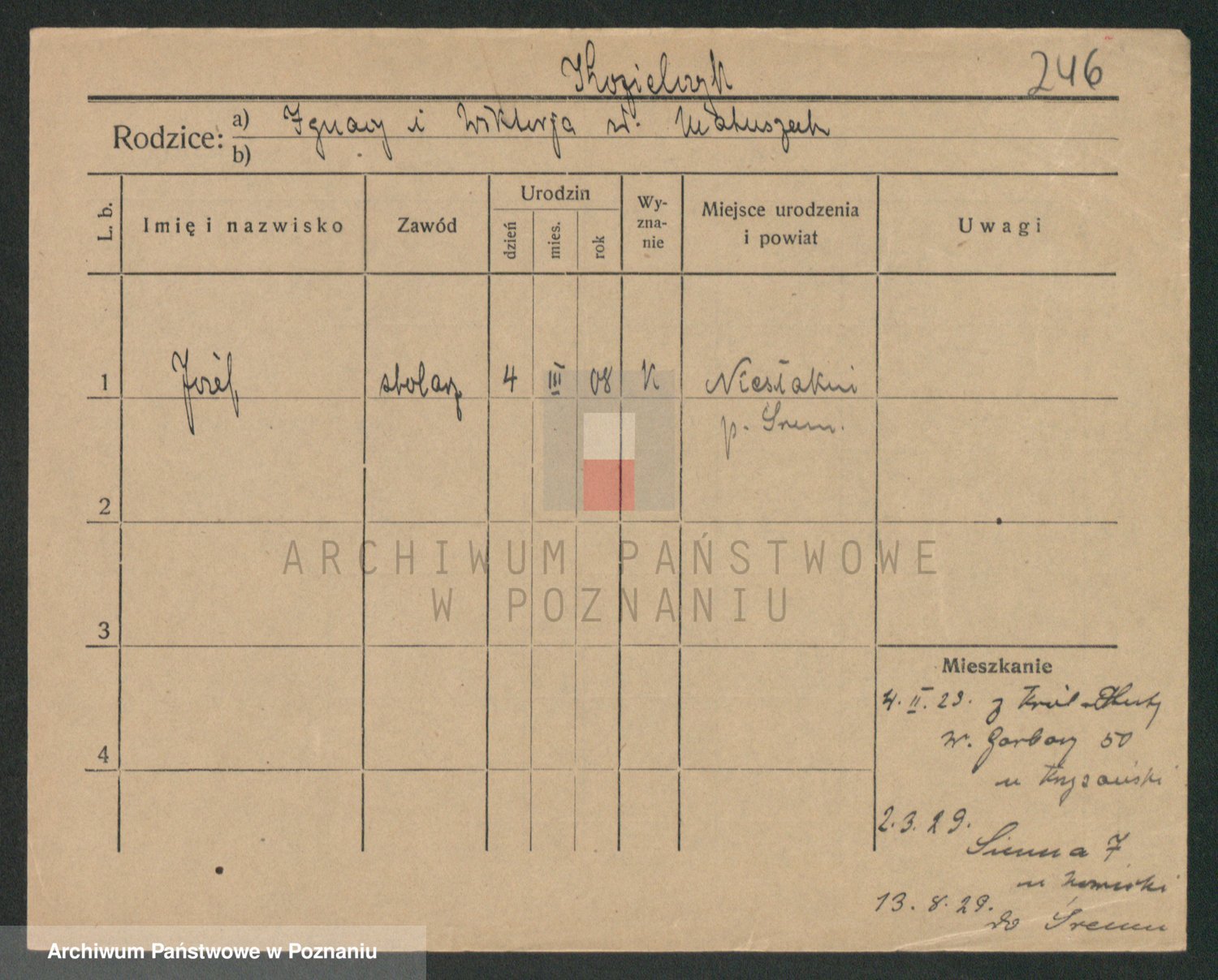 Podgląd karty osobowej dostępny jest po kliknięciu na nazwisko lub ikonkę karty. Można dokonywać powiększenia (ikony na górze) lub przechodzić między kolejnymi skanami (strzałki po bokach).