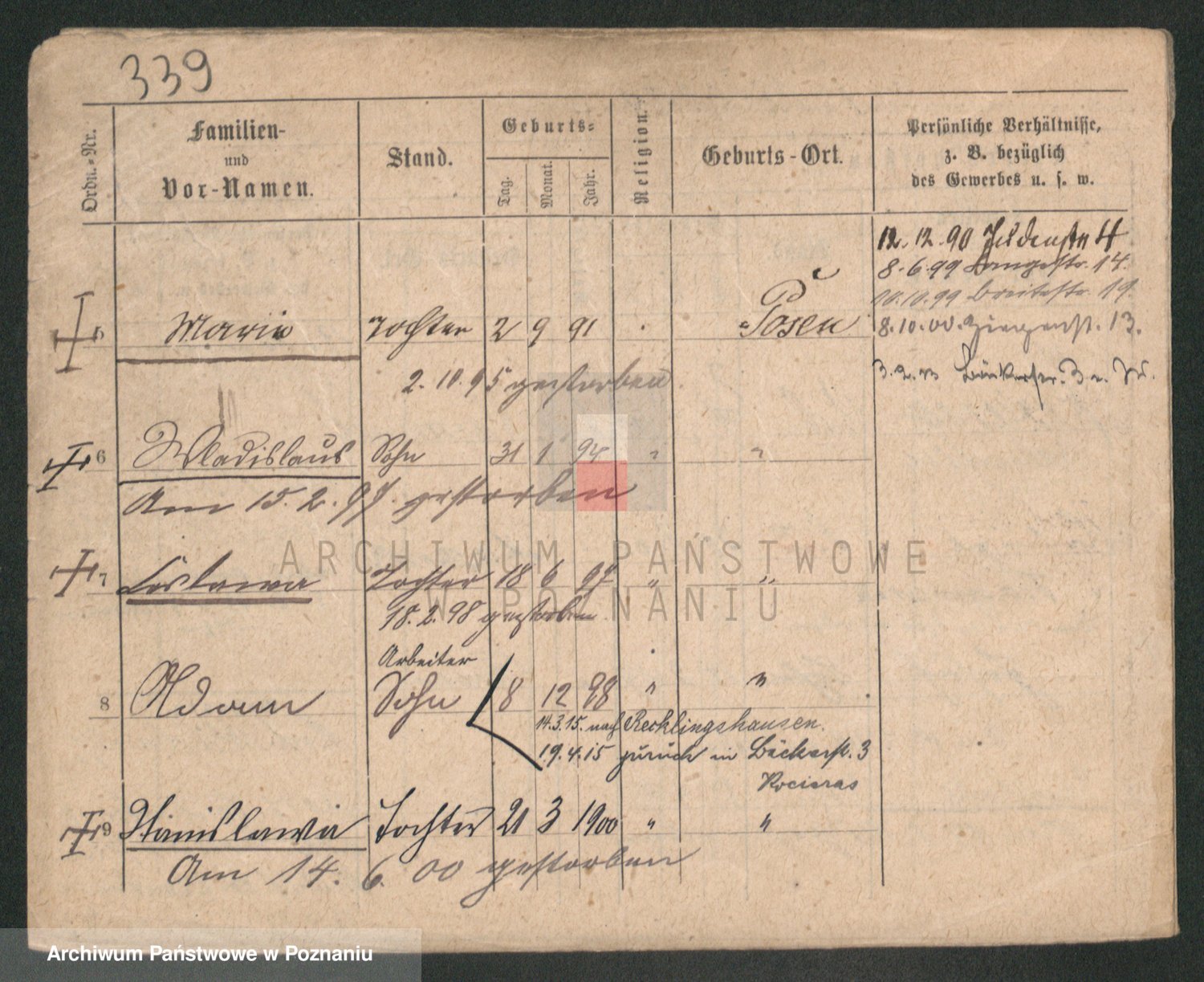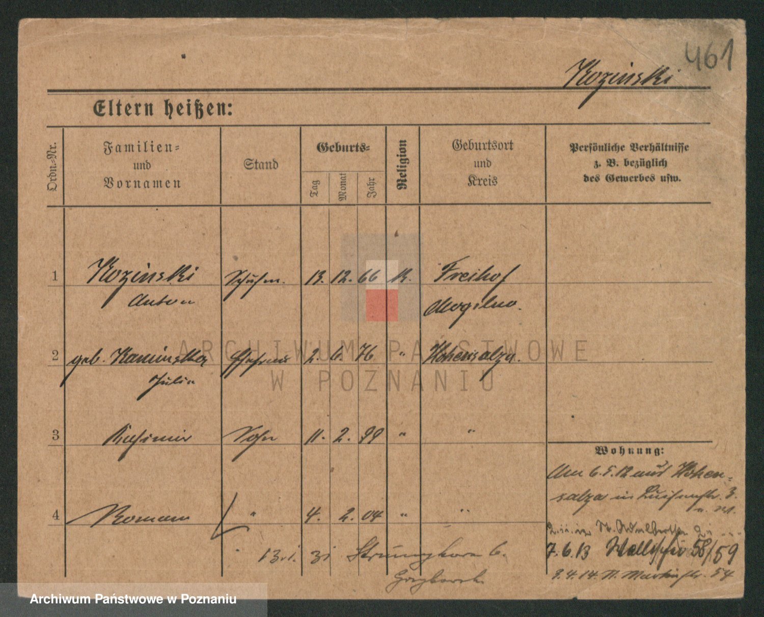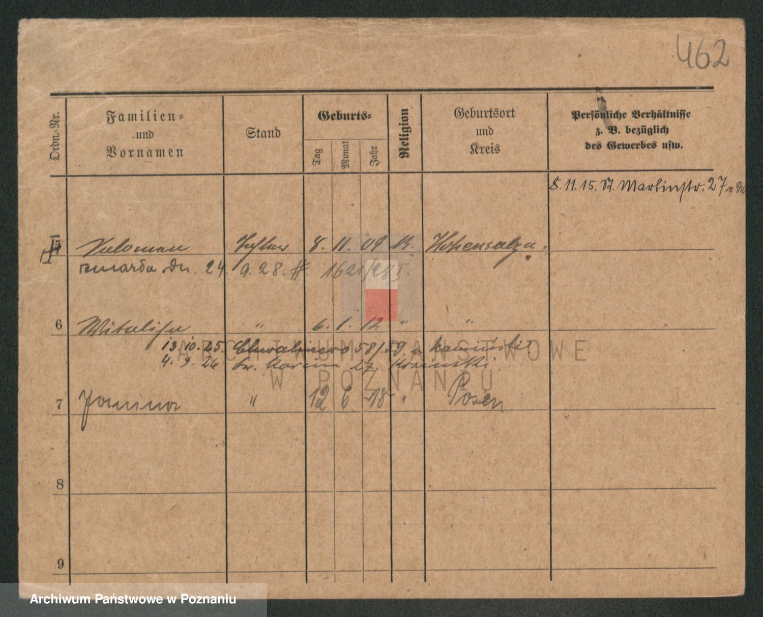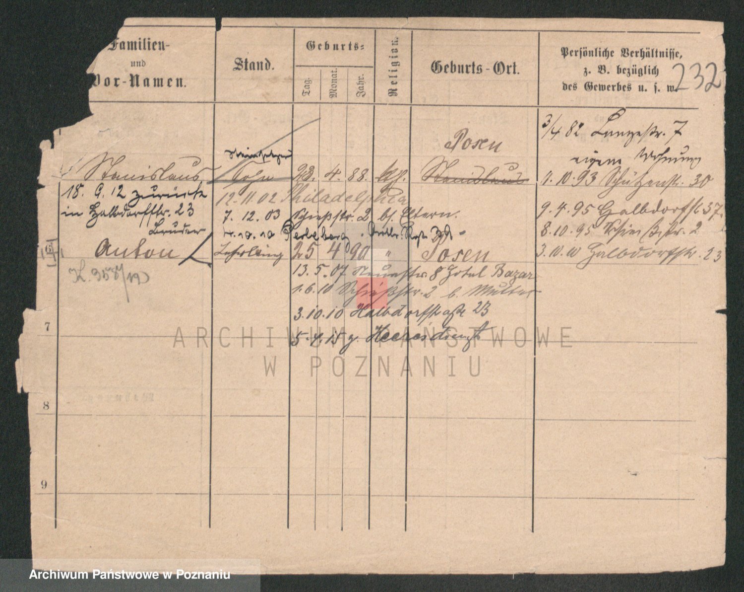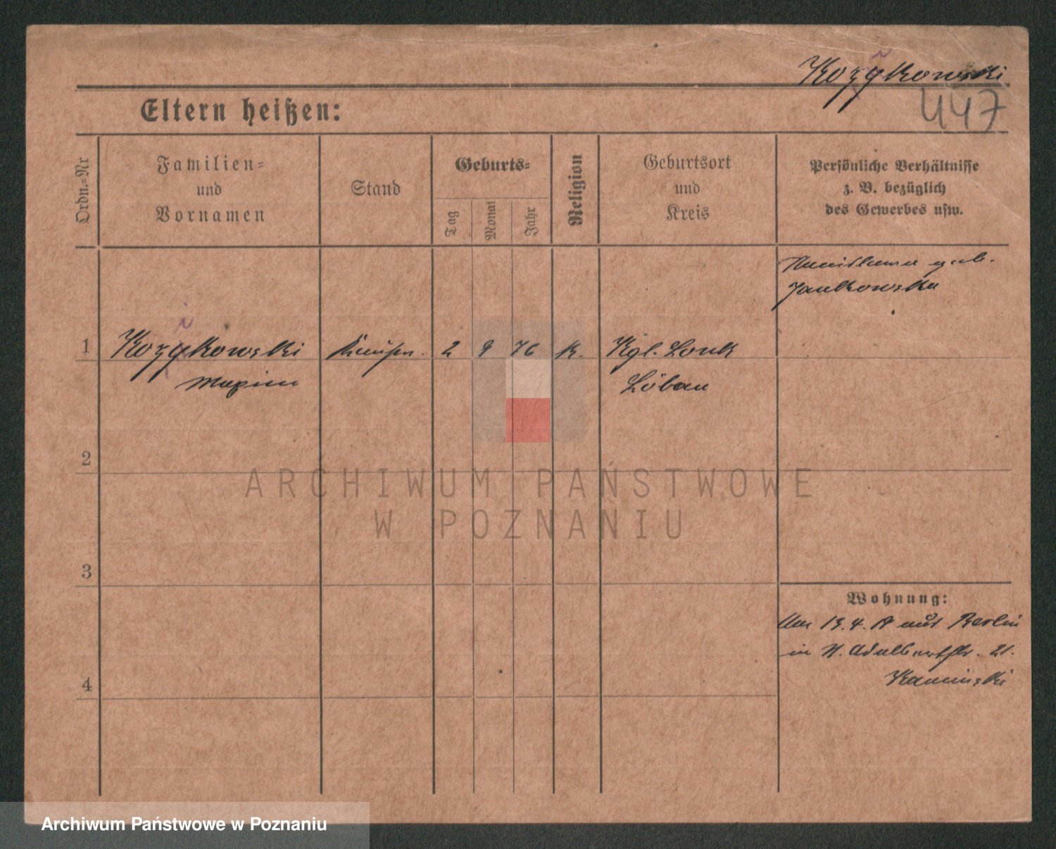 Podgląd karty osobowej dostępny jest po kliknięciu na nazwisko lub ikonkę karty. Można dokonywać powiększenia (ikony na górze) lub przechodzić między kolejnymi skanami (strzałki po bokach).