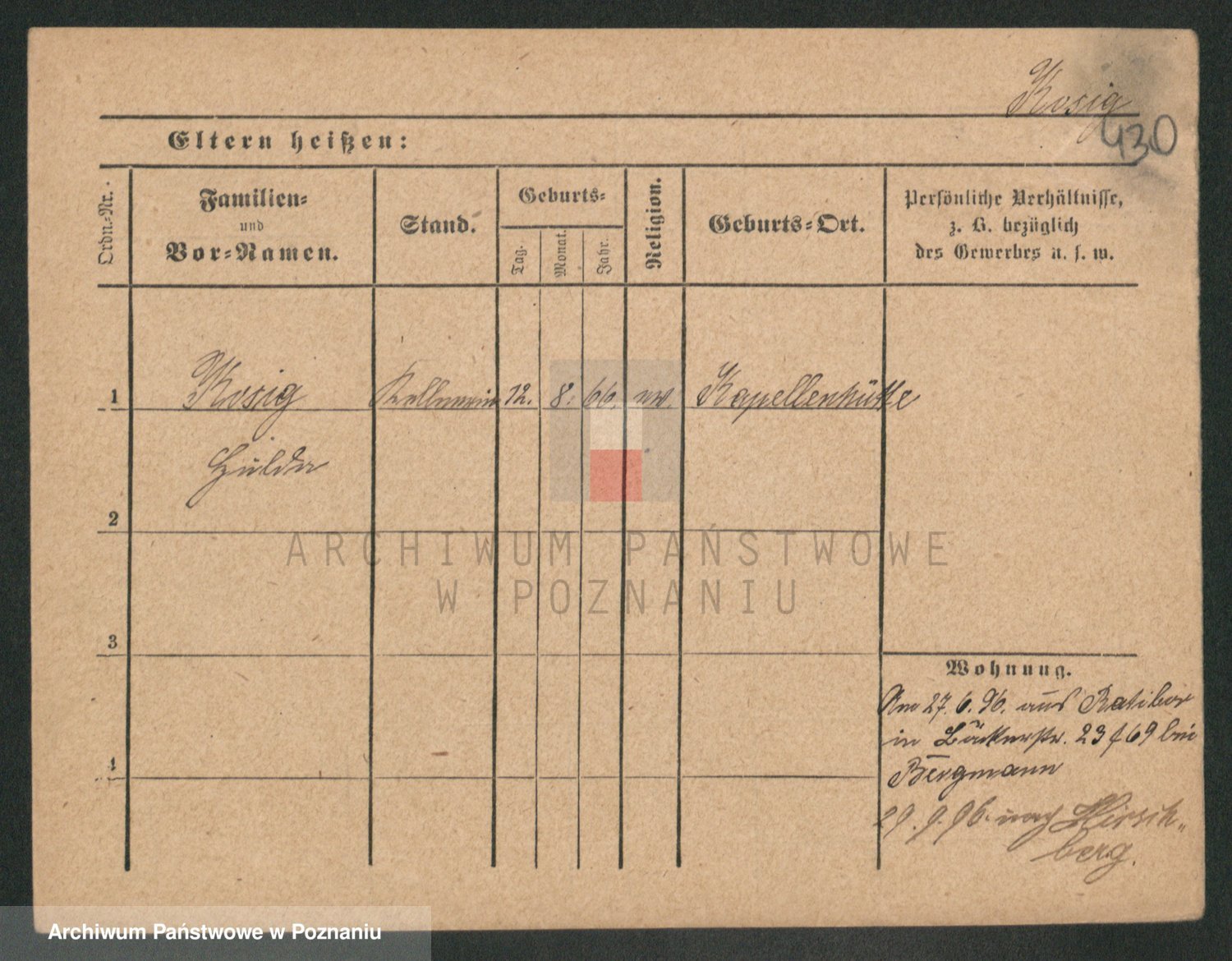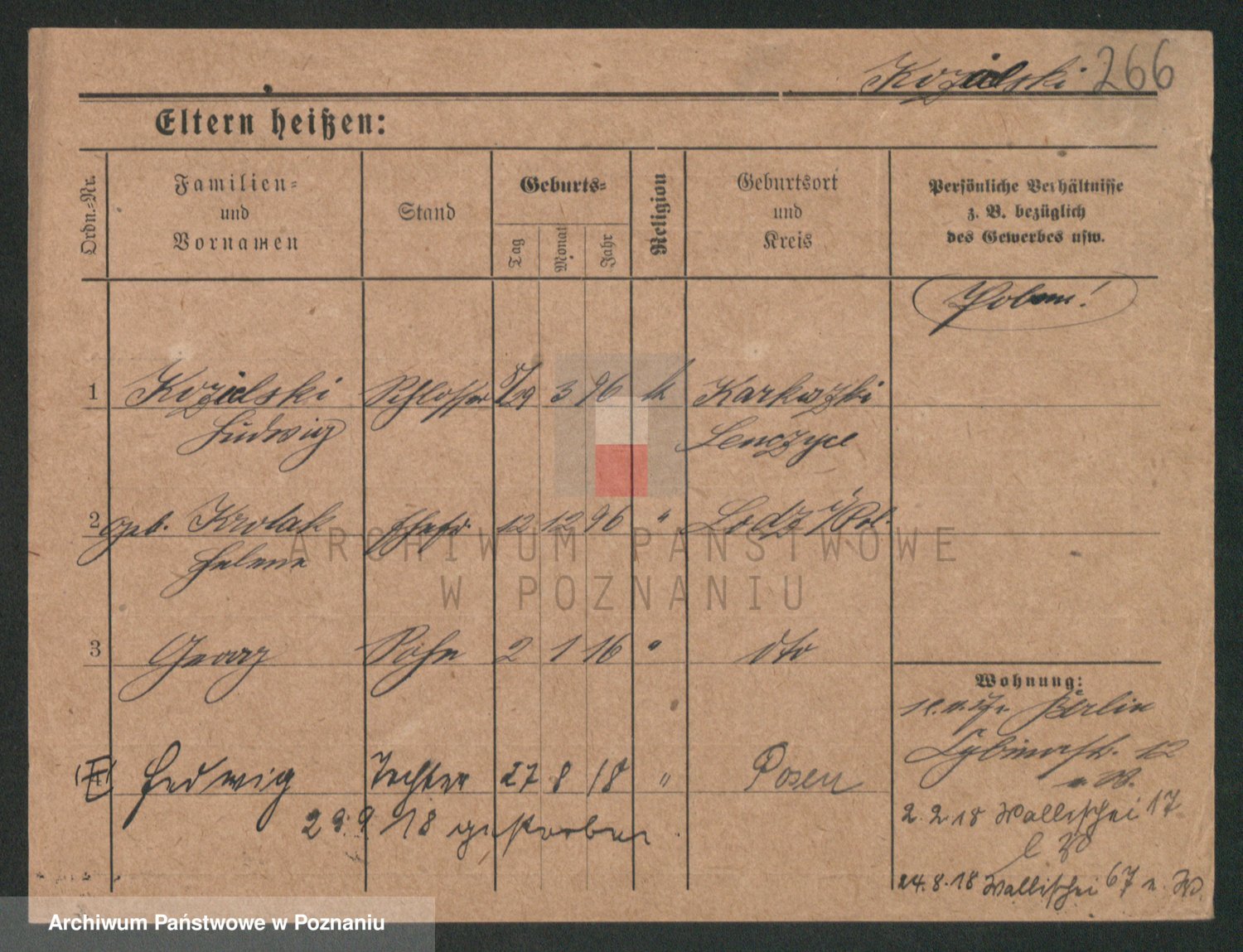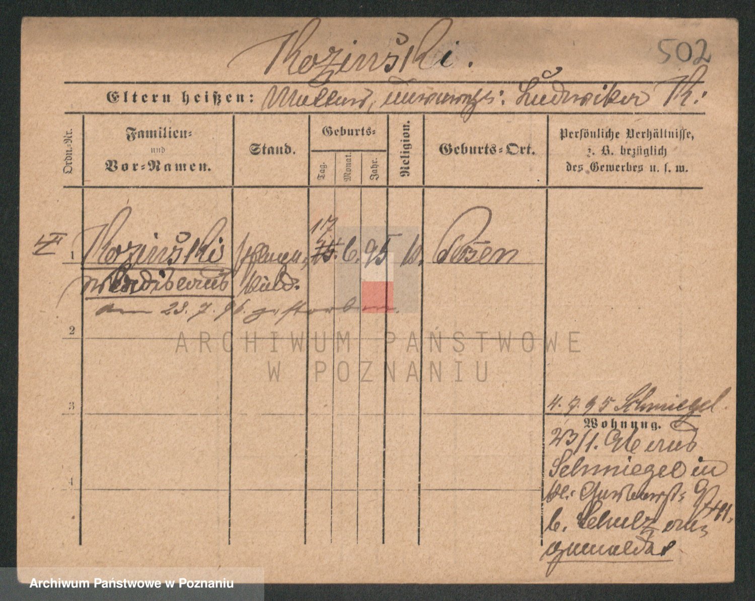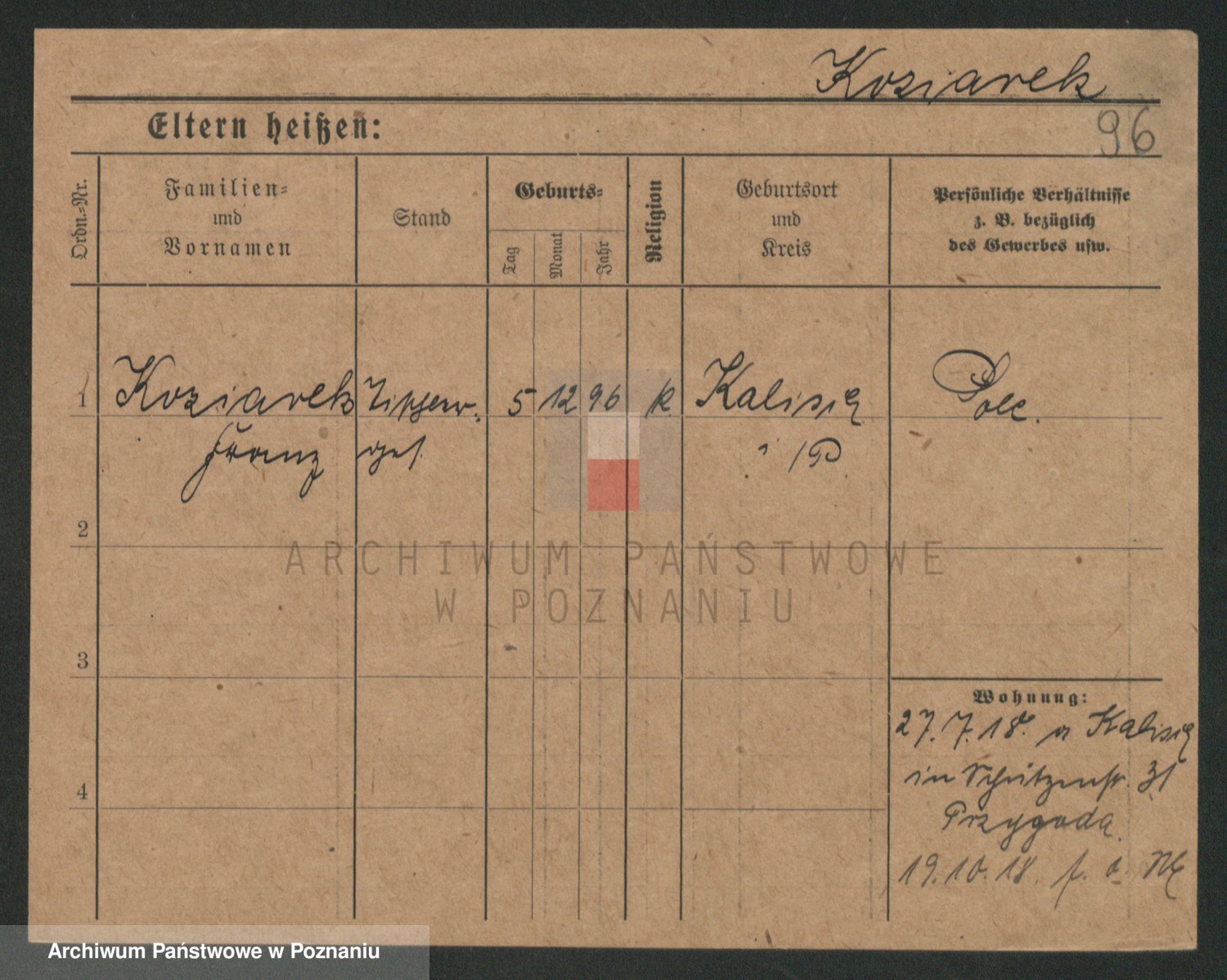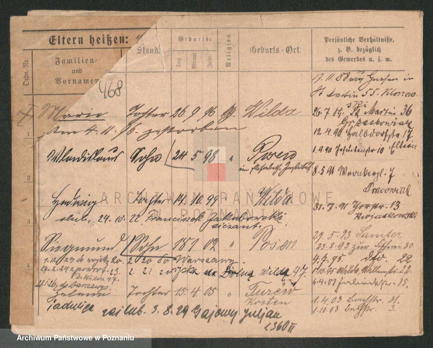 Podgląd karty osobowej dostępny jest po kliknięciu na nazwisko lub ikonkę karty. Można dokonywać powiększenia (ikony na górze) lub przechodzić między kolejnymi skanami (strzałki po bokach).