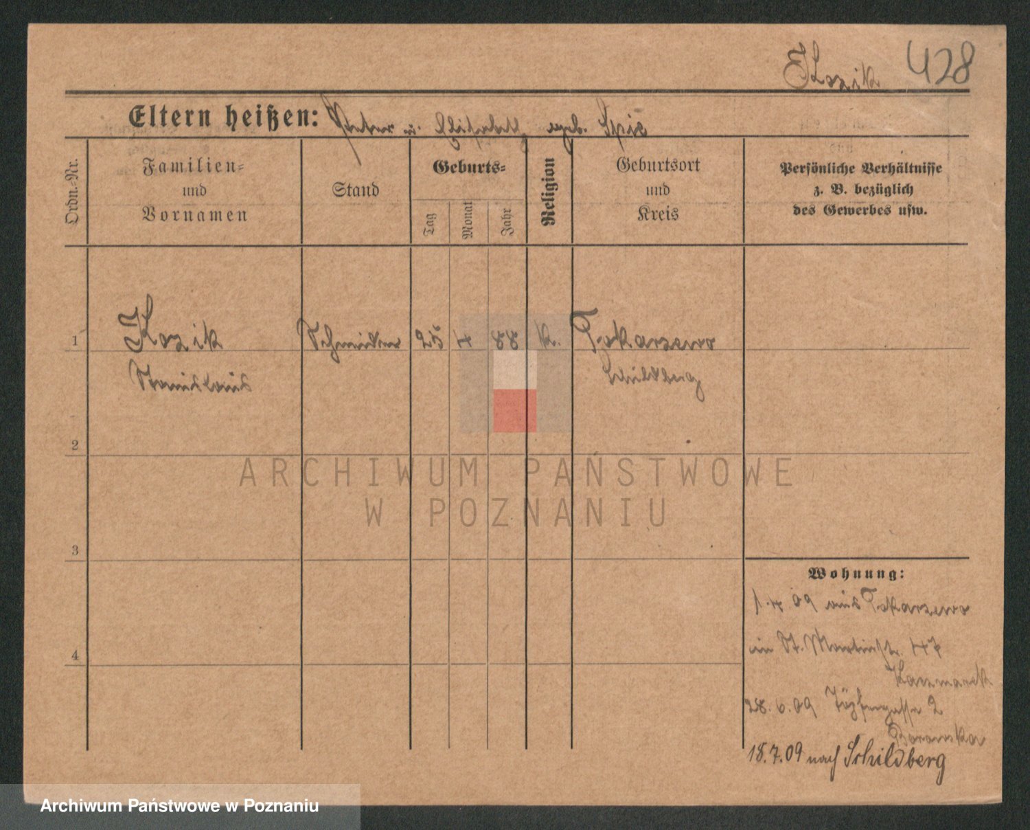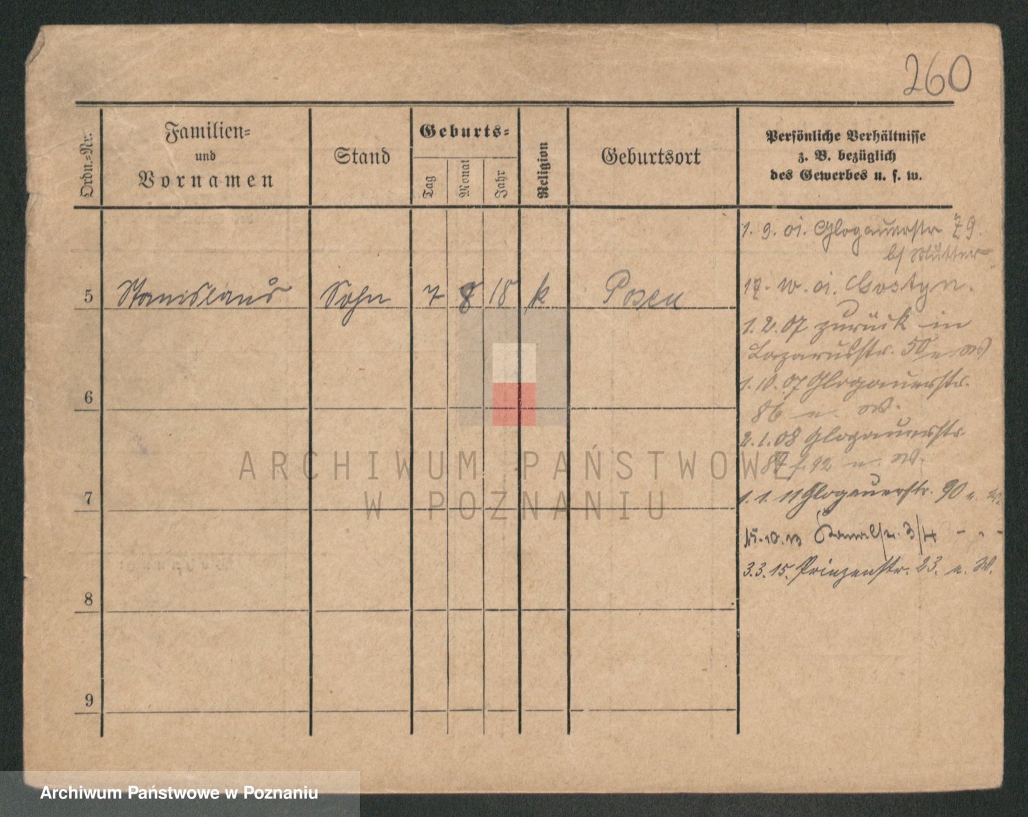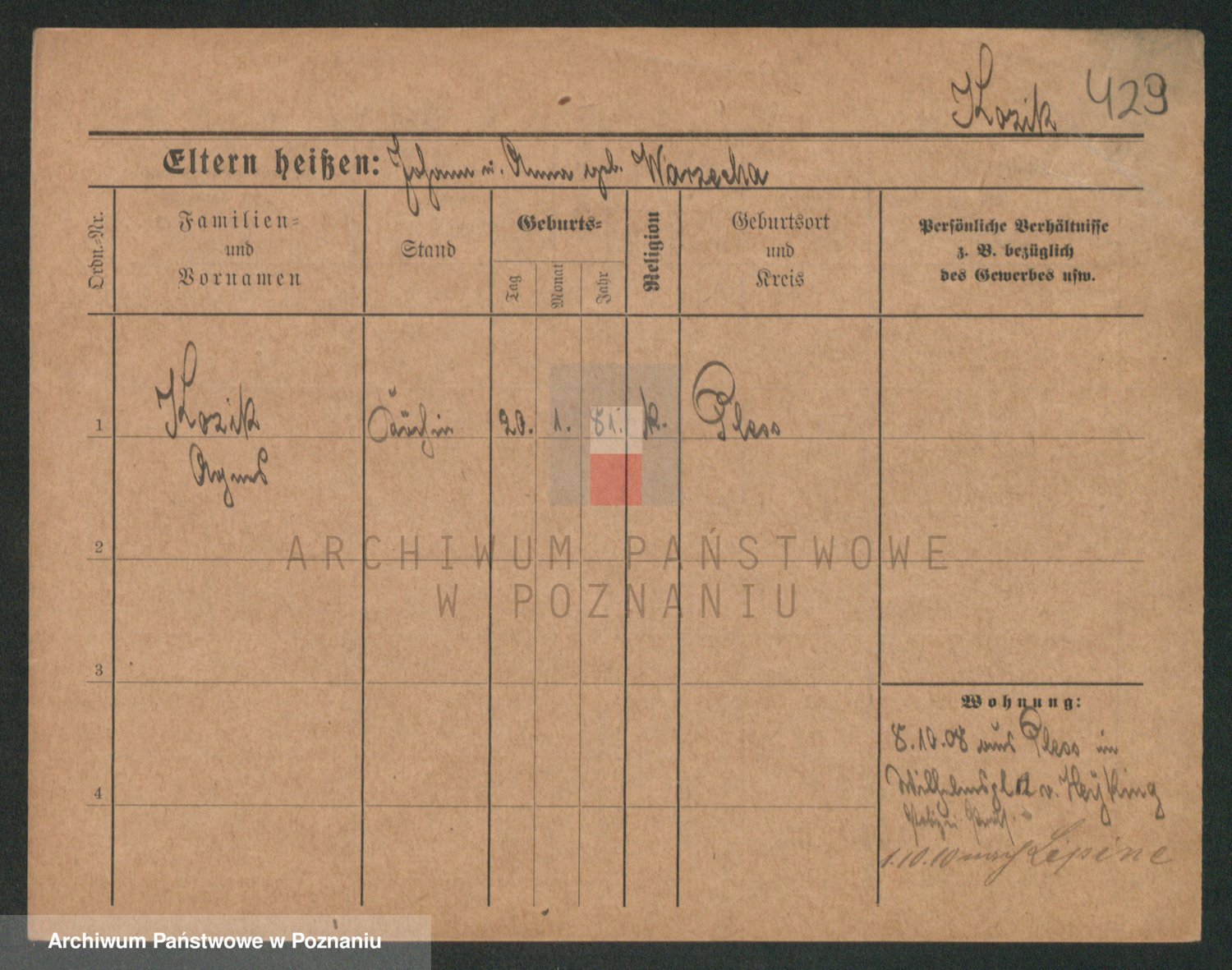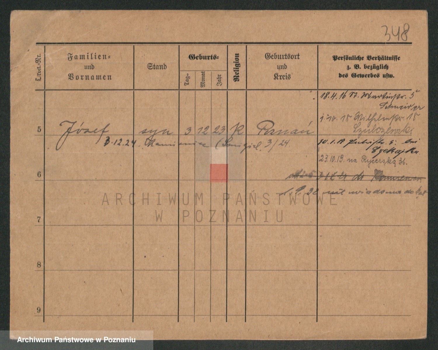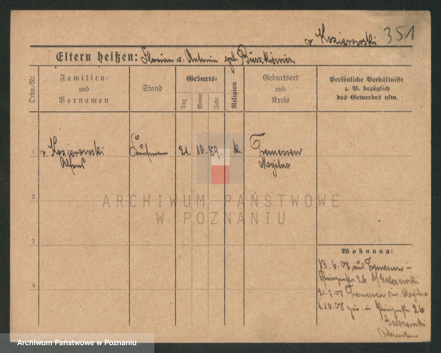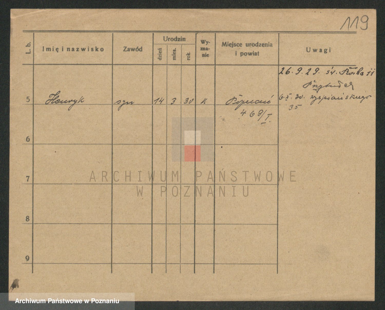Podgląd karty osobowej dostępny jest po kliknięciu na nazwisko lub ikonkę karty. Można dokonywać powiększenia (ikony na górze) lub przechodzić między kolejnymi skanami (strzałki po bokach).