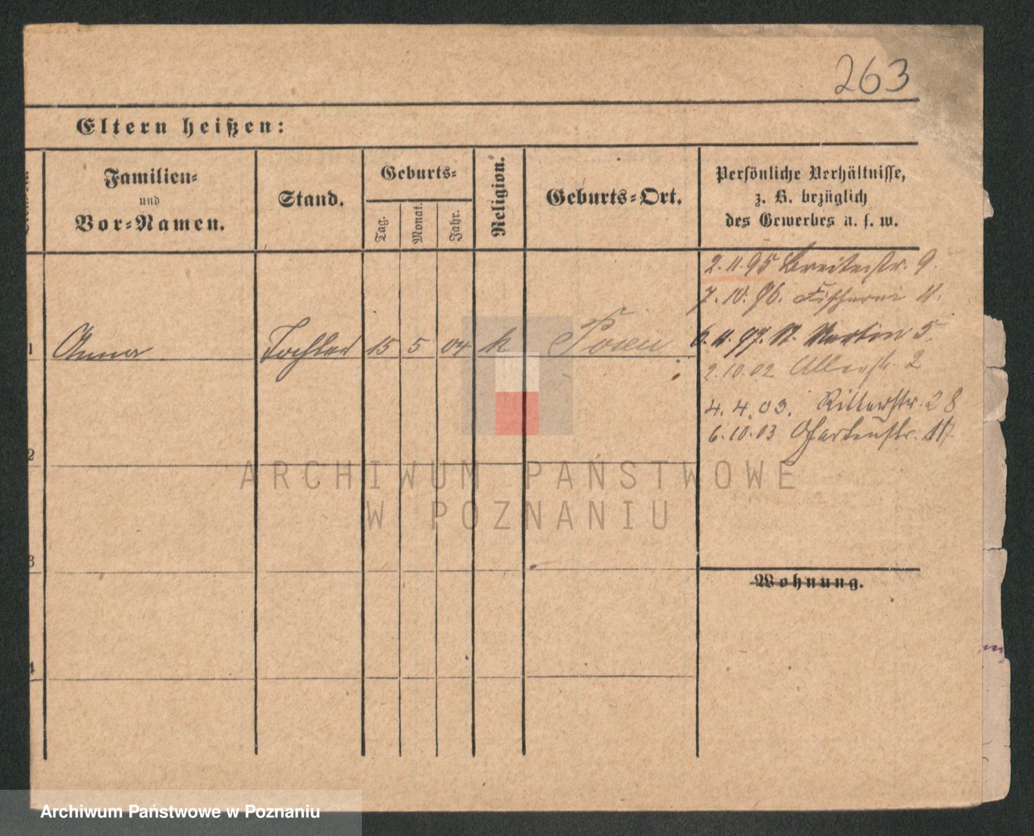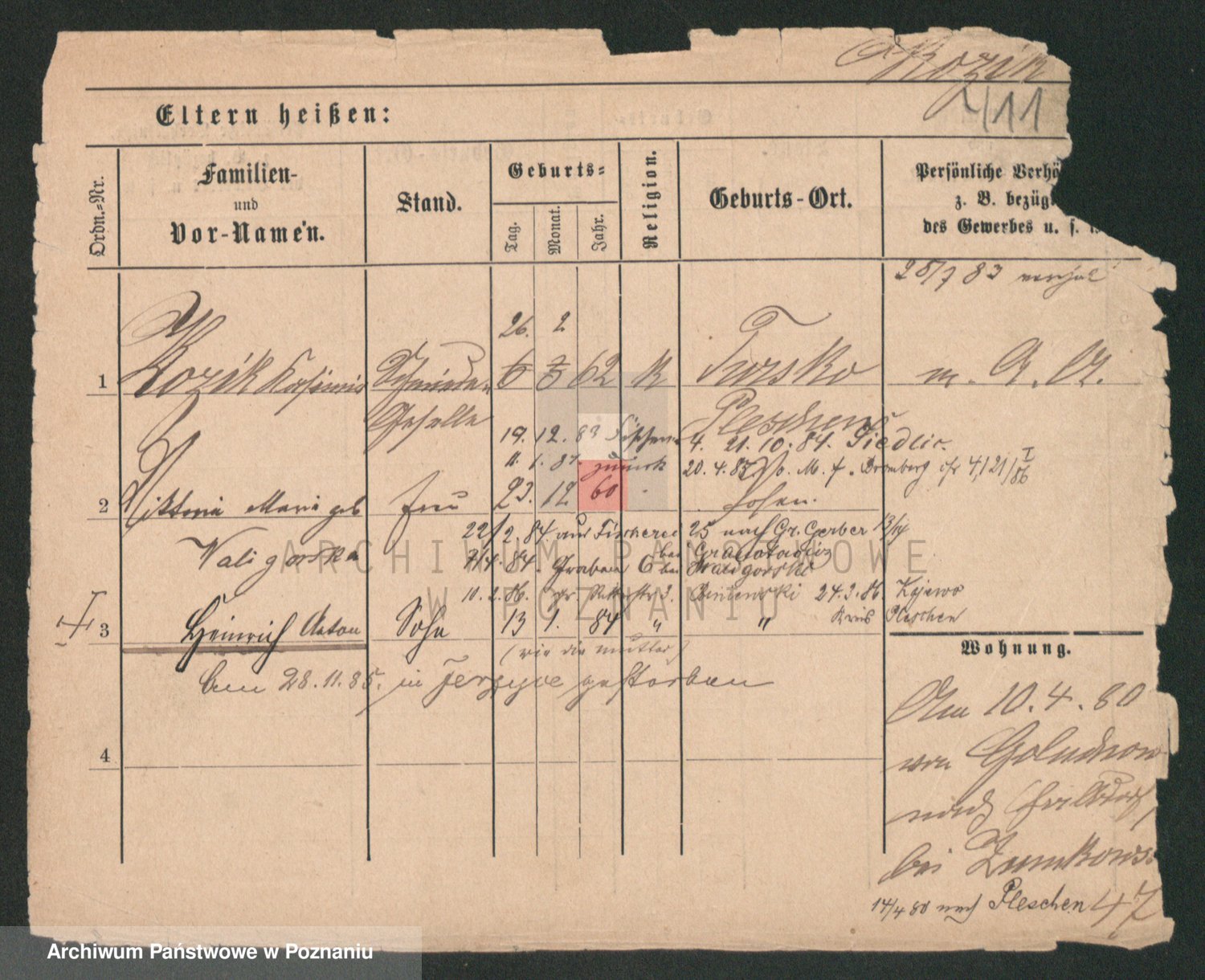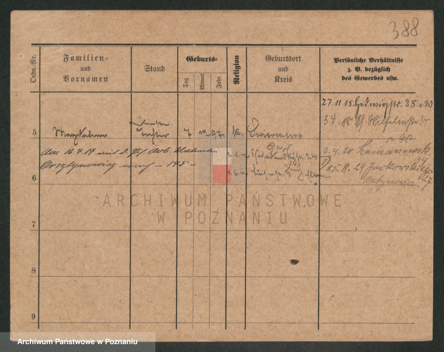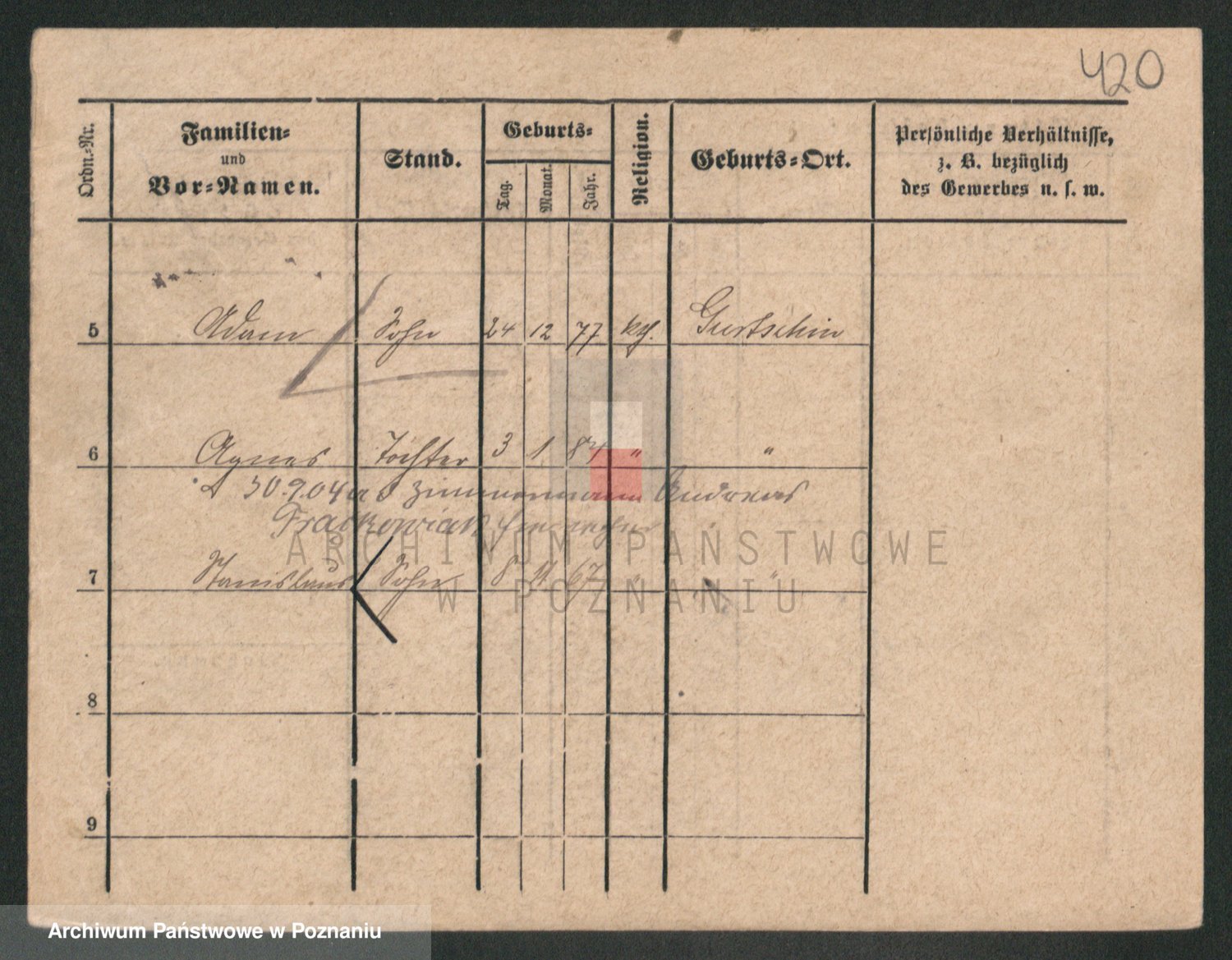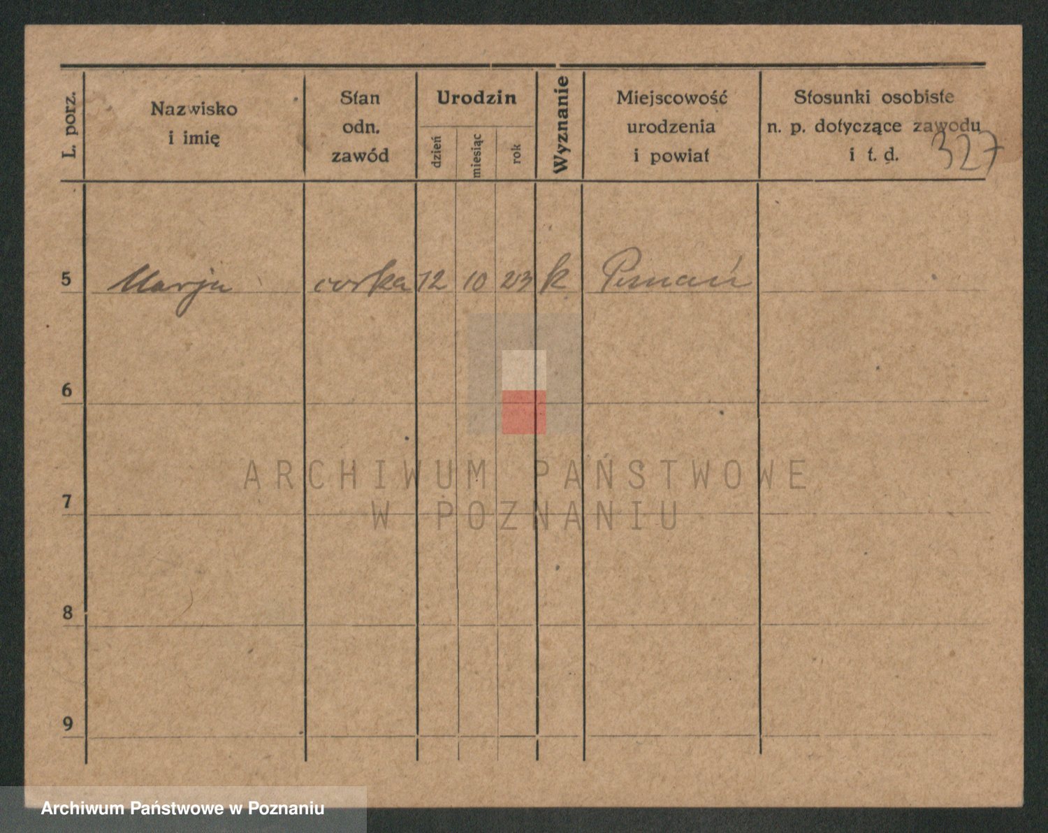 Podgląd karty osobowej dostępny jest po kliknięciu na nazwisko lub ikonkę karty. Można dokonywać powiększenia (ikony na górze) lub przechodzić między kolejnymi skanami (strzałki po bokach).