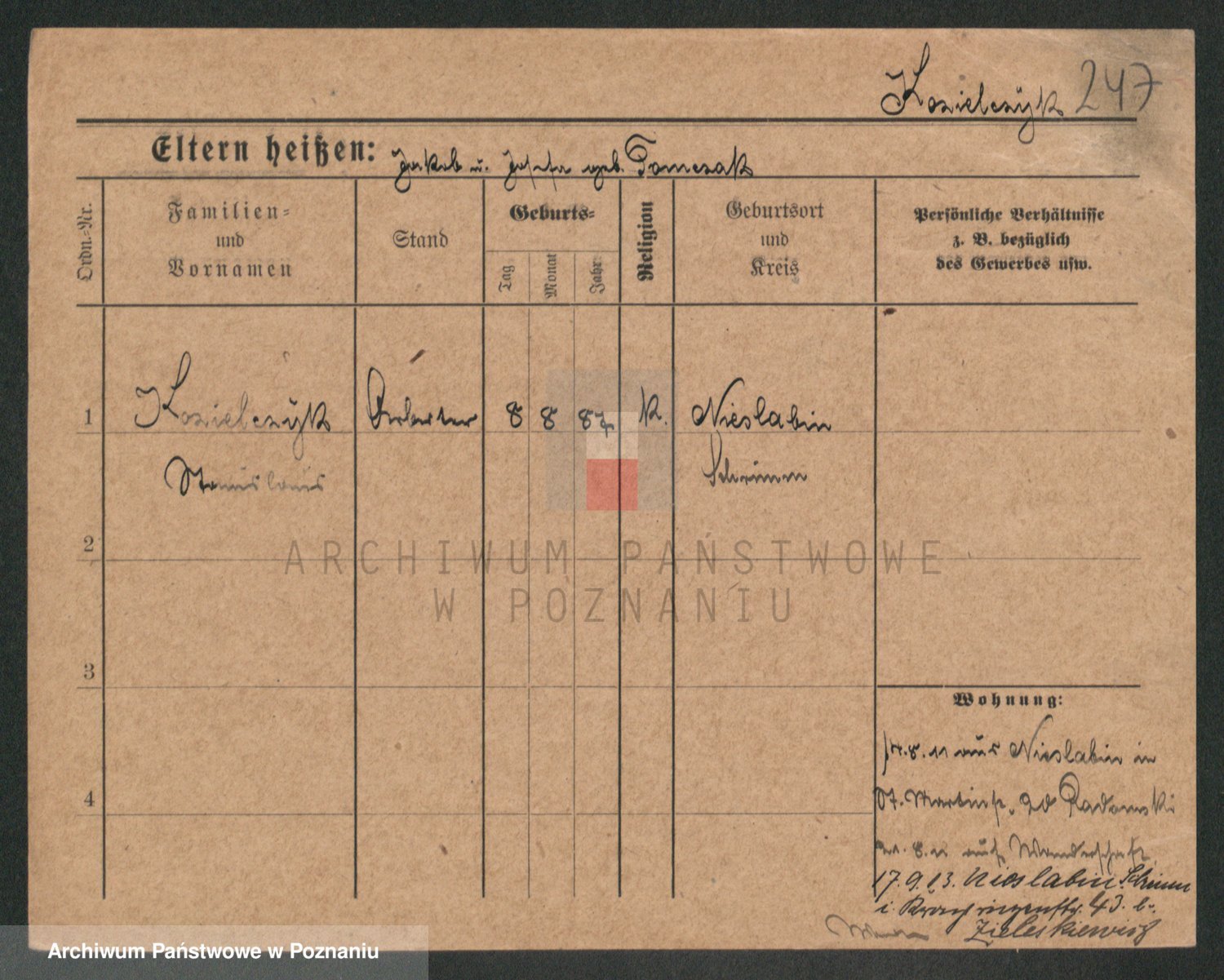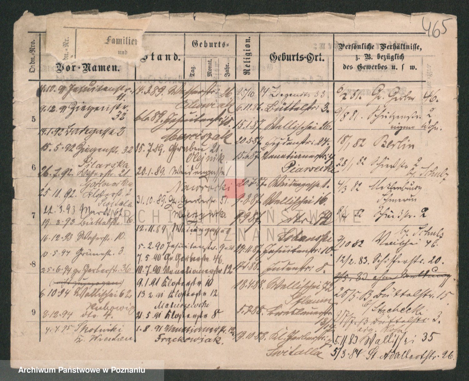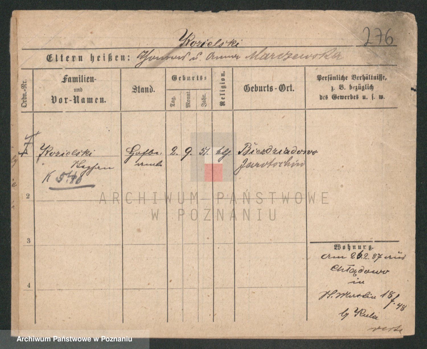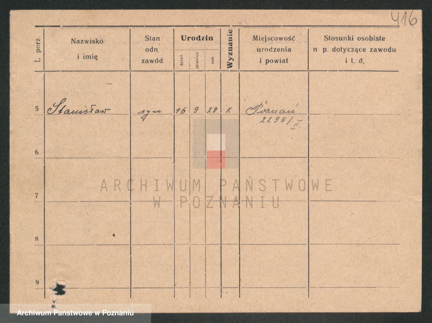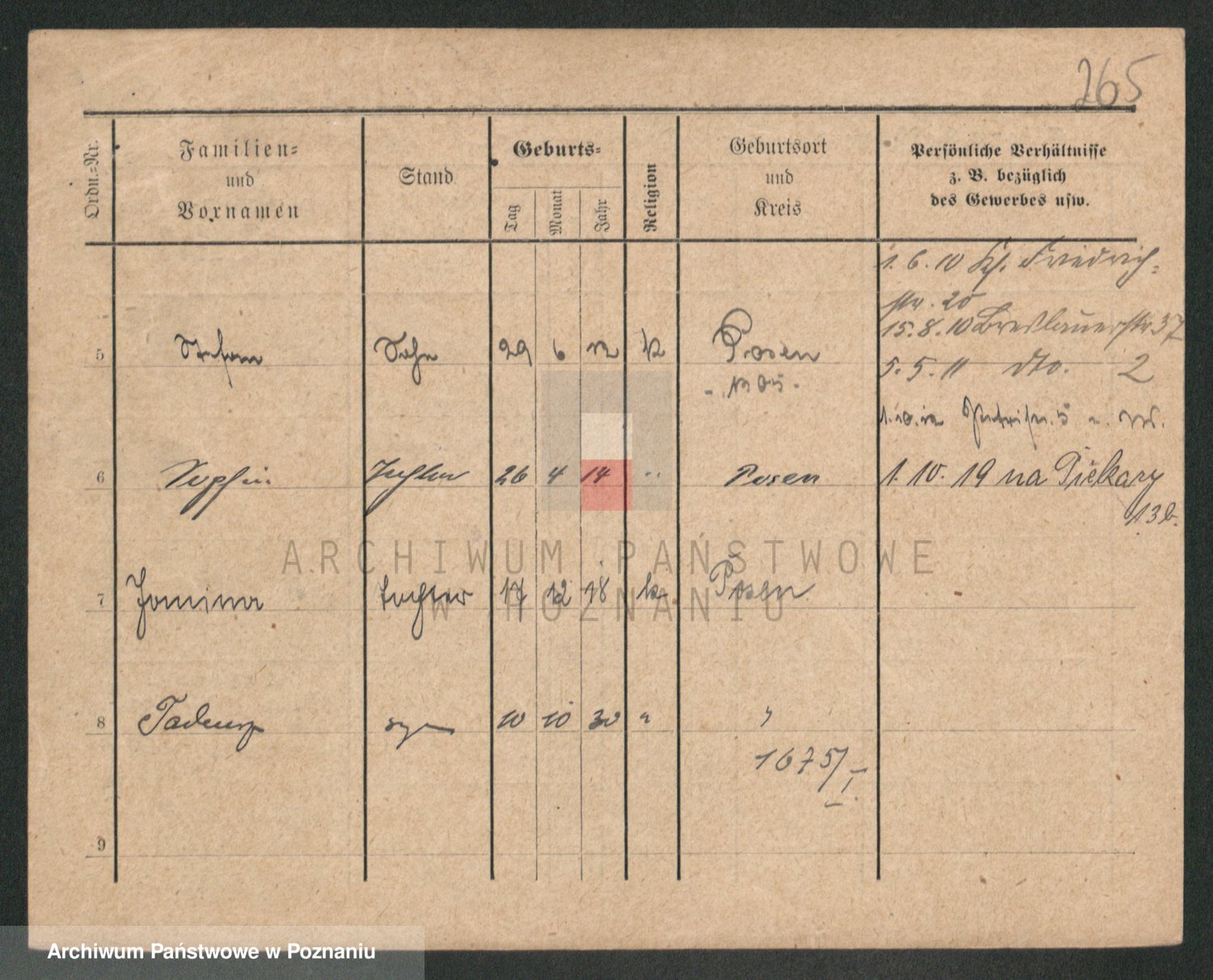 Podgląd karty osobowej dostępny jest po kliknięciu na nazwisko lub ikonkę karty. Można dokonywać powiększenia (ikony na górze) lub przechodzić między kolejnymi skanami (strzałki po bokach).