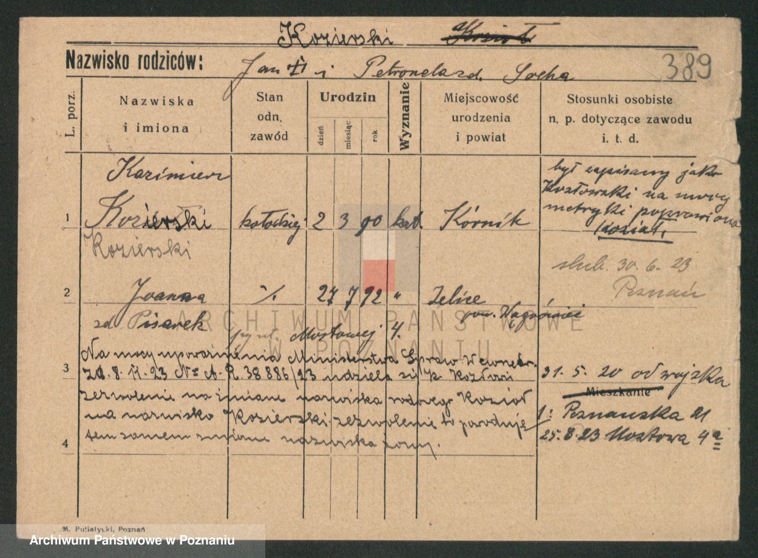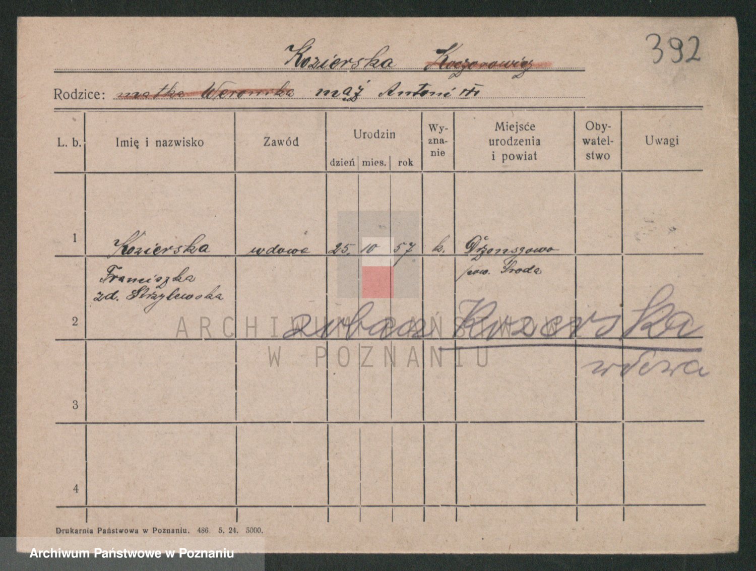 Kozerski z d. Szepanski I v. Kramak, Antonie