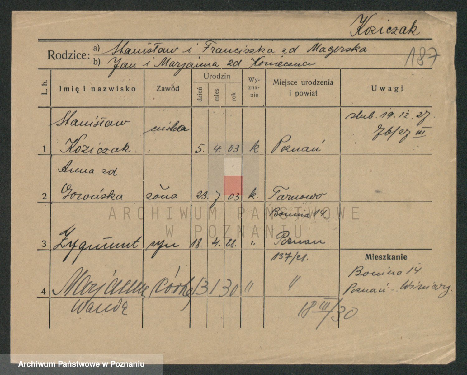 Kozioł al. Kozłowska z d. Tadeusz, Marianna