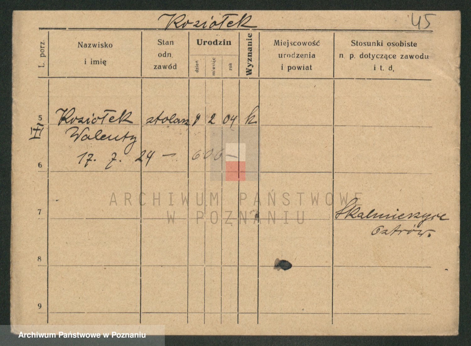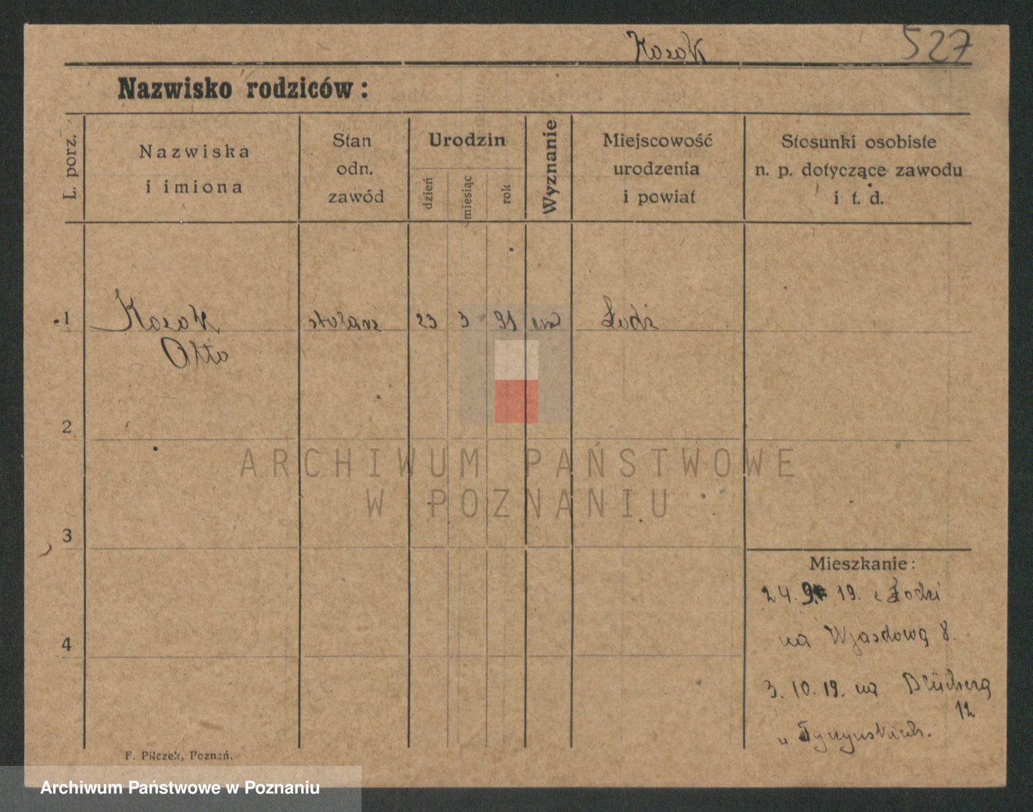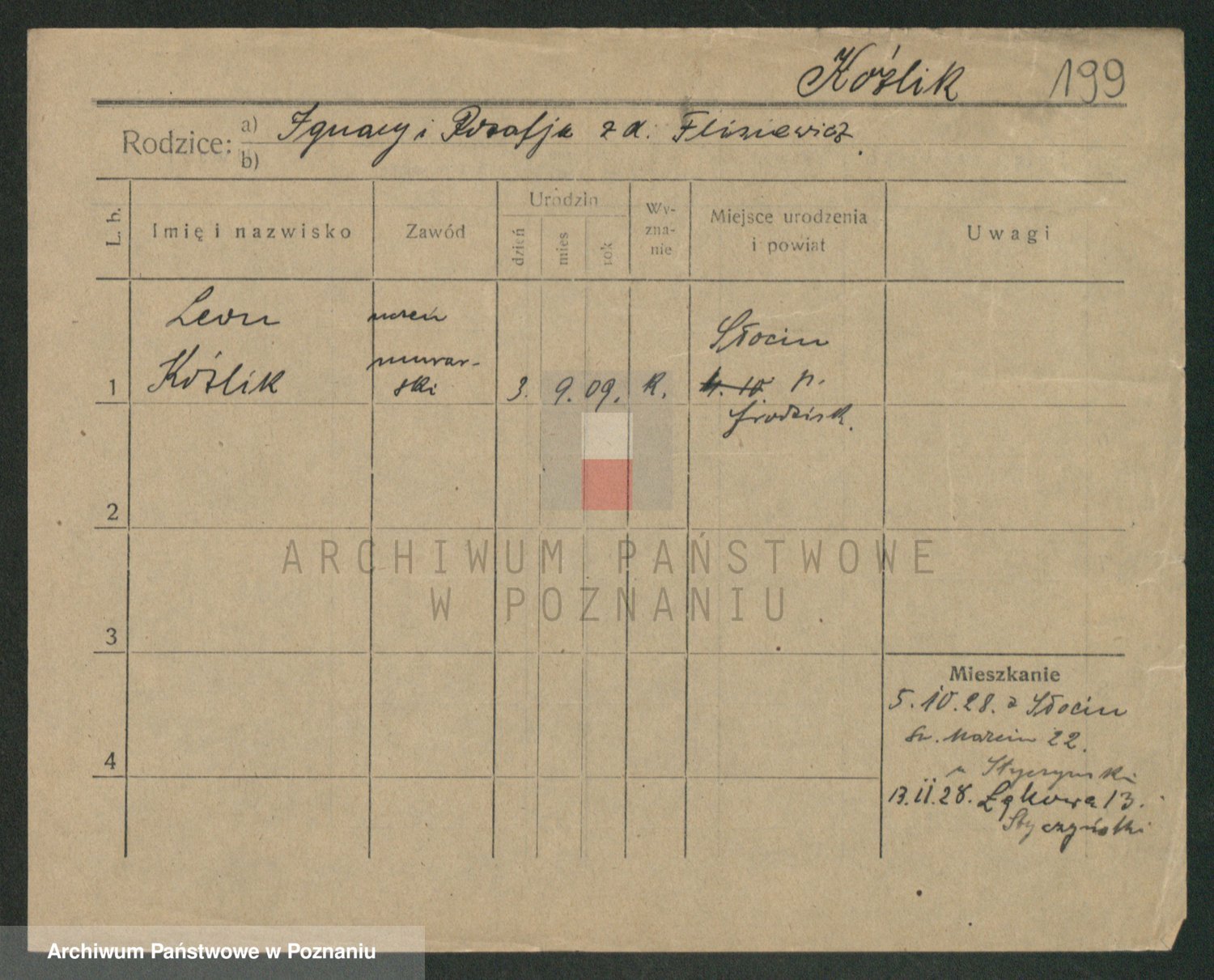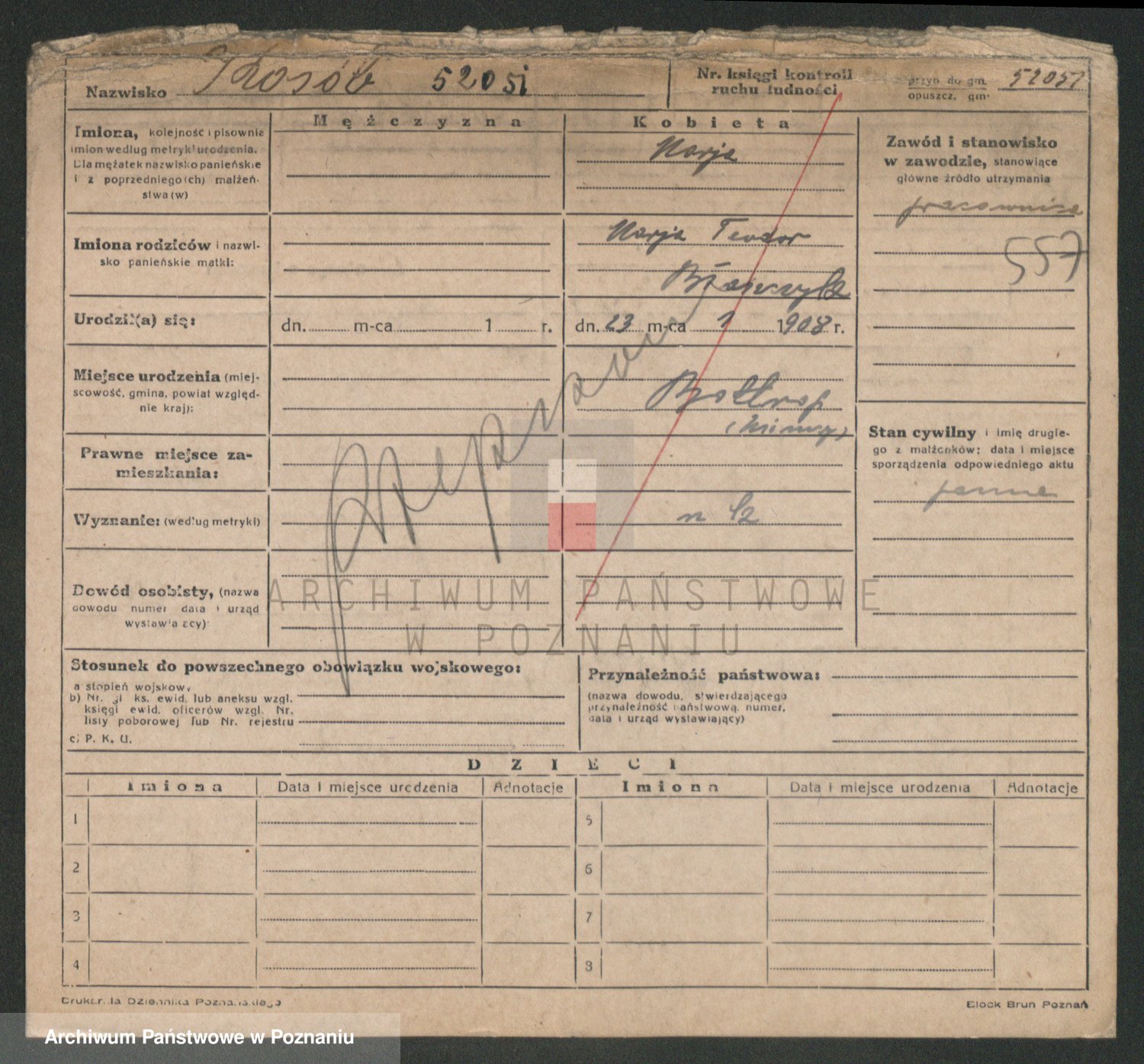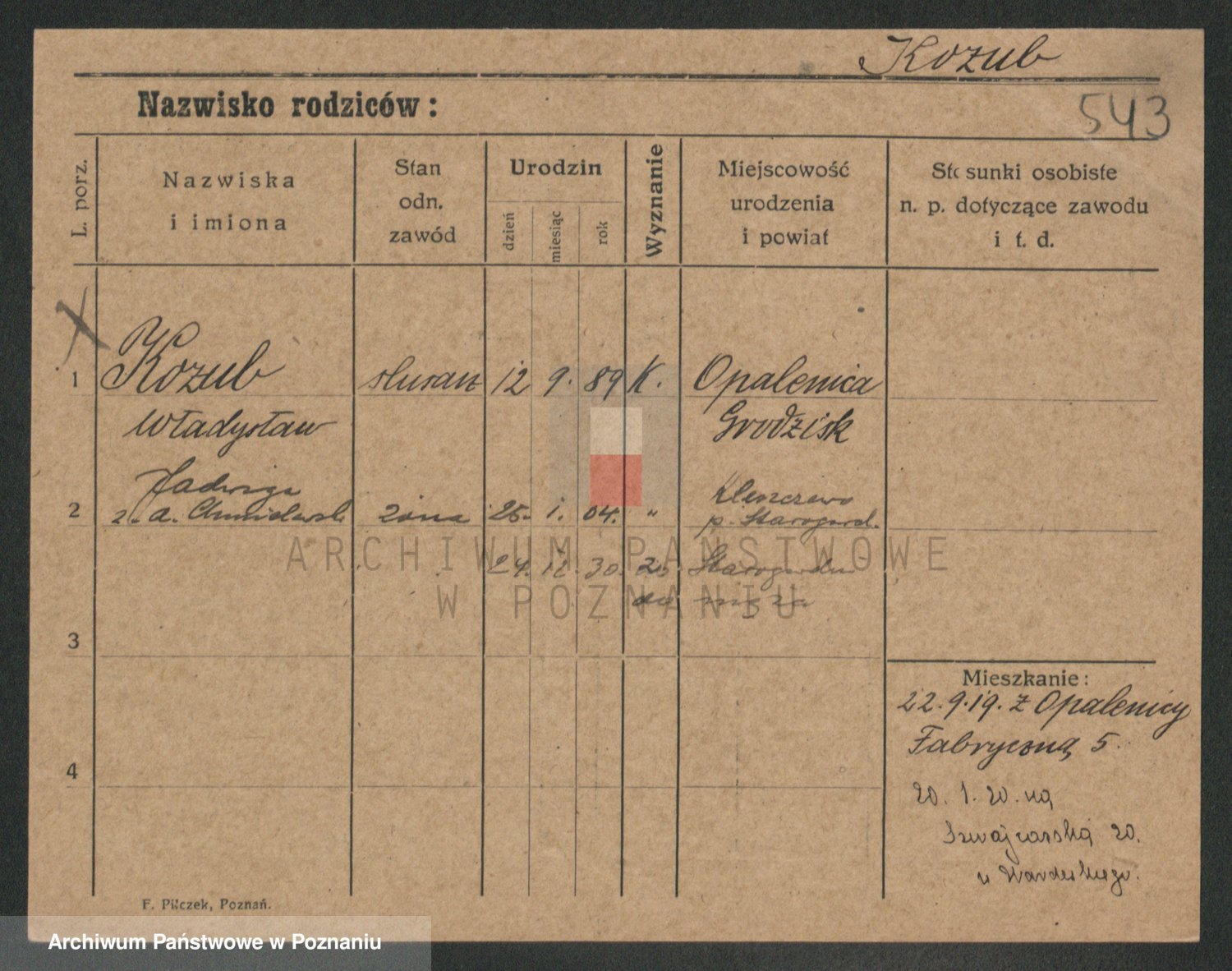 Podgląd karty osobowej dostępny jest po kliknięciu na nazwisko lub ikonkę karty. Można dokonywać powiększenia (ikony na górze) lub przechodzić między kolejnymi skanami (strzałki po bokach).
